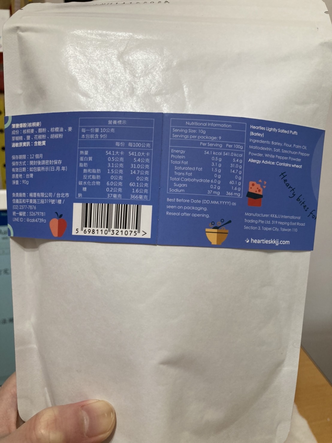 回列表 Hearties 薄鹽爆榖 核桐麥 健康穀麥新主張 市價139元 所需等級 一般會員以上 所需學分 50 體驗份數 15 關注人數 1412 申請人數 301 申請截止 品牌業者:Hearties 負責廠商 楊厝有限公司 廠商地址 臺北市信義區和平東路3段319號1樓 產地 台灣 試用產品規格 90g/包 食品業者登錄字號 A-152679781-00000-3 心得分享 商品介紹 商品成分 使用方法 注意事項 體驗名單 9.1 Hearties 薄鹽爆榖 核桐麥 包裝美學 8.4 咀嚼樂趣 8.9 甜鹹風味 8.8 成分天然 9.2 建議推薦 9.3 心得分享 13則 林亭立 金食達人 30歲 臺北市 2022/02/21 對Hearties 薄鹽爆榖 核桐麥留下評價 10 【口感】類似傳統爆米香的散裝款,軟硬適中且外皮酥脆,老少咸宜。【口味】帶著淡淡的鹹味,不會讓人有愈吃愈渴的感覺,吃起來很上癮,不知不覺就吃完一整盤。由於內容物的口味簡單,給小朋友或老人吃也不需擔心造成太大的負擔。下午茶時間搭配茶或咖啡享用十分合適。【包裝】包裝簡單,無過度包裝。包裝袋為夾鏈袋設計,方便消費者可以分次食用,而不用擔心內容物軟掉。 陳諭萱 鑽石達人 27歲 臺南市 2022/02/18 對Hearties 薄鹽爆榖 核桐麥留下評價 9 第一次聽到薄鹽爆穀(核桐麥)這個名稱,心裡滿是好奇,剛好很幸運的抽中食力的試吃員,迫不及待的想嘗試這個看起來也實際很健康的食物!推薦大家搭配牛奶或豆漿一起食用,別有風味,咀嚼起來也很有口感,口口都嚐得到天然的滋味,超級喜歡的!下次還想嘗試其他口味,尤其是黑糖的,感覺也會吃過就回不去呢~ CHEN DENG LONG 鑽石達人 66歲 臺南市 2022/02/18 對Hearties 薄鹽爆榖 核桐麥留下評價 8 首先包裝很簡約可愛,有一些小圖樣,設計也很好拆開和保存。第一次吃核桐麥,感到很新奇。有點像爆米香,比想像中更小顆,調味很簡單好吃,但是略帶一點點焦味有些突兀。也因為小顆小顆,所以泡在鮮奶裡吃反而比較有滿足感,微微的鹹味,自己加上玉米片,搭配芝麻糊之類的飲品也很不錯。吃點心還可以維持健康,是很好的選擇。 洪桂芳 金食達人 74歲 高雄市 2022/02/19 對Hearties 薄鹽爆榖 核桐麥留下評價 7 就是米香,只是它是一粒一粒,而且完全不甜,雖然包裝上標示鹽味但是不會很鹹,這點深得我心,市面上實在有一堆標榜健康養生卻調味很重的零食了;另外原本以為外殼口感會脆脆的,但並不會,比較像爆米花,充滿空氣感,吃起來很有健康感,放心吃沒負擔。 鄧若琳 金食達人 61歲 新北市 2022/02/20 對Hearties 薄鹽爆榖 核桐麥留下評價 9 包裝部份:全白密封袋加紙束帶套住,密封袋是很體貼的作法,惟品名的字型稍微小了點,不夠明顯。成份算天然且為非油炸品,且調味不會過鹹,算是健康的零食,除了單吃外,也可加牛奶豆漿或優格,也可當作主食的訴求。 hello 金食達人 30歲 臺北市 2022/02/20 對Hearties 薄鹽爆榖 核桐麥留下評價 9 入口滿滿的穀物香氣帶著點焦香,咬下去不是一般米香脆脆的,而是有點硬、扎實又綿綿的特殊口感,且越嚼越香,會讓人一口接口停不下來,搭配牛奶也很好吃,健康、營養、好吃,可以做為簡單快速的早餐,也可以是讀書肚子餓時的良伴。 宛蓉謝 金食達人 35歲 桃園市 2022/02/21 對Hearties 薄鹽爆榖 核桐麥留下評價 9 當通知得到試吃體驗很開心,等待寄送到貨後開箱的瞬間,看到包裝寫著核桐麥,不甚了解核桐麥?建議可以在包裝上,推廣或推薦核桐麥的相關資訊,例如健康指標、營養資訊或其他特殊資訊。內容物視覺上很健康,原物爆米香,口感脆香,建議鹹度或辣度稍微提高,幾乎只感覺到原穀物的風味 陳則源 金食達人 45歲 新北市 2022/02/21 對Hearties 薄鹽爆榖 核桐麥留下評價 9 這款薄鹽爆穀,吃起來的口感很酥脆,薄鹽淡淡的鹹味,均勻分布在每一粒當中,抓一把放入口中,卡滋卡滋的聲音,一口接一口,相當過癮,唯一的缺點,就是每一粒小小的,很容易掉落在衣服或掉到地上,所以取用分食要小心一點,但也因此多了一點樂趣,像是掉到地上要找滾到哪裡去之類的,總之是一款滿好吃的零食。 林心雅 金食達人 46歲 臺北市 2022/02/21 對Hearties 薄鹽爆榖 核桐麥留下評價 10 薄鹽爆榖核桐麥很像沒有加糖的傳統爆米香,成分天然沒有添加物,顆粒咀嚼起來有淡淡的麥香,愈嚼愈好吃,產品調味也很適中,不會太鹹,大人小孩都適合,會一直吃不停的小零嘴,搭配在牛奶裡也非常好吃,不會軟爛,反而讓口感更有豐富感。 鄭世昌 鑽石達人 55歲 臺中市 2022/02/21 對Hearties 薄鹽爆榖 核桐麥留下評價 10 收到這包"薄鹽爆穀核桐麥"馬上就打開聞香,香味真是好的無法形容,小孩在旁馬上吵著要吃,於是就先倒一些給她嘗鮮,她愈嚼愈順口,馬上吃完一小碟,吃完還要,我也跟著吃,愈嚼愈香,少許的鹽與爆過的麥真是很搭,與咖啡或茶喝真是順口,彼此的香味不會互壓,反而是互補,中午把核桐麥灑一些在甜元宵上,雖然穀麥沾到熱湯有變軟,但是與湯一起吃,香味還有,果然爆的真是道地,值得推薦. 賴姵璇 金食達人 37歲 臺北市 2022/02/22 對Hearties 薄鹽爆榖 核桐麥留下評價 9 口感脆脆的,有點微微的硬度,味道清淡不會太鹹,慢慢咀嚼會吃到麥子的香味,而且會越嚼越香越嚼越爽口,適合當看電影或在家追劇吃的零嘴,如果覺得味道不夠可以加些果乾搭配混合著吃,可以讓吃的口感和味道更有層次。重點是產品成分單純,沒有添加太多的人工添加物,保持食物的原味,讓人吃的比較安心。 陳進男 金食達人 56歲 臺南市 2022/02/24 對H