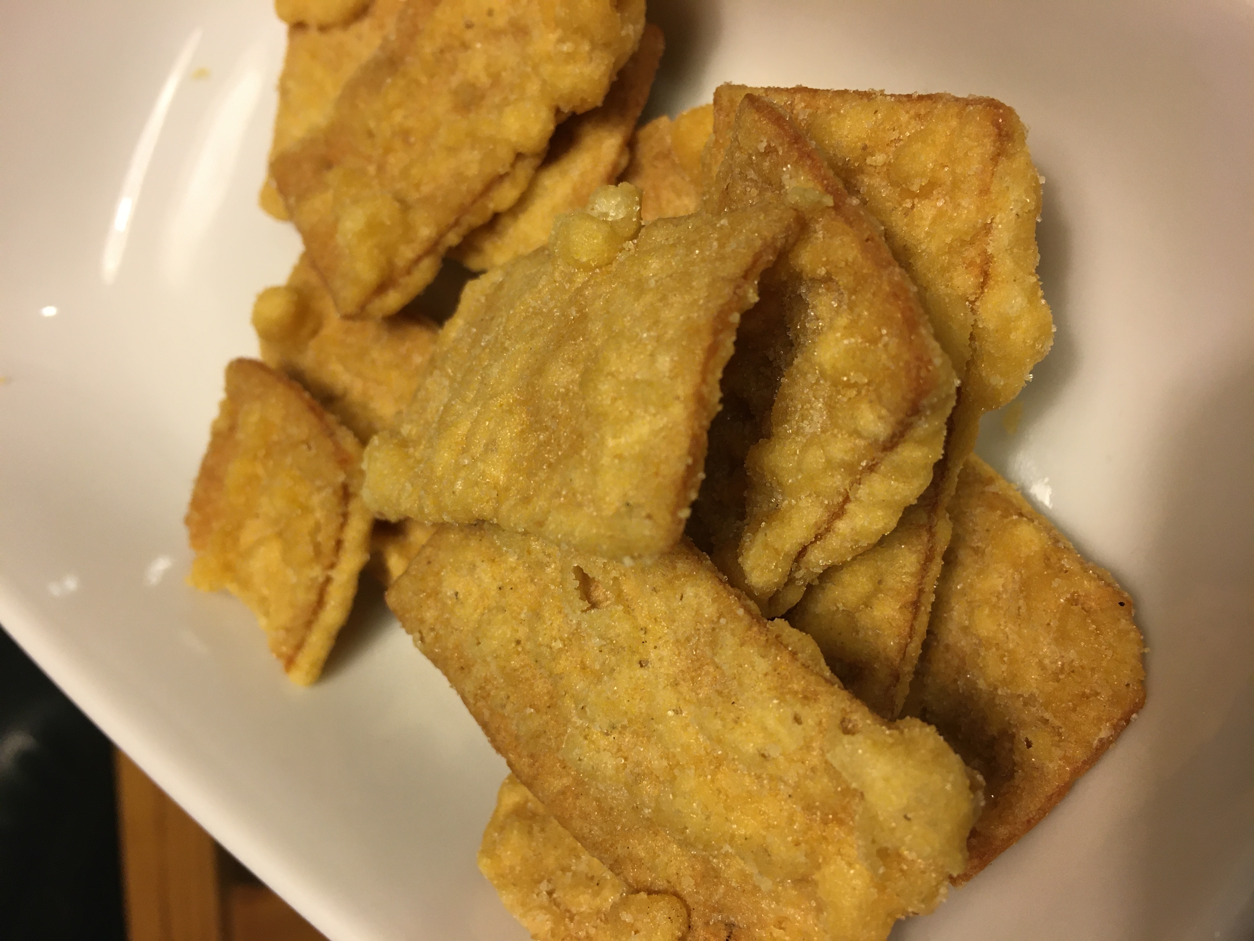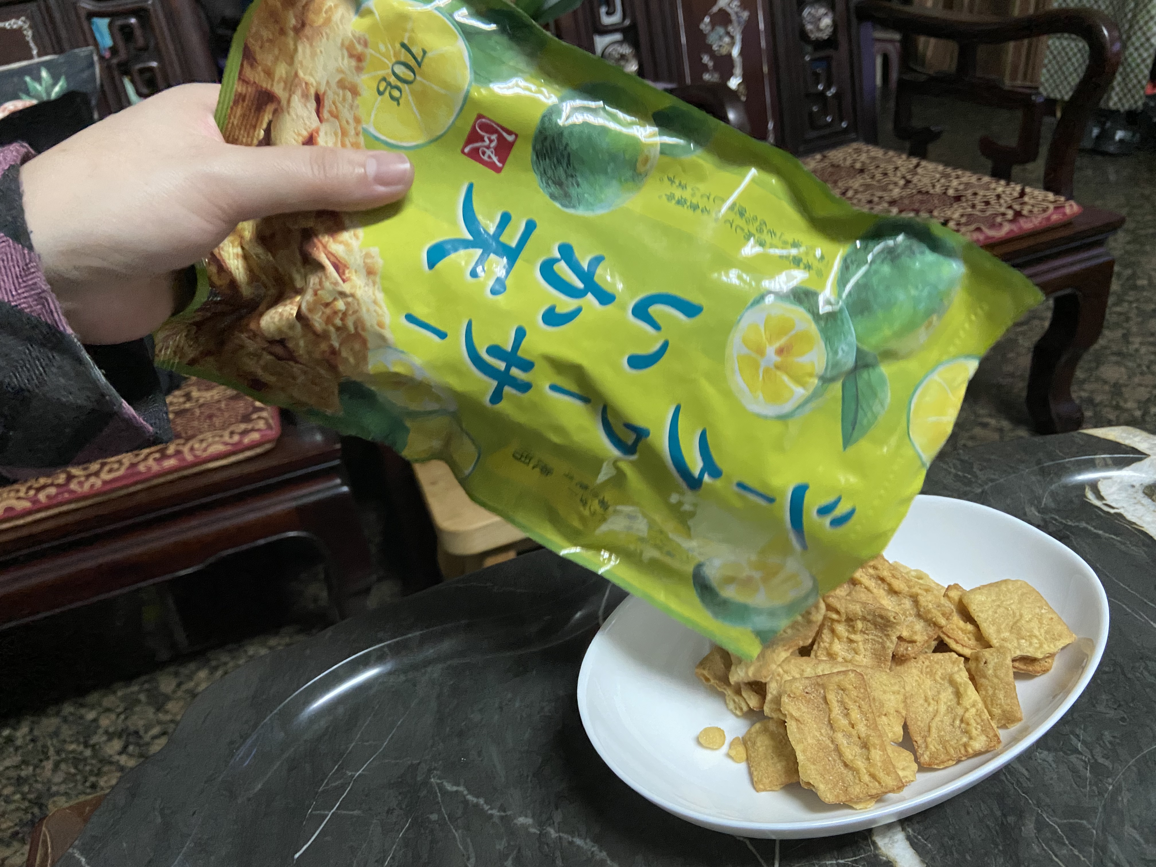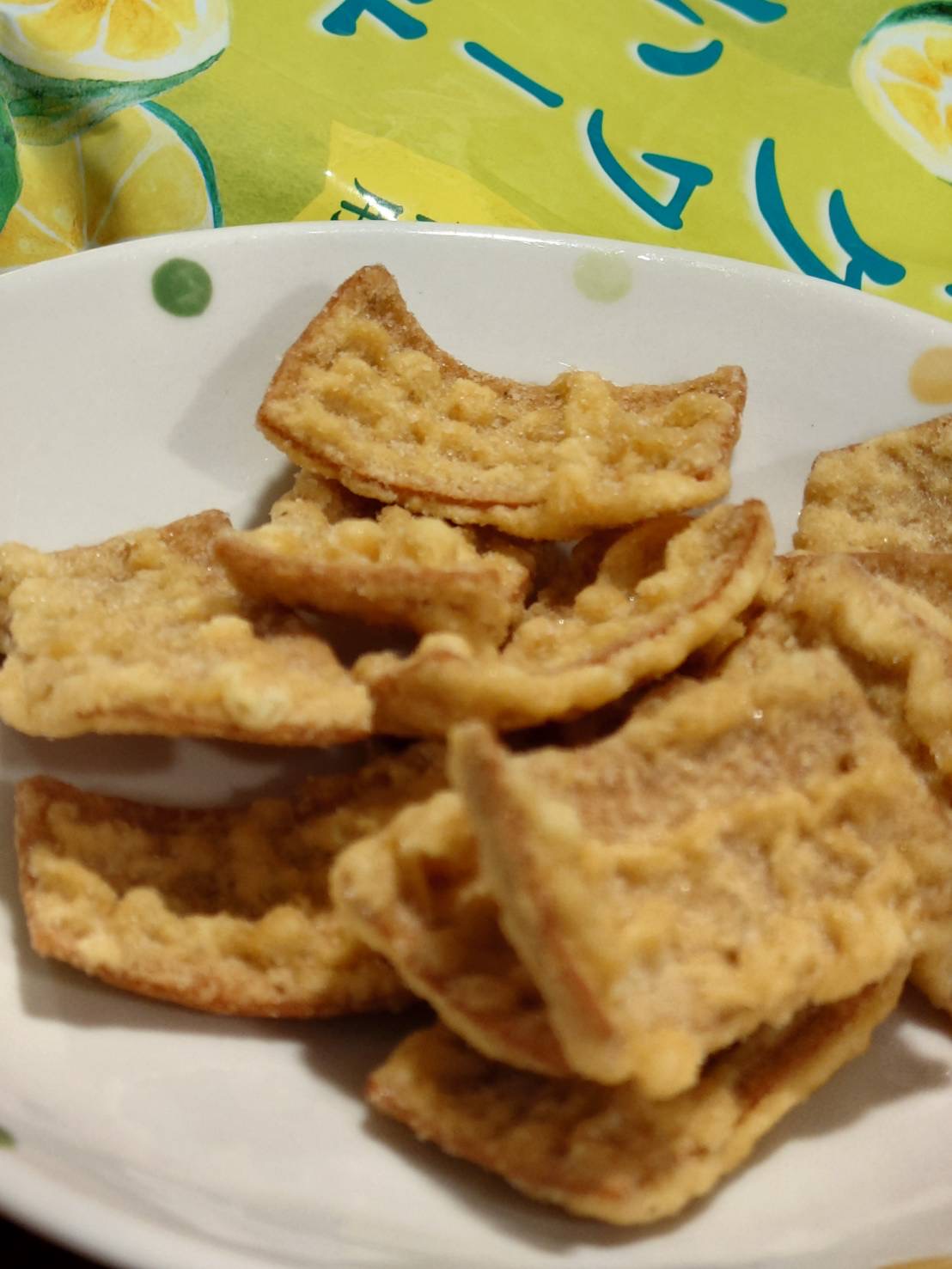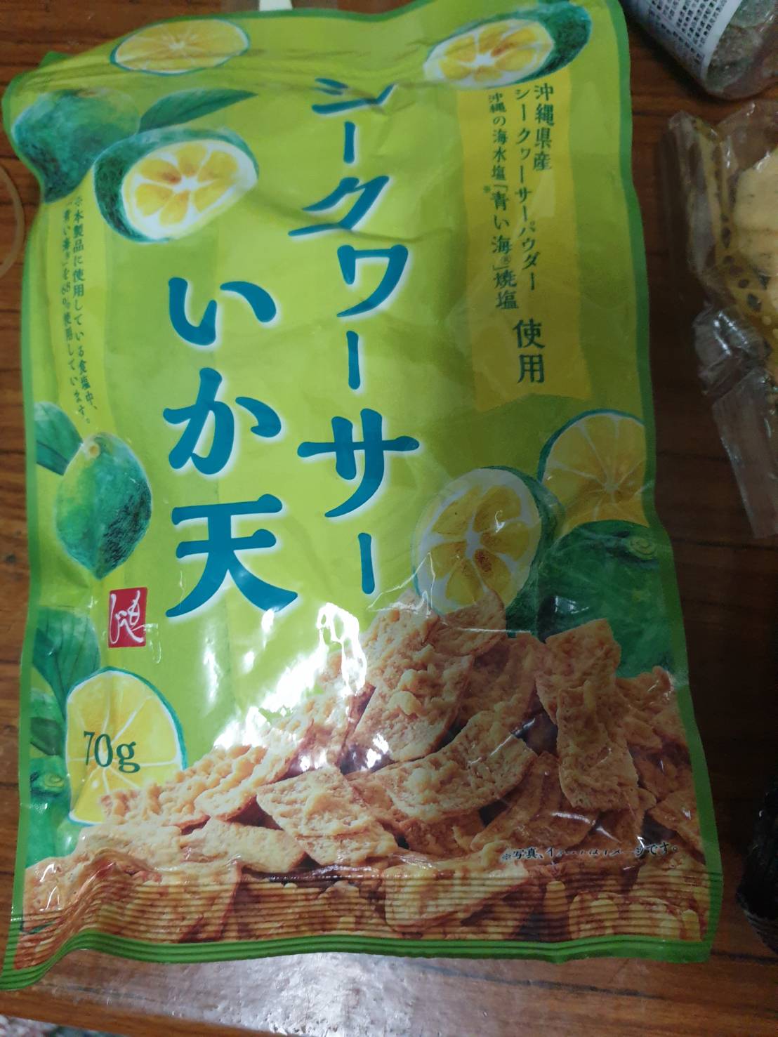 小麥粉,油菜籽油,棕櫚油,魚肉加工品[魚漿(鱈魚,多線魚,砂糖),雞蛋,植物性蛋白(小麥,大豆),玉米澱粉,花枝,油菜籽油,食鹽],香檬風味調味料[砂糖,食鹽,香檬果汁粉(糊精,香檬果汁)],玉米澱粉,砂糖,雞蛋白粉,大蒜,白胡椒,食鹽,水解大豆蛋白,還原澱粉分解物(樹薯,甘藷),甜味劑(D-山梨醇),醋酸澱粉,磷酸二澱粉,L-麩酸鈉,5’-次黃嘌呤核苷磷酸二鈉,5’-鳥嘌呤核苷磷酸二鈉,海藻糖,檸檬酸,pH調整劑(乳酸鈉,DL-蘋果酸鈉,DL-蘋果酸,植酸),焦糖色素,香料,香辛料萃取物(辣椒)