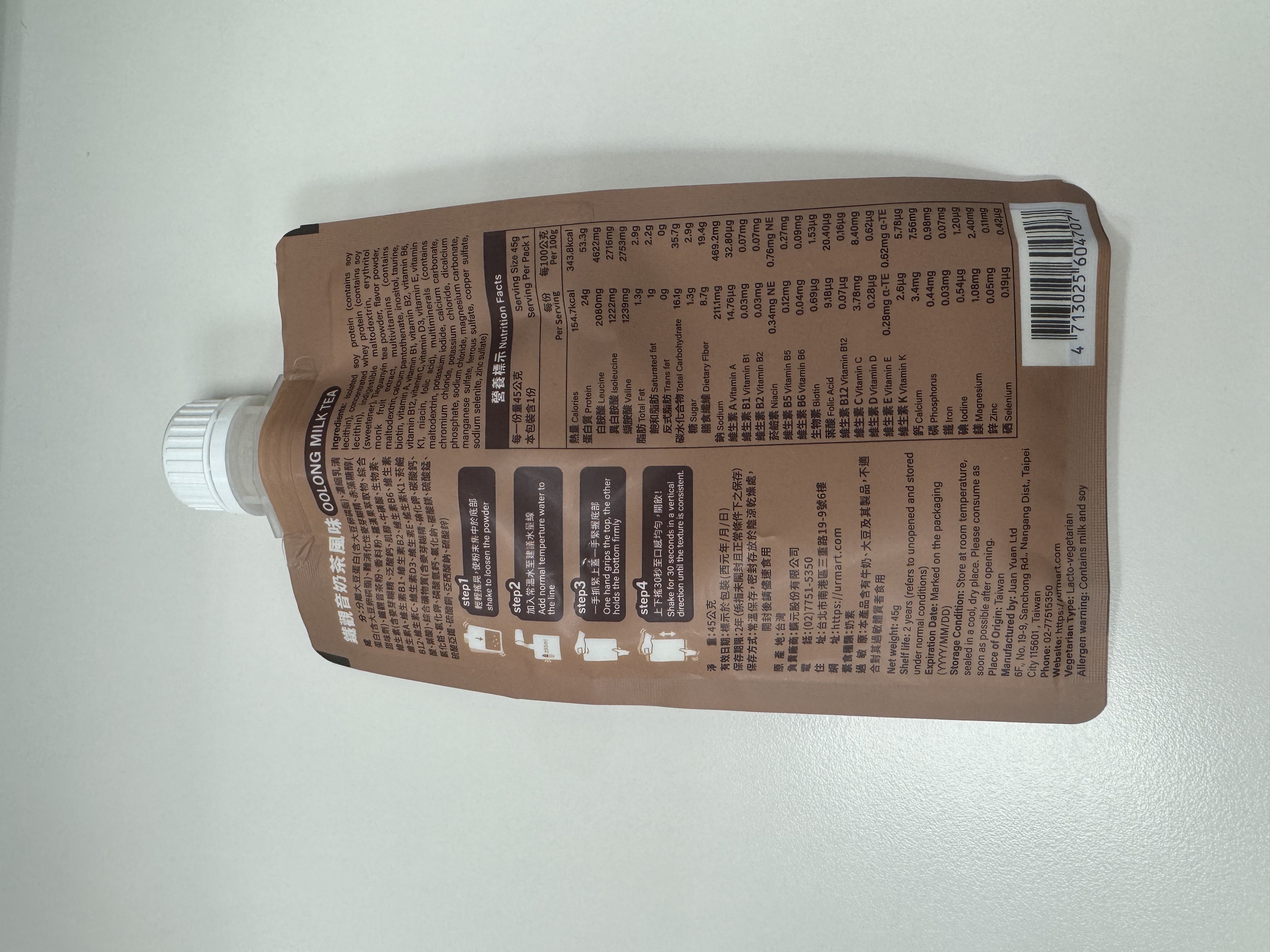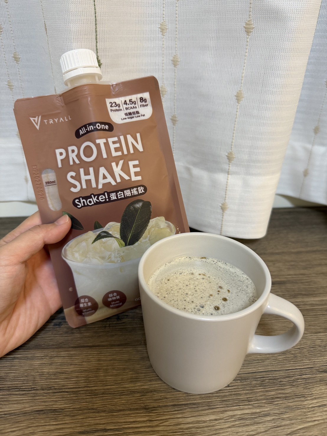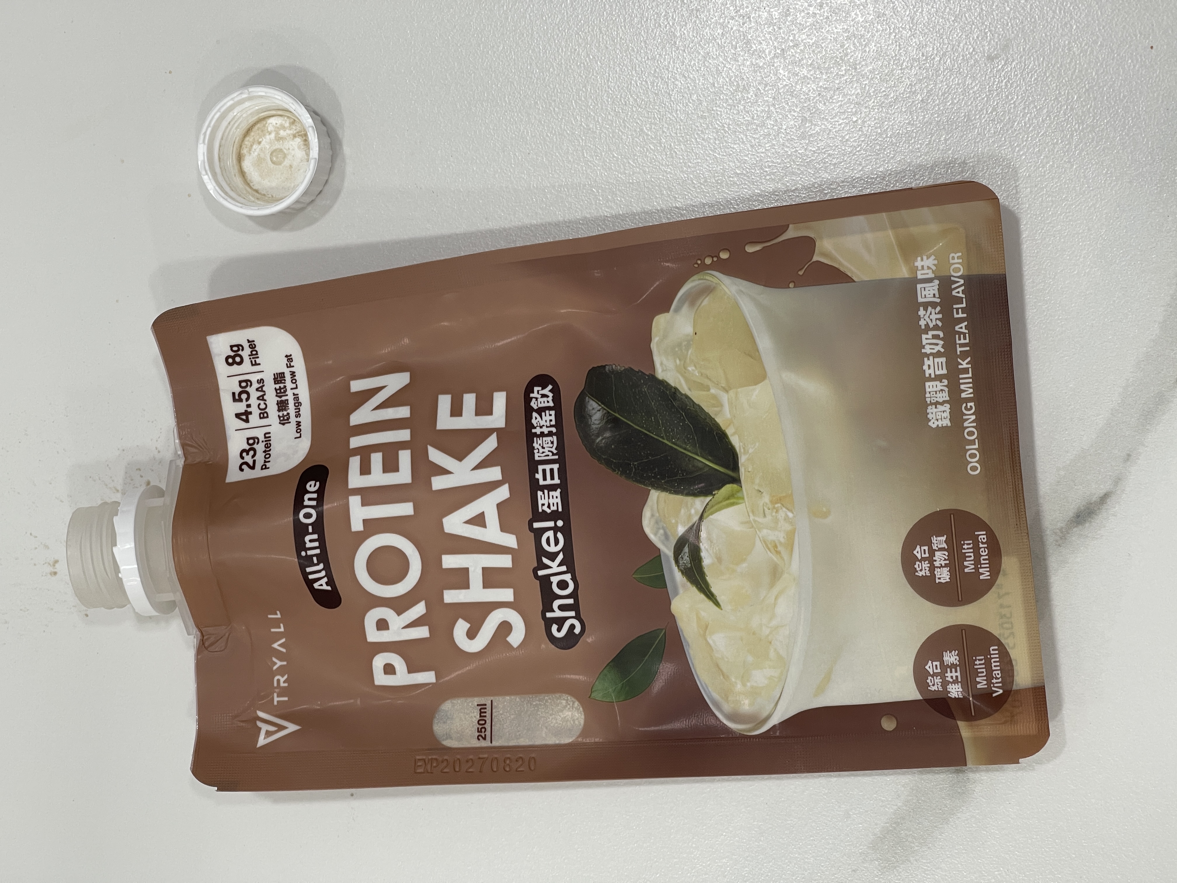 回列表 台灣Tryall 蛋白隨搖飲 鐵觀音奶茶風味 茶香濃郁,蛋白滿分!顛覆你對高蛋白的想像 所需等級 一般會員以上 所需學分 50 體驗份數 15 關注人數 1194 申請人數 200 申請截止 品牌業者:TRYALL 負責廠商 饌元股份有限公司 廠商地址 台北市南港區三重路19-9號B棟6樓 產地 台灣 試用產品規格 45g 食品業者登錄字號 A-154162311-00000-1 投保產品責任險字號 130014AKP0000965 心得分享 商品介紹 商品成分 使用方法 注意事項 體驗名單 9.0 台灣Tryall 蛋白隨搖飲 鐵觀音奶茶風味 飽足感適中 9.1 飲用便利性 9.7 甜度剛好 8.5 鐵觀音奶茶茶香 9.0 建議推薦 8.8 心得分享 12則 郭素君 金食達人 42歲 高雄市 2025/10/10 對台灣Tryall 蛋白隨搖飲 鐵觀音奶茶風味留下評價 10 對於一位奶茶控的一打二媽媽,奶茶無疑是最好的精神糧食。但考量我已漸漸邁入中年的年紀,實在不應該攝取太多的糖份,可是…喝「無糖」奶茶實在是讓人開心不起來啊。這時飲控期的神隊友TRYALL Shake!蛋白隨搖飲真的是我的好夥伴,每份含有24g的蛋白質及8.7g膳食纖維,最重要的是,熱量僅有155大卡,就算每日喝也不會感到罪惡。像平日有在固定上團課的我,運動前或後30分鐘喝還能有效補充蛋白質。輕輕的一包,不僅攜帶方便,充泡也很容易哦,直接加入250~300CC的常溫水後搖勻即可飲用。 顏瑋吟 金食達人 38歲 新北市 2025/10/14 對台灣Tryall 蛋白隨搖飲 鐵觀音奶茶風味留下評價 10 這款蛋白隨搖飲的包裝真的很特別,沖泡很簡單、攜帶很方便、飲用上也可以隨時打開或蓋起,不用擔心因為通勤而要馬上喝光光,可以依照自己的步伐飲用,這點真的蠻不錯的!我自己是用常溫水進行沖泡,搖晃均勻之後冰到冰箱,隔天早上當早餐飲用,超級方便!這款鐵觀音蛋白飲的甜度,我認為大約是手搖飲的3分糖,不會太甜,也不會到苦澀難飲,它的茶香很濃郁,當飲料喝也是一種選擇,毫無違和感!而且它的蛋白粉的質地很細緻,不會覺得很大粒、很粗糙、很難吞嚥,喝完一杯是真的有飽足感的那種,很值得推薦給大家! 李庭 金食達人 33歲 臺北市 2025/10/14 對台灣Tryall 蛋白隨搖飲 鐵觀音奶茶風味留下評價 10 這次收到【台灣Tryall 蛋白隨搖飲 鐵觀音奶茶風味】讓我大開眼界!!首先包裝設計非常方便攜帶,不同於市面上要自己帶粉帶杯子...隨時隨地都能輕鬆享用,對於忙碌的生活節奏來說非常實用。口感上也很特別,以往我喝過的高蛋白產品常常有種「蛋腥味」或「粉味」,讓人不太舒服,甚至有點人工香精的感覺。但這款鐵觀音奶茶風味完全沒有那種怪味,茶香與奶茶的味道融合得恰到好處,喝起來順口自然。這款蛋白隨搖飲不僅補充蛋白質方便,也兼顧了口感,最重要的是一點都不無聊而且還不會有罪惡xd 是值得大大推薦的健康飲品!! CHIAO 鑽石達人 37歲 臺中市 2025/10/17 對台灣Tryall 蛋白隨搖飲 鐵觀音奶茶風味留下評價 10 感謝收到 Tryall 台灣 的蛋白隨搖飲——鐵觀音奶茶風味!包裝設計相當特別,蛋白粉裝在像能量果凍的袋中,上方有旋轉蓋口,只要加入常溫水、豆漿或牛奶後搖一搖,就能直接飲用,既方便又衛生。鐵觀音茶香濃郁,帶著淡淡奶香,不會太甜,也沒有明顯的蛋白粉味,整體順口好喝。搭配豆漿更有厚實風味,比一般奶茶多了一點層次。最喜歡它免洗杯、免攪拌的設計,外出或運動後超方便。整體味道與體驗都超出預期,是會想回購的便利型蛋白飲! 陳廷宥 金食達人 25歲 基隆市 2025/10/30 對台灣Tryall 蛋白隨搖飲 鐵觀音奶茶風味留下評價 10 此產品方便攜帶,30秒就能調製完成,每份含有約24克的蛋白質與膳食纖維,糖分含量較低。口味評論珍珠奶茶口味:: 甜味和香氣足夠,喝起來很像手搖杯,但沒有珍珠。方便性與營養方便性:: 非常方便,只需加水搖勻即可飲用,無需自備杯子。蛋白質含量:: 每份含有高達約24克的蛋白質,滿足每日蛋白質需求量的一部分。膳食纖維:: 含有膳食纖維,有助於增加飽足感。糖分:: 一份僅含約1.3克的糖,適合減脂期間飲用。總結適合對象:: 喜歡喝奶茶、想補充蛋白質但又在減脂中的人。優點:: 口感佳、方便攜帶、蛋白質與膳食纖維含量高、糖分低。 楊翾 金食達人 40歲 桃園市 2025/10/16 對台灣Tryall 蛋白隨搖飲 鐵觀音奶茶風味留下評價 9 這次試喝"台灣Tryall蛋白隨搖飲—鐵觀音奶茶風味",打開包裝就能聞到淡淡的鐵觀音茶香,喝起來茶香濃郁,奶味順口,不過口味偏甜了一些,如果能再減糖一點會更耐喝。值得一提的是,它的隨搖包裝設計非常貼心,不僅輕巧易攜,外出旅遊或運動時都能快速補充蛋白質。只要加水搖一搖,就能隨時享受茶香與營養的結合。若吸管口能設計成可拆卸式,或許整個瓶身還能重複利用,更符合環保概念。整體而言,這款蛋白隨搖飲兼具便利性與風味,是健身控與奶茶控都可以試試的選擇,之後也會嘗試其他口味! 楊祖安 鑽石達人 44歲 臺北市 2025/10/16 對台灣Tryall 蛋白隨搖飲 鐵觀音奶茶風味留下評價 9 這是一款讓人感到驚喜的即飲式蛋白飲,Tryall 蛋白隨搖飲鐵觀音奶茶風味,它成功地將傳統奶茶的風味與高蛋白飲品的營養需求結合在一起。從包裝設計上就給人一種便利和時尚感。軟袋包裝非常輕巧,無論是運動後、通勤中還是辦公室,都能隨時隨地補充。特別是袋上的沖泡步驟圖示非常清楚,即使是第一次使用也能輕鬆上手。根據指示加入常溫水搖勻即可,溶解度表現極佳,幾乎沒有結塊的現象,口