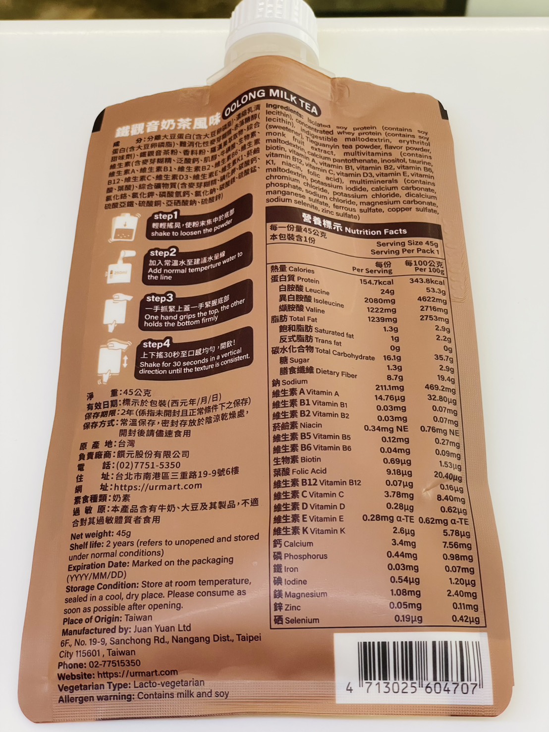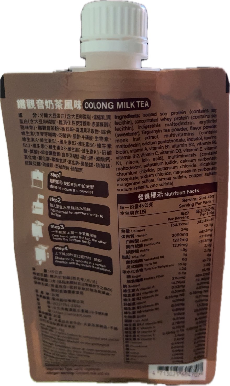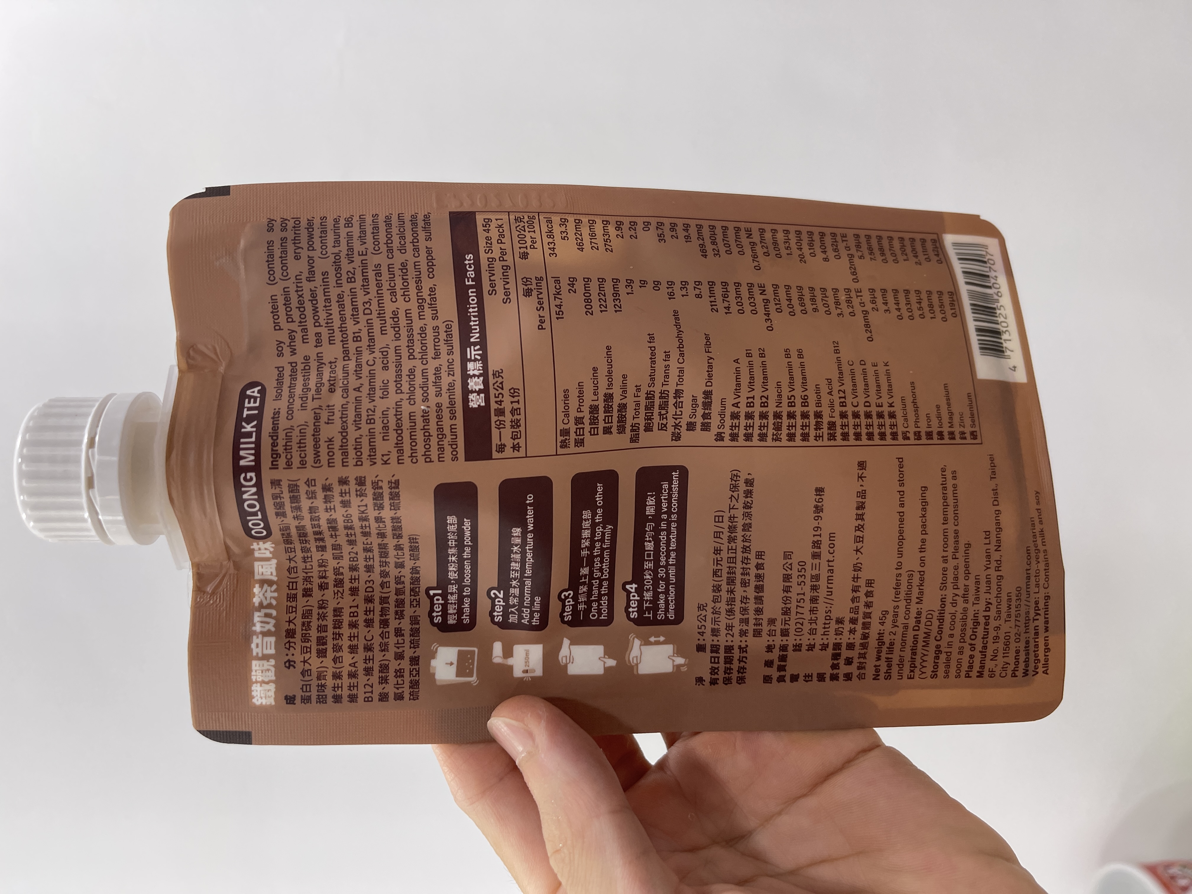 回列表 台灣Tryall 蛋白隨搖飲 鐵觀音奶茶風味 茶香濃郁,蛋白滿分!顛覆你對高蛋白的想像 所需等級 一般會員以上 所需學分 50 體驗份數 15 關注人數 1194 申請人數 200 申請截止 品牌業者:TRYALL 負責廠商 饌元股份有限公司 廠商地址 台北市南港區三重路19-9號B棟6樓 產地 台灣 試用產品規格 45g 食品業者登錄字號 A-154162311-00000-1 投保產品責任險字號 130014AKP0000965 心得分享 商品介紹 商品成分 使用方法 注意事項 體驗名單 9.0 台灣Tryall 蛋白隨搖飲 鐵觀音奶茶風味 飽足感適中 9.1 飲用便利性 9.7 甜度剛好 8.5 鐵觀音奶茶茶香 9.0 建議推薦 8.8 心得分享 12則 郭素君 金食達人 42歲 高雄市 2025/10/10 對台灣Tryall 蛋白隨搖飲 鐵觀音奶茶風味留下評價 10 對於一位奶茶控的一打二媽媽,奶茶無疑是最好的精神糧食。但考量我已漸漸邁入中年的年紀,實在不應該攝取太多的糖份,可是…喝「無糖」奶茶實在是讓人開心不起來啊。這時飲控期的神隊友TRYALL Shake!蛋白隨搖飲真的是我的好夥伴,每份含有24g的蛋白質及8.7g膳食纖維,最重要的是,熱量僅有155大卡,就算每日喝也不會感到罪惡。像平日有在固定上團課的我,運動前或後30分鐘喝還能有效補充蛋白質。輕輕的一包,不僅攜帶方便,充泡也很容易哦,直接加入250~300CC的常溫水後搖勻即可飲用。 顏瑋吟 金食達人 38歲 新北市 2025/10/14 對台灣Tryall 蛋白隨搖飲 鐵觀音奶茶風味留下評價 10 這款蛋白隨搖飲的包裝真的很特別,沖泡很簡單、攜帶很方便、飲用上也可以隨時打開或蓋起,不用擔心因為通勤而要馬上喝光光,可以依照自己的步伐飲用,這點真的蠻不錯的!我自己是用常溫水進行沖泡,搖晃均勻之後冰到冰箱,隔天早上當早餐飲用,超級方便!這款鐵觀音蛋白飲的甜度,我認為大約是手搖飲的3分糖,不會太甜,也不會到苦澀難飲,它的茶香很濃郁,當飲料喝也是一種選擇,毫無違和感!而且它的蛋白粉的質地很細緻,不會覺得很大粒、很粗糙、很難吞嚥,喝完一杯是真的有飽足感的那種,很值得推薦給大家! 李庭 金食達人 33歲 臺北市 2025/10/14 對台灣Tryall 蛋白隨搖飲 鐵觀音奶茶風味留下評價 10 這次收到【台灣Tryall 蛋白隨搖飲 鐵觀音奶茶風味】讓我大開眼界!!首先包裝設計非常方便攜帶,不同於市面上要自己帶粉帶杯子...隨時隨地都能輕鬆享用,對於忙碌的生活節奏來說非常實用。口感上也很特別,以往我喝過的高蛋白產品常常有種「蛋腥味」或「粉味」,讓人不太舒服,甚至有點人工香精的感覺。但這款鐵觀音奶茶風味完全沒有那種怪味,茶香與奶茶的味道融合得恰到好處,喝起來順口自然。這款蛋白隨搖飲不僅補充蛋白質方便,也兼顧了口感,最重要的是一點都不無聊而且還不會有罪惡xd 是值得大大推薦的健康飲品!! CHIAO 鑽石達人 37歲 臺中市 2025/10/17 對台灣Tryall 蛋白隨搖飲 鐵觀音奶茶風味留下評價 10 感謝收到 Tryall 台灣 的蛋白隨搖飲——鐵觀音奶茶風味!包裝設計相當特別,蛋白粉裝在像能量果凍的袋中,上方有旋轉蓋口,只要加入常溫水、豆漿或牛奶後搖一搖,就能直接飲用,既方便又衛生。鐵觀音茶香濃郁,帶著淡淡奶香,不會太甜,也沒有明顯的蛋白粉味,整體順口好喝。搭配豆漿更有厚實風味,比一般奶茶多了一點層次。最喜歡它免洗杯、免攪拌的設計,外出或運動後超方便。整體味道與體驗都超出預期,是會想回購的便利型蛋白飲! 陳廷宥 金食達人 25歲 基隆市 2025/10/30 對台灣Tryall 蛋白隨搖飲 鐵觀音奶茶風味留下評價 10 此產品方便攜帶,30秒就能調製完成,每份含有約24克的蛋白質與膳食纖維,糖分含量較低。口味評論珍珠奶茶口味:: 甜味和香氣足夠,喝起來很像手搖杯,但沒有珍珠。方便性與營養方便性:: 非常方便,只需加水搖勻即可飲用,無需自備杯子。蛋白質含量:: 每份含有高達約24克的蛋白質,滿足每日蛋白質需求量的一部分。膳食纖維:: 含有膳食纖維,有助於增加飽足感。糖分:: 一份僅含約1.3克的糖,適合減脂期間飲用。總結適合對象:: 喜歡喝奶茶、想補充蛋白質但又在減脂中的人。優點:: 口感佳、方便攜帶、蛋白質與膳食纖維含量高、糖分低。 楊翾 金食達人 40歲 桃園市 2025/10/16 對台灣Tryall 蛋白隨搖飲 鐵觀音奶茶風味留下評價 9 這次試喝"台灣Tryall蛋白隨搖飲—鐵觀音奶茶風味",打開包裝就能聞到淡淡的鐵觀音茶香,喝起來茶香濃郁,奶味順口,不過口味偏甜了一些,如果能再減糖一點會更耐喝。值得一提的是,它的隨搖包裝設計非常貼心,不僅輕巧易攜,外出旅遊或運動時都能快速補充蛋白質。只要加水搖一搖,就能隨時享受茶香與營養的結合。若吸管口能設計成可拆卸式,或許整個瓶身還能重複利用,更符合環保概念。整體而言,這款蛋白隨搖飲兼具便利性與風味,是健身控與奶茶控都可以試試的選擇,之後也會嘗試其他口味! 楊祖安 鑽石達人 44歲 臺北市 2025/10/16 對台灣Tryall 蛋白隨搖飲 鐵觀音奶茶風味留下評價 9 這是一款讓人感到驚喜的即飲式蛋白飲,Tryall 蛋白隨搖飲鐵觀音奶茶風味,它成功地將傳統奶茶的風味與高蛋白飲品的營養需求結合在一起。從包裝設計上就給人一種便利和時尚感。軟袋包裝非常輕巧,無論是運動後、通勤中還是辦公室,都能隨時隨地補充。特別是袋上的沖泡步驟圖示非常清楚,即使是第一次使用也能輕鬆上手。根據指示加入常溫水搖勻即可,溶解度表現極佳,幾乎沒有結塊的現象,口