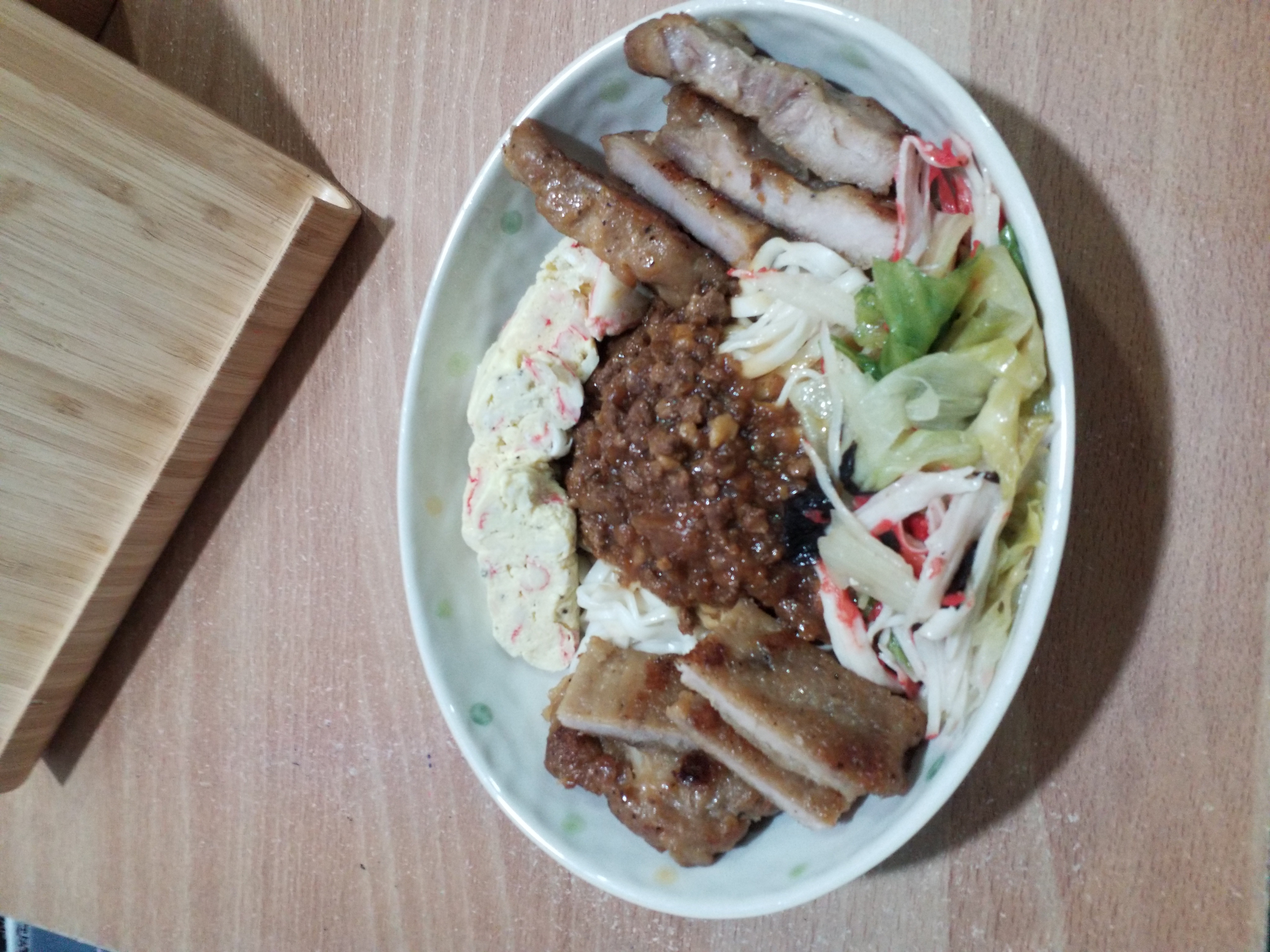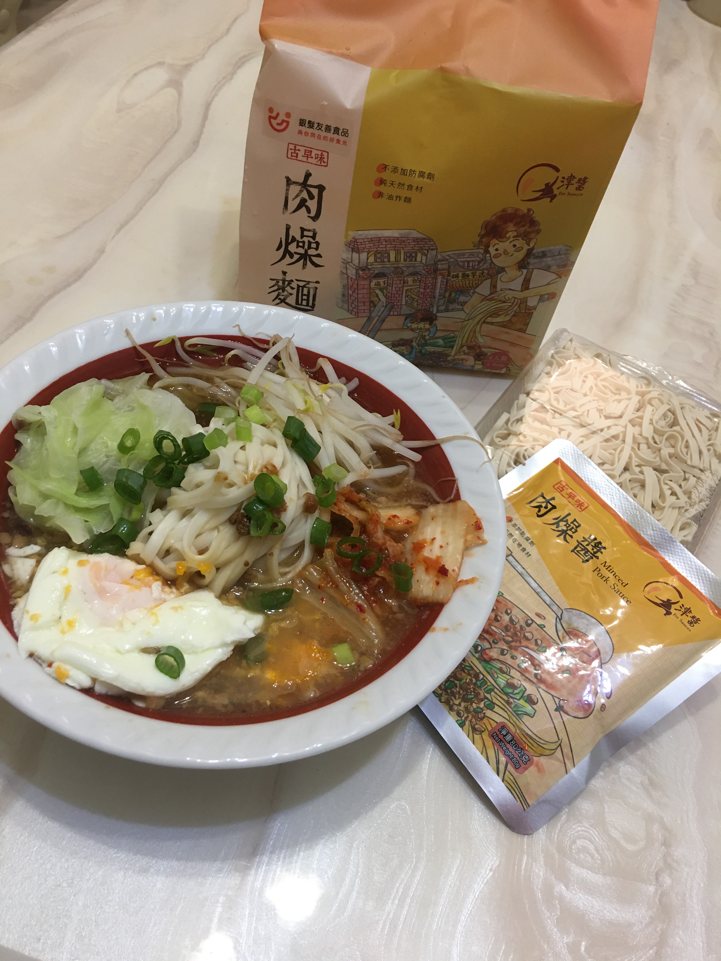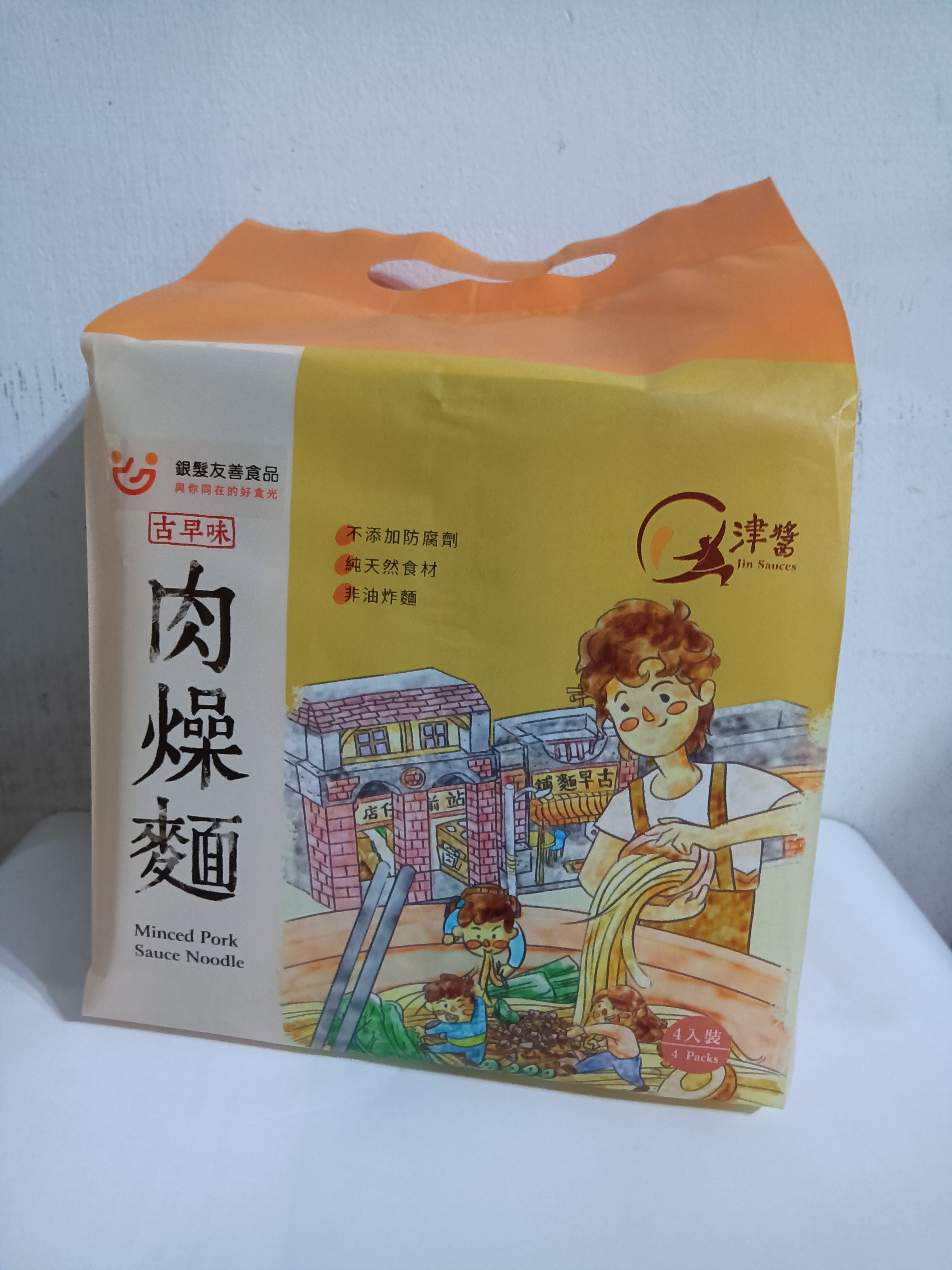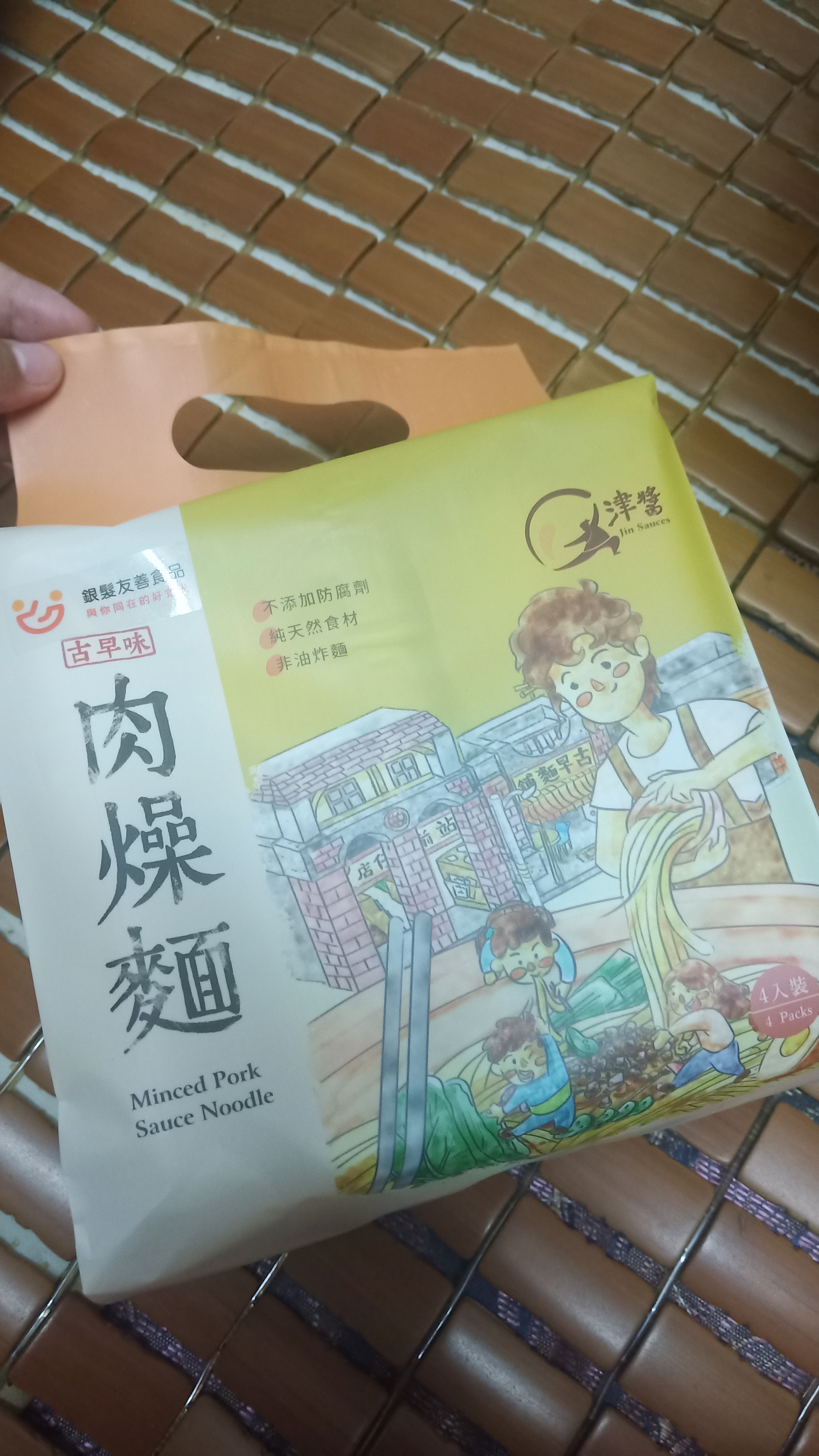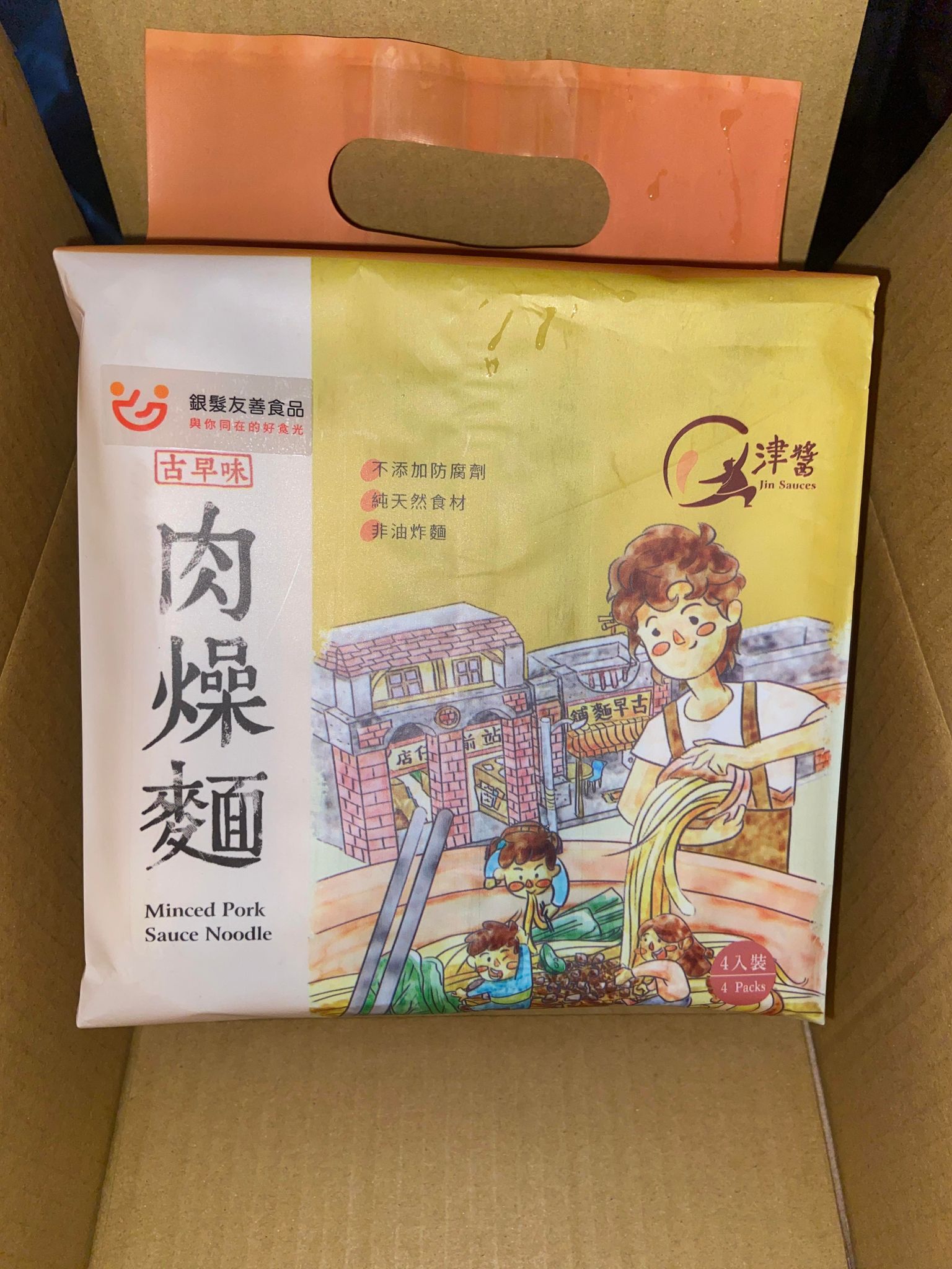 古早味肉燥料理包成份: 豬肉。水。醬油(水、蔗糖轉化液糖、非基因改造黃豆、小麥、食鹽、酒精、酵母粉)。油蔥酥(紅蔥頭、沙拉油)。大豆沙拉油。砂糖。 日曬麵條成份: 高筋麵粉。水。鹽。