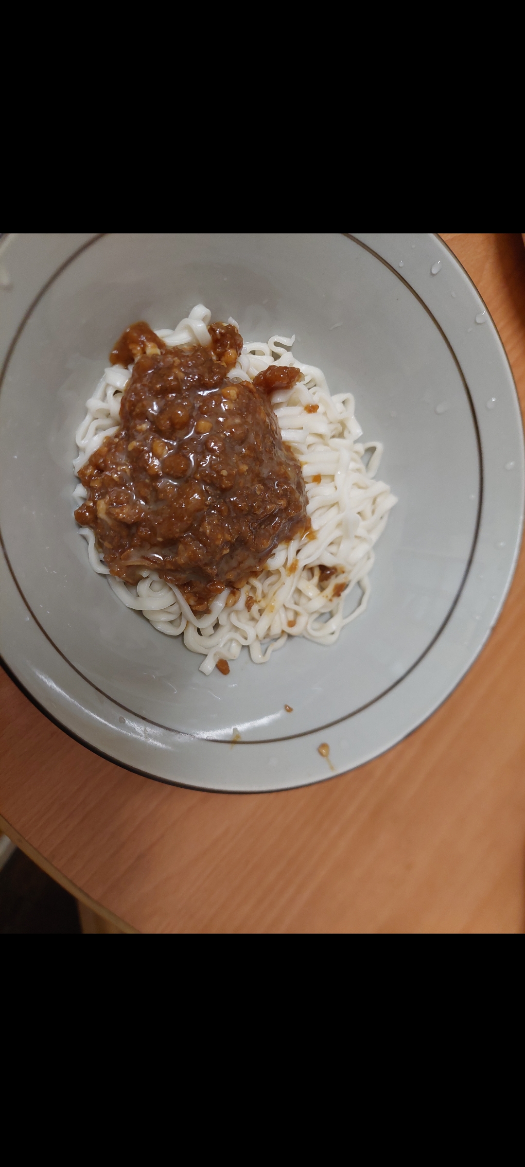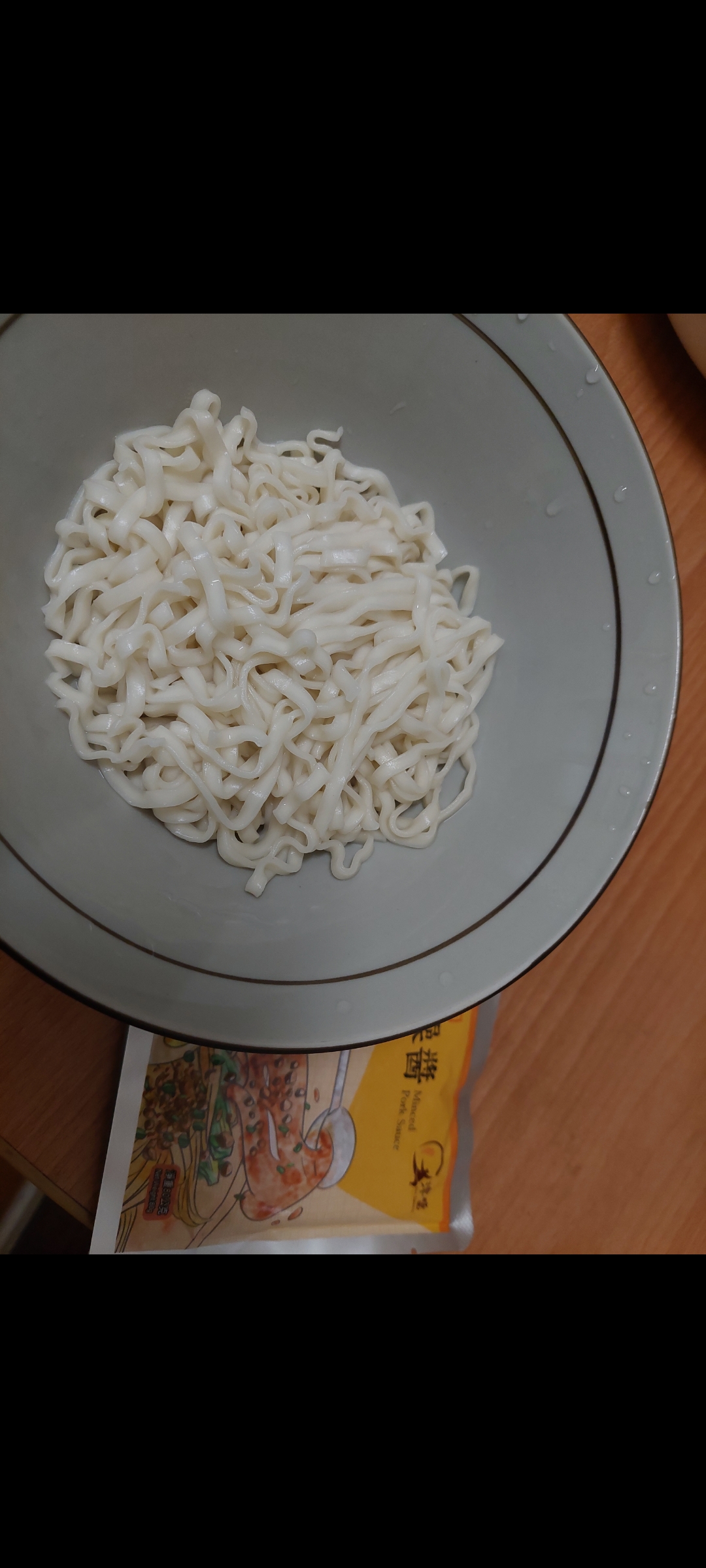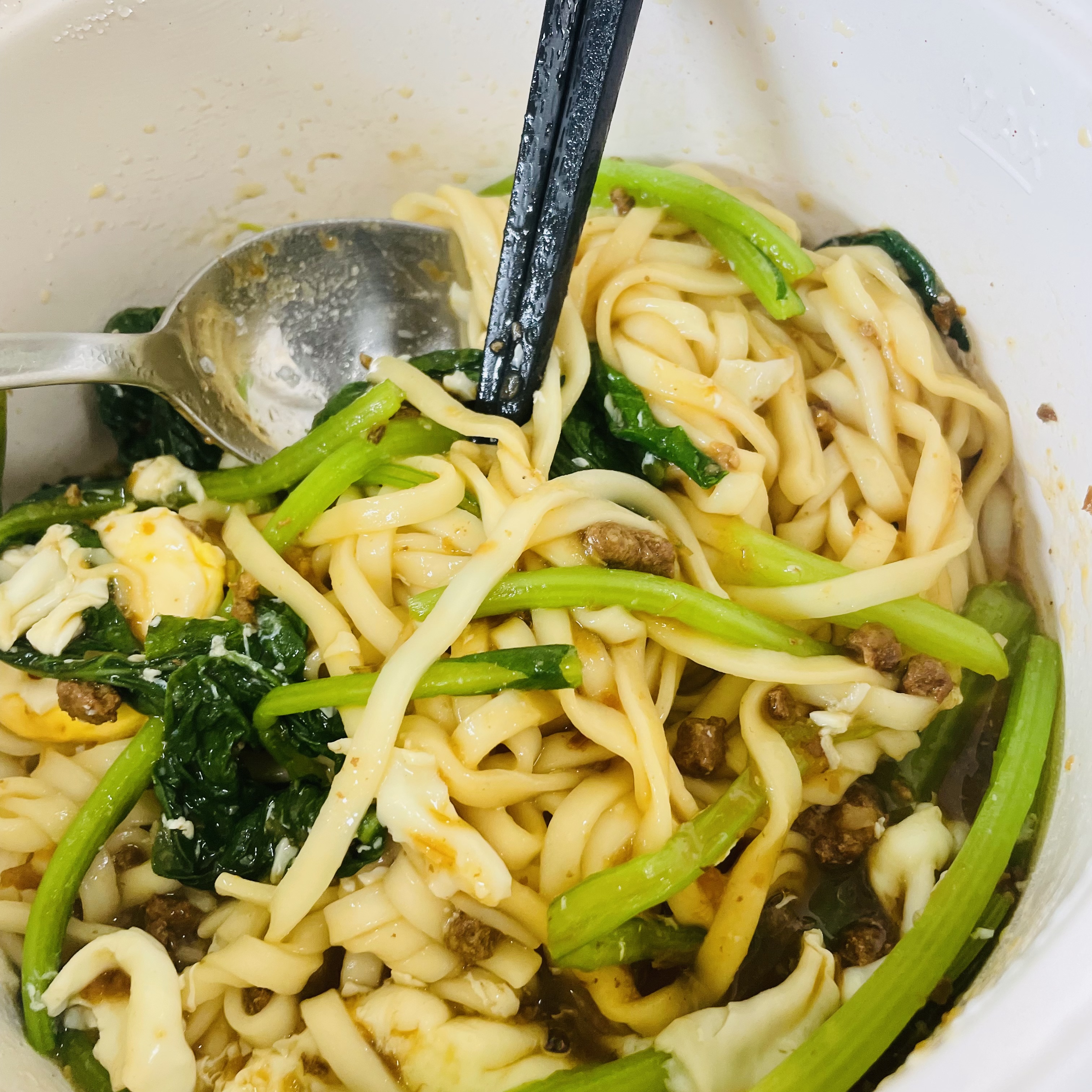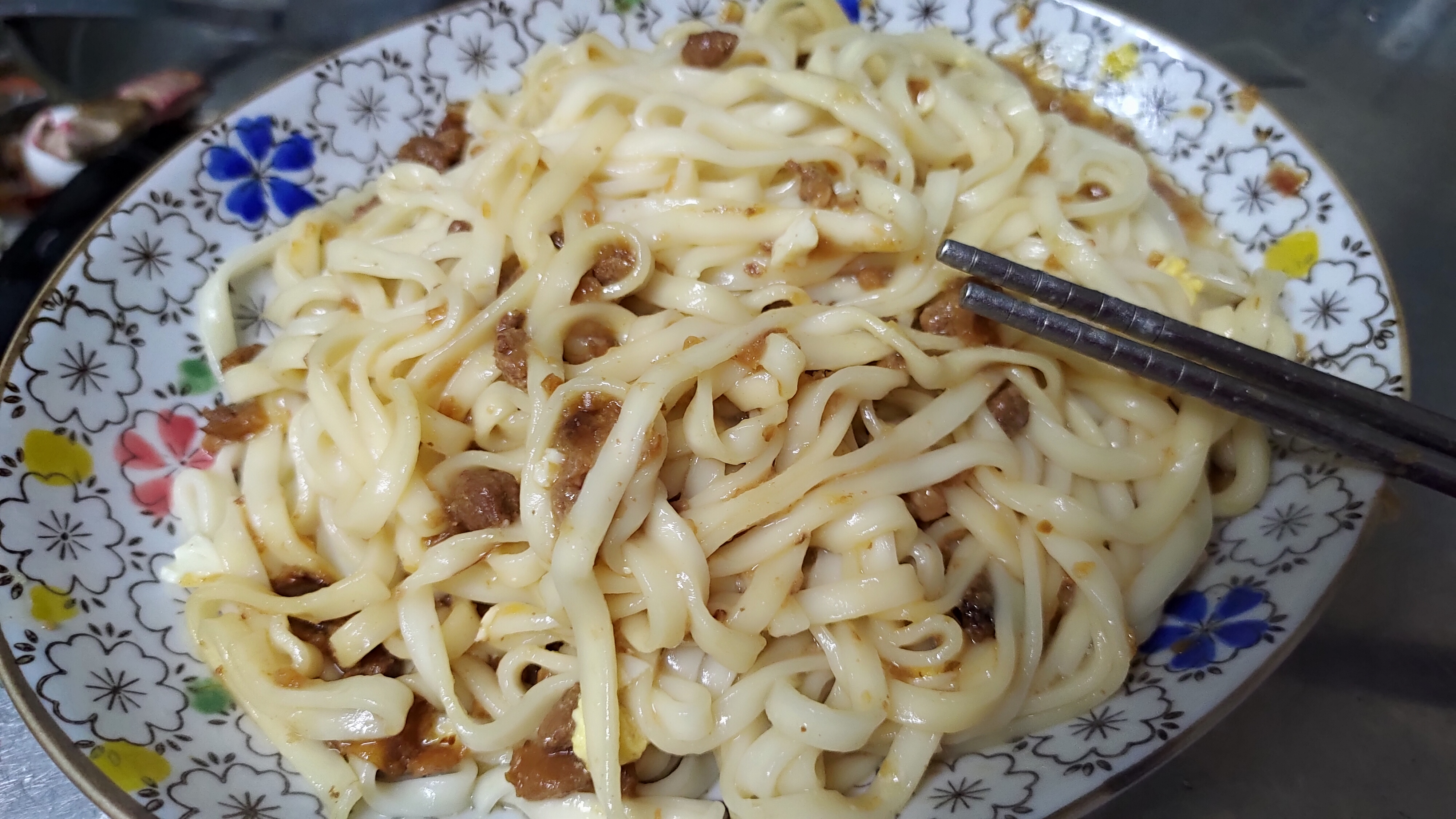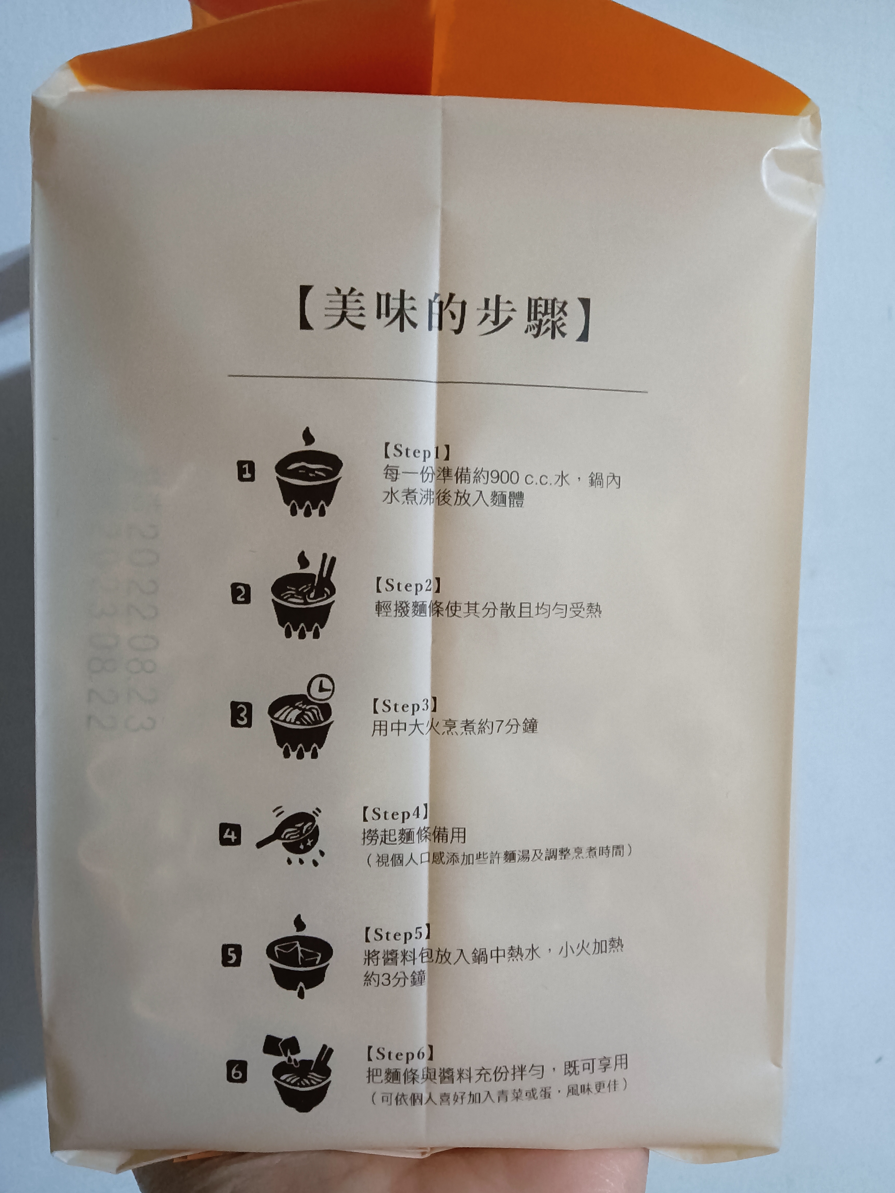 3.將肉燥包短暫浸泡在熱水中,完成後即可到入麵條中拌勻食用