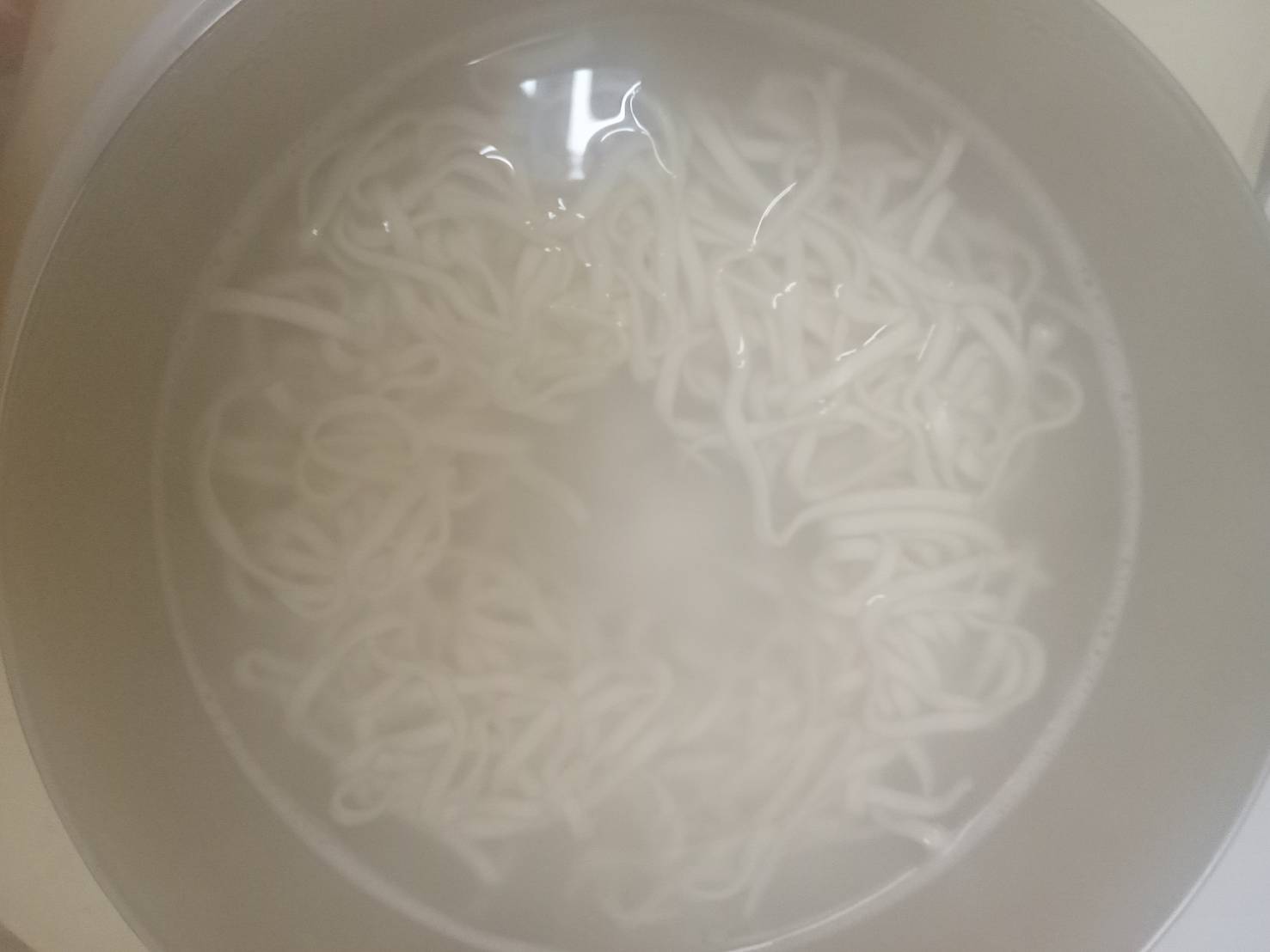 2.麵條放入沸水中約7分鐘後撈起(可依個人喜好調整烹煮時間)