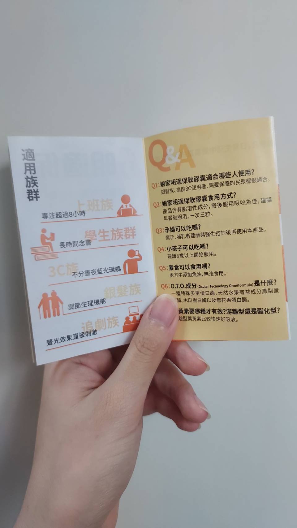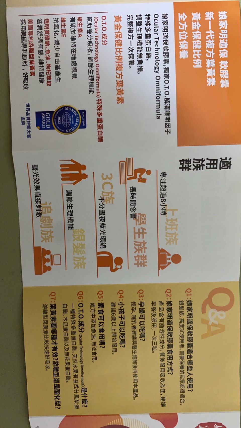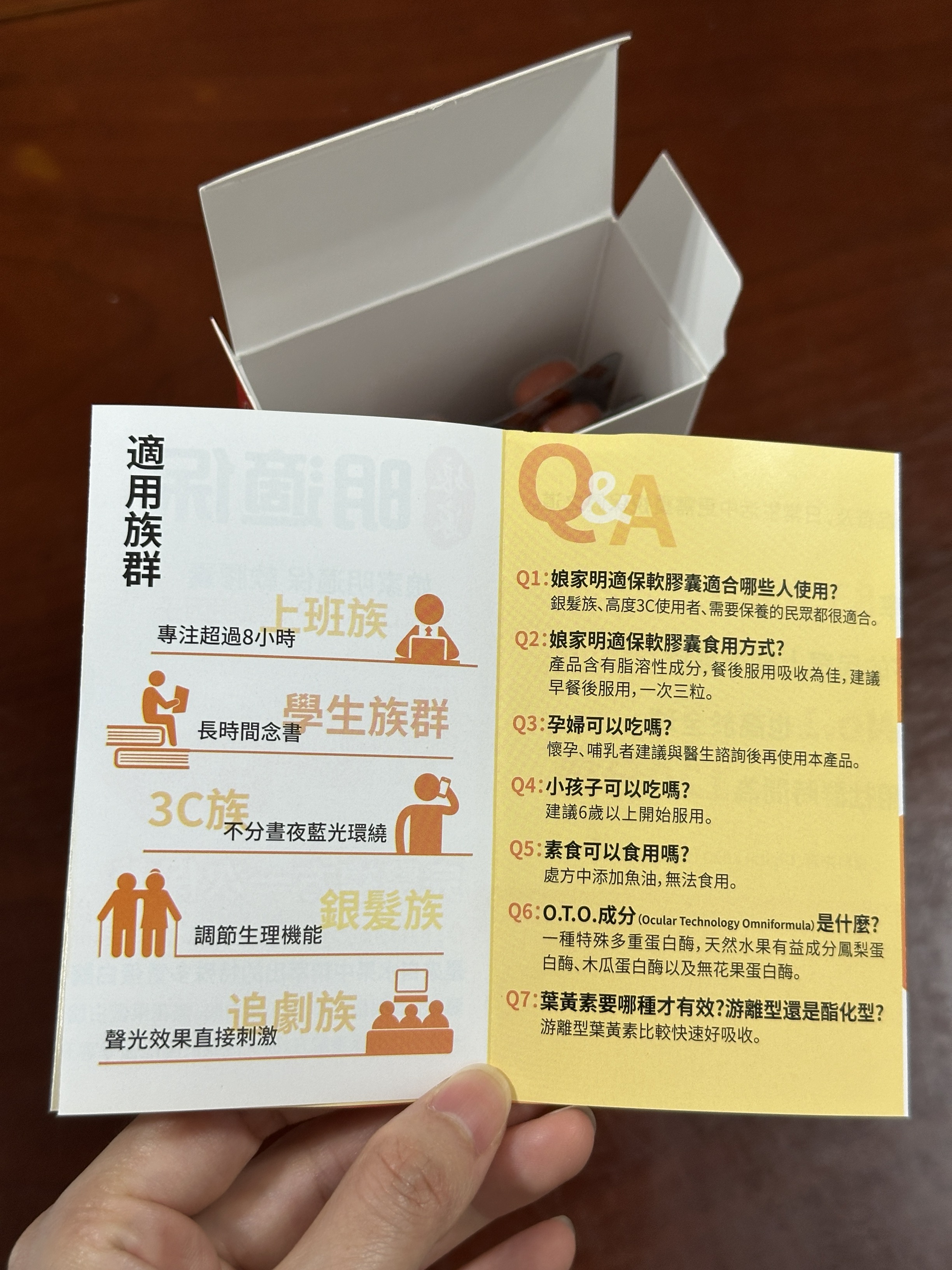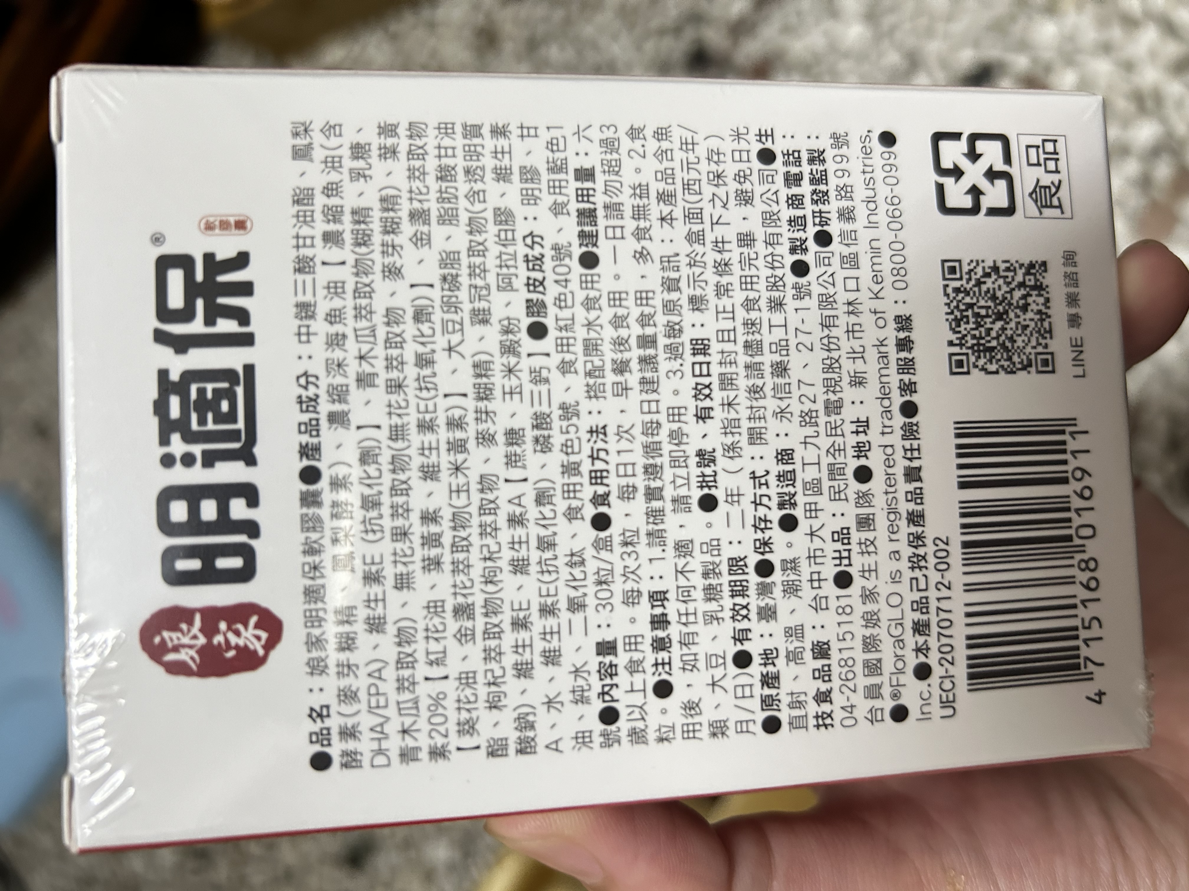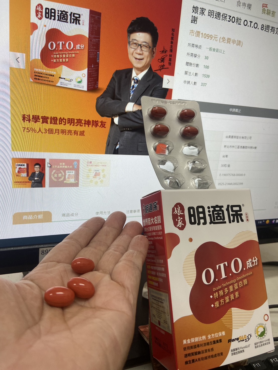 產品成分:中鏈三酸甘油酯、鳳梨酵素(麥芽糊精、鳳梨酵素)、濃縮深海魚油【濃縮魚油(含DHA/EPA)、維生素 E (抗氧化劑)】、青木瓜萃取物(糊精、乳糖、青木瓜萃取物)、無花果萃取物(無花果萃取物、麥芽糊精)、葉黃素20%【紅花油、葉黃素、維生素E(抗氧化劑)】、金盞花萃取物【葵花油、金盞花萃取物(玉米黃素)】、大豆卵磷脂、脂肪酸甘油酯 、枸杞萃取物(枸杞萃取物、麥芽糊精)、雞冠萃取物(含玻尿酸)、維生素E、維生素A【蔗糖、玉米澱粉、阿拉伯膠、維生素A、水、維生素E(抗氧化劑)、磷酸三鈣】