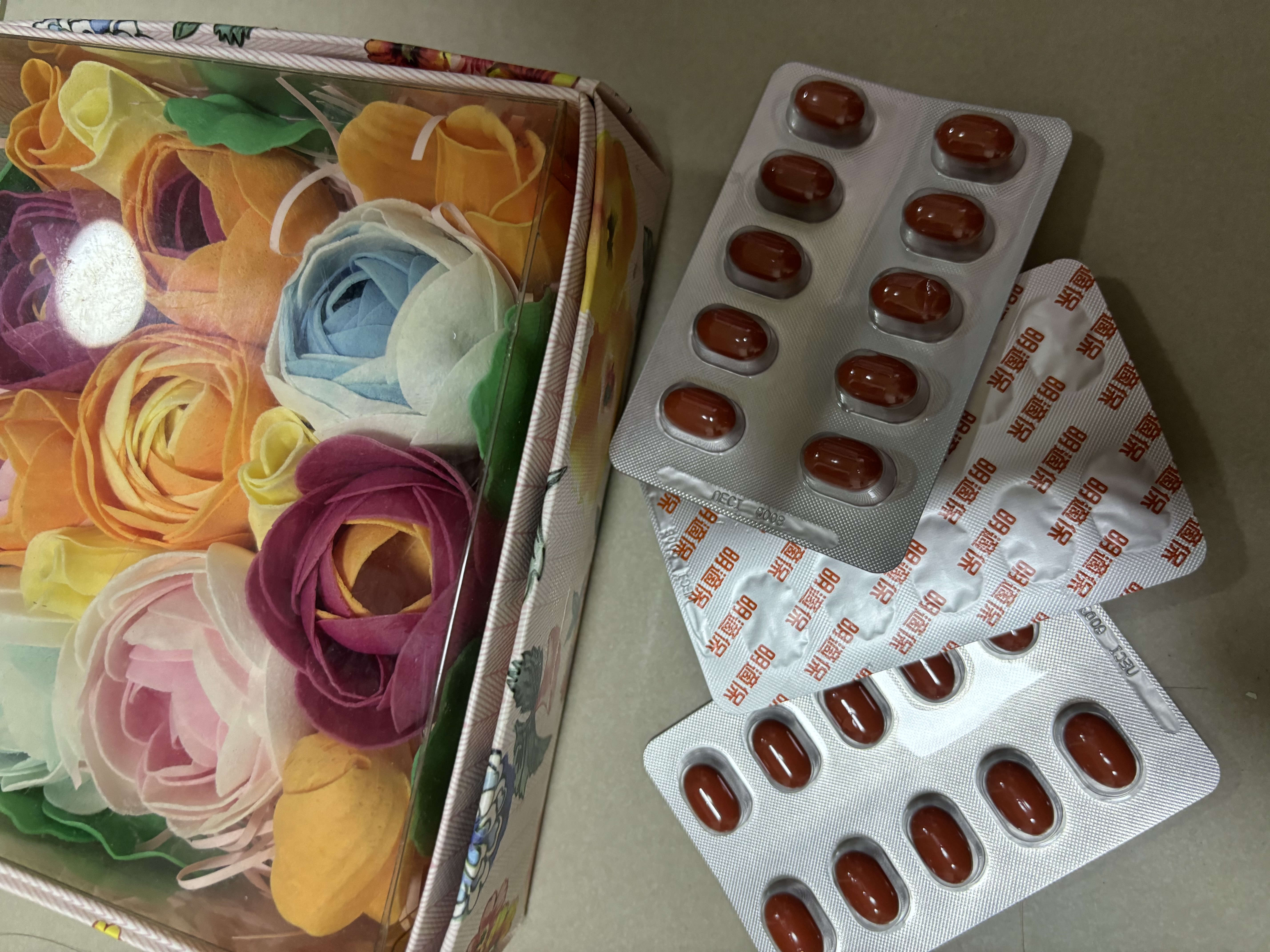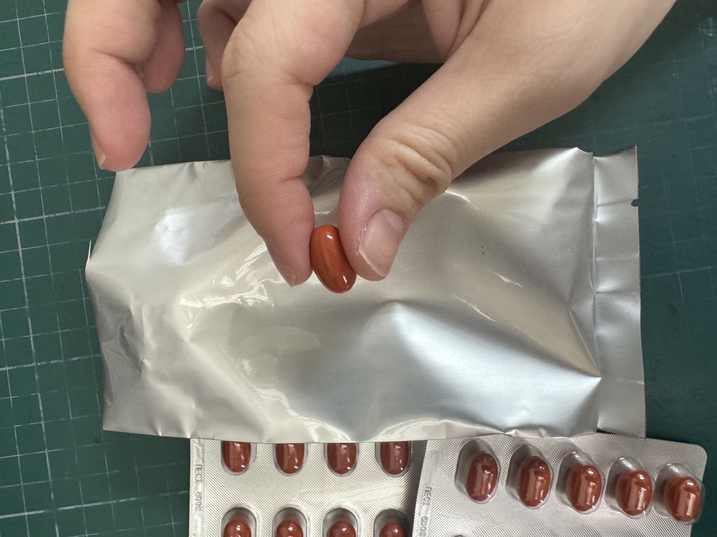 膠皮成分:明膠、甘油、純水、二氧化鈦、食用黃色5號、食用紅色40號、食用藍色1號