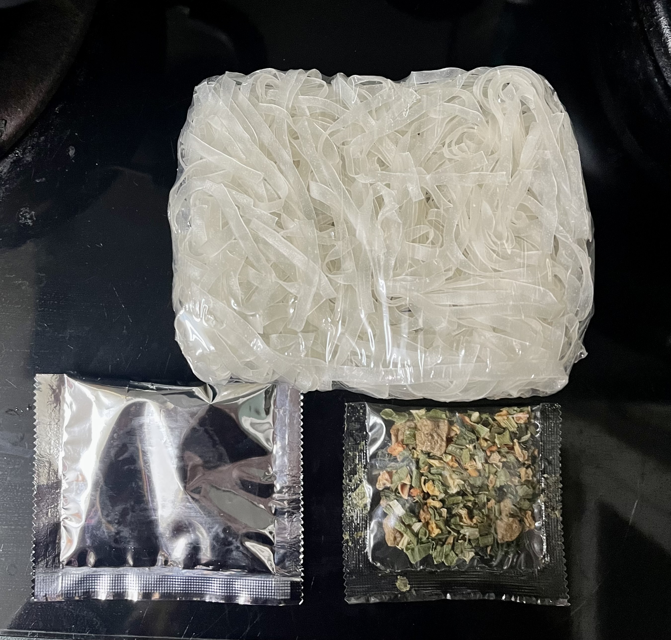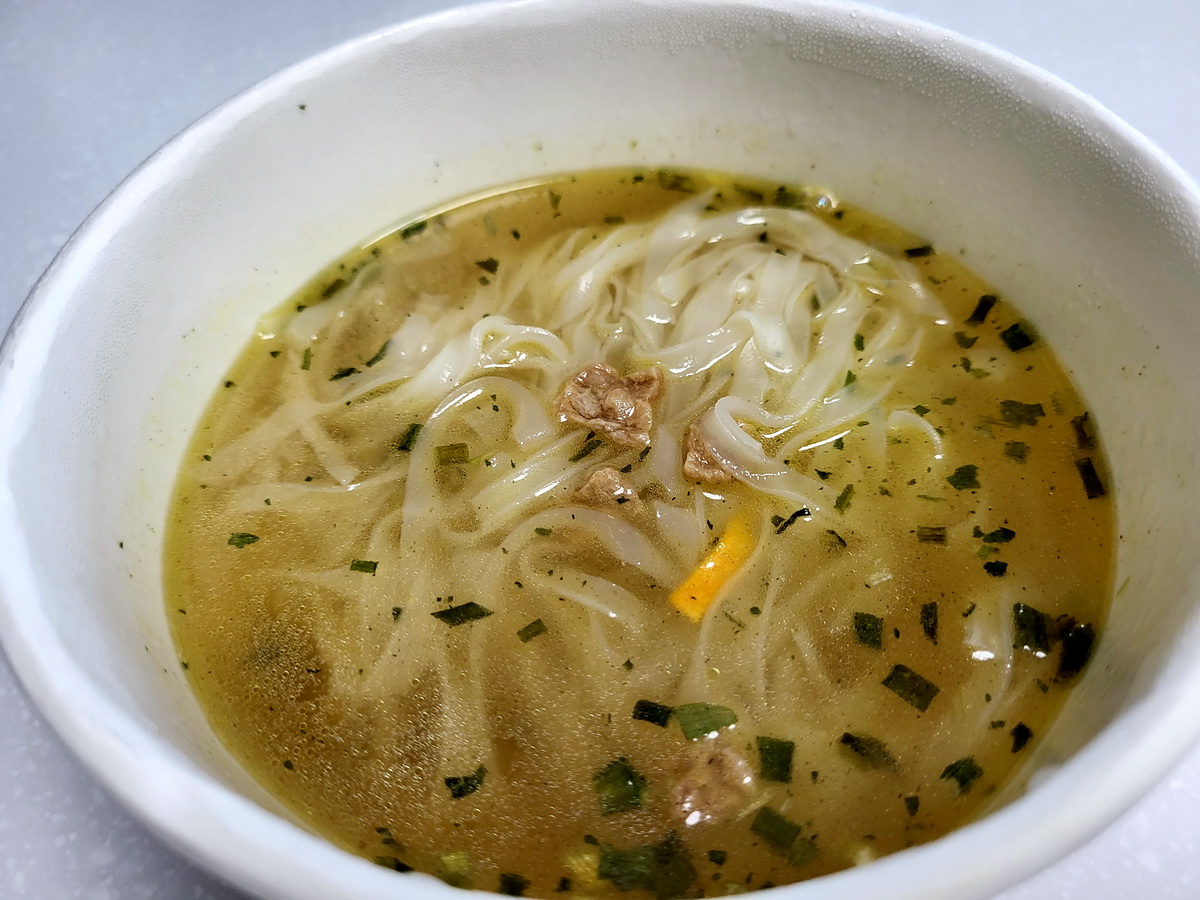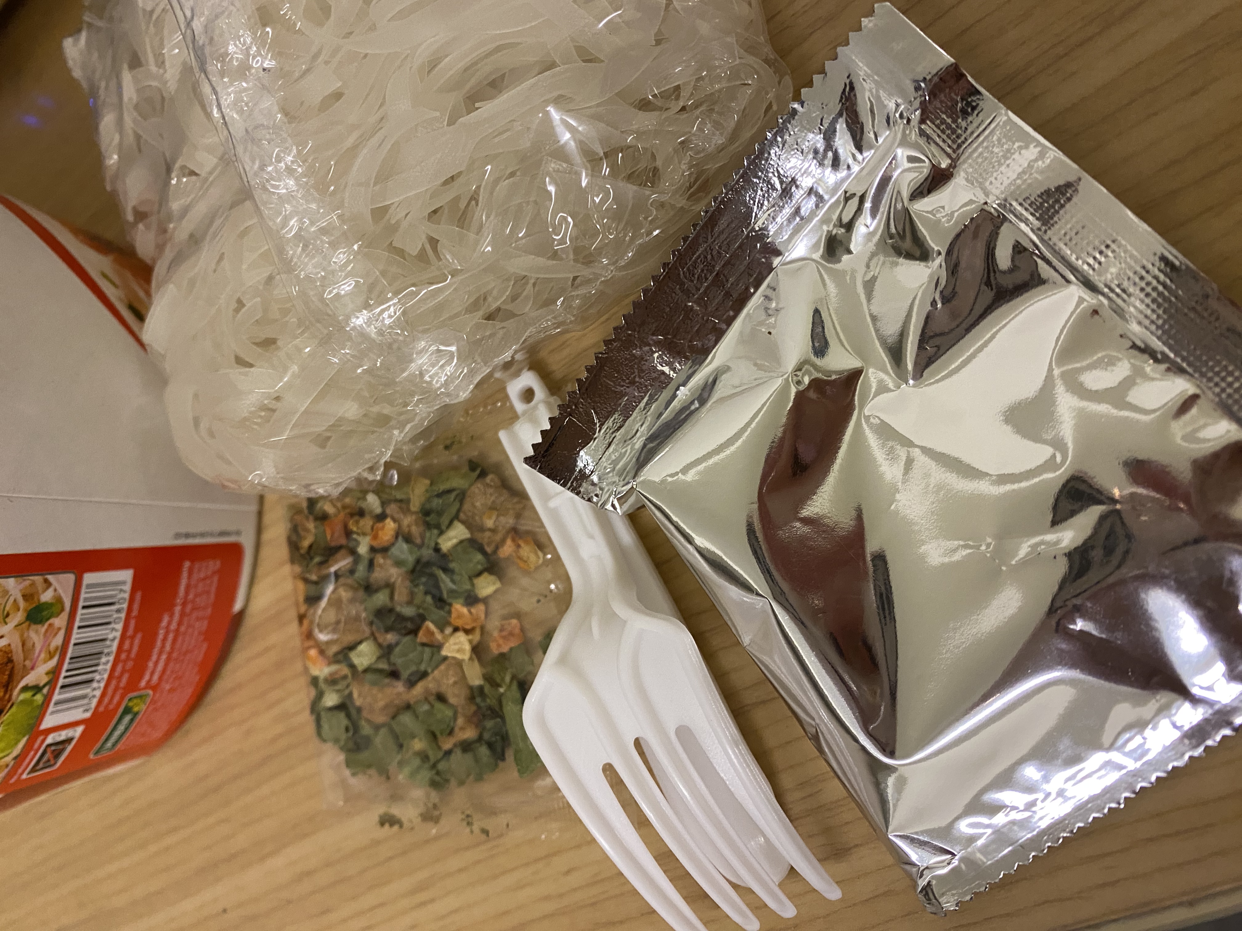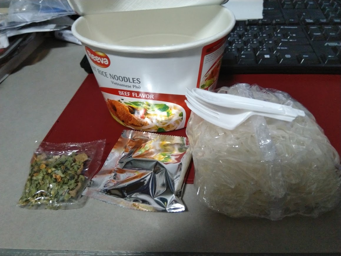 河粉(米粉87.7%、木薯澱粉、食鹽)、湯包(植物油-橄欖油、食鹽、白砂糖、辣椒、黑胡椒、洋蔥、蒜、薑、五香粉肉桂、八角、丁香、荳蔻、香菜籽、牛肉粉(牛肉萃取物)、味精、5'-鳥嘌呤核苷磷酸二鈉、 5'-次黃嘌呤核苷磷酸二鈉、防腐劑(苯甲酸鈉)、辣味包(辣椒、蒜、白砂糖、食鹽、防腐劑已二烯酸鉀, 偏亞硫酸氫鈉)、乾燥蔬菜包(脫水洋蔥、脫水香菜、脫水胡蘿蔔、麩質)