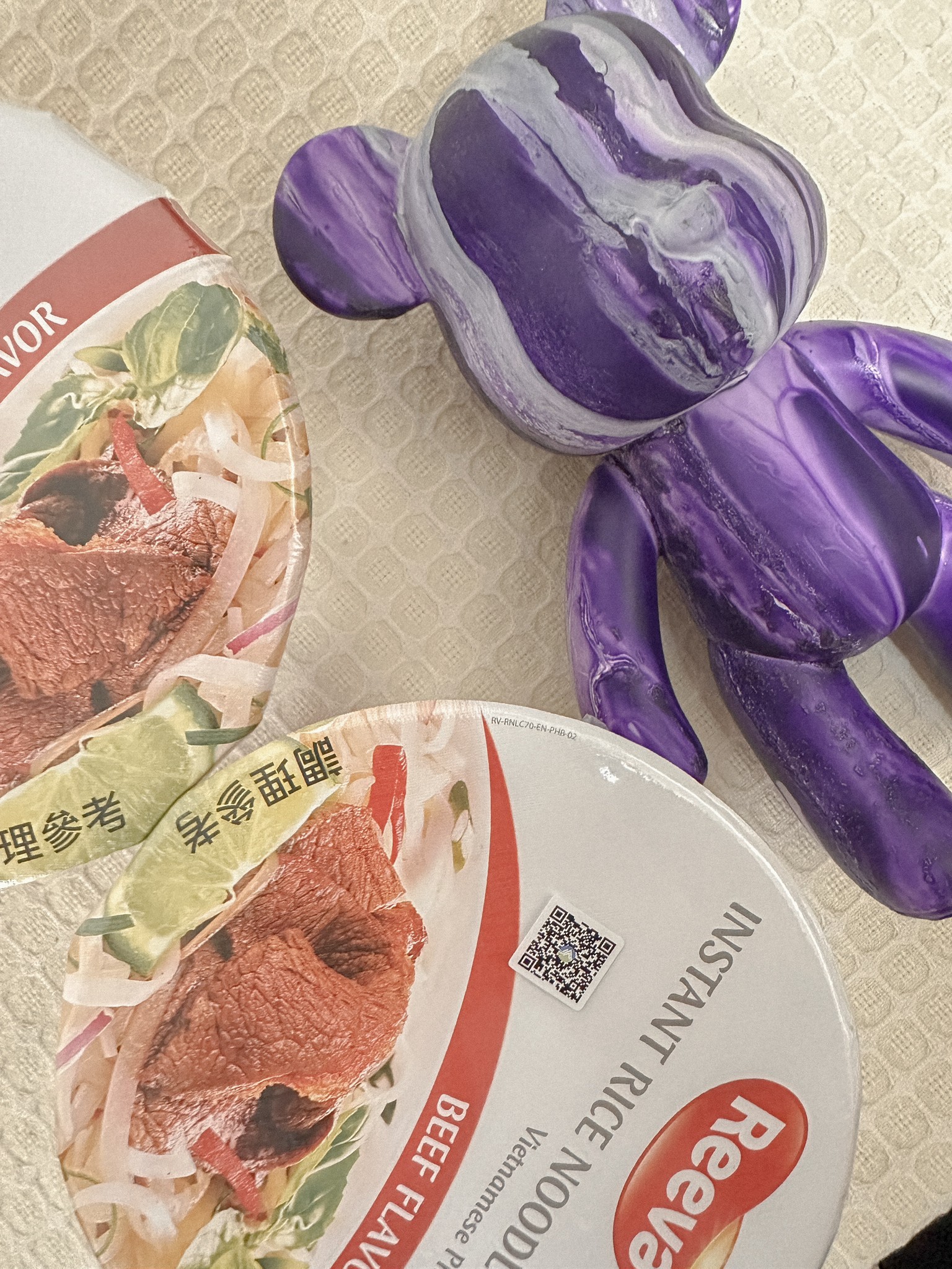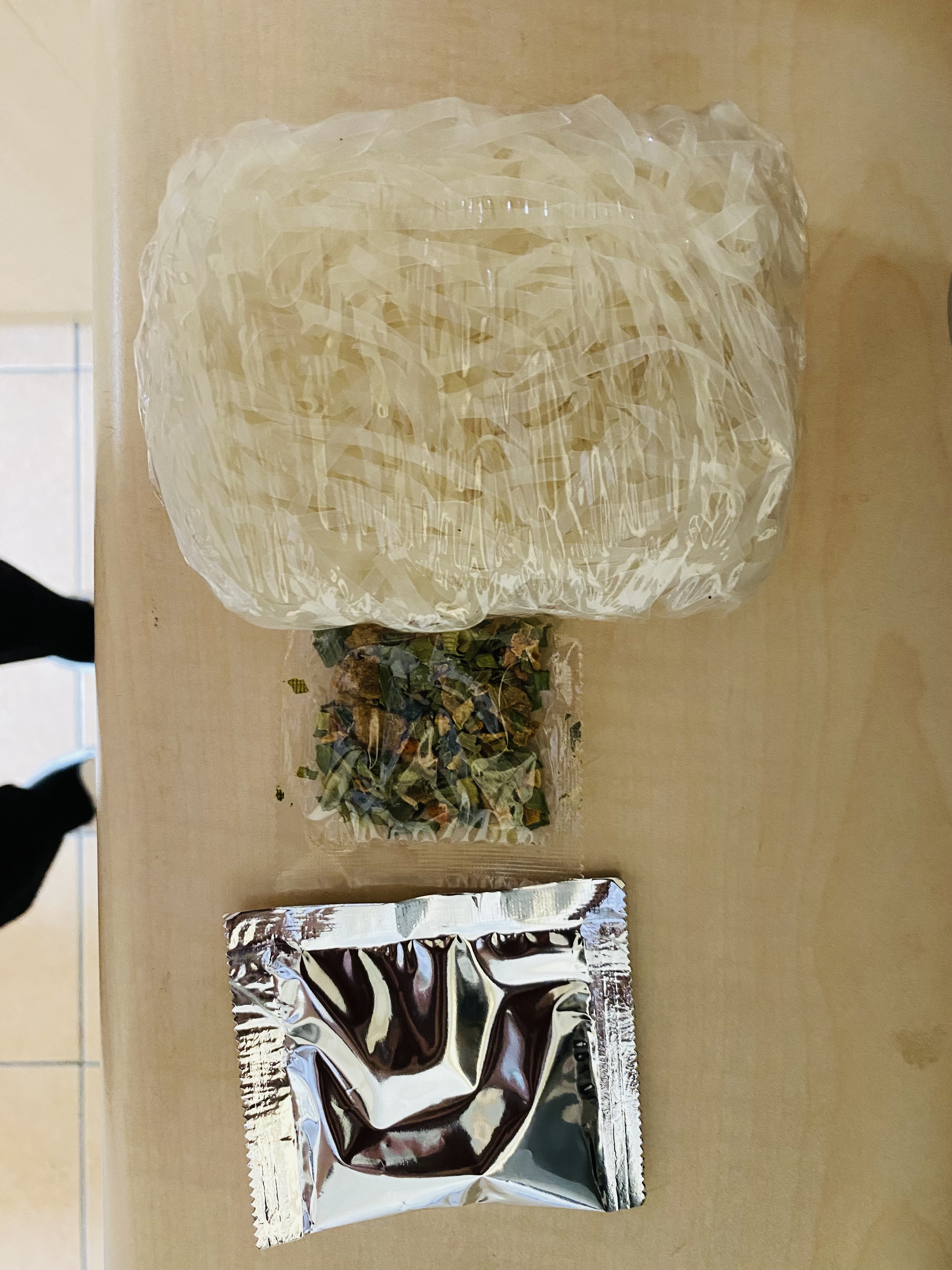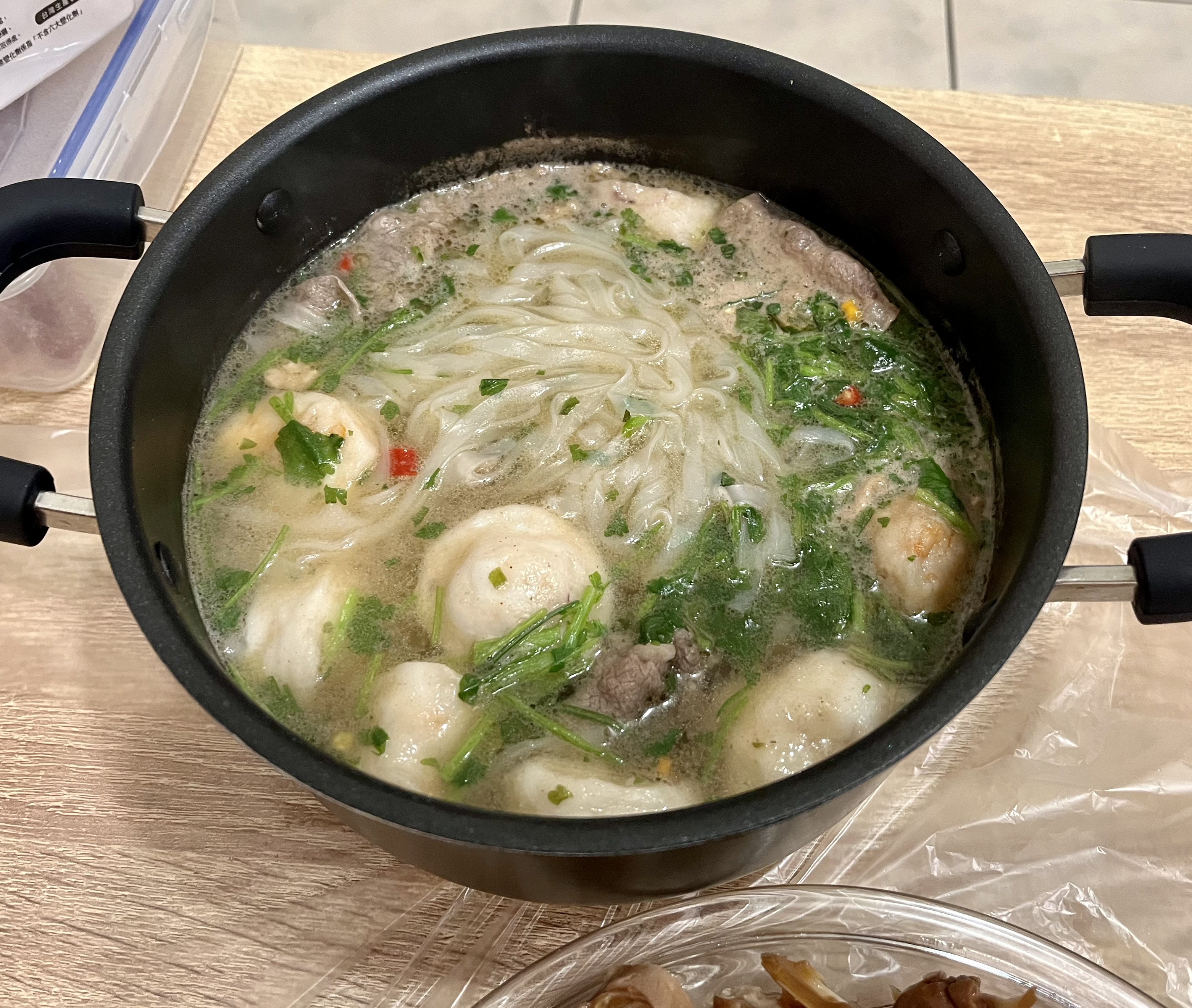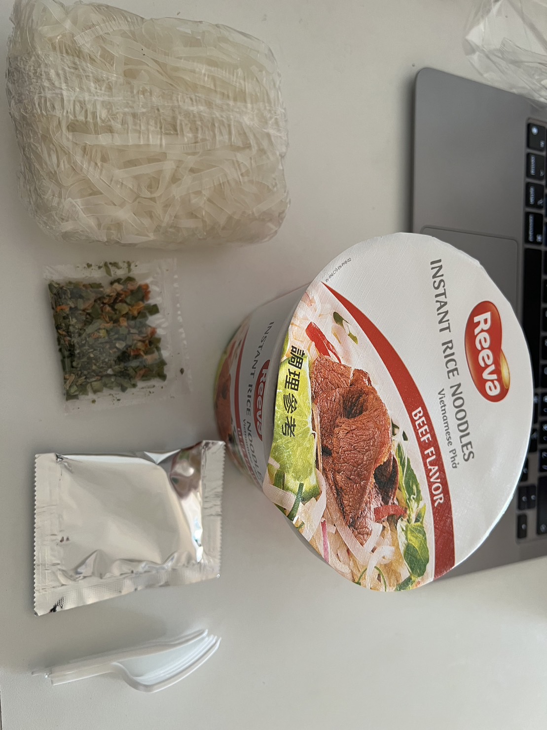 河粉(米粉87.7%、木薯澱粉、食鹽)、湯包(植物油-橄欖油、食鹽、白砂糖、辣椒、黑胡椒、洋蔥、蒜、薑、五香粉肉桂、八角、丁香、荳蔻、香菜籽、牛肉粉(牛肉萃取物)、味精、5'-鳥嘌呤核苷磷酸二鈉、 5'-次黃嘌呤核苷磷酸二鈉、防腐劑(苯甲酸鈉)、辣味包(辣椒、蒜、白砂糖、食鹽、防腐劑已二烯酸鉀, 偏亞硫酸氫鈉)、乾燥蔬菜包(脫水洋蔥、脫水香菜、脫水胡蘿蔔、麩質)