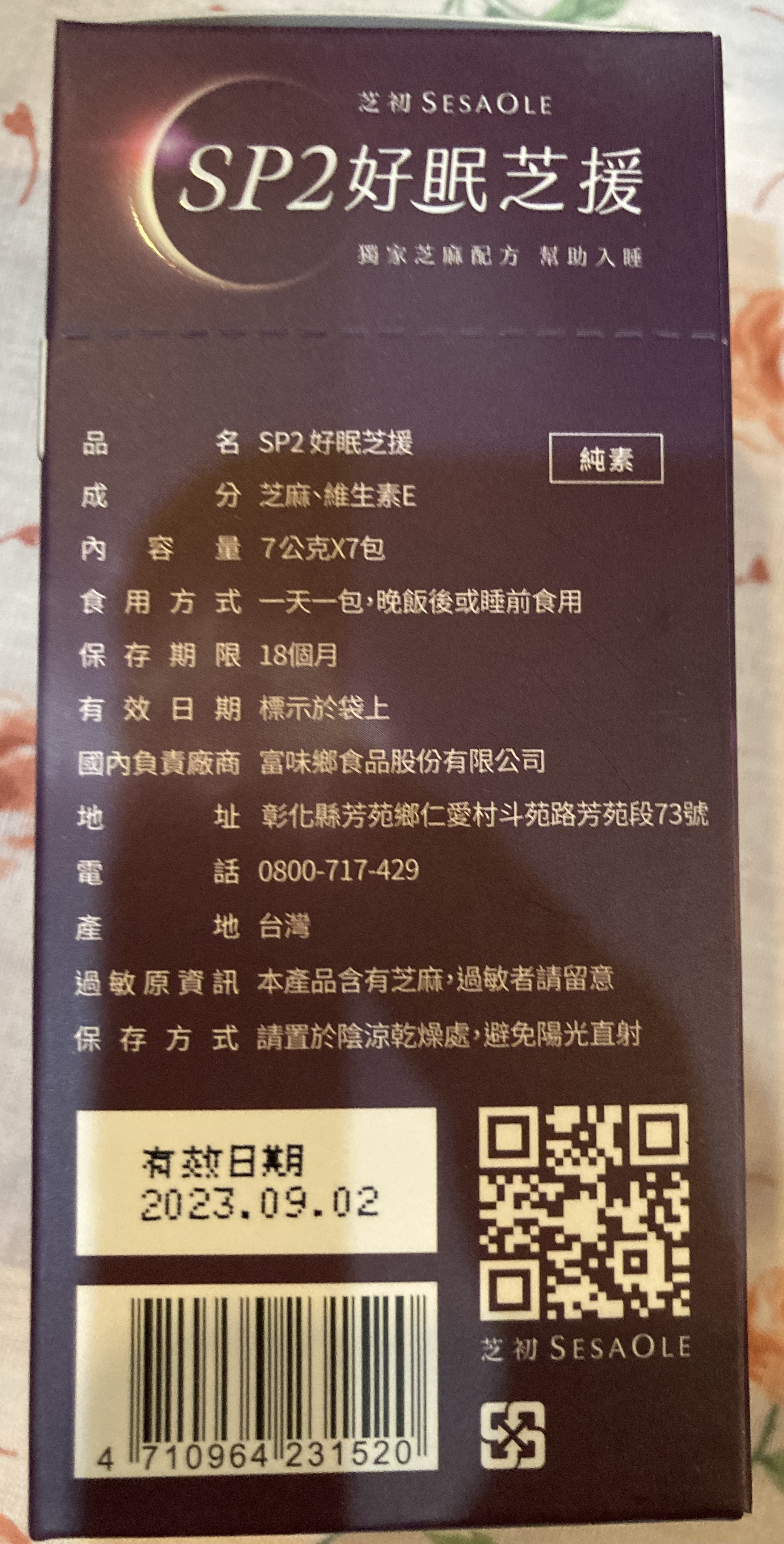 芝初 SP2好眠芝援 天然芝麻素 支援你的睡眠 素食乳糖不耐者可食