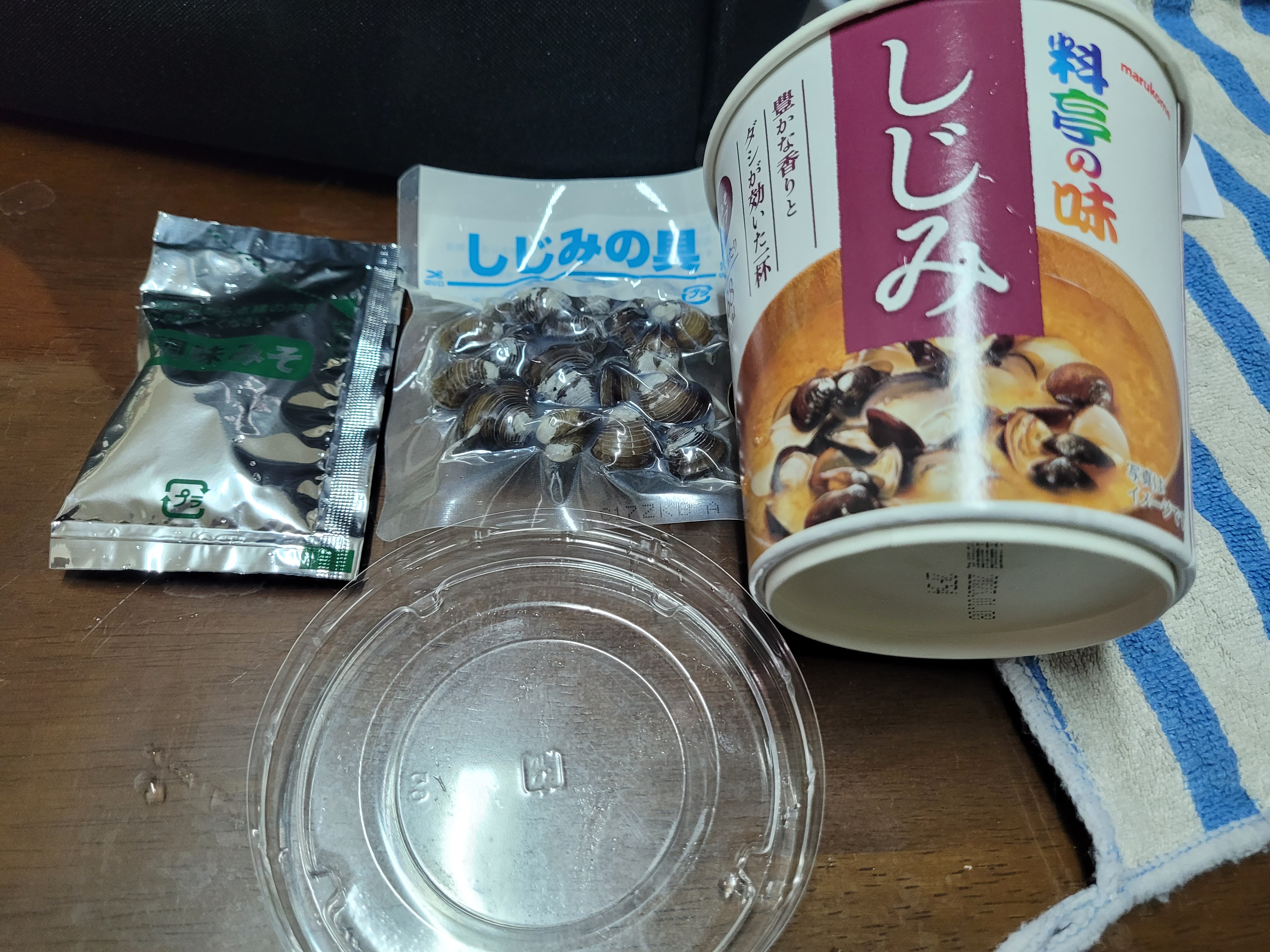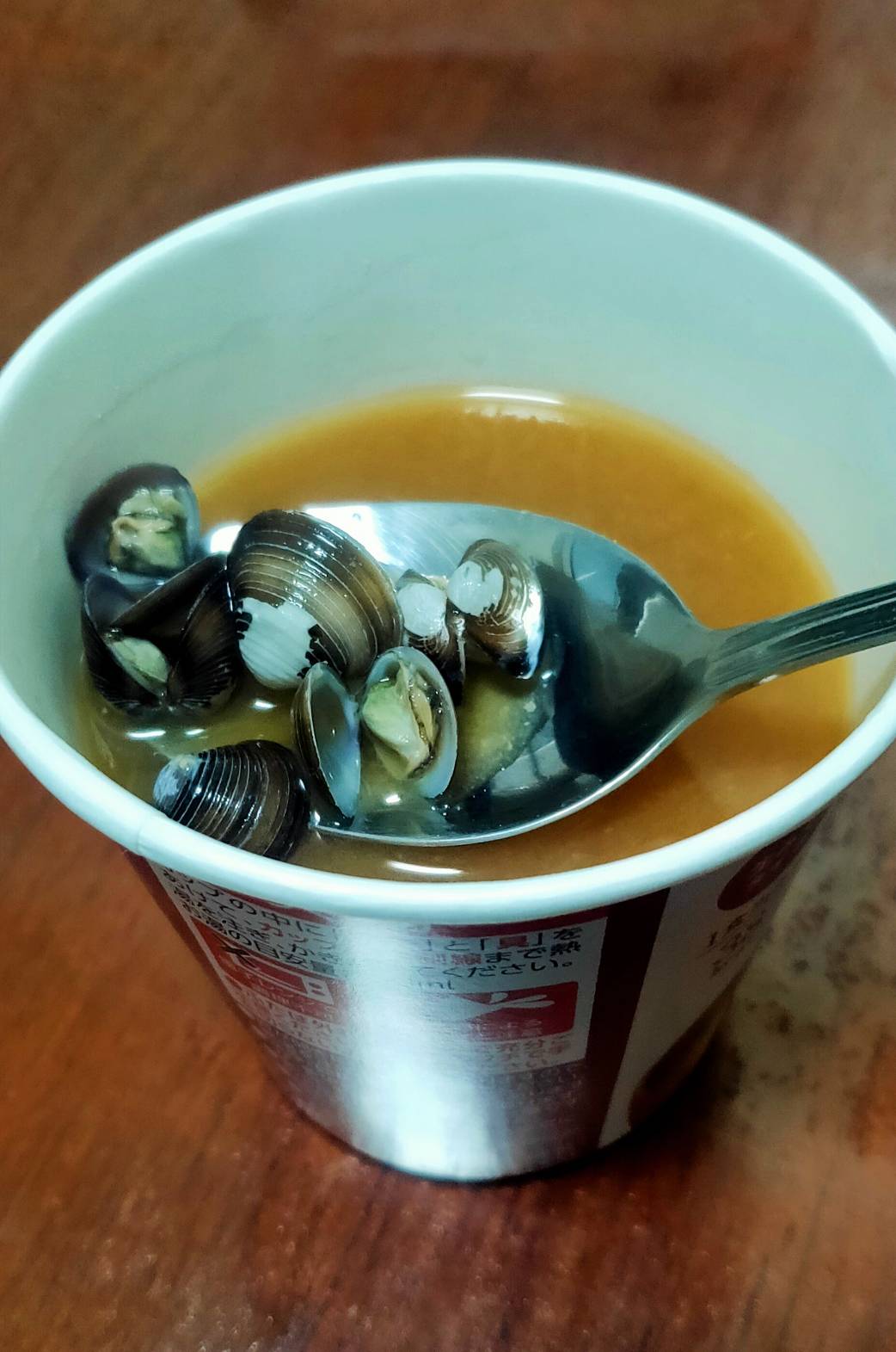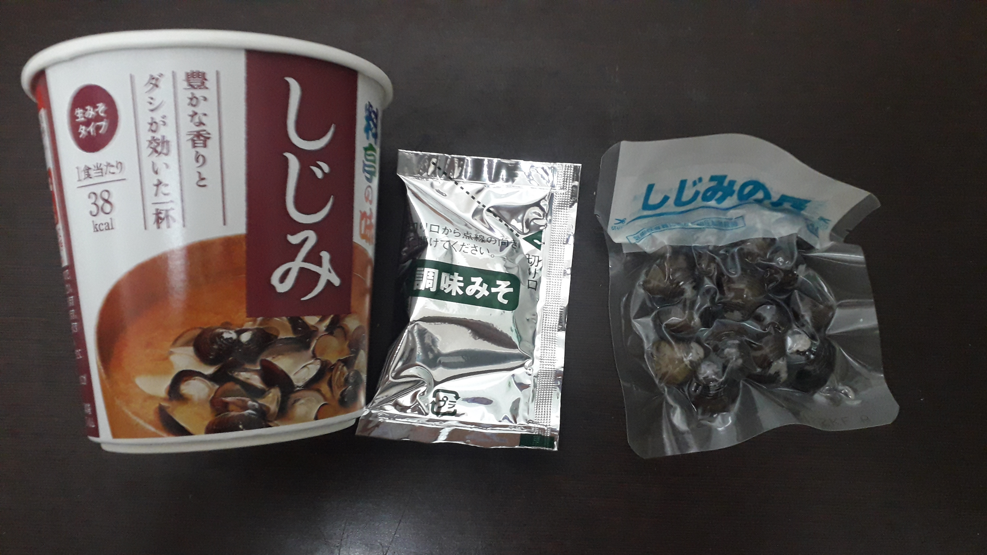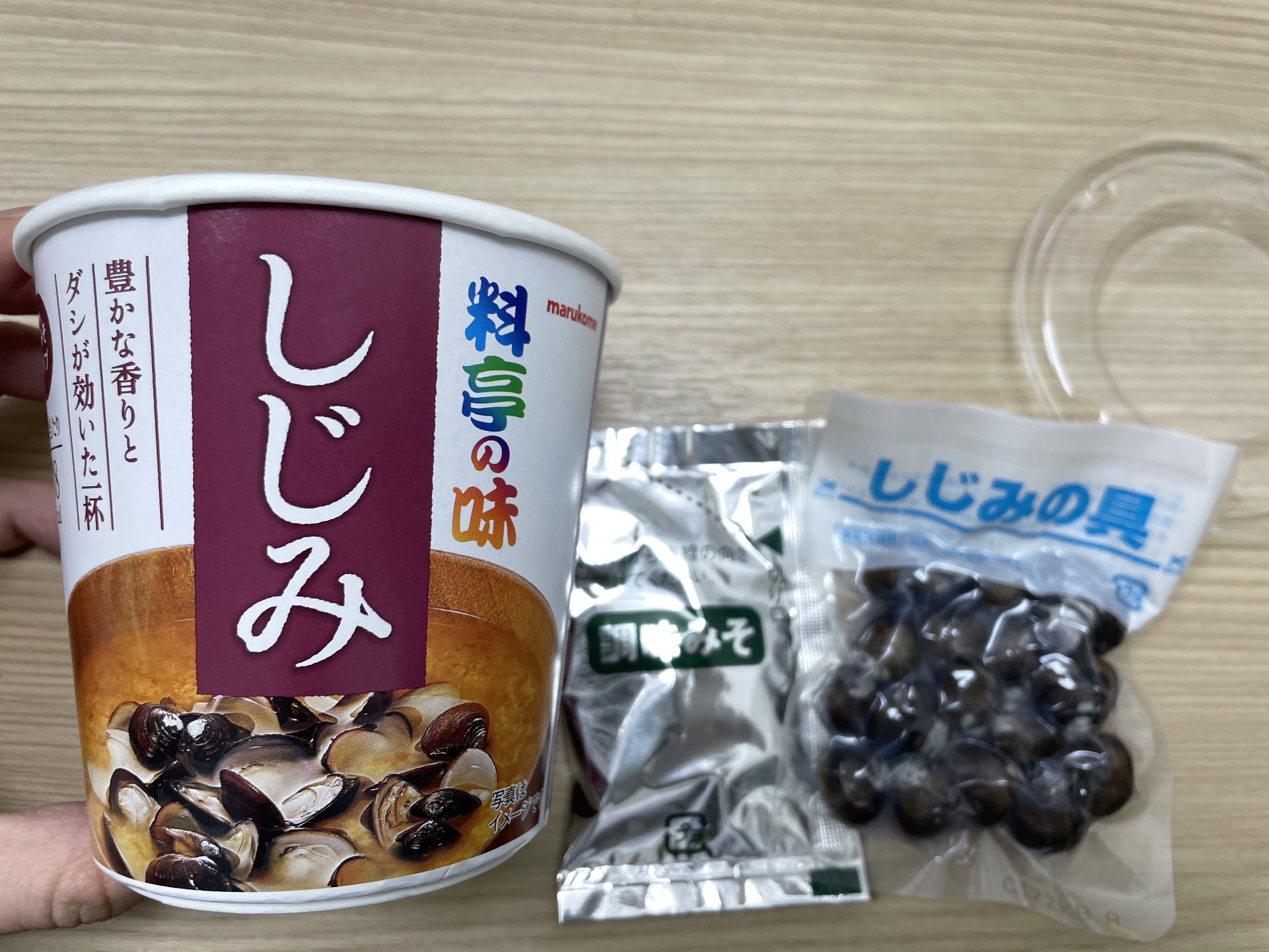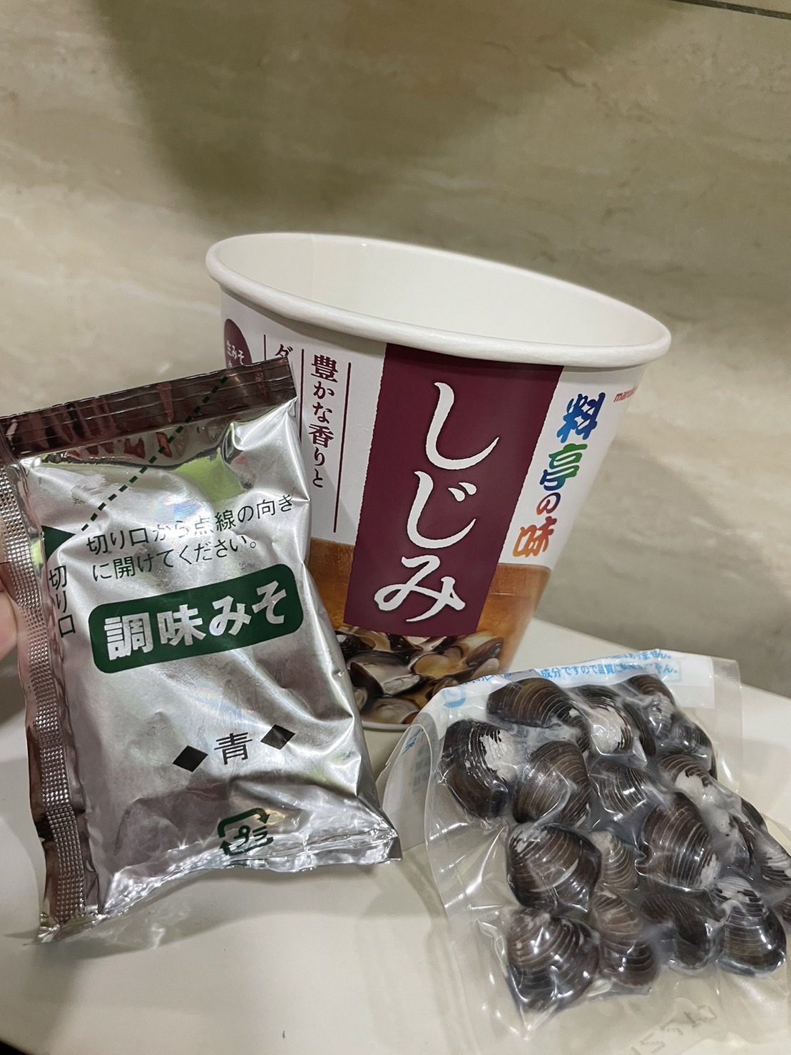 料[蜆],調味味噌[米味噌(水,大豆,米,食鹽),牡蠣萃取物,還原水飴,食鹽,鰹魚萃取物,蛋白加水分解物(大豆,鯛魚,鮪魚,鰆魚),食用酒精,調味劑(L-麩酸鈉,琥珀酸二鈉,5'-次黃嘌呤核甘磷酸二鈉,5'-鳥嘌呤核甘磷酸二鈉)]