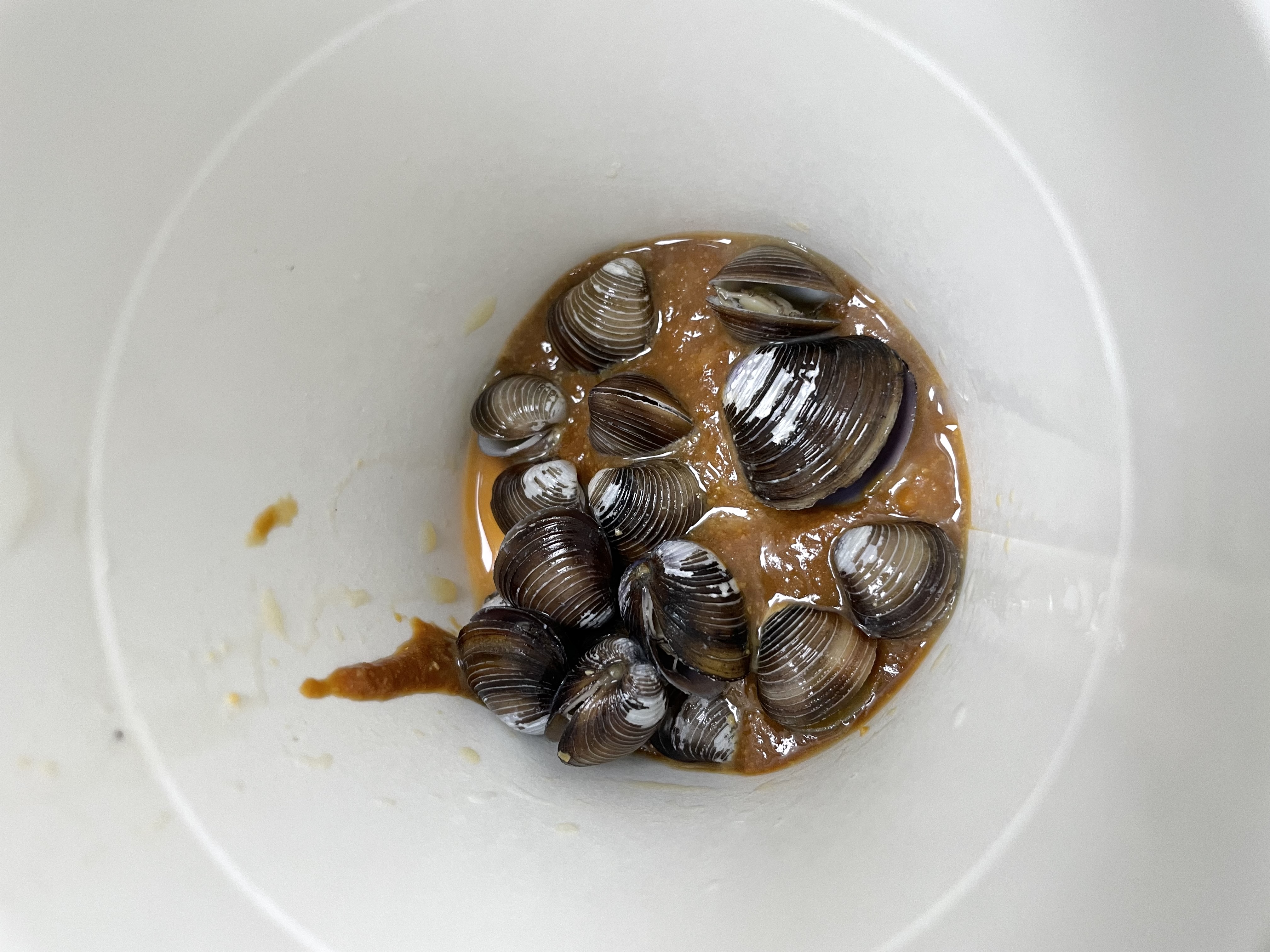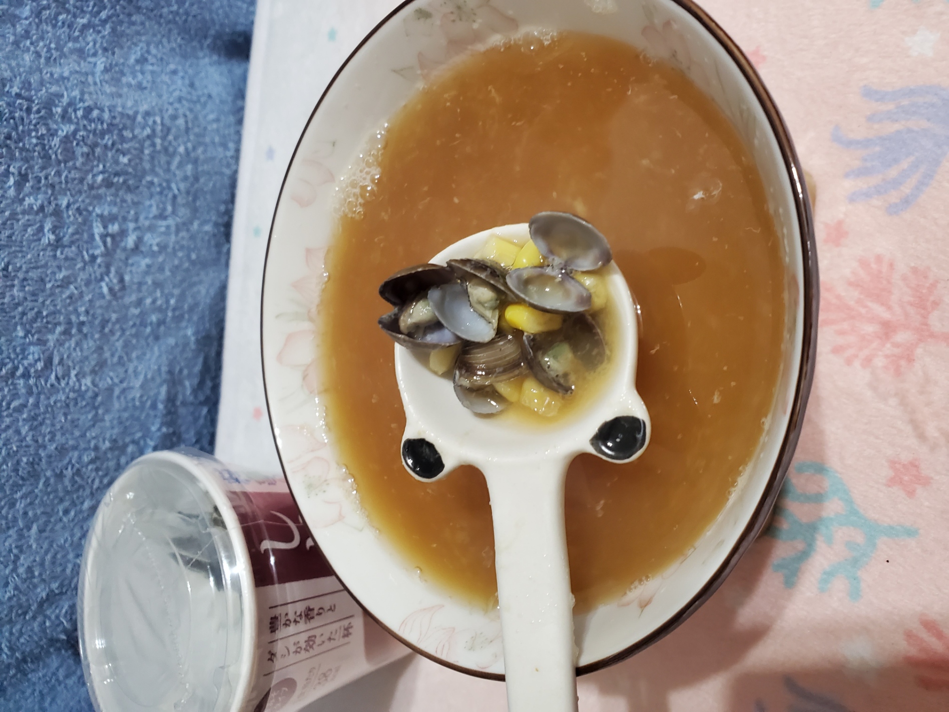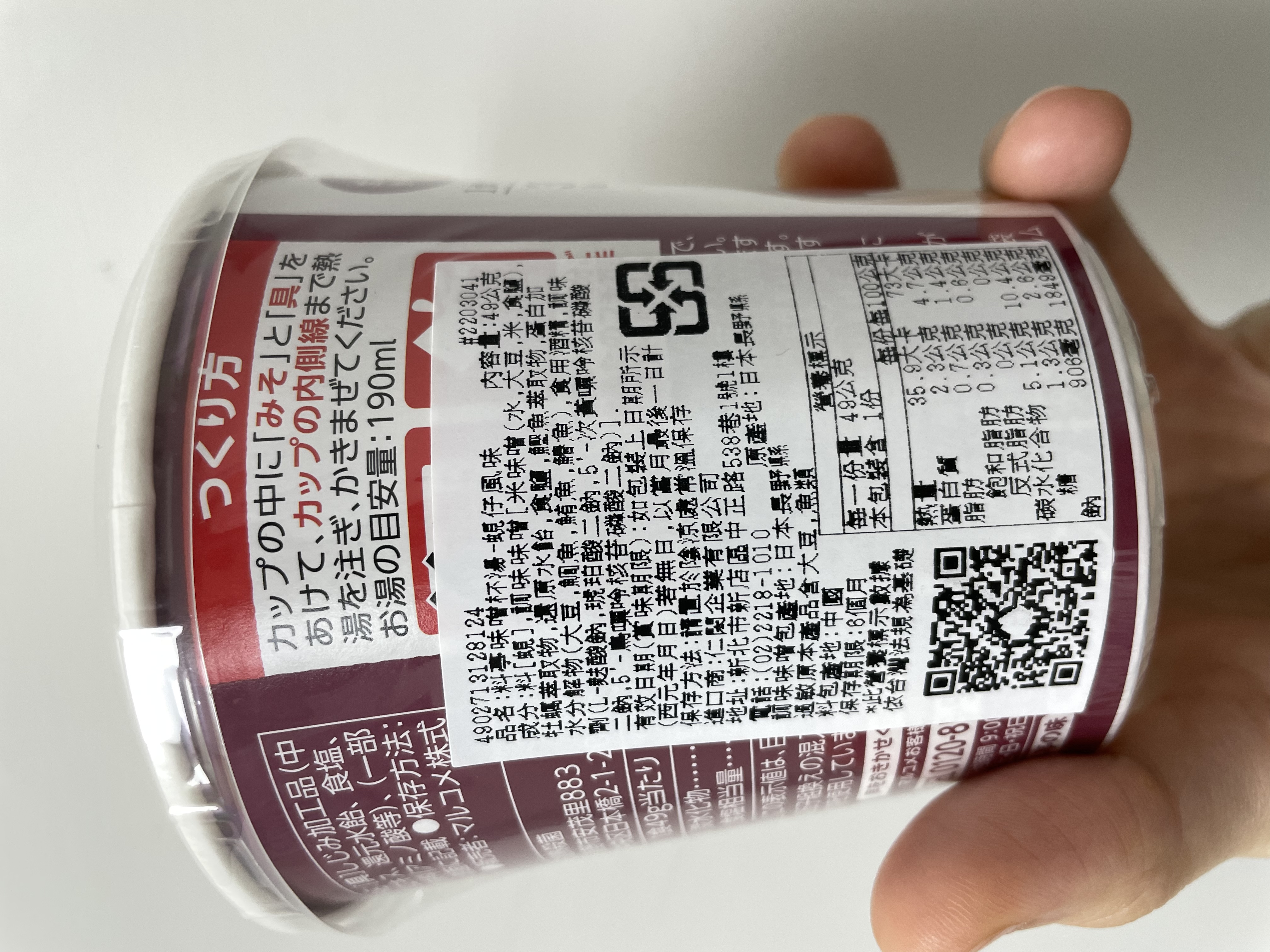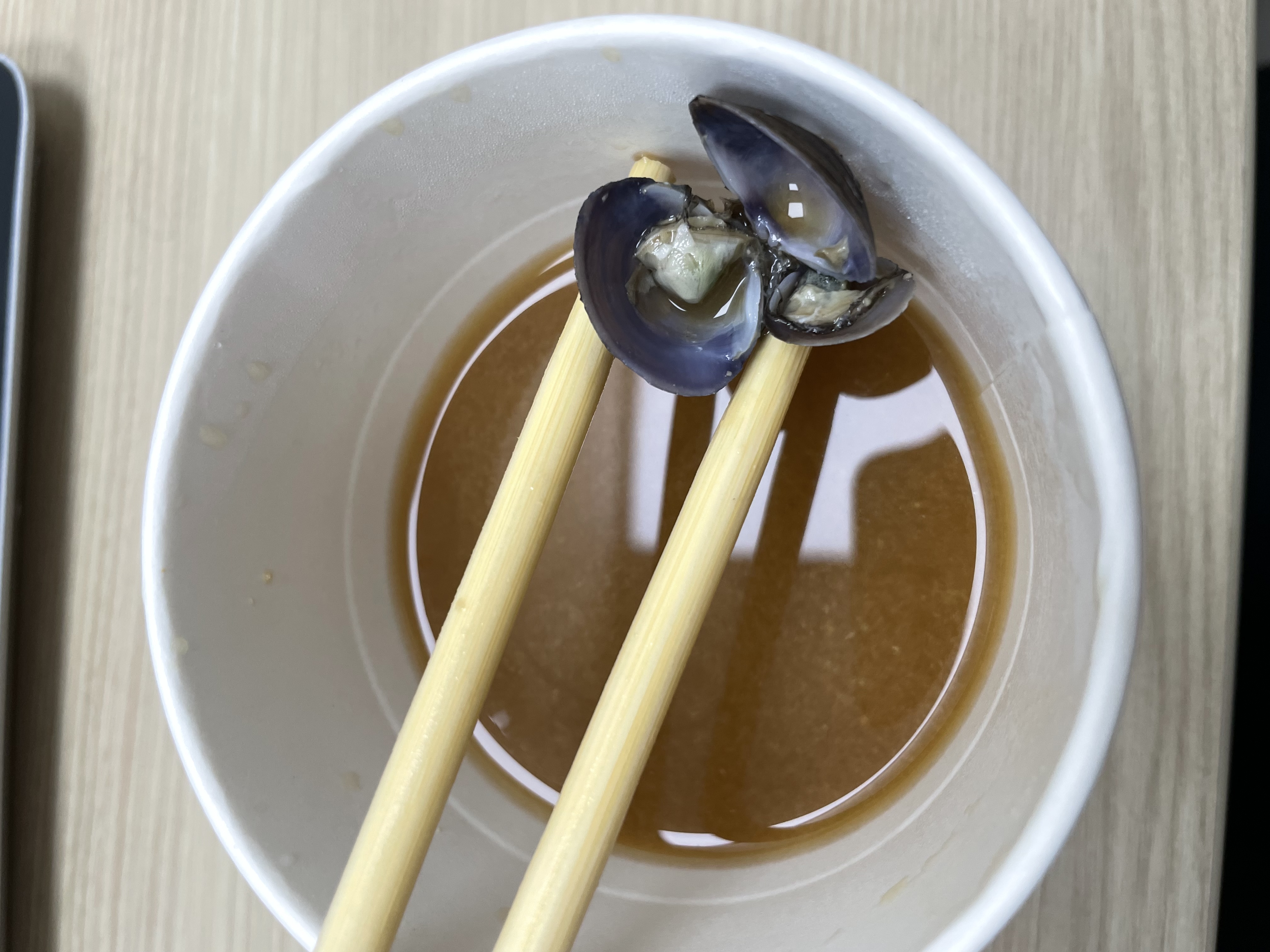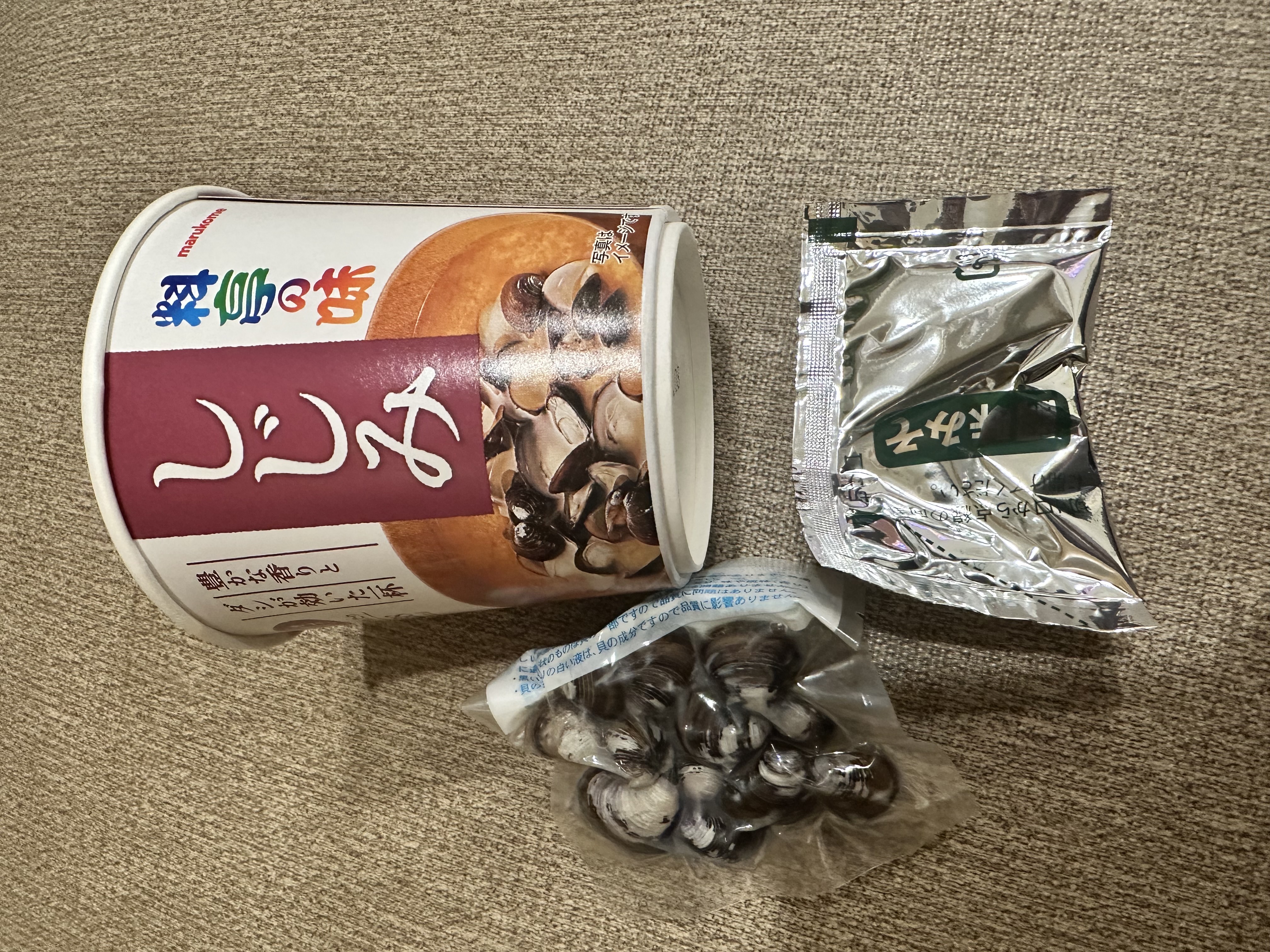 料[蜆],調味味噌[米味噌(水,大豆,米,食鹽),牡蠣萃取物,還原水飴,食鹽,鰹魚萃取物,蛋白加水分解物(大豆,鯛魚,鮪魚,鰆魚),食用酒精,調味劑(L-麩酸鈉,琥珀酸二鈉,5'-次黃嘌呤核甘磷酸二鈉,5'-鳥嘌呤核甘磷酸二鈉)]
