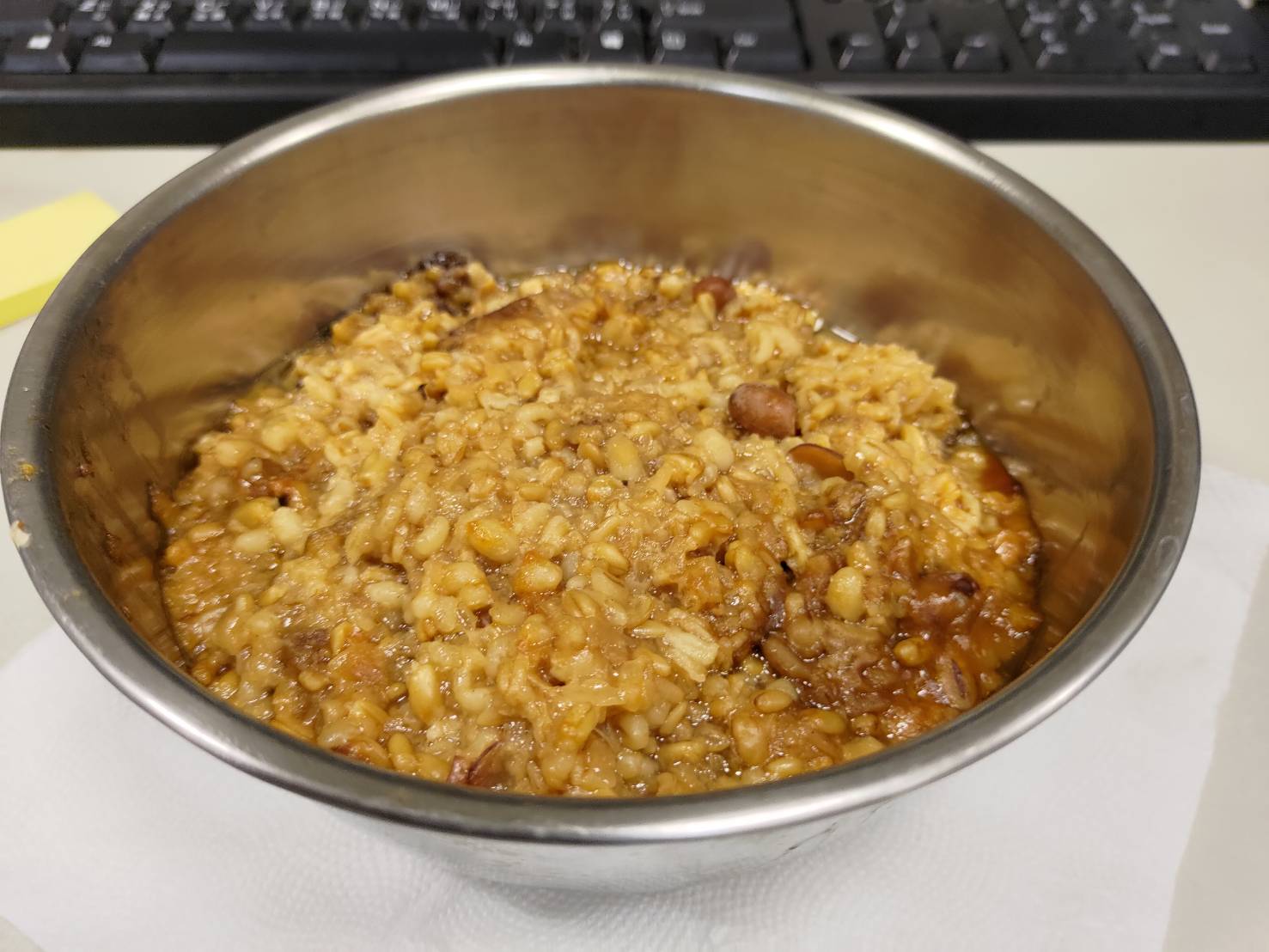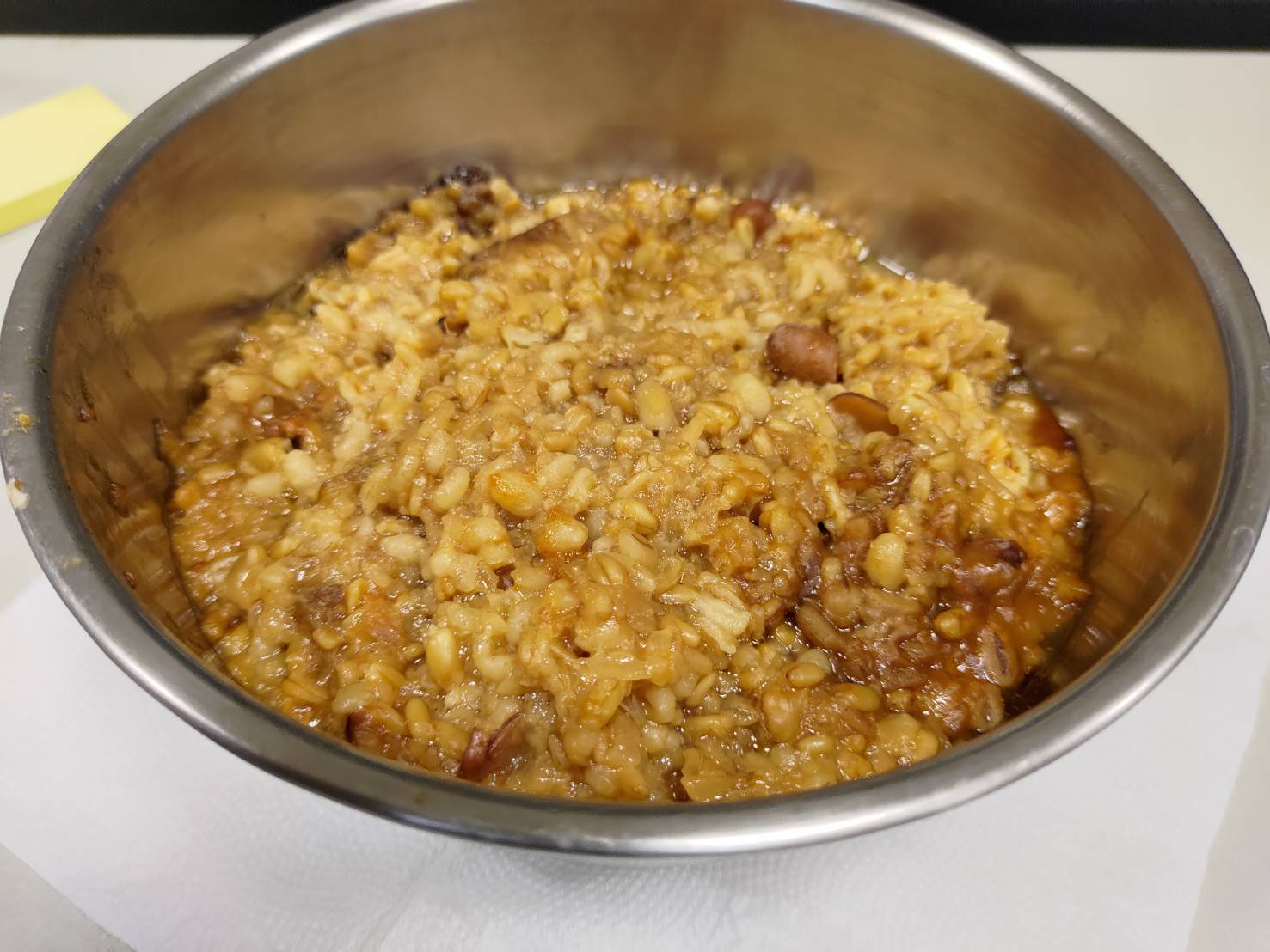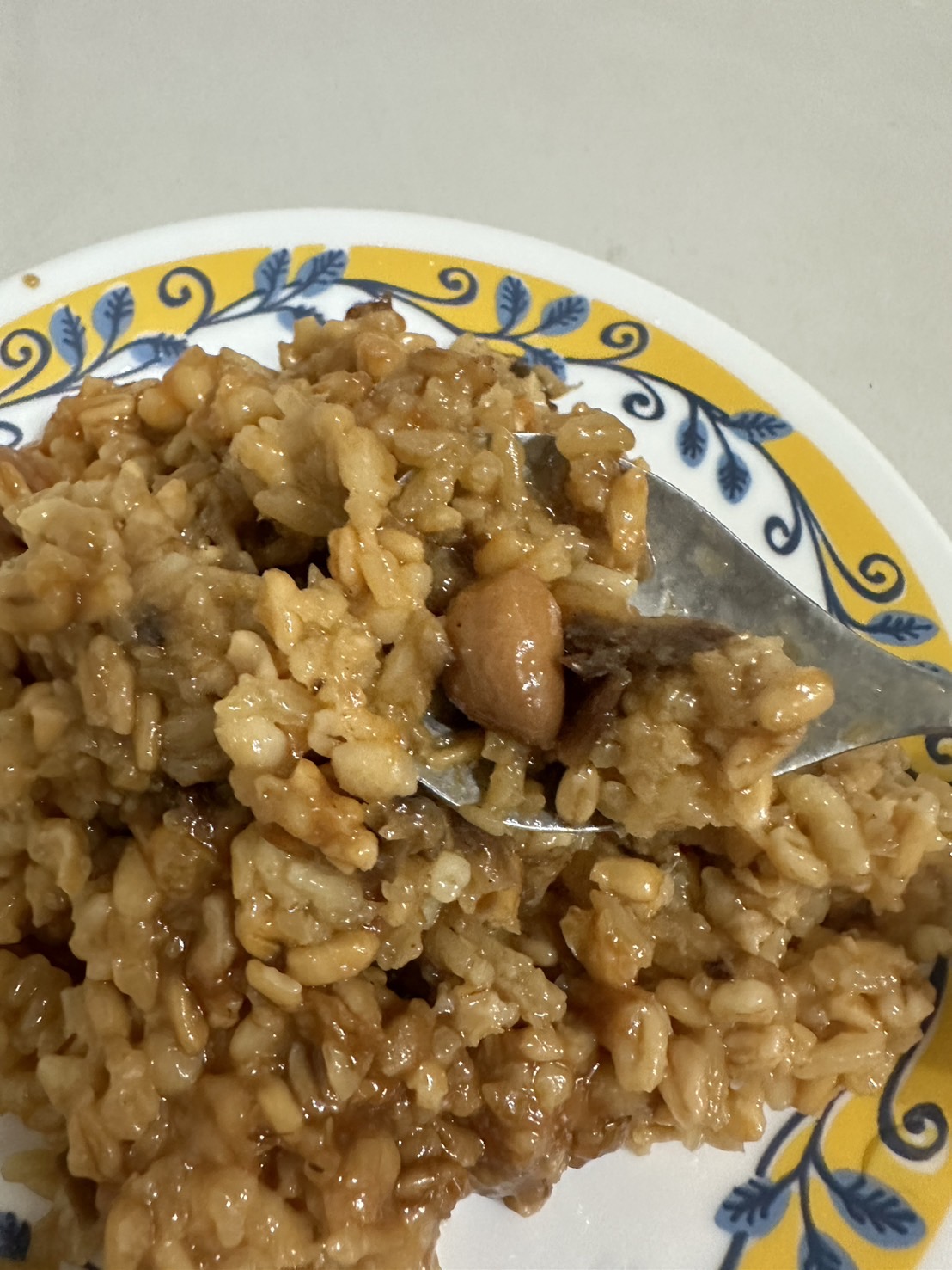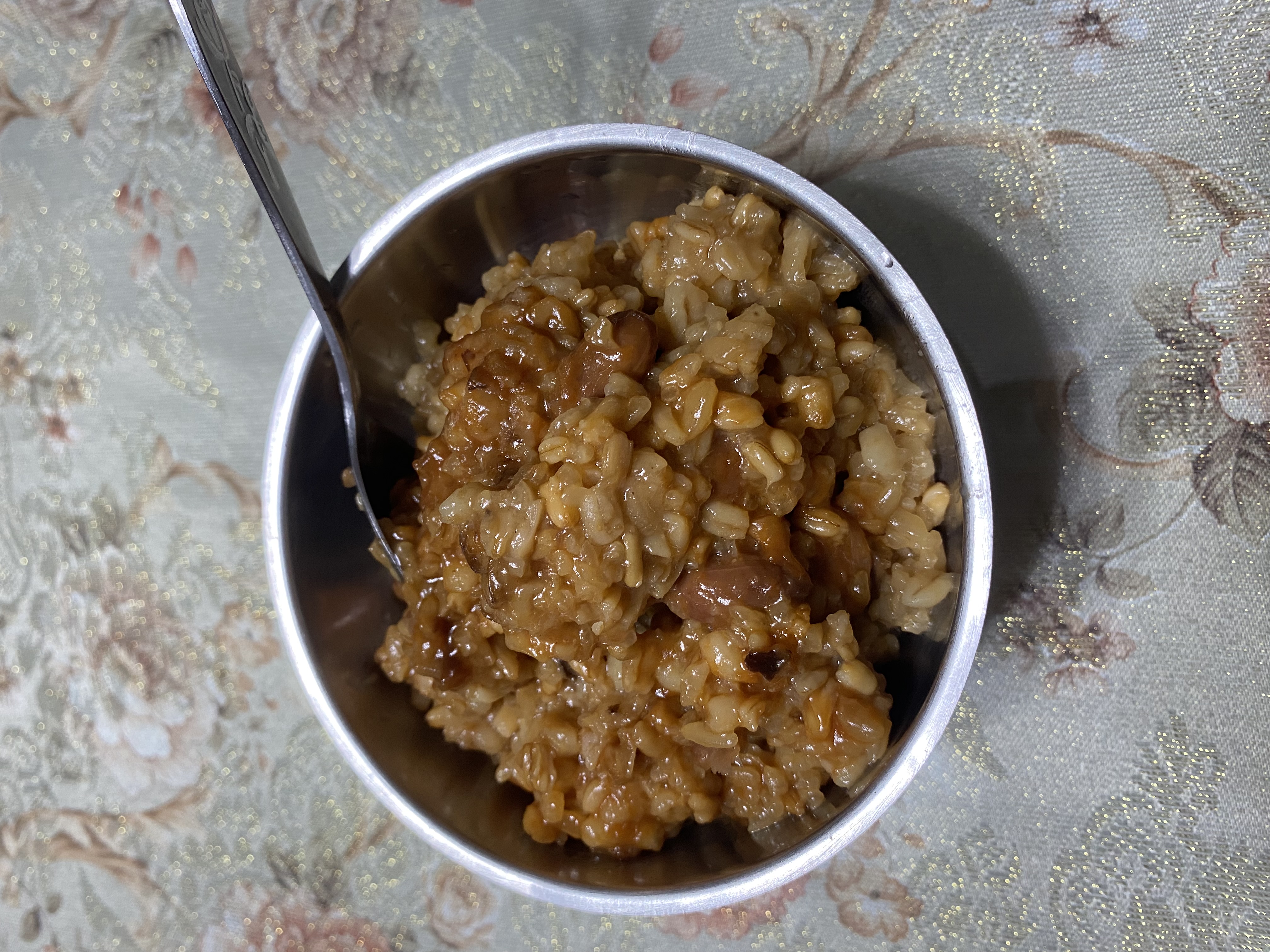 水、糯米、醬料{水、味噌[黃豆(非基改)、米、鹽]、糖、蕃茄糊、醬油、玉米澱粉、大豆油、酵母抽出物、鹽}、燕麥、大麥、花生、蔥酥(蔥頭、棕櫚油、玉米澱粉)、香菇、醬油、大豆油、結構性大豆蛋白質(植物肉)、麵皮絲(麵粉、黃豆油、鹽)、蒜、鹽、白胡椒、酵母抽出物(酵母抽出物、鹽)、肉桂、香料、大茴、小茴、丁香