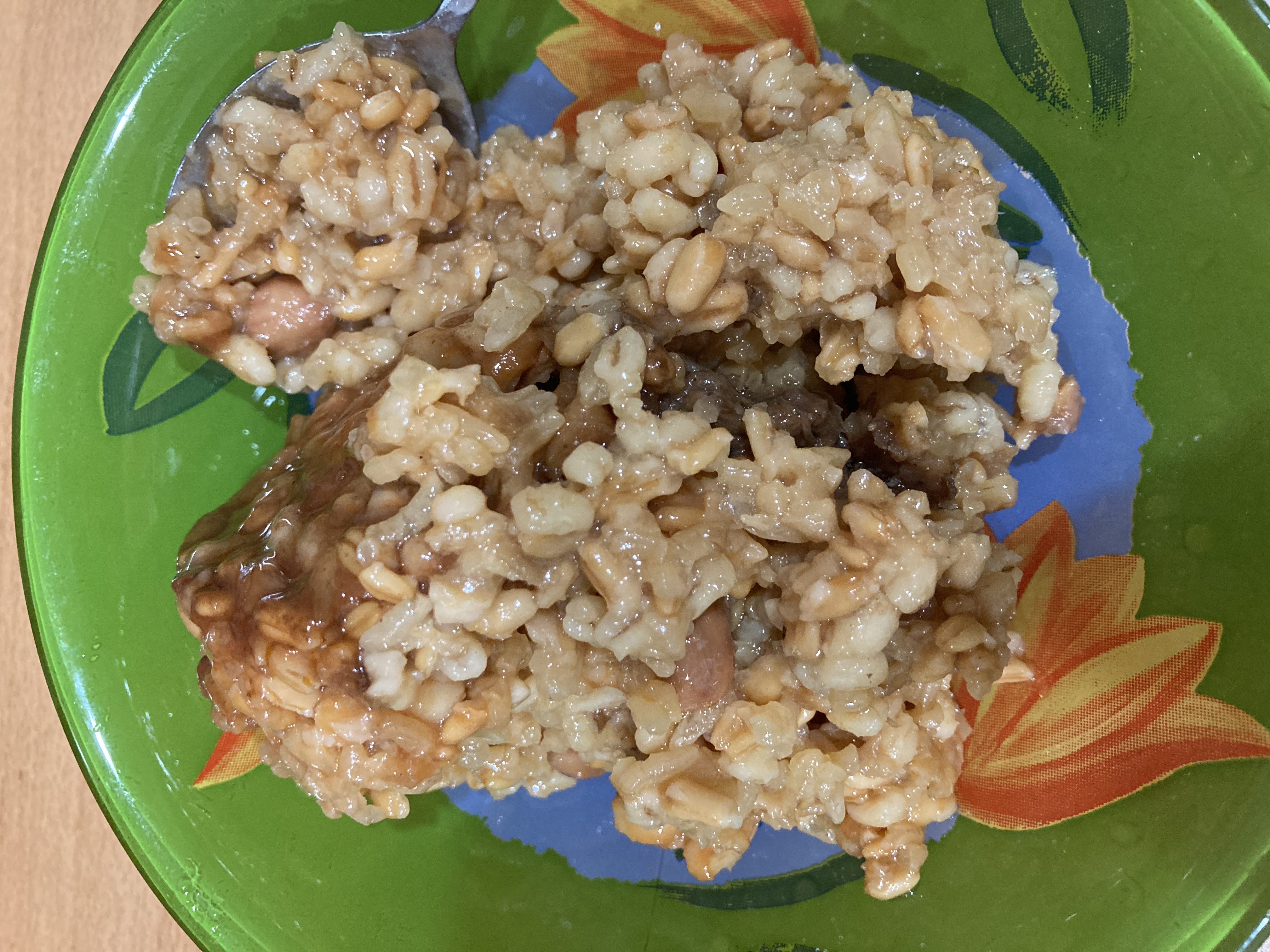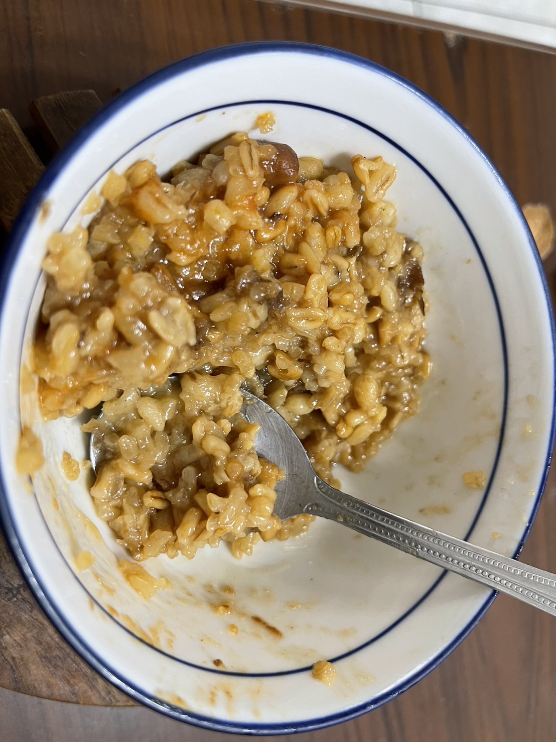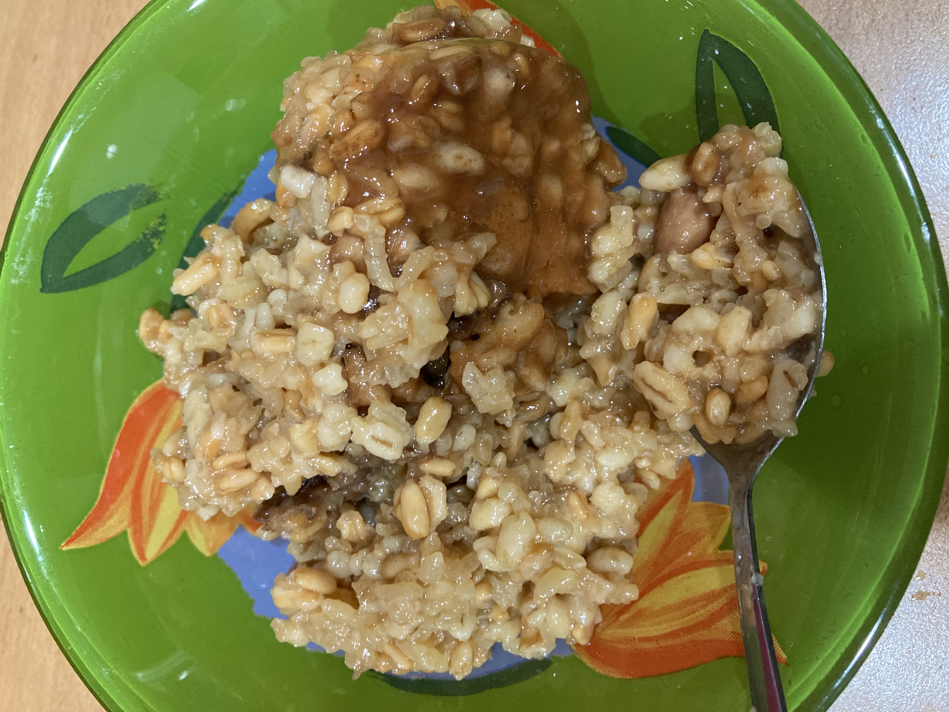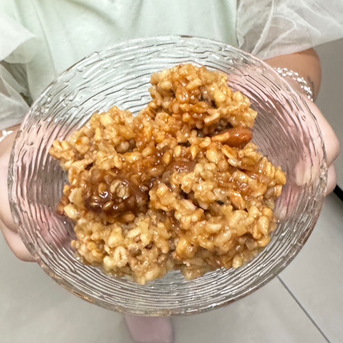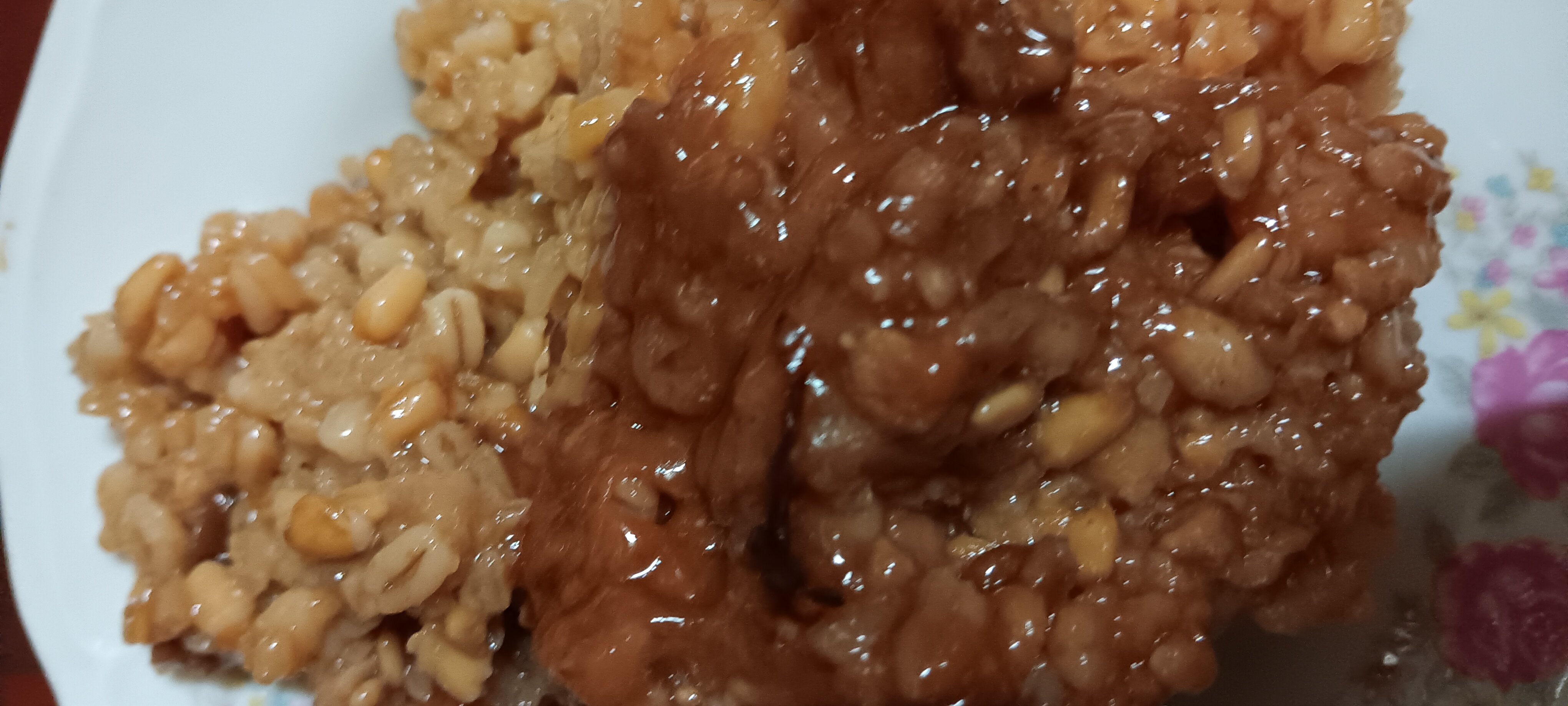 水、糯米、醬料{水、味噌[黃豆(非基改)、米、鹽]、糖、蕃茄糊、醬油、玉米澱粉、大豆油、酵母抽出物、鹽}、燕麥、大麥、花生、蔥酥(蔥頭、棕櫚油、玉米澱粉)、香菇、醬油、大豆油、結構性大豆蛋白質(植物肉)、麵皮絲(麵粉、黃豆油、鹽)、蒜、鹽、白胡椒、酵母抽出物(酵母抽出物、鹽)、肉桂、香料、大茴、小茴、丁香