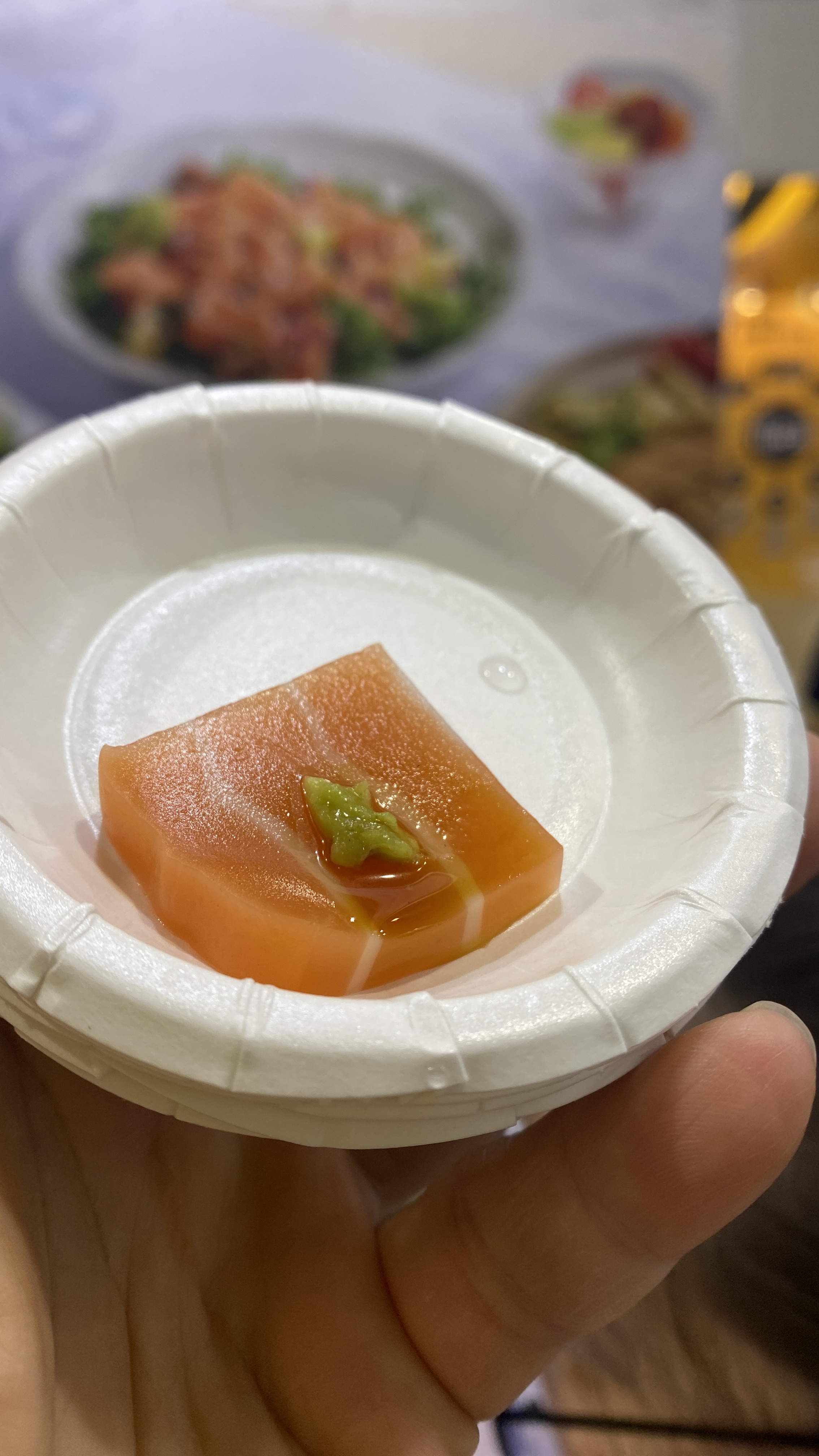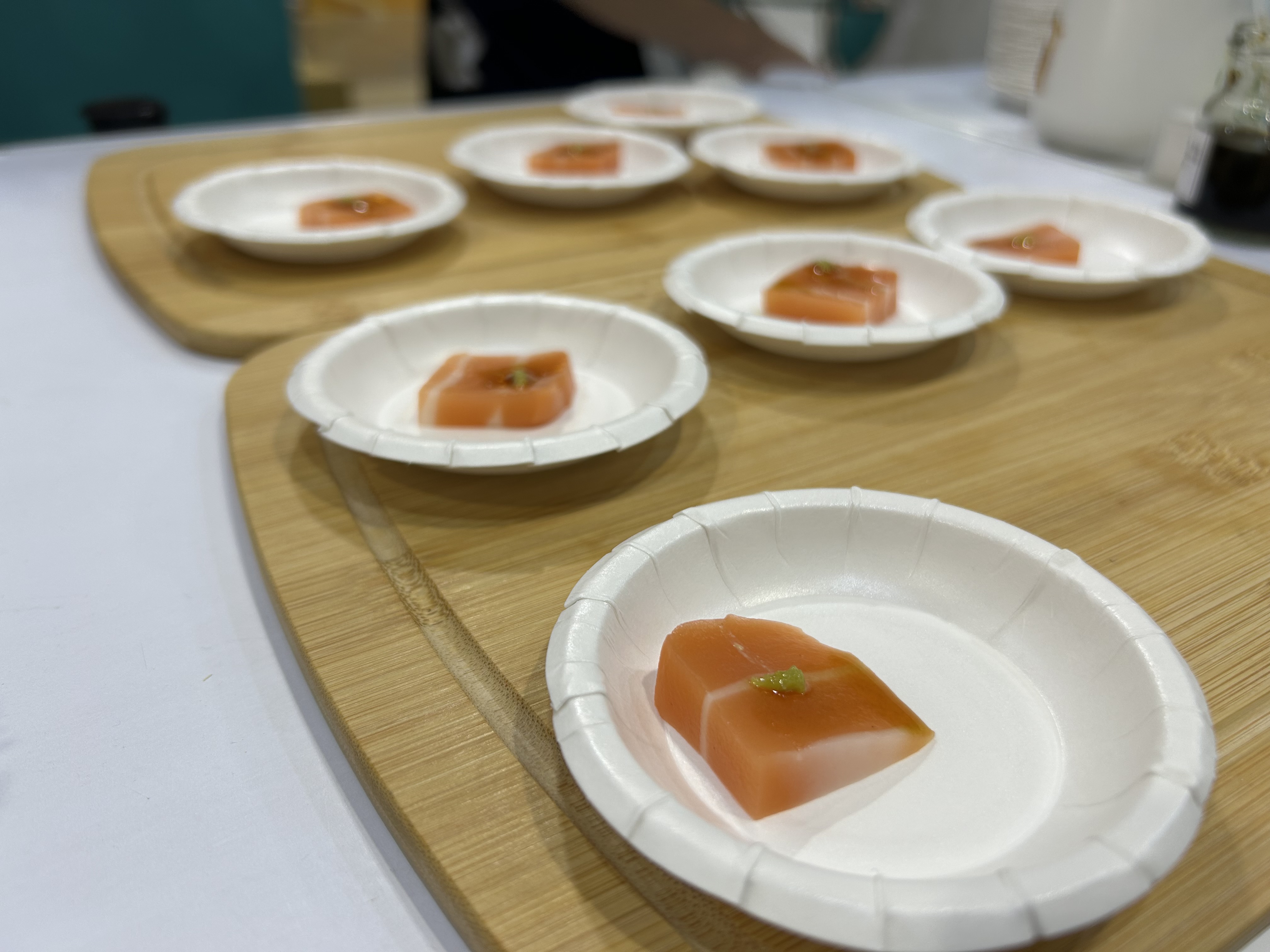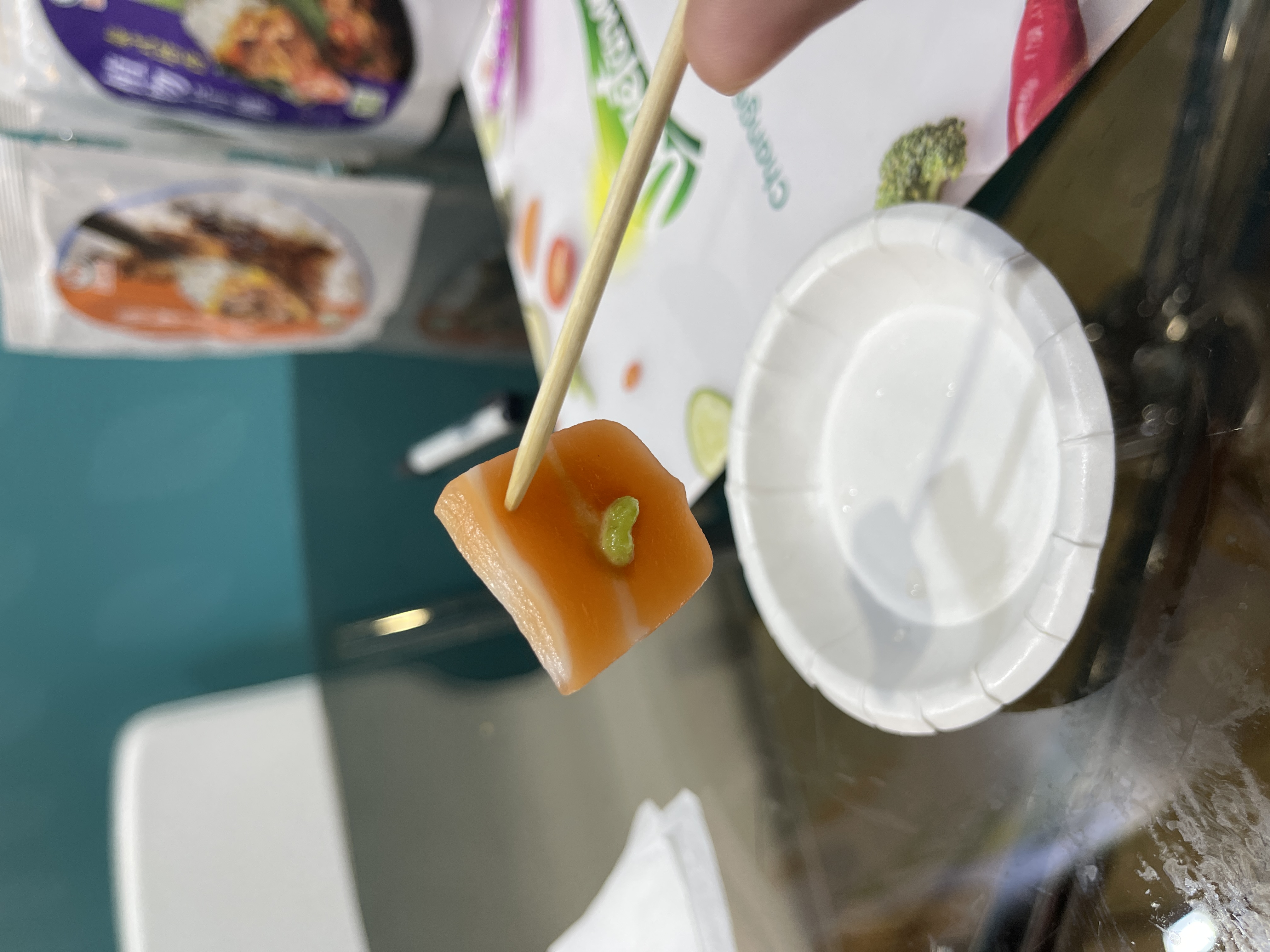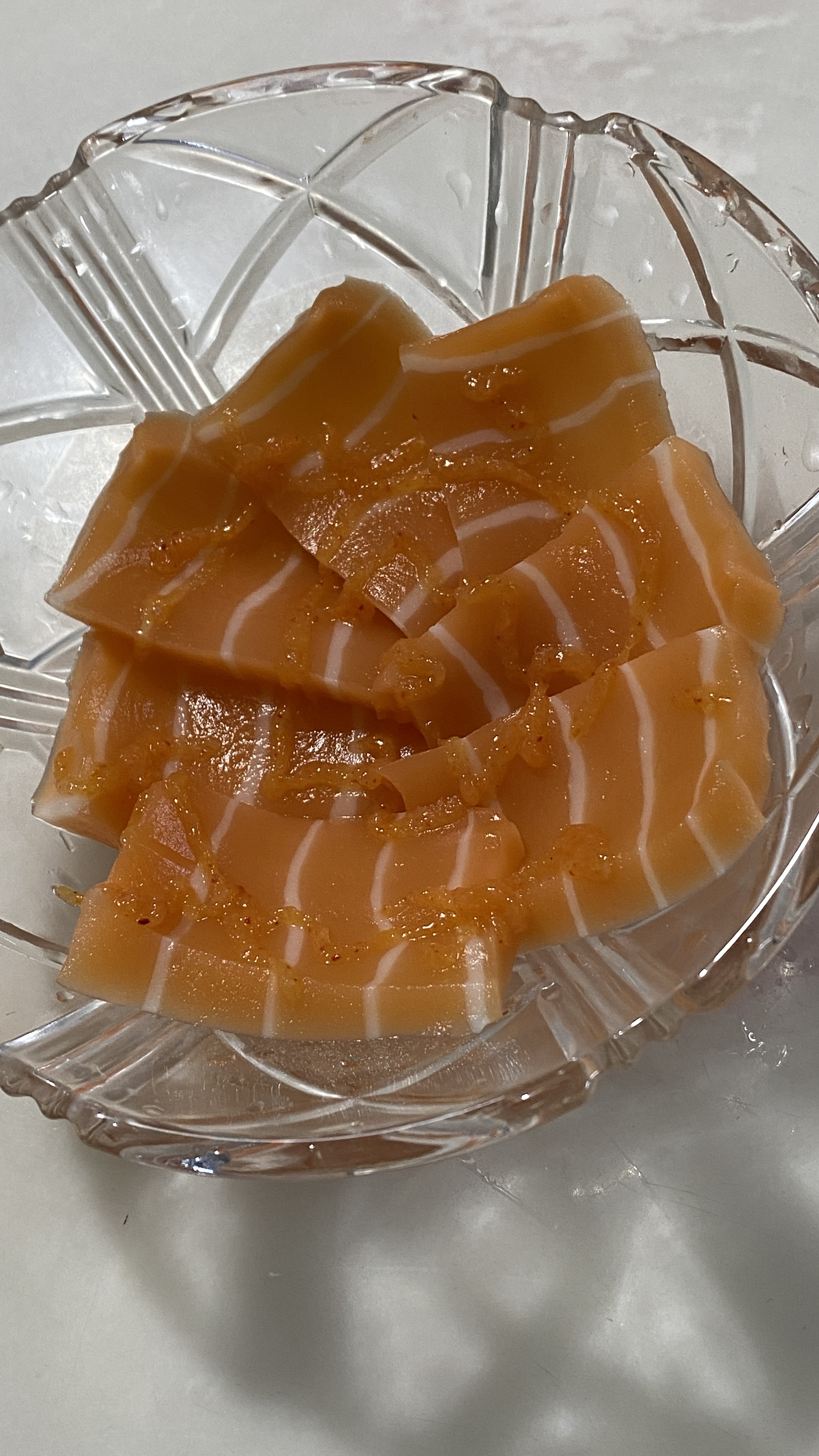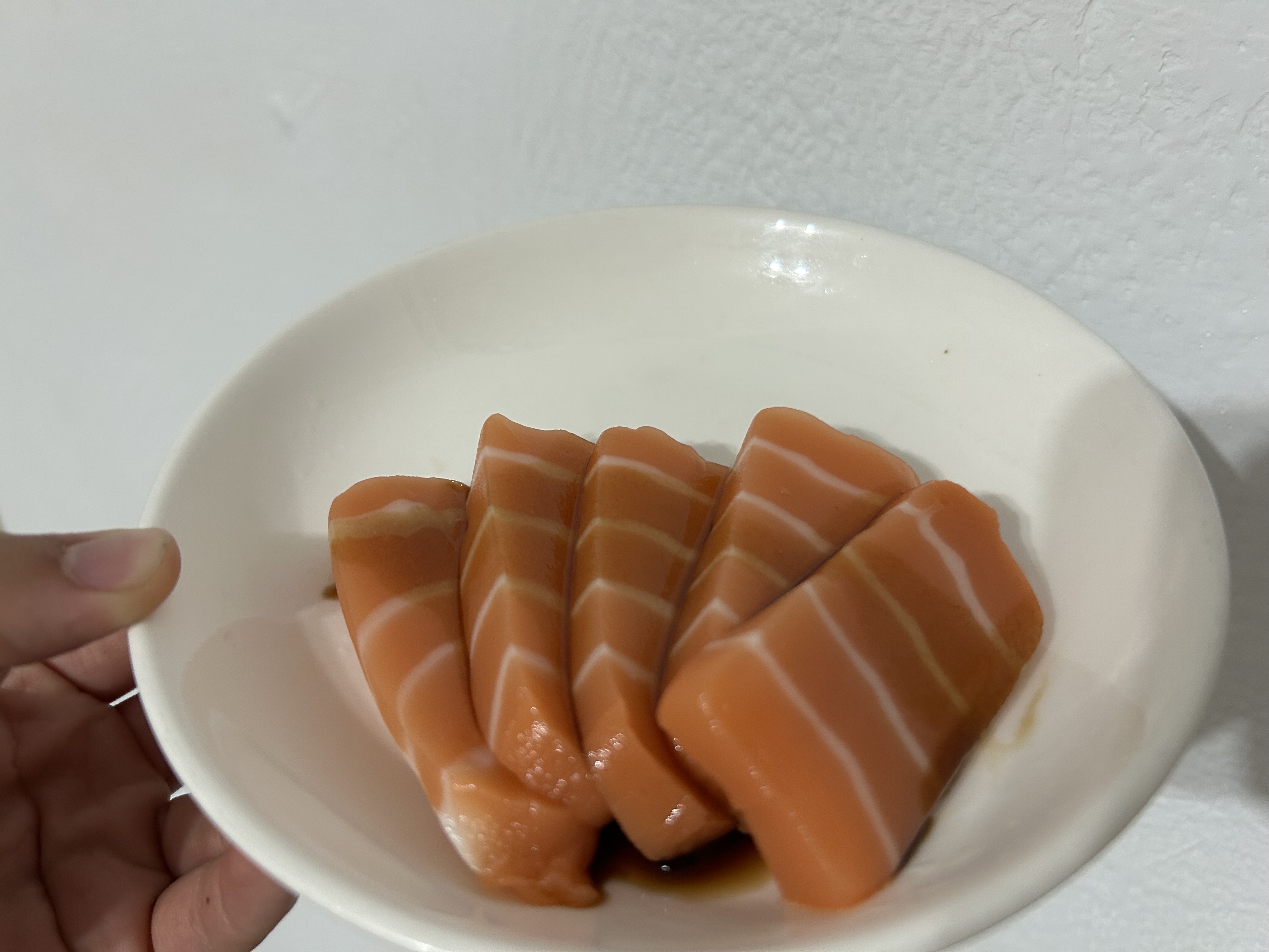 成份:水、海藻糖、乙醯化磷酸二澱粉、甜味劑(D-山梨醇液)、鹽、蒟蒻粉、鹿角菜膠、柑橘纖維、碳酸鈣、酵母抽出物、刺槐豆膠、胺基乙酸、DL-胺基丙酸、氯化鉀、二氧化鈦、紅藻粉【紅藻抽出物、抗氧化劑(濃縮 d-α-生育醇) 】、氧化鈣、香料