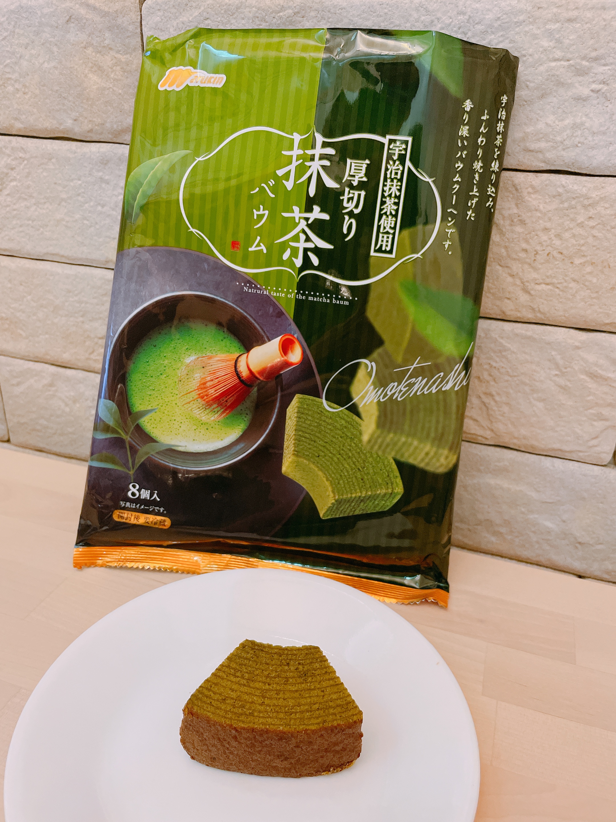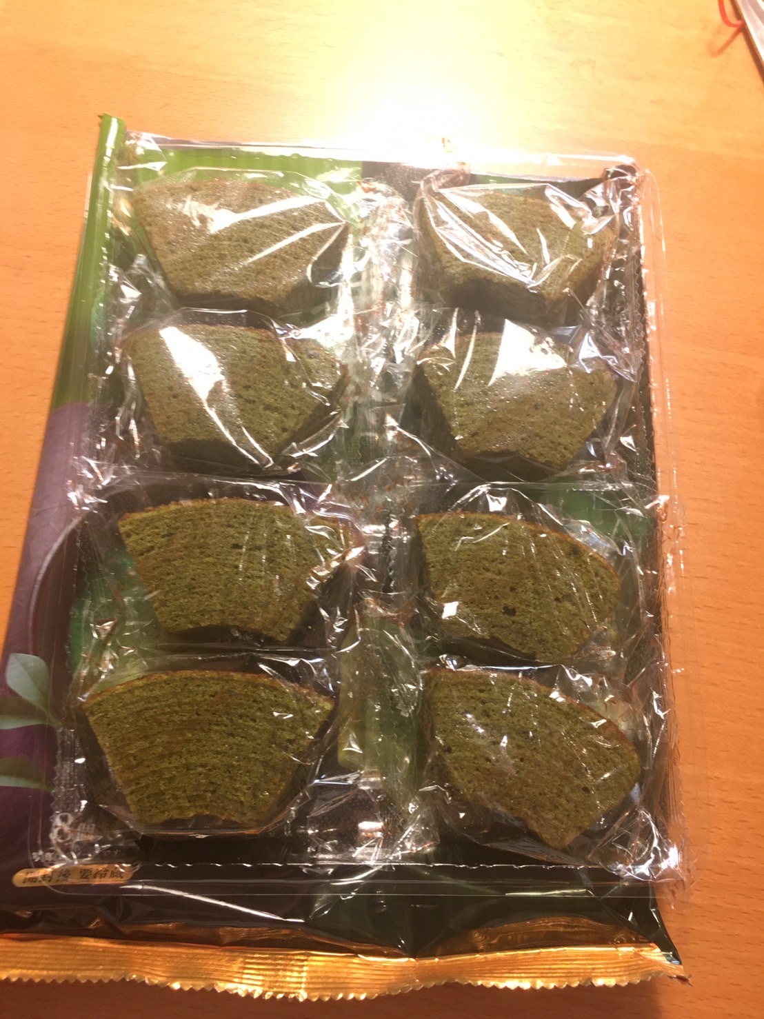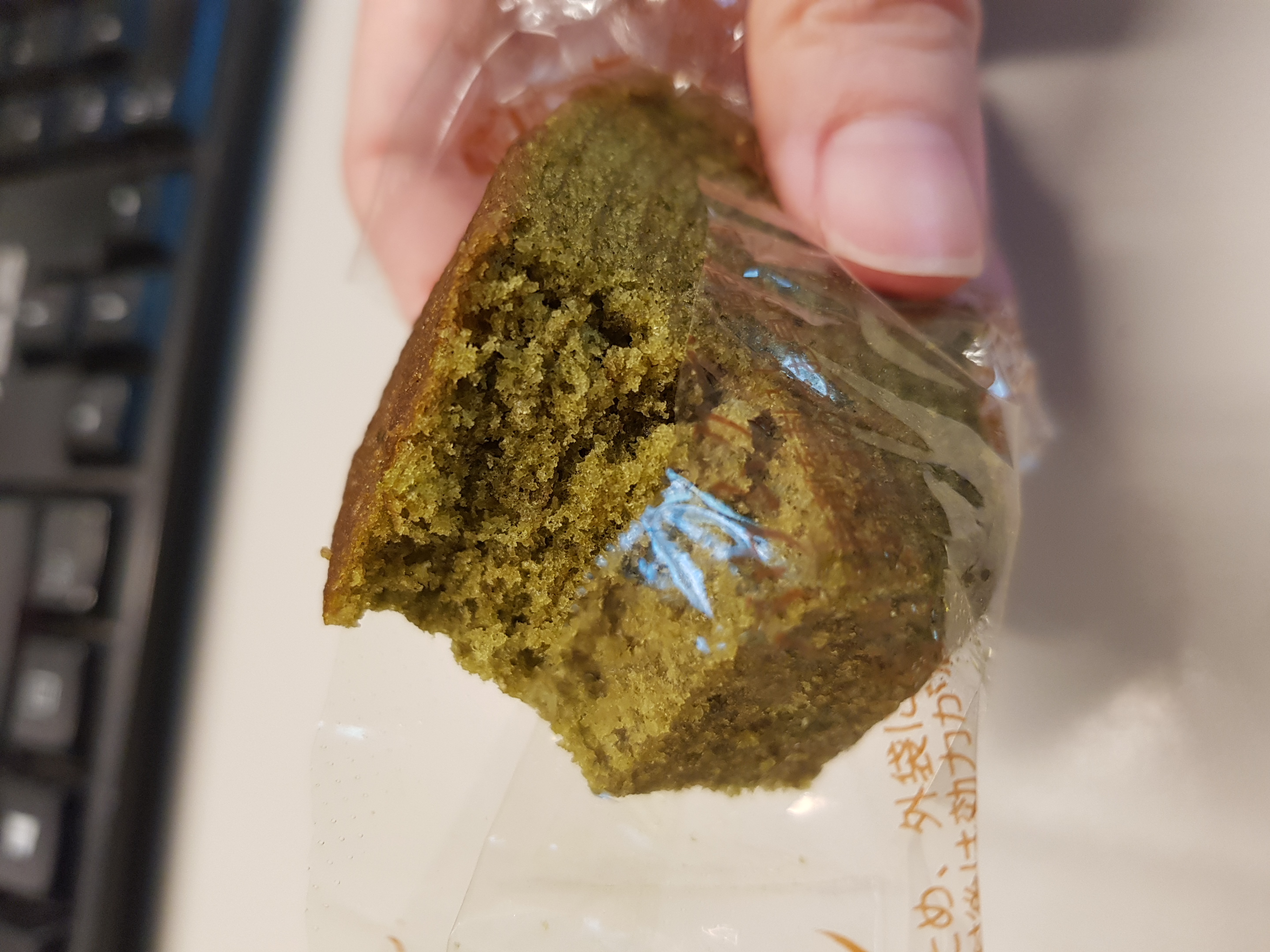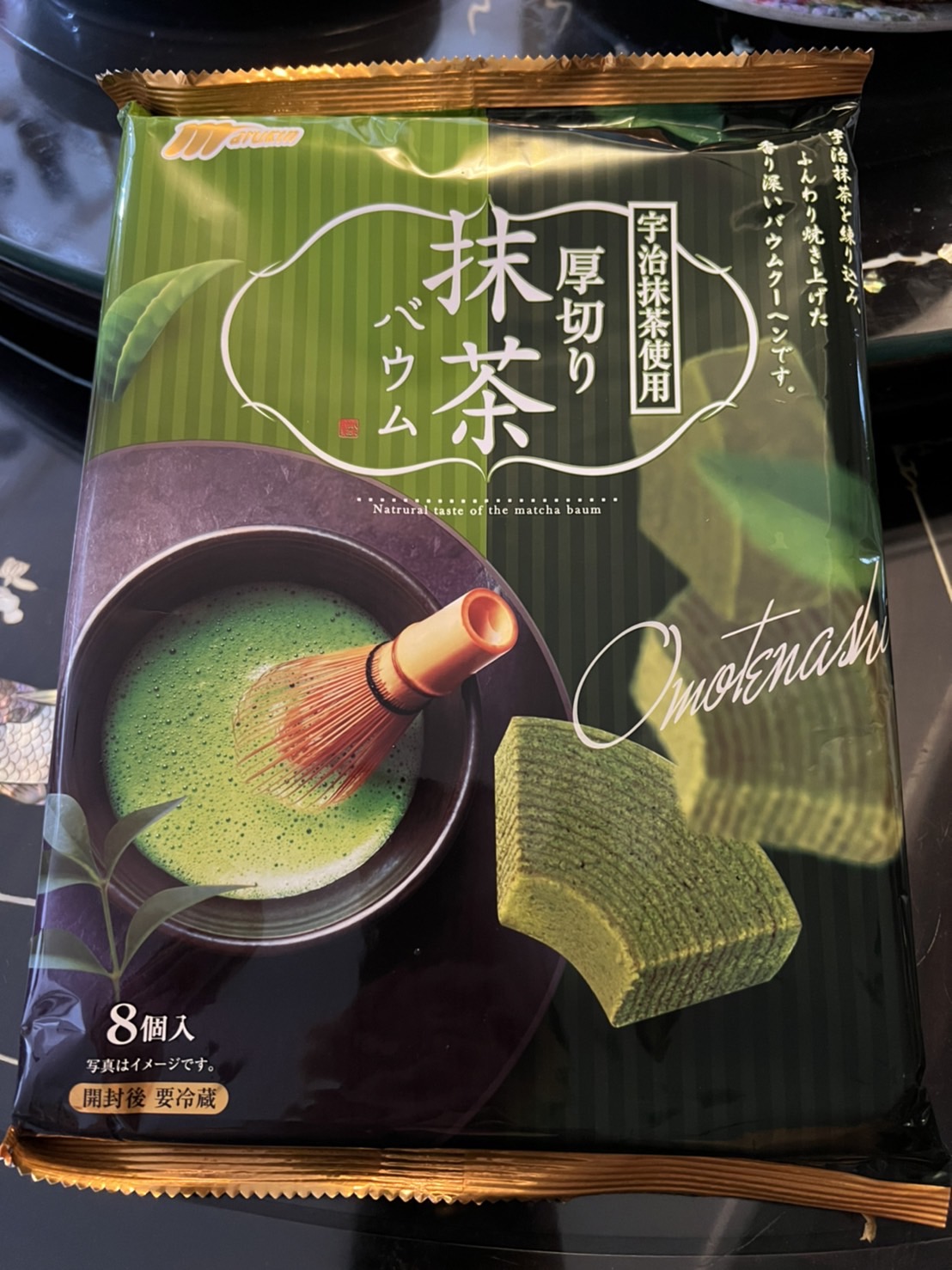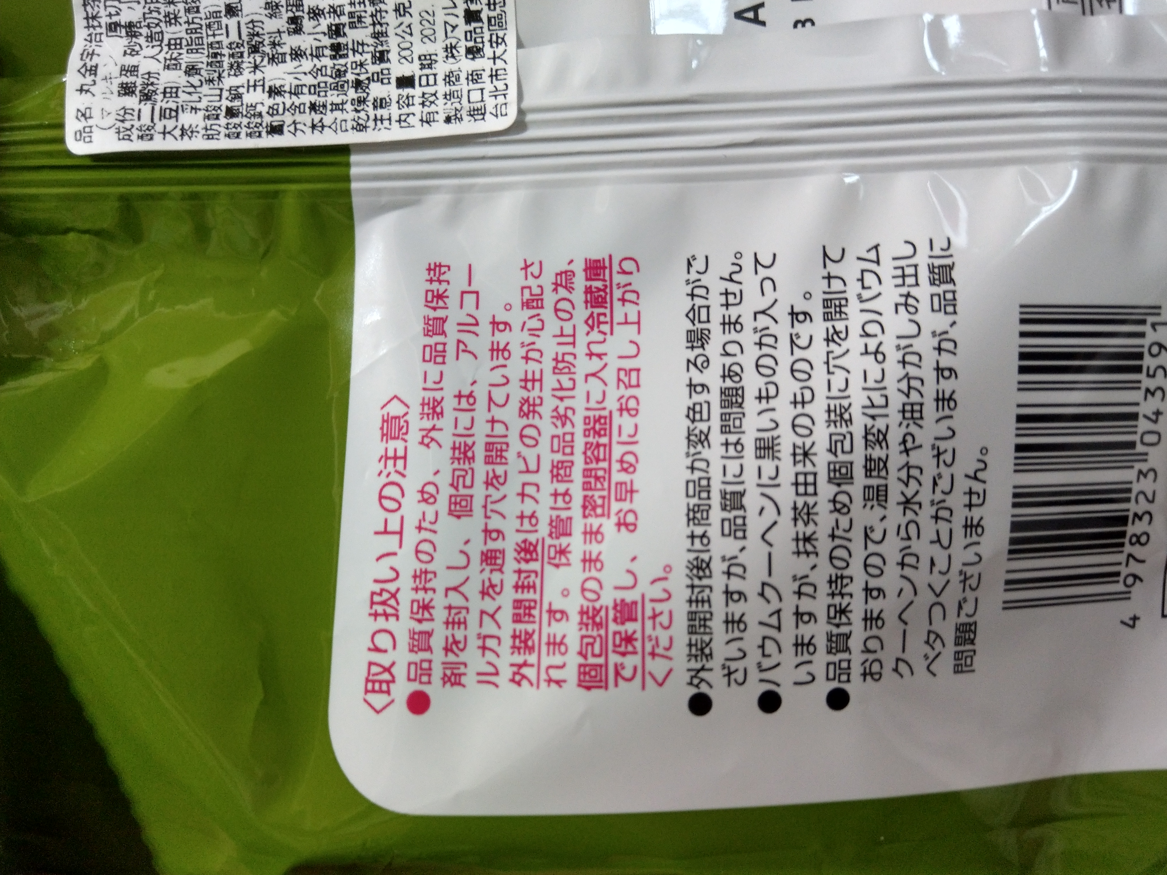 雞蛋、砂糖、小麥粉、人造奶油、酥油(芥籽油)、麥芽糖、抹茶、綠藻、牛奶、食鹽、氧化澱粉、甜味劑(D-山梨醇)、脂肪酸甘油酯、膨脹劑(碳酸氫鈉)、食用色素(黃梔子、胡蘿蔔素)、香料、(原材料的一部份含有小麥、雞蛋、牛奶、大豆)
