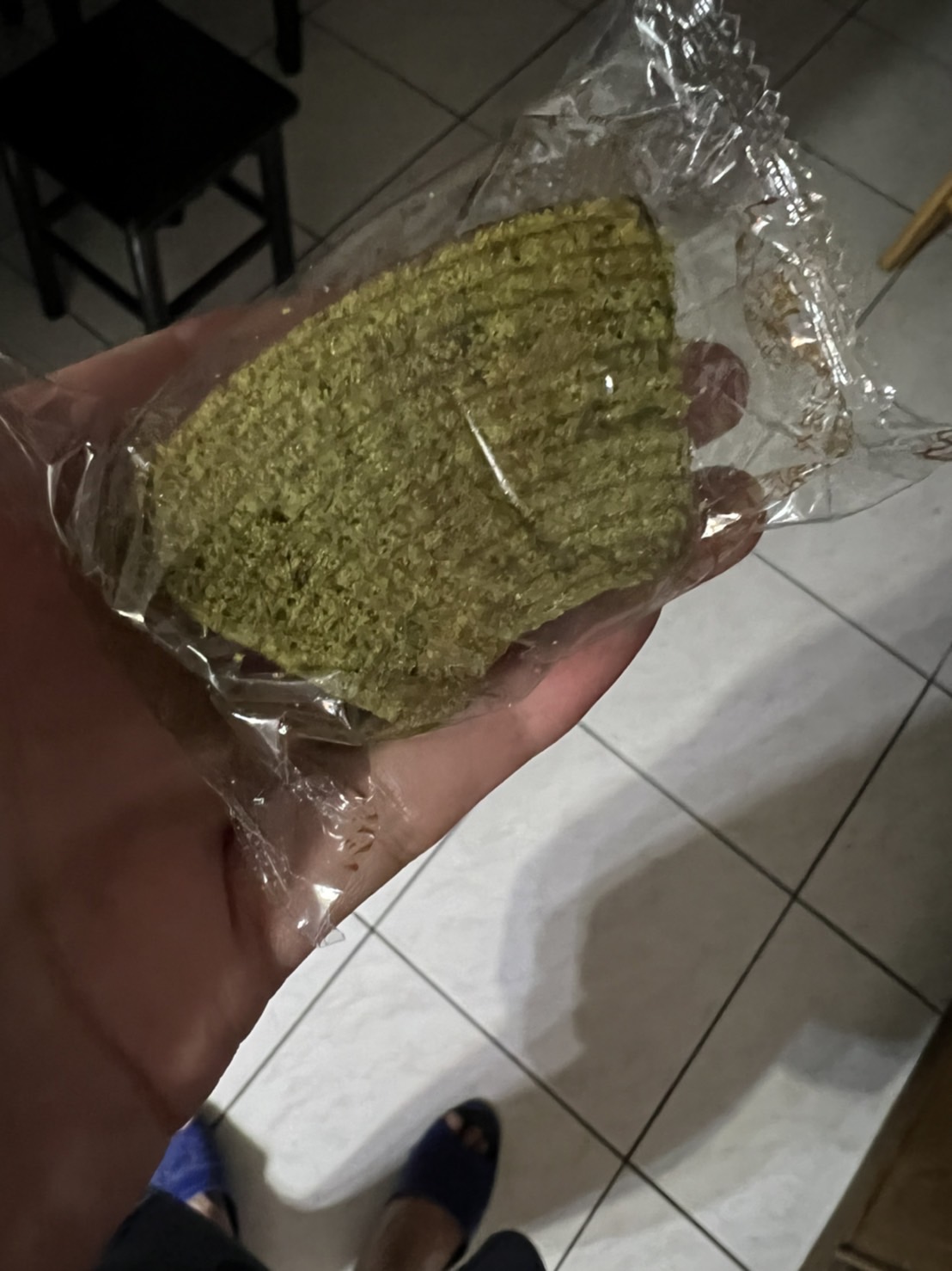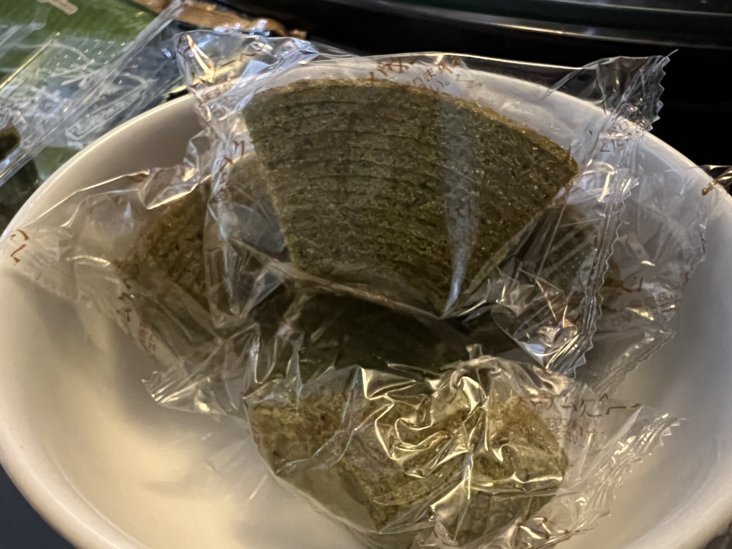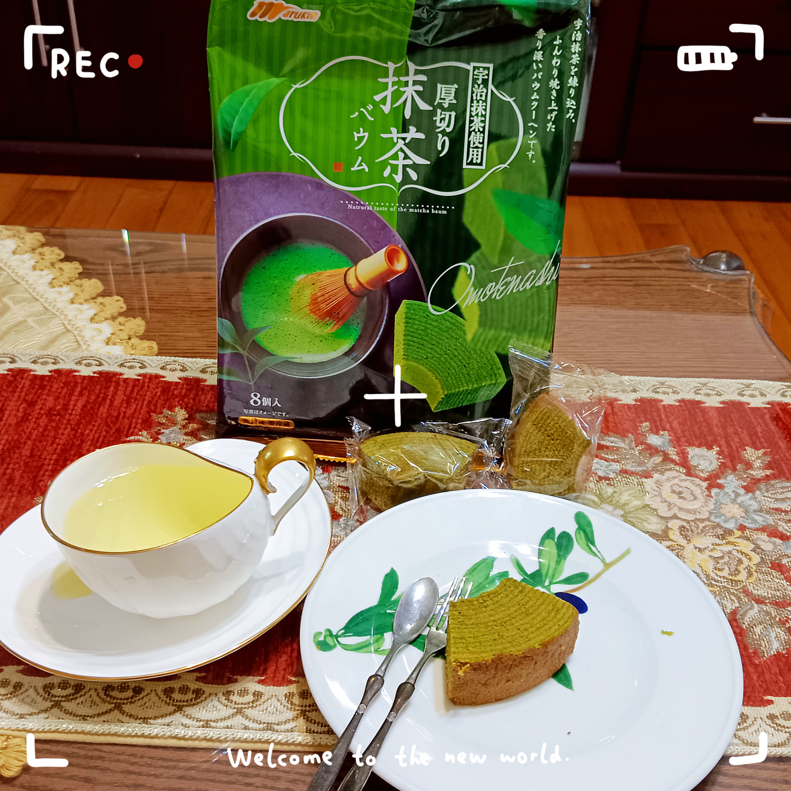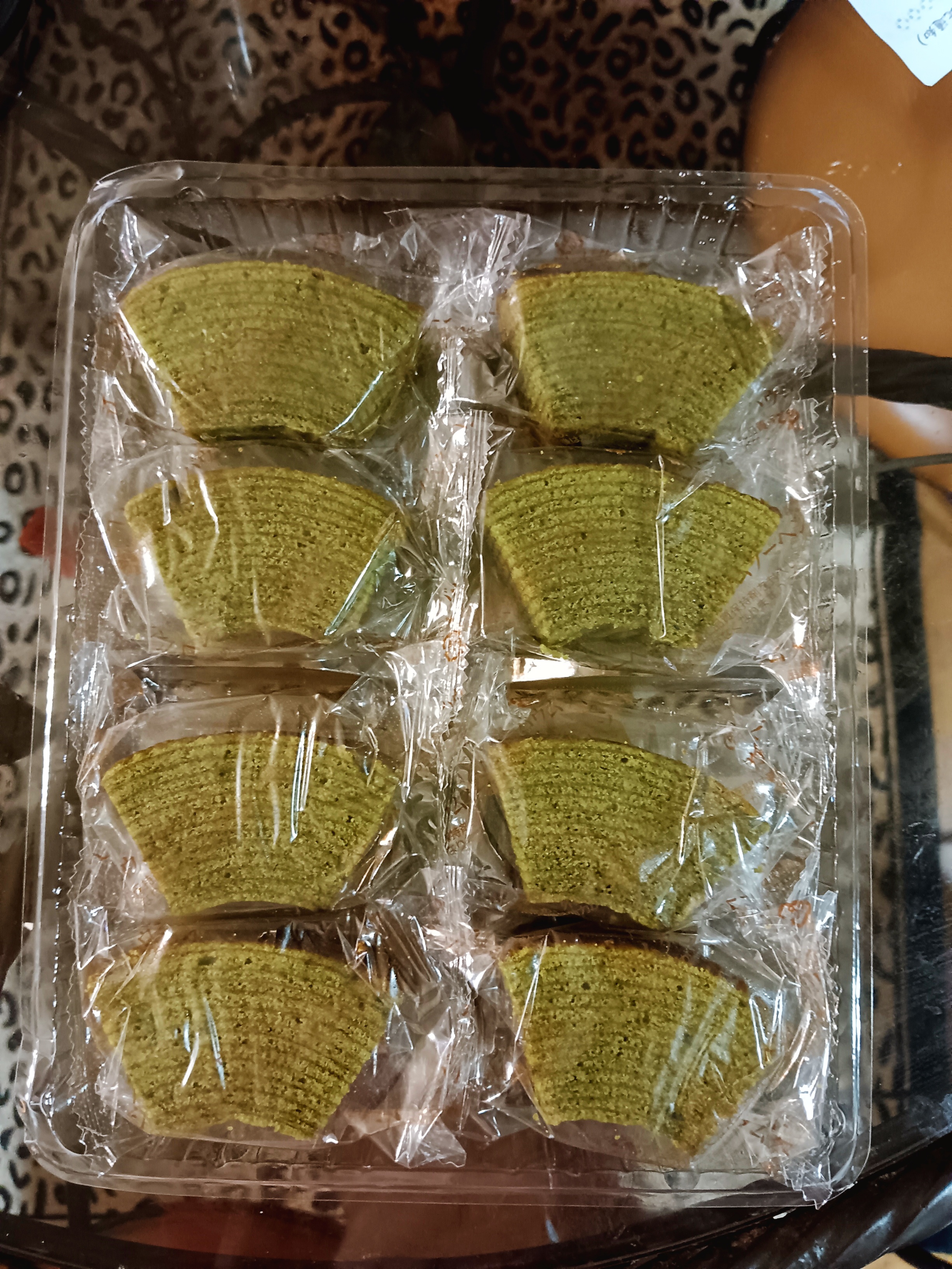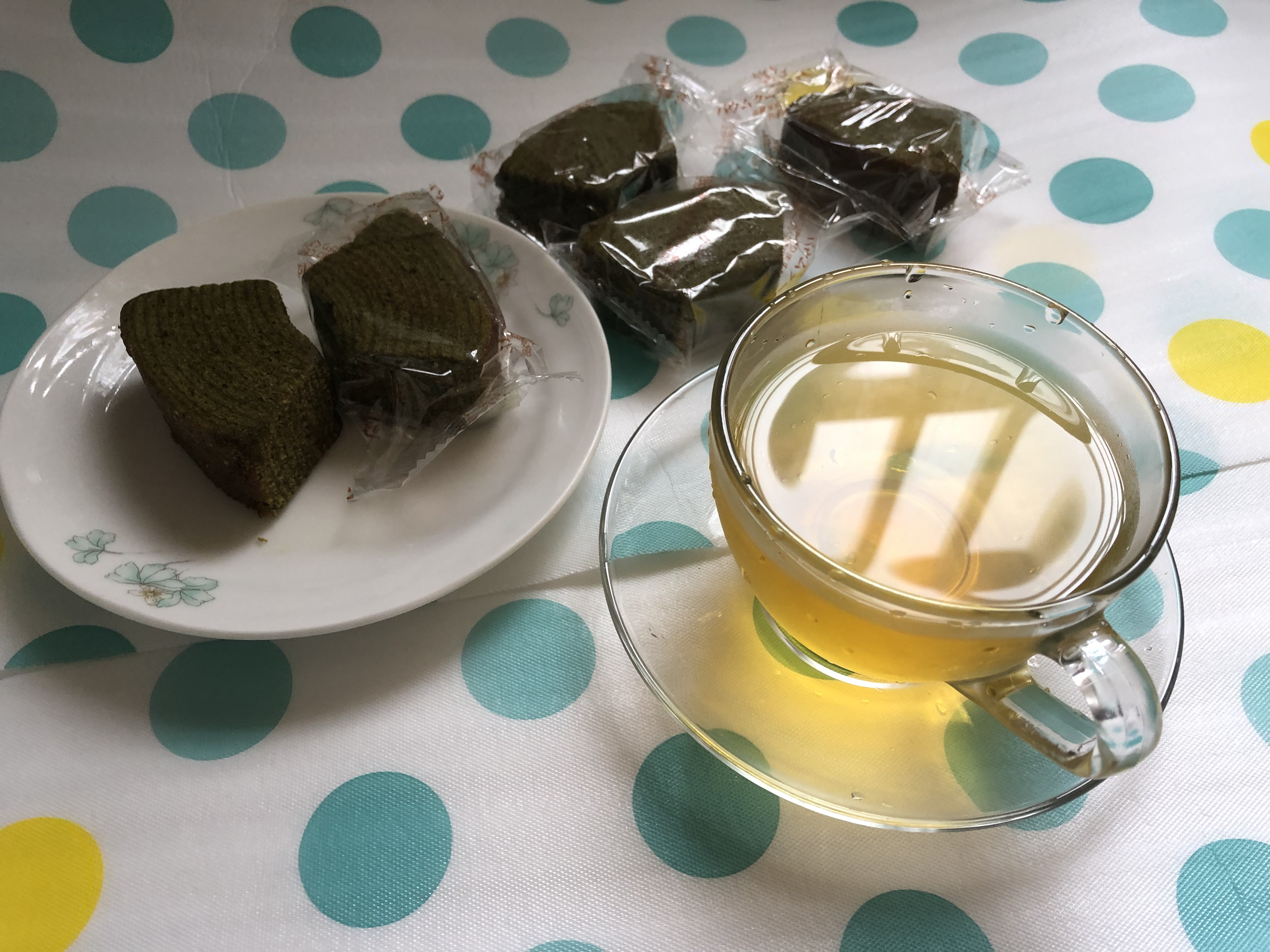 雞蛋、砂糖、小麥粉、人造奶油、酥油(芥籽油)、麥芽糖、抹茶、綠藻、牛奶、食鹽、氧化澱粉、甜味劑(D-山梨醇)、脂肪酸甘油酯、膨脹劑(碳酸氫鈉)、食用色素(黃梔子、胡蘿蔔素)、香料、(原材料的一部份含有小麥、雞蛋、牛奶、大豆)