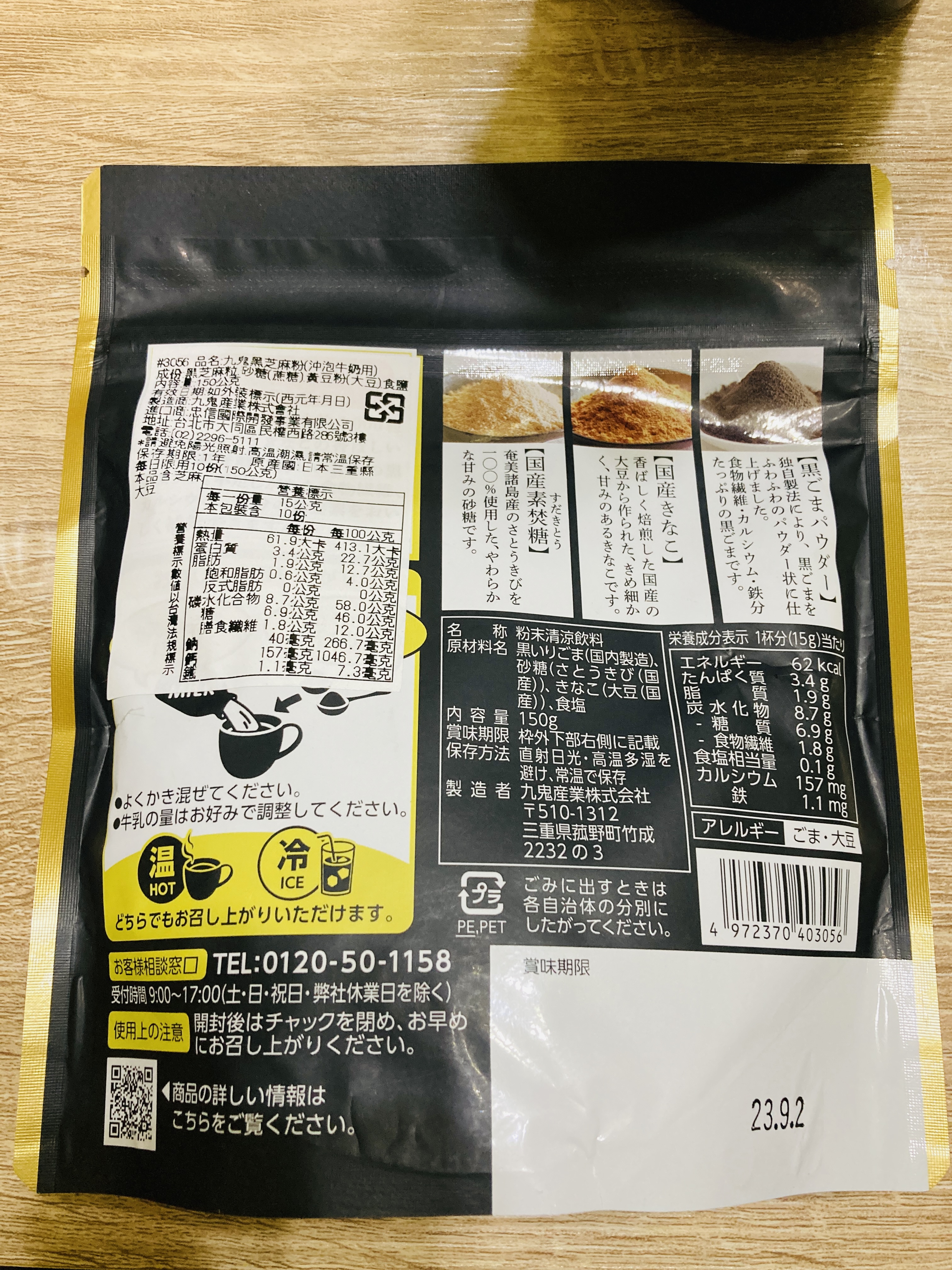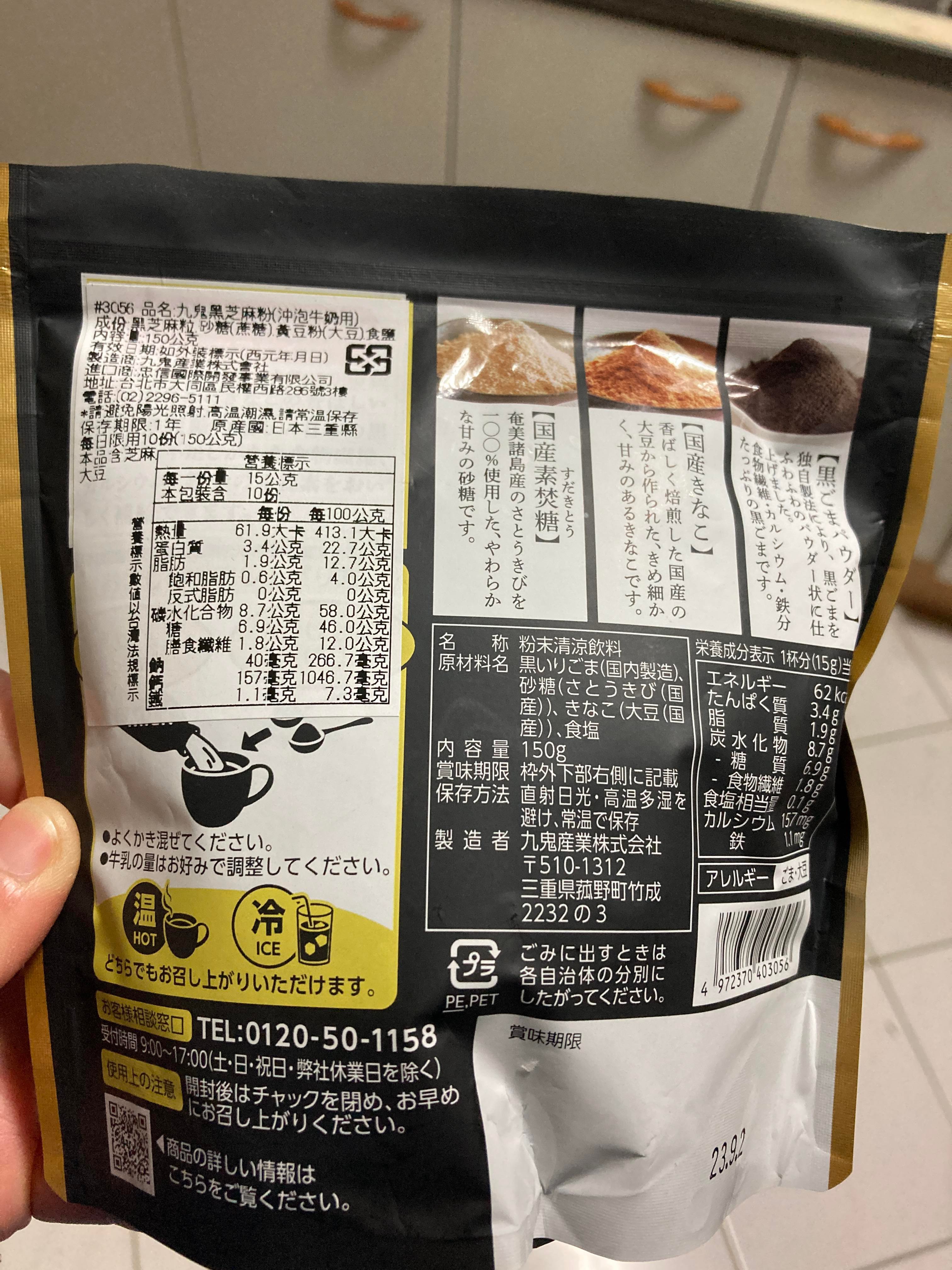 九鬼 黑芝麻粉 冷熱沖泡都美味 搭配豆漿牛奶更具風味
