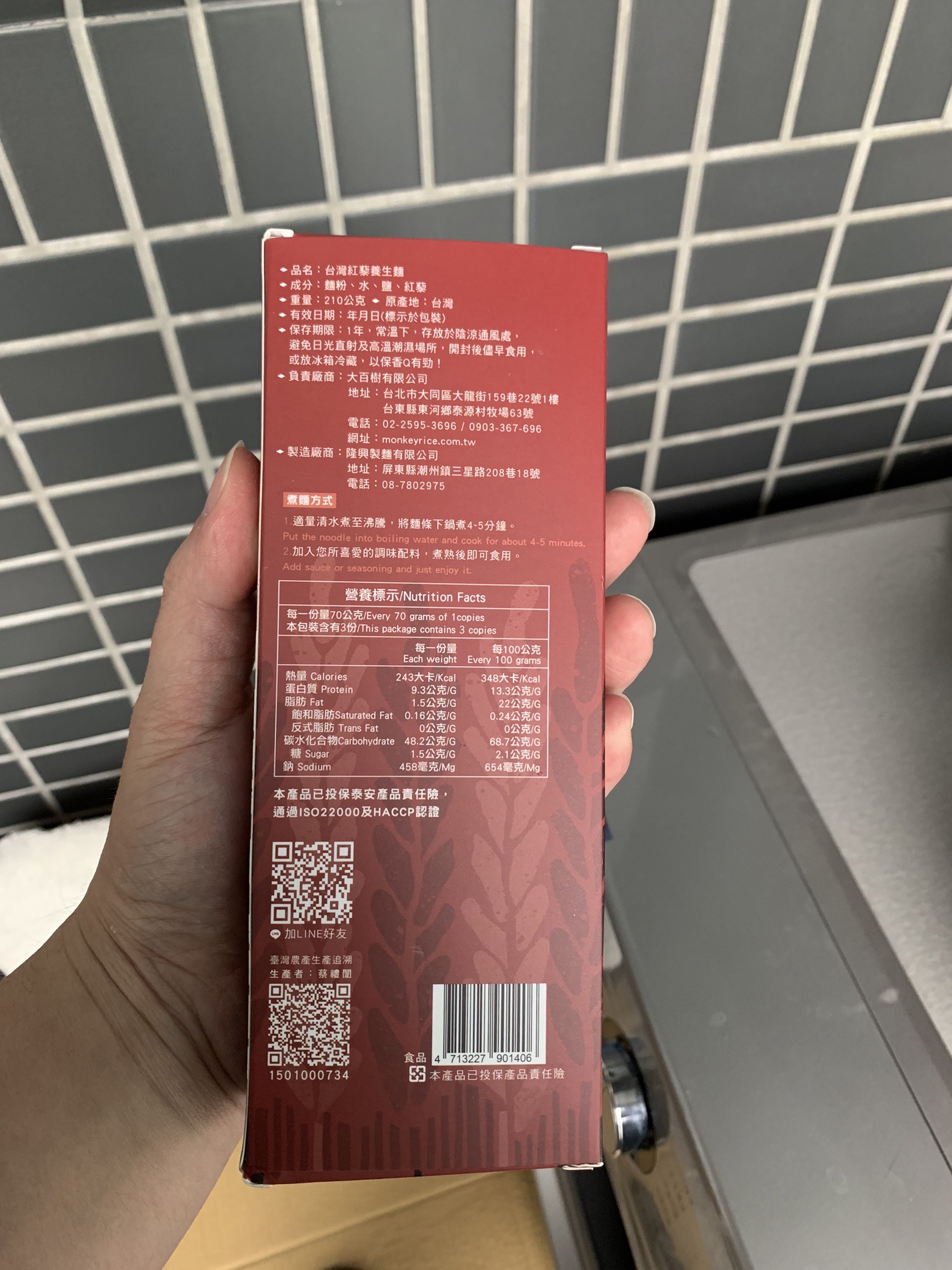 回列表 泰源幽谷獼米 台灣紅藜養生麵 喚起你體內的能量 市價199元 所需等級 一般會員以上 所需學分 60 體驗份數 15 關注人數 1362 申請人數 340 申請截止 品牌業者:泰源幽谷獼米 負責廠商 大百吉商號 廠商地址 台東縣東河鄉泰源村牧場63號 產地 台灣 試用產品規格 210g/包。 食品業者登錄字號 052519AML0Q01384 投保產品責任險字號 V-147761445-00000-7 心得分享 商品介紹 商品成分 使用方法 注意事項 體驗名單 8.9 泰源幽谷獼米 台灣紅藜養生麵 包裝美學 9.0 成分天然 9.4 麵條Q彈 8.8 料理便利 9.0 建議推薦 8.7 心得分享 14則 余敏娜 鑽石達人 62歲 臺北市 2022/01/16 對泰源幽谷獼米 台灣紅藜養生麵留下評價 8 這次收到的試吃品項是"泰源幽谷獼米 臺灣紅藜養生麵"。這款紅藜養生麵是以臺東生產的所製造,紅藜是臺灣原住民的傳統作物,富含膳食纖維、維生素及胺基酸。外包裝是咖啡色為底,白色及黑色字樣圖案的紙盒,210克的包裝,內含3束乾麵條,以一夾鏈袋包裝,開封後未全部食用時可以密封保存。我們將乾麵條放入沸水中烹煮5分鐘,烹煮後的麵條Q彈,即食有淡淡鹹味及穀類風味。烹煮後的麵條分別與炒松阪豬和青豆蝦仁拌勻後,即成一道美味的拌麵,全家人都很喜歡。 歐惠敏 金食達人 60歲 桃園市 2022/01/14 對泰源幽谷獼米 台灣紅藜養生麵留下評價 9 超幸運收到這款泰源幽谷獼米的台灣紅藜養生麵,號稱是超級食物的紅藜,想必拌麵一定會超好吃又營養。習慣每次在吃食物之前,都會先看一下成份,來確保到底吃進了甚麼東西XD看到背面的成分說明:【台灣紅藜養生麵】成分:麵粉、水、鹽、紅藜,是不是讓人很安心!!!紅藜養生麵的麵條沒有色素染色,也沒有其他額外的化學添加物。煮過的麵條吃起來口感很滑溜Q彈,我個人是滿喜歡的~料理做法:1.將500cc的水燒至沸騰,轉小火2.放入紅藜養生麵,約煮5分鐘(Q彈度最剛好)3.撈起麵條後,加烏醋+醬油+香油,攪拌均勻4.同鍋水不要浪費,直接燙青菜及想吃的食物當配料4.全部材料擺盤結束,就完成簡單營養又美味的乾拌麵了 謝宜蓁 金食達人 34歲 臺北市 2022/01/12 對泰源幽谷獼米 台灣紅藜養生麵留下評價 9 很高興能抽中這次的體驗活動。這次體驗的商品是紅藜養生麵,外包裝簡單明瞭,成分簡單,只有麵粉、鹽、水、紅藜,感覺對身體相當健康。打開包裝後可以看到裡面設計夾鏈袋的形式,對於夫妻兩人的小家庭相當方便,吃不完的可以方便儲存。這次烹煮方式是將麵條加入已經煮好的番茄湯中,參考外包裝的說明,將麵條加入湯裡煮5至10分鐘,因為麵條較粗,所以有延長烹煮時間,煮好之後的麵條軟硬適中,也不會像有些麵條中間會有硬硬的麵粉感,口感相當好,也不會煮到太軟爛。整體來說會蠻推薦大家試試紅藜養生麵,但是價格再低一點會更吸引人。 姚玉華 鑽石達人 56歲 臺中市 2022/01/12 對泰源幽谷獼米 台灣紅藜養生麵留下評價 10 紅藜養生麵很高興入選泰源幽谷獼米 台灣紅藜養生麵體驗資格,平常不常吃白麵條,紅藜的好處有1.類黃酮、甜菜苷等植化素2.膳食纖維3.不飽和脂肪酸 4.不含麩質 5.低GI值,真的讓吃麵變成養生又健康的事。 收到紅藜養生麵有點驚豔,包裝很精美,麵條的顏色很美,麵條很Q很好吃,料理也很方便。 Angela 金食達人 47歲 臺北市 2022/01/13 對泰源幽谷獼米 台灣紅藜養生麵留下評價 9 - 產品以夾鏈袋包裝,設計完善精美- 麵條成分簡單吃起來安心- 麵條煮前所呈現的淡紅色在煮後顏色會變得更淡,更可確認產品成分單純- 麵條易煮,口感Q彈不軟爛- 選用台灣紅藜製作麵條,優於一般麵條的營養成分,快速做個拌麵,簡單營養又美味,值得推薦給親朋好友 劉瑞菁 金食達人 46歲 高雄市 2022/01/14 對泰源幽谷獼米 台灣紅藜養生麵留下評價 6 深紅色包裝很漂亮,質感不錯,生麵本身帶有紅藜的淺紅色,感覺蠻漂亮的,讓人有想嘗試吃吃看的食慾;這次煮豬肉蟹菇橄欖油拌麵,煮後的紅藜麵退去淺紅色變為一般麵體顏色,在淋上豬肉蟹菇橄欖油之前先吃一根麵看看,沒有吃到什麼特殊的香味或味道,麵體雖不算超級有彈性但也不會軟軟的,就是普通麵體的感覺,原本以為一束少少的感覺,煮完竟然變一大盤,2個人吃超飽。 邱郁婷 金食達人 38歲 臺中市 2022/01/14 對泰源幽谷獼米 台灣紅藜養生麵留下評價 9 有別於市面他牌的快煮麵,包裝可愛有質感煮個餐點也讓人開心。夾鍊袋的設計很方便且貼心的分成三小束份量都拿捏好了,一個人的午餐一次一束剛剛好。麵條成分簡單僅有麵粉、水、鹽、紅藜,以往很少接觸到紅蔾相關的食品,不知道怎麼料理比較適合,看著麵條顏色漂亮隨意搭上簡單的調味,別有一番風味。 Fireci 金食達人 29歲 新北市 2022/01/15 對泰源幽谷獼米 台灣紅藜養生麵留下評價 10 感謝提供本次泰源幽谷獼米-紅藜養生麵試吃體驗大家都知道紅藜營養非常豐富,加上這款麵成分天然簡單(麵粉、水、鹽、紅藜)成為吸引我的原因。收到產品,紅色包裝盒繪有紅藜植株,下方有挖洞讓人可以看到內容物的麵條,設計精美有質感。紅藜養生麵外觀呈現淡淡的紅色,聞起來有別於一般麵條的麵粉味還帶有一種特殊的氣味(應該是紅藜的香氣),烹煮後麵條吃起來像義大利麵條一樣非常Q彈有嚼勁,是我愛的口感,搭配燉羊肉一起品嘗超讚! ABCDEFG 金食達人 36歲 新北市 2022/01/16 對泰源幽谷獼米 台灣紅藜養生麵留下評價 9 申請試用的時候沒仔細看