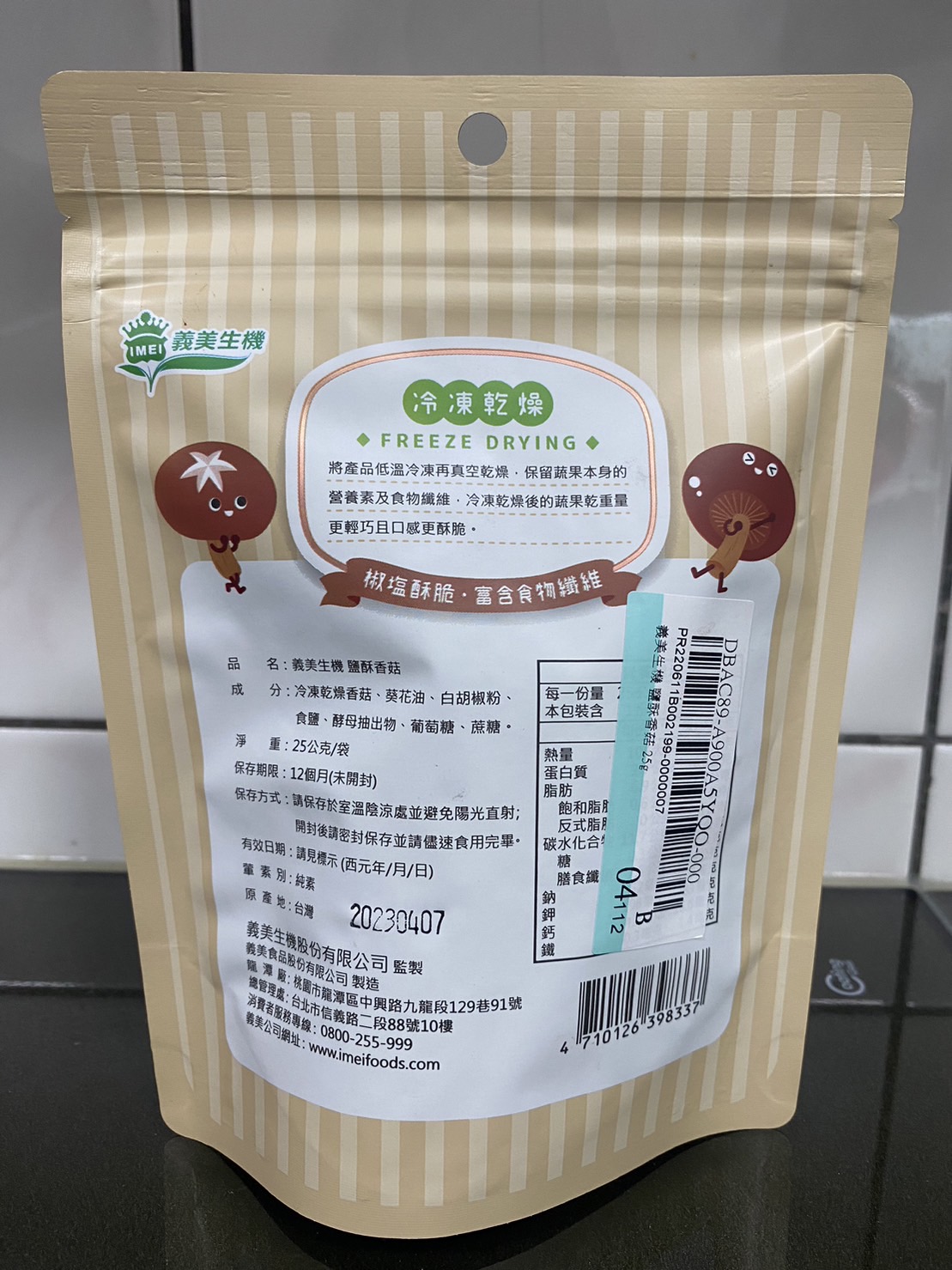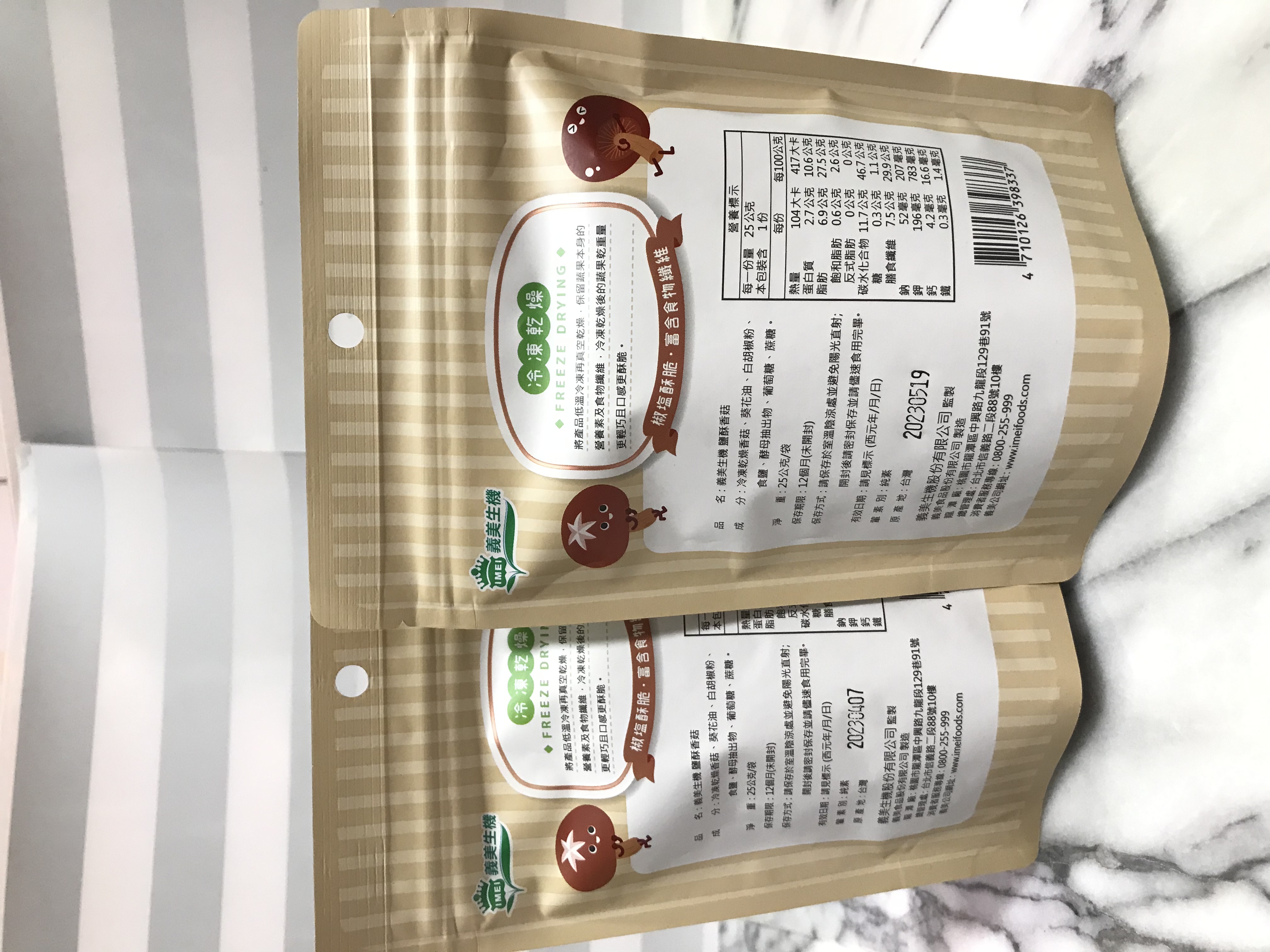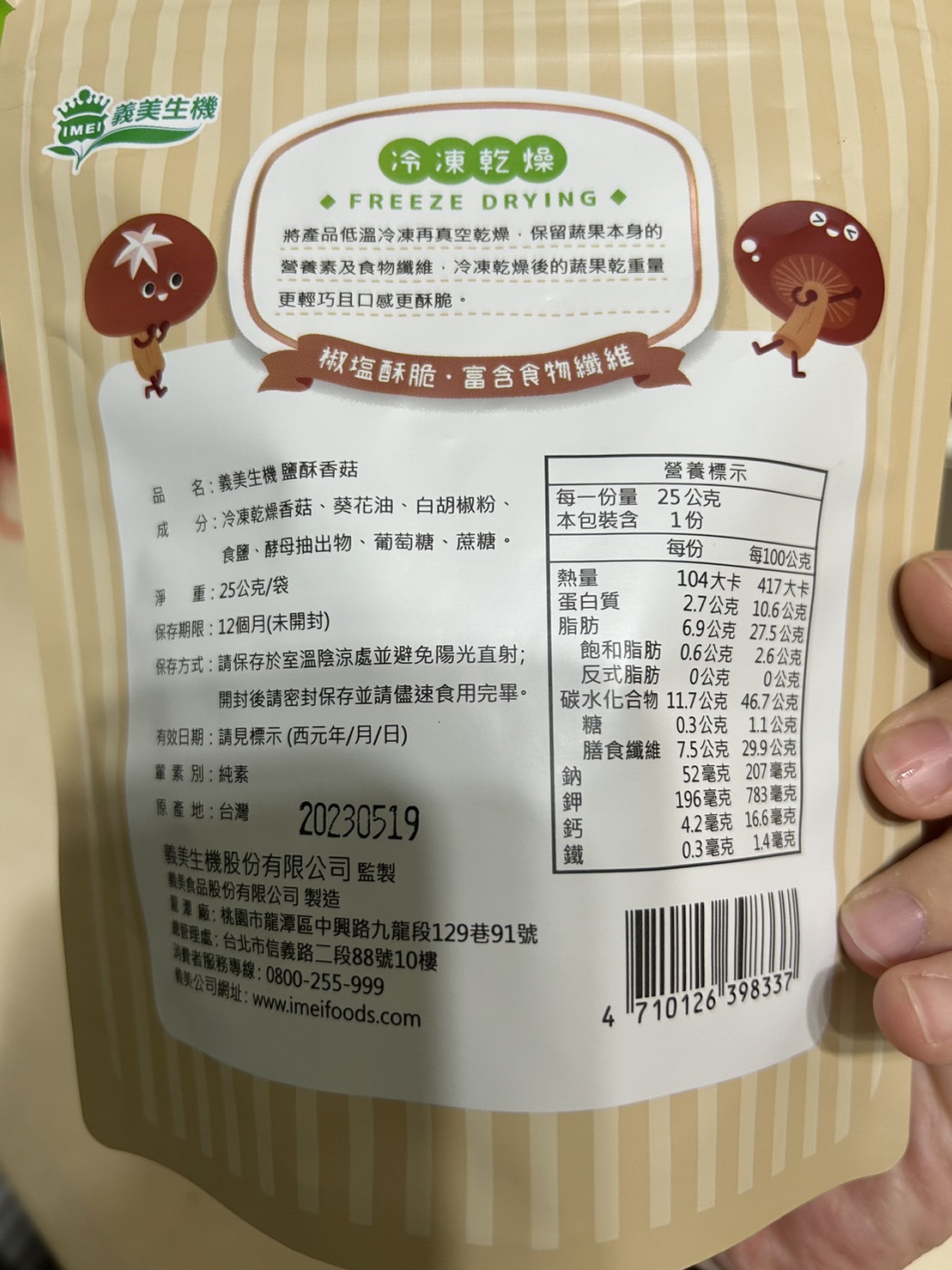 回列表 義美生機 鹽酥香菇 整朵台灣優質香菇太空技術乾燥 保留營養鎖住風味 市價160,2袋 所需等級 一般會員以上 所需學分 50 體驗份數 15 關注人數 1564 申請人數 429 申請截止 品牌業者:義美生機 負責廠商 義美生機 廠商地址 桃園市龍潭區中興路九龍段129巷91號 產地 臺灣 試用產品規格 25g/袋,2袋 食品業者登錄字號 A-123994515-00000-6 投保產品責任險字號 0885第08PDT00466號 心得分享 商品介紹 商品成分 使用方法 注意事項 體驗名單 8.2 義美生機 鹽酥香菇 酥脆口感 7.4 食用方便性 8.9 涮嘴程度 7.6 風味香氣 8.9 建議推薦 7.7 心得分享 14則 曹瑋玲 金食達人 46歲 臺北市 2022/11/08 對義美生機 鹽酥香菇留下評價 10 可愛封面、易撕的包裝,加上可再密封的夾鏈袋,這部份包裝評分滿分~~打開便有鹽酥風味的香菇香氣,朵朵完整,這部份賣相很好;做法是冷凍乾燥,非傳統油炸,所以不像市場上賣的那種油炸的酥脆感那麼強,保留了原本香菇綿綿的感覺,但又很好咀嚼,不會有咬不斷的纖維。包裝寫的椒鹽酥脆,與想像中的酥脆感有些落差。但不會影響好吃的程度,調味不錯。轉過來看看包裝後面營養標示中的鈉含量,每包只有52毫克,不用擔心身體水分滯留,也不用擔心對心血管造成負擔。更棒的是,整包吃完膳食纖維竟然有了7.5公克!堪稱健康的零食。素食者也可以使用。我吃的時候是配著黑咖啡吃的,當成下午茶的飽腹感也很足夠~~唯獨單價相對較高,希望有更多懂的人能買帳囉! 吳筱萱 金食達人 39歲 新北市 2022/11/09 對義美生機 鹽酥香菇留下評價 9 很健康原味無添加的小零食,非常適合小孩作為營養零食的選擇。沒有過多的調味,不會很鹹,一份的鈉含量也比一般零食來的少,還能補充到豐富鉀跟膳食纖維,對血壓高的人也比較沒有負擔。香菇都是完整的沒有破損的口感很酥脆,很喜歡這種健康又天然的零食,大人小孩都適合。 林強 金食達人 46歲 高雄市 2022/11/09 對義美生機 鹽酥香菇留下評價 8 一開始就對本產品抱持相當興趣收到後發現產品外包裝非常粉紅有趣讓人眼睛一亮開啟後確實可以聞到淡淡地香菇芬芳產品內容物可見整朵整朵地完整的整顆香菇倒出後仍然沒有隨便碎裂大小多半適中,適合直接取用咬下去表皮芳香誘人內層則看個人喜好整個內層與外層表皮落差甚大沒有一點脫水乾燥的感覺反而較近似一般香菇仍然帶有淡淡水分與香菇固有的土味把原本新鮮的香菇味道接近八成地鎖在脫水乾燥後的表皮下單純、原質,沒有其他任何調味實在神奇不已若不介意類似鮮摘香菇土味的人會很喜歡值得推薦給喜歡『原食』又希望能久放的人 Ling 金食達人 31歲 南投縣 2022/11/09 對義美生機 鹽酥香菇留下評價 7 包裝小巧可愛,份量不多,適合一人享用。香菇是一整朵下去烘烤的,有些香菇還滿大朵的,不能一口咬下,覺得大小如果在小一些會比較方便食用。香菇口感有點綿綿的,不是酥脆的口感,可能之前在市面上吃到的香菇餅乾都是一片一片酥脆的那種,這種綿密的口感,個人吃起來不太習慣。香菇吃下去後味道滿濃厚的,有香菇的鮮味,喜歡重口味的香菇愛好者可以嘗試。 劉怡青 金食達人 34歲 高雄市 2022/11/10 對義美生機 鹽酥香菇留下評價 10 義美生機 鹽酥香菇 整朵台灣優質香菇太空技術乾燥 保留營養鎖住風味 不同於以往的蔬果脆片是吃起來脆脆的 感覺像在吃新鮮香菇 不知道是不是跟現在流行的肉凍乾相同道理 泡進水裡會還原成香菇 味道很好沒有特別多調味料 我很喜歡 還有香菇的香味 棒棒的👍現在就是要吃無過多調味的零食 好吃😋 游盛泯 金食達人 27歲 彰化縣 2022/11/10 對義美生機 鹽酥香菇留下評價 9 很榮幸能夠入選鹽酥香菇的試用體驗活動收到包裹打開 是兩小包精美的包裝 整體的質感還不錯一打開 香菇的香氣就瞬間撲鼻而來 並略帶鹽酥的香氣每塊香菇的個體都算大 吃起來的口感雖然沒有想像中的酥脆稍微偏軟 可是不影響整體食用起來的體驗吃完香菇的香氣會一直停留在嘴巴中 鹽酥也夠入味非常建議喜歡吃香菇的人可以去吃看看!! 殷聖善 金食達人 50歲 桃園市 2022/11/10 對義美生機 鹽酥香菇留下評價 6 包裝很可愛,如果是放在架上會吸引人想吃看看。打開包裝後有濃濃的香菇氣息,第一口有咬到很多空氣,但沒有酥脆的感覺,椒鹽香氣不錯,多嚼幾口後會在口中變成綿綿的一塊,不好吞嚥。整體而言是健康的食品,味道好,只可惜口感不是我喜歡的。 許玳嫣 金食達人 29歲 新北市 2022/11/10 對義美生機 鹽酥香菇留下評價 10 這是個神奇的食品,第二天就不小心吃完了。😂這款外表超神奇,吃起來是毛茸茸的感覺而不是常見的蔬果乾又硬又光滑的口感,聞起來超香但其實沒什麼味道,就是淡淡的香菇味,但是就是很唰嘴,兩包開封後都撐不過一小時!大推! tai ibd 銀食達人 55歲 臺北市 2022/11/10 對義美生機 鹽酥香菇留下評價 8 期待的菇菇來了。一開袋看到整朵的香菇,外觀美觀吸睛。一聞香氣,菇味十足,香氣濃郁。一掰半,酥脆的質感,一口吃下,果真酥脆十足,再吃半個,讓人試一口後想再吃一口的吸引力不減。通常果乾都是水果類較多,一般的鹹味蔬果乾,多是切片,而義美的鹽酥香菇,主打選用台灣本產蔬果,台灣香菇獨特的香味,加上用使用冷凍乾燥的技術而非油炸,保持完整香菇原型,且自然少了油耗味,吃起來心理上也減少對高油零食的體重罪惡感(哈哈),