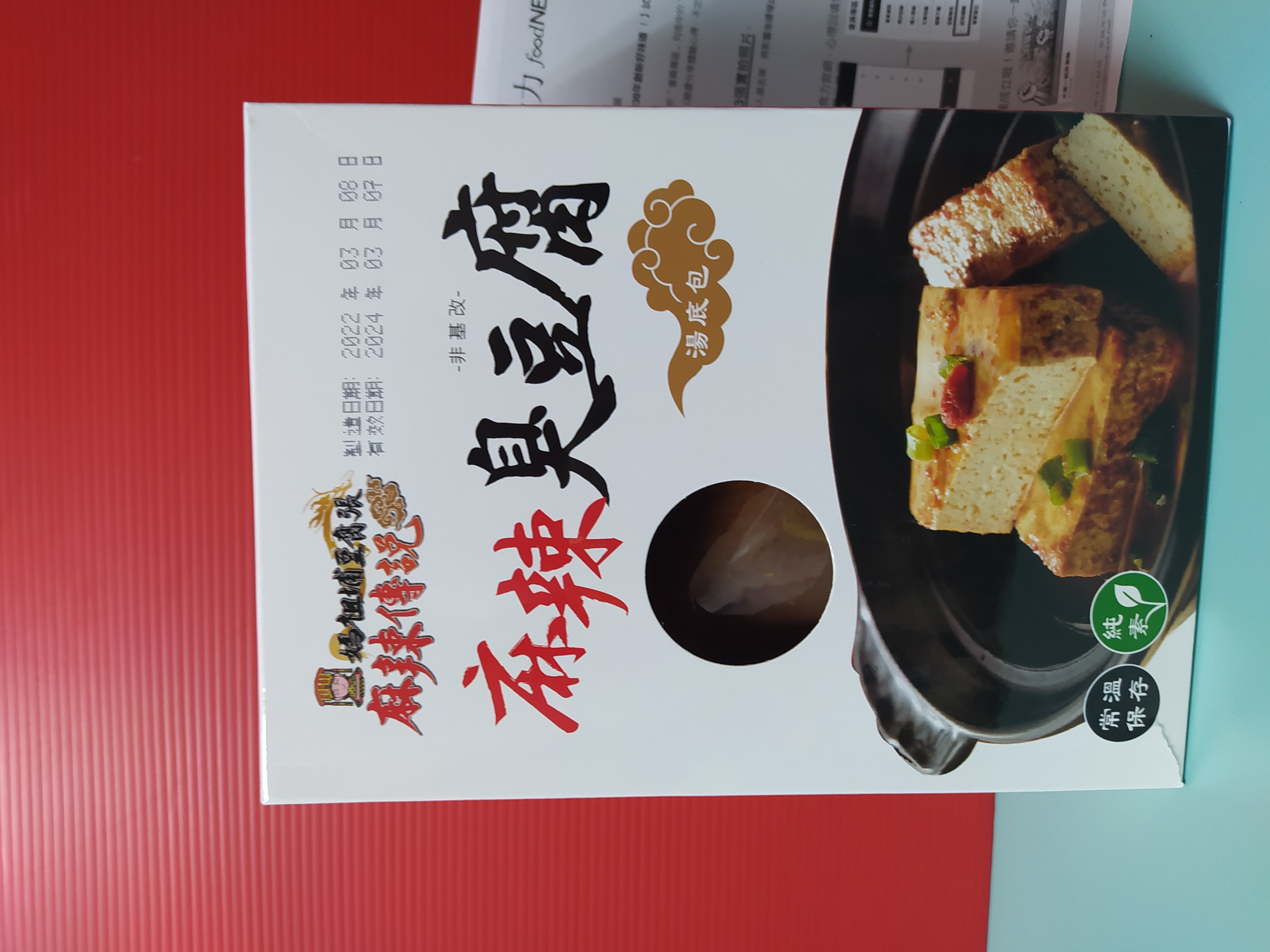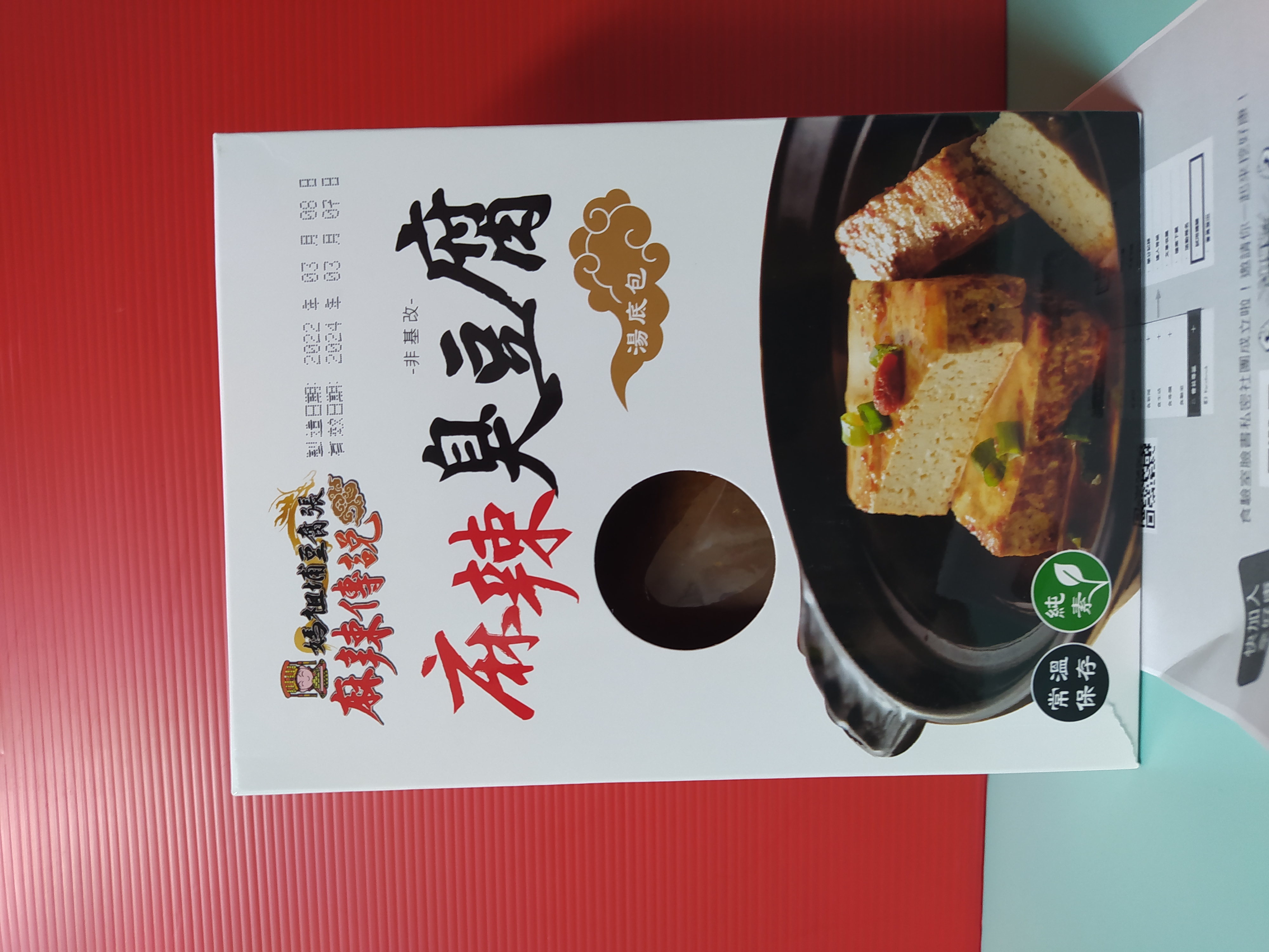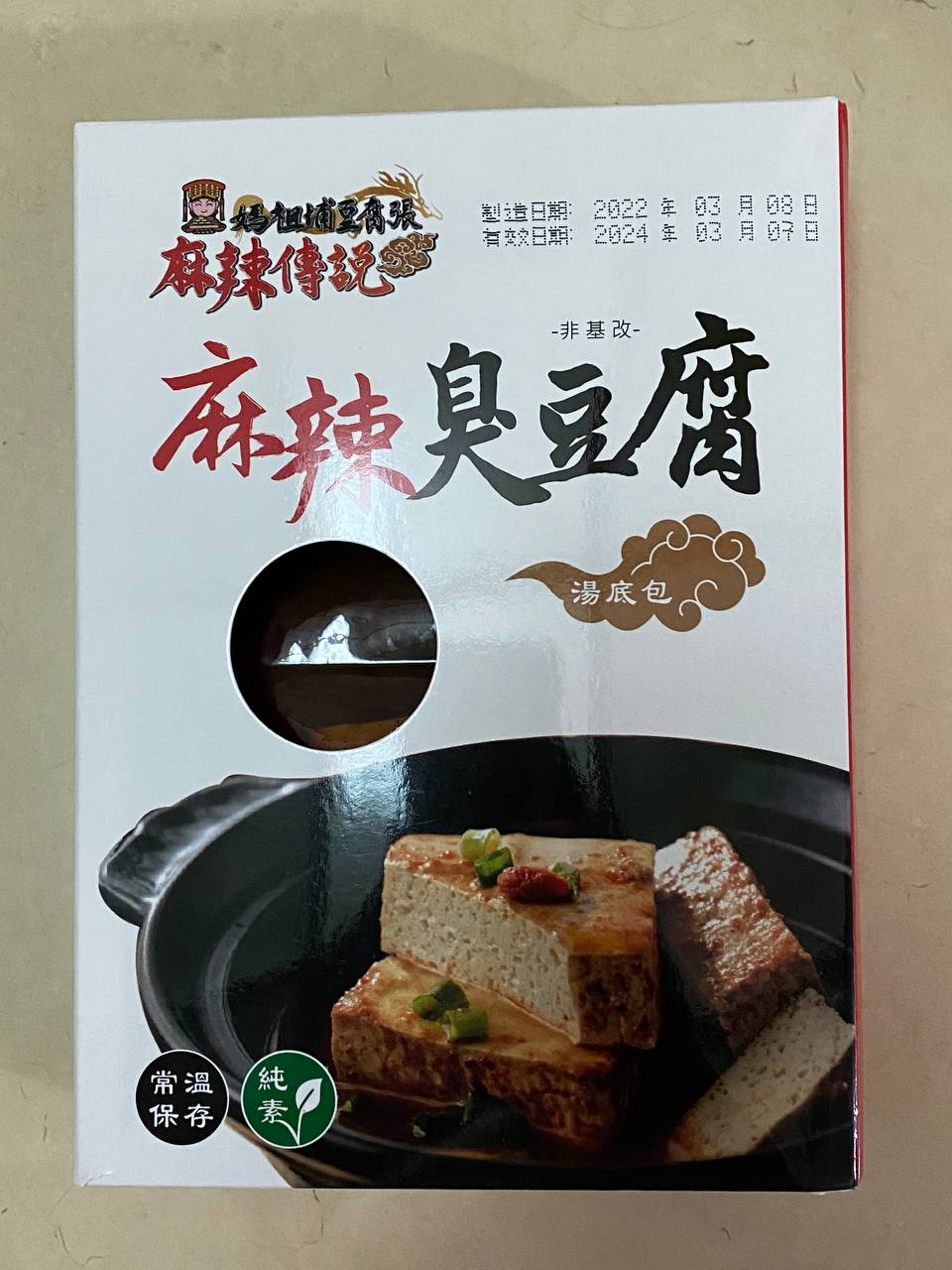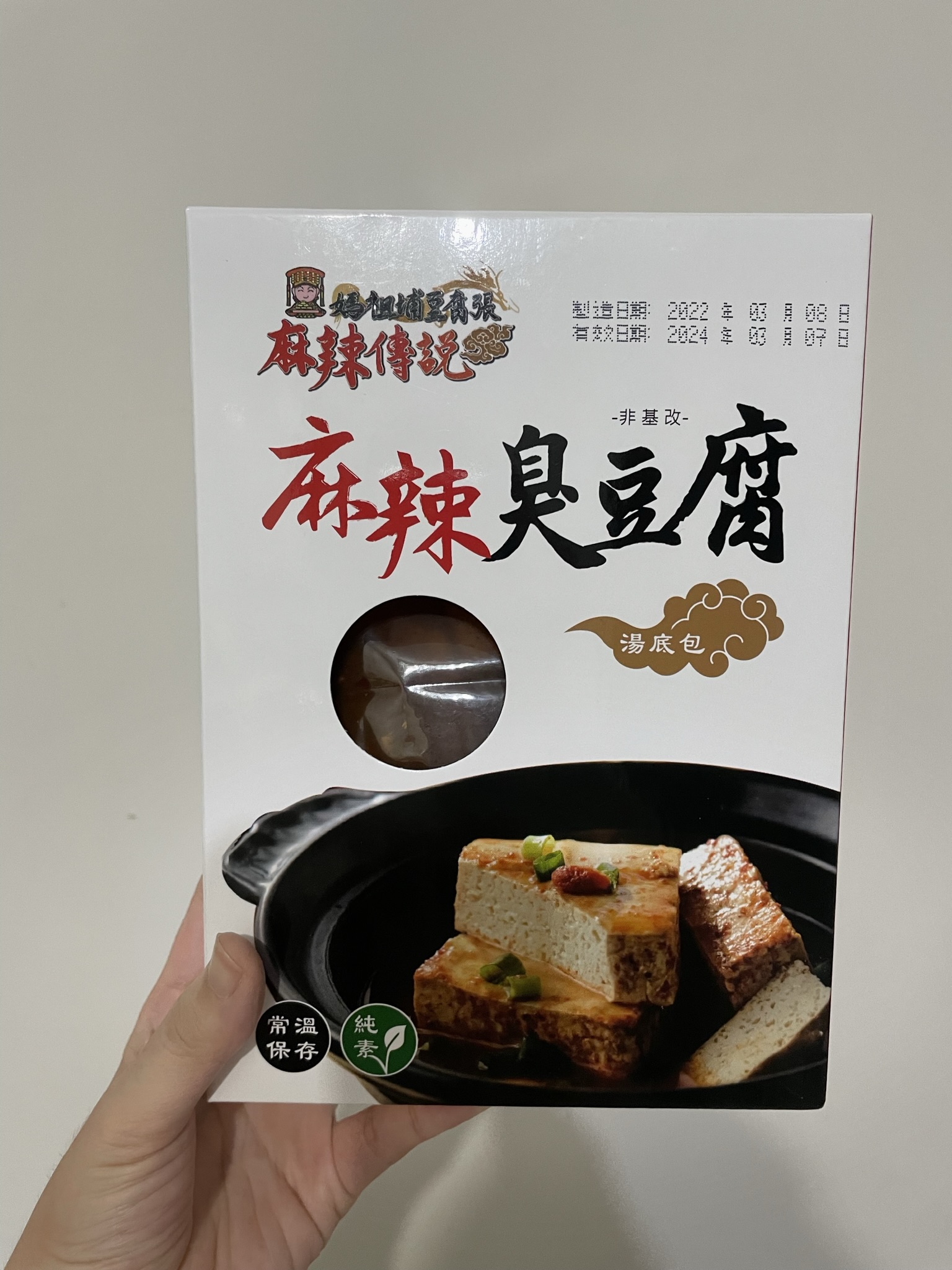 臭豆腐(非基改豆腐)、辣豆瓣醬(辣椒、非基改黃豆、米、鹽、糖、香油、食品添加物〔乙醯化己二酸二澱粉、玉米糖膠、醋磺內酯鉀、甘草萃、己二烯酸鉀、乳酸、琥珀酸二鈉、5’-次黃嘌呤核苷磷酸二鈉、5’-鳥嘌呤核苷磷酸二鈉、食用紅色六號〕)、麻辣上湯(辣椒、花椒、大豆油、鹽、酒釀(米、酒麴)、糖、豆豉(黑豆、鹽)、郫縣豆瓣醬(蠶豆、辣椒、小麥粉、鹽、水)、八角、桂皮、芝麻、鮮蔬調味粉(麥芽糊精、鹽、糖、酵母萃取物、高麗菜抽出物、水解植物蛋白、香菇萃取物)、L-麩酸鈉、辣椒精(辣椒抽出物、脂肪酸甘油酯))、麻辣湯底(L-麩酸鈉、花椒、紅辣椒、鹽、糖、酵母粉、黑胡椒、麥芽糊精、水解大豆蛋白、八角、胺基乙酸、酵母抽出物、三奈、小茴香、5’-次黃嘌呤核苷磷酸二鈉、5’-鳥嘌呤核苷磷酸二鈉、川芎、DL-胺基丙酸、黃豆、小麥、琥珀酸二鈉、醬油、肉桂、當歸、薑、胡荽、甘草、丁香、荳蔻、白芷、白芍、黨蔘、黑麻油、L-天門冬酸鈉、檸檬酸鈉、中鏈三酸甘油酯、二氧化矽、氧化羥丙基澱粉、黃耆、熟地、紅棗、辛烯基丁二酸鈉澱粉、人蔘、枸杞、紅花籽油、香料、焦糖色素、白菜抽出物、維生素B1、乳酸、紅蘿蔔抽出物、甘松、異抗壞血酸鈉)、水、紅棗、草果、白荳蔻、黨蔘、枸杞、當歸。
