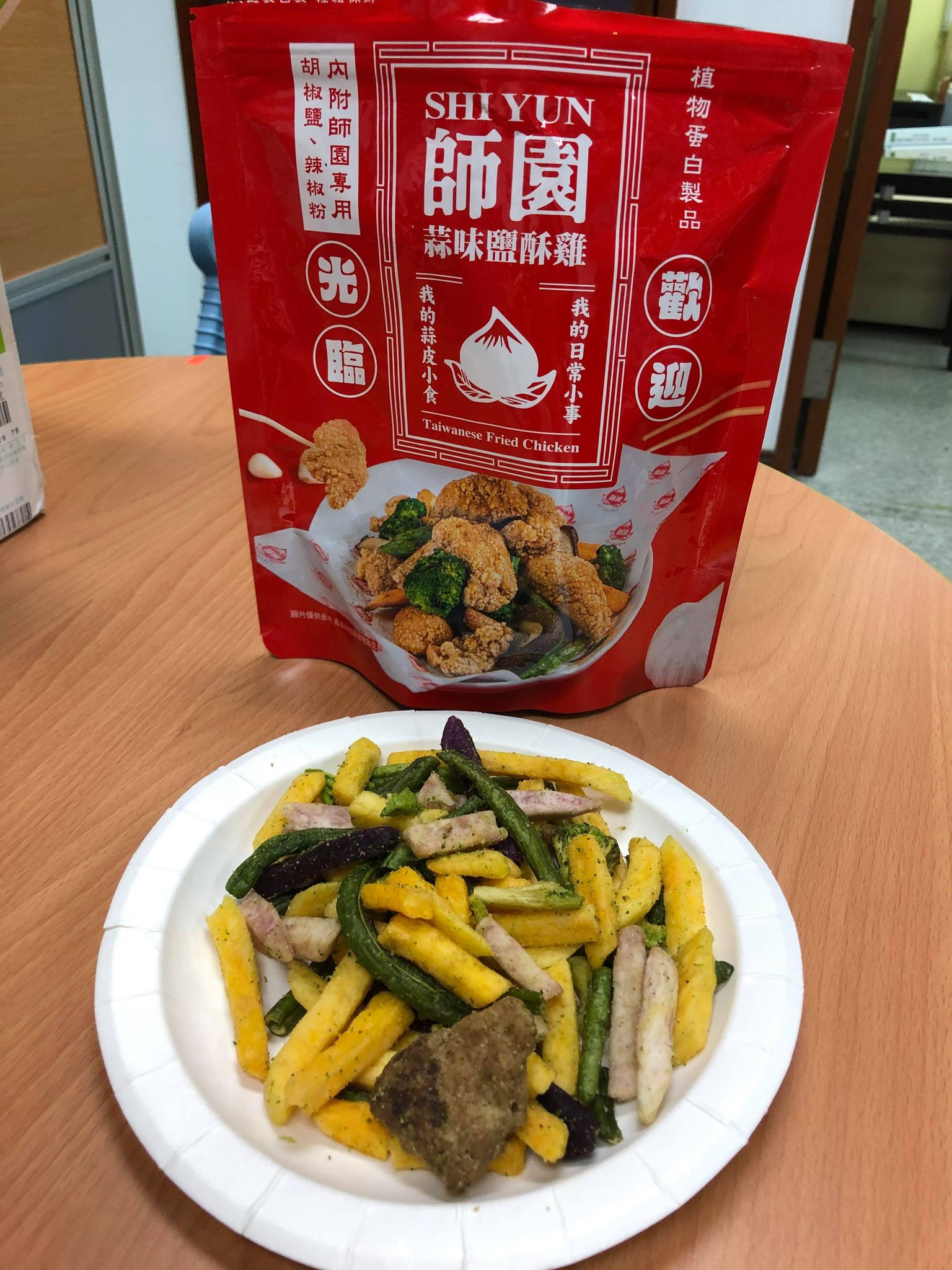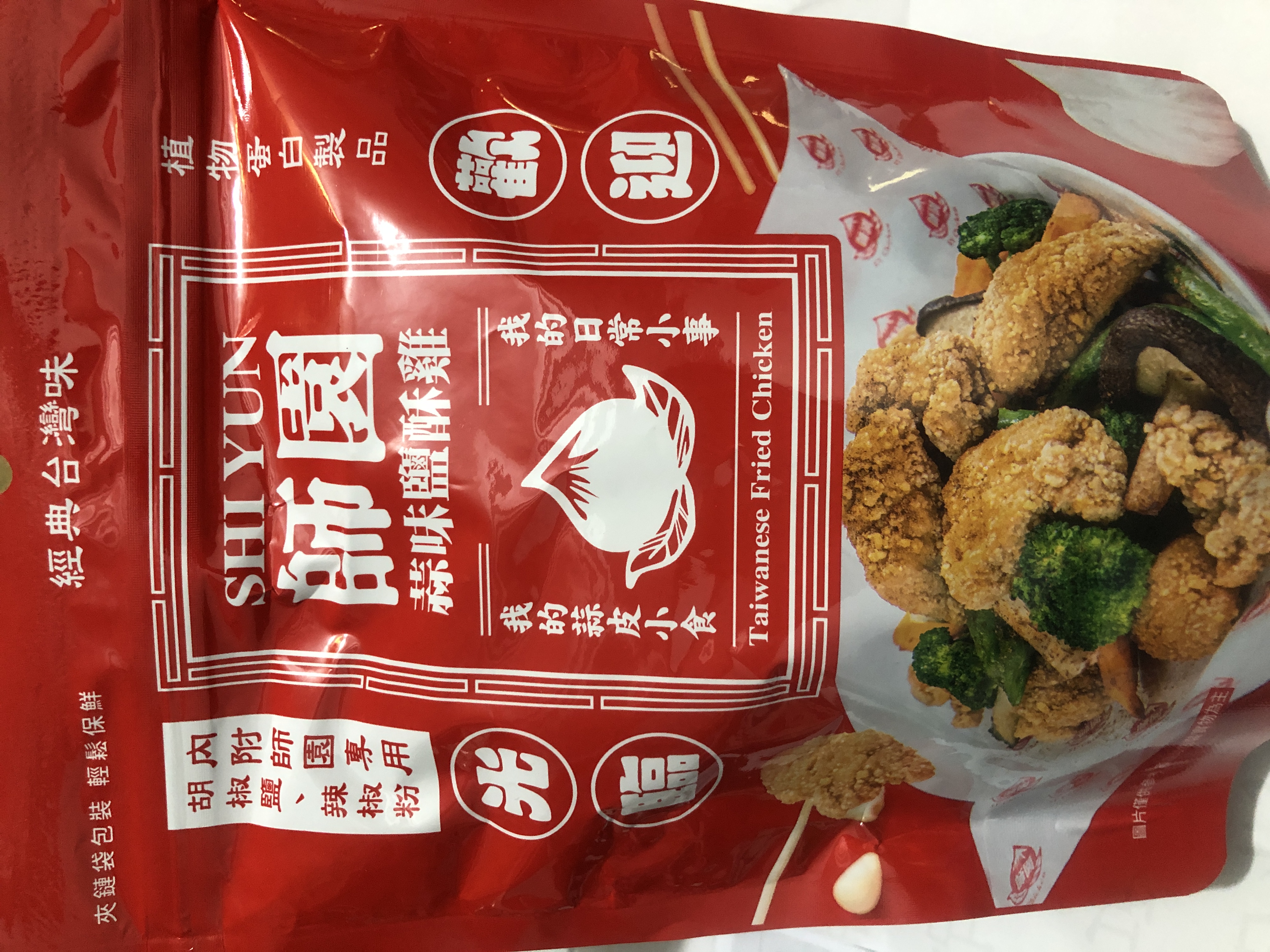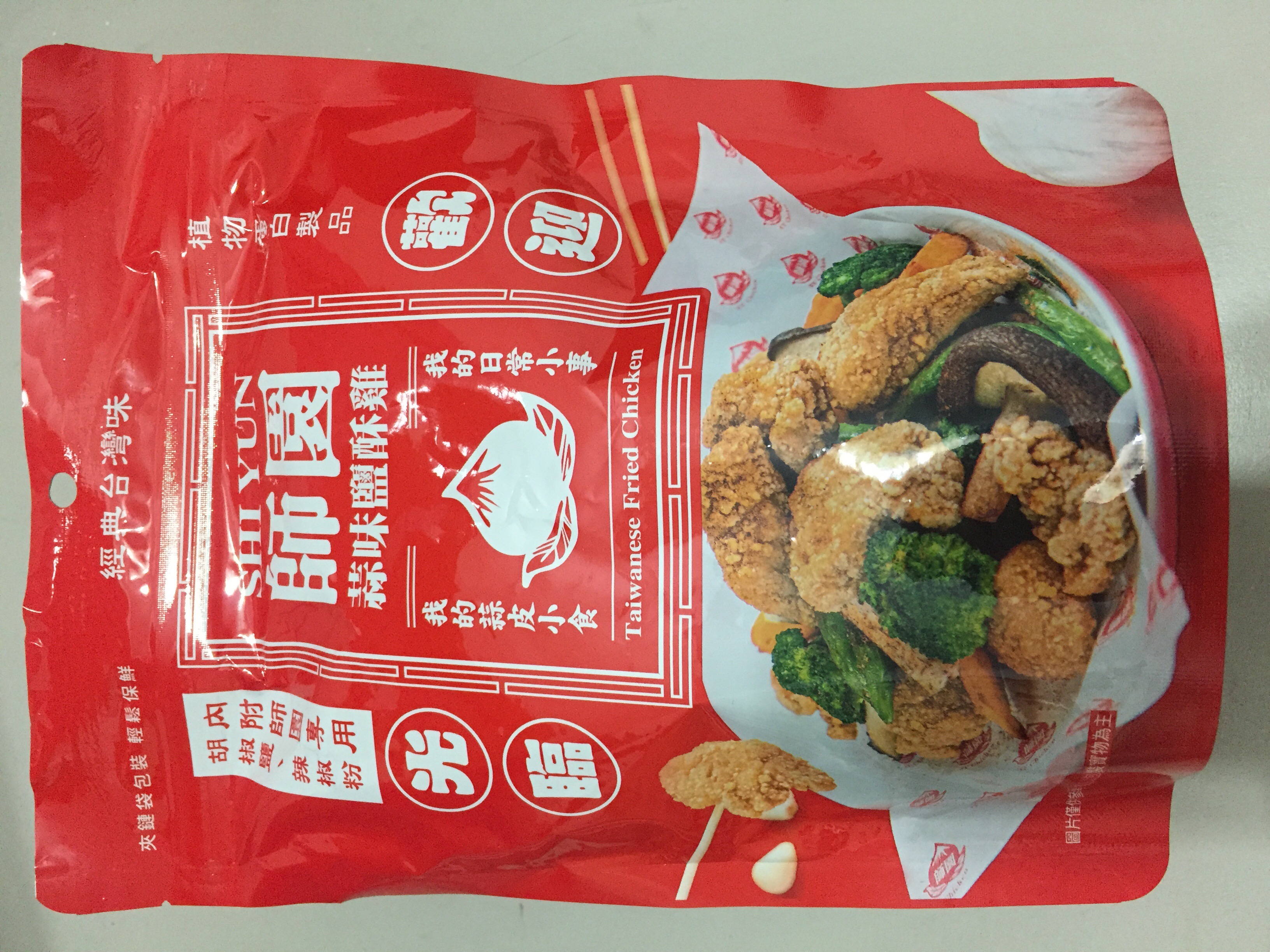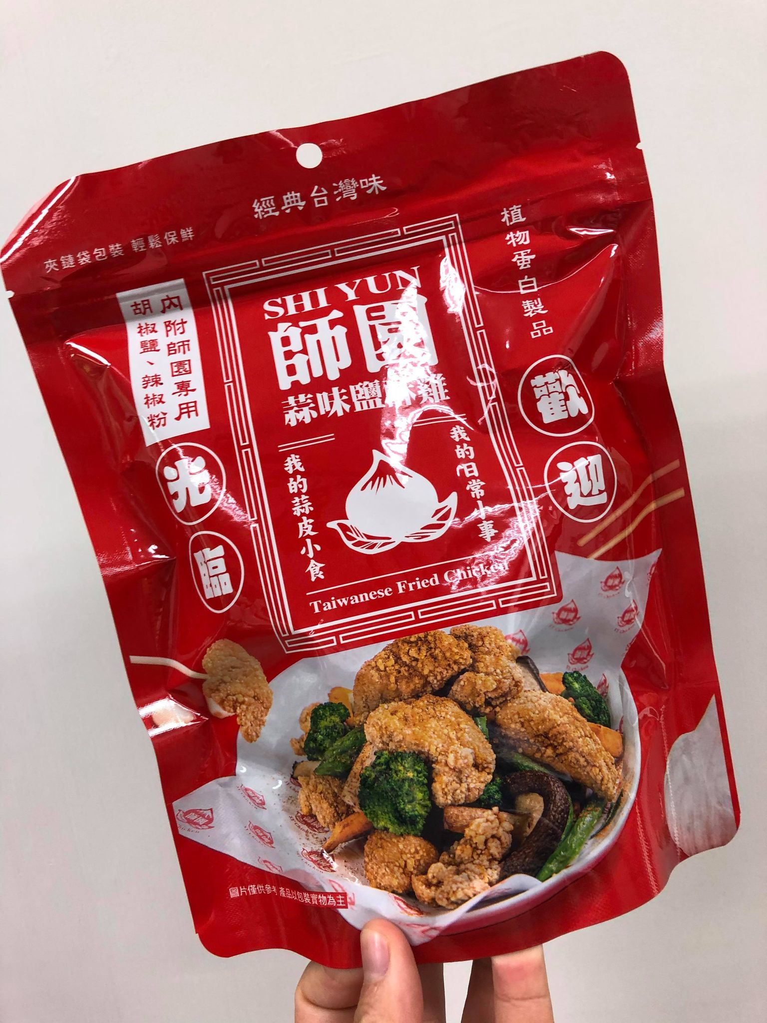 植物肉[非基改大豆蛋白、小麥蛋白、大豆油、蛋白粉、修飾澱粉(醋酸澱粉)、糖、樹薯澱粉、香料、鹽、L-麩酸鈉、呈味核苷酸二鈉、白胡椒粉]、地瓜、敏豆、紫地瓜、青花菜、芋頭、香菇、杏鮑菇、蒜片、蒜粉(蒜片、甘藷粕粉)、五香粉(小茴、肉桂、大茴香、丁香、花椒)、棕櫚油、麥芽糖 內附師園胡椒鹽 成分:鹽、香辛料(白胡椒、黑胡椒、大蒜、辣椒、甘草、薑、丁香、百草粉、肉桂)、L-麩酸鈉、砂糖、二氧化矽 內附師園辣椒粉 成分:辣椒