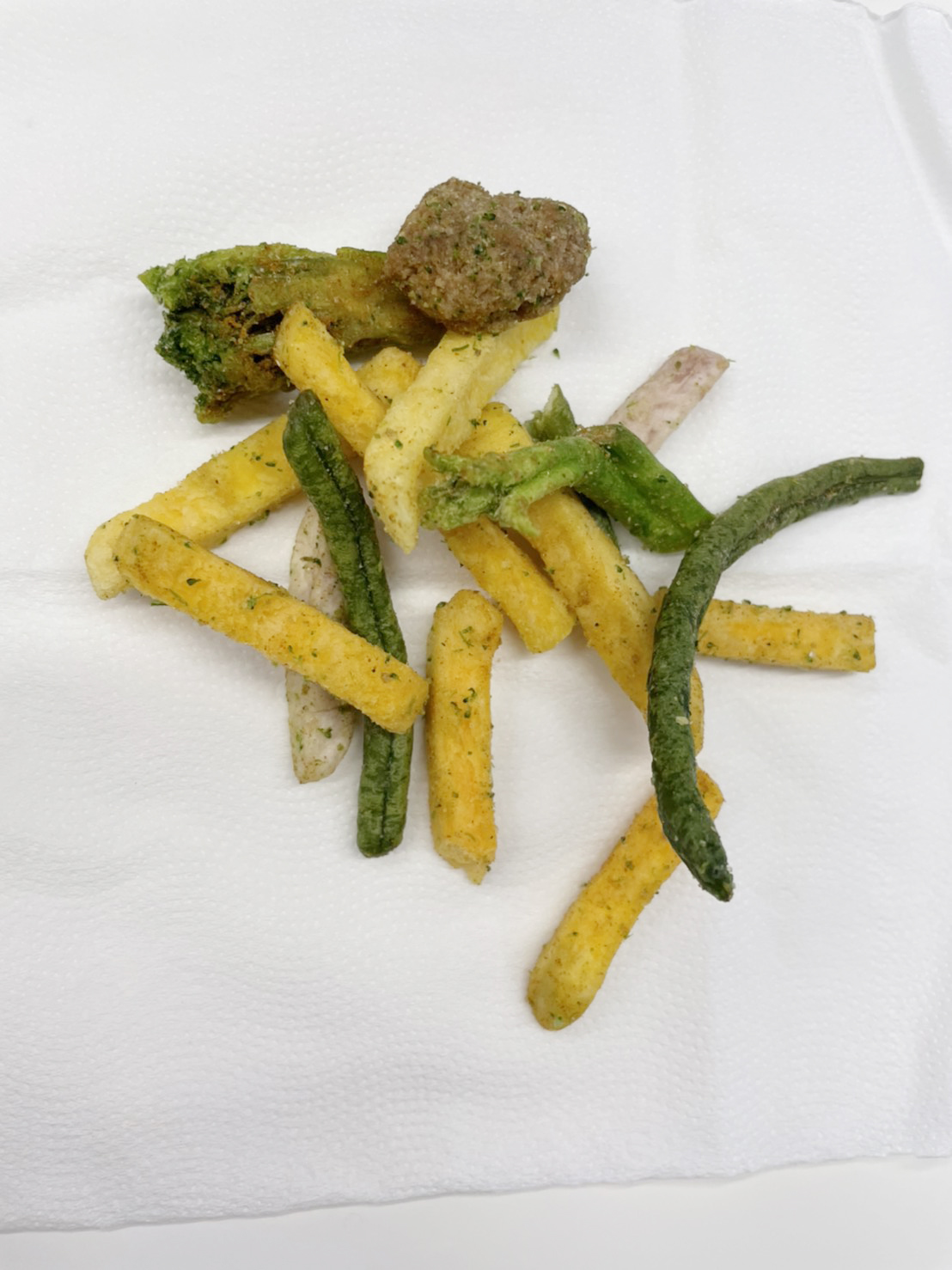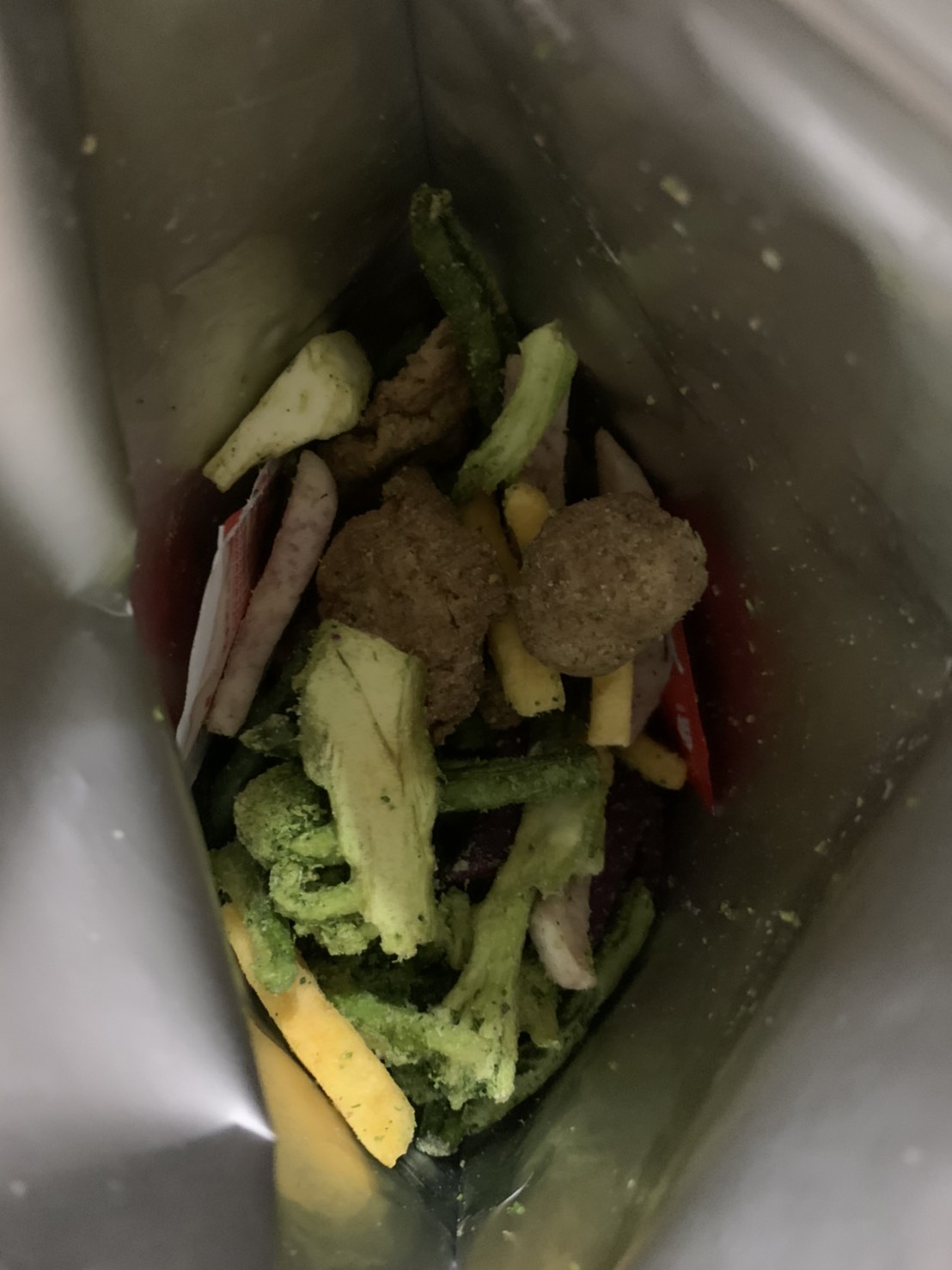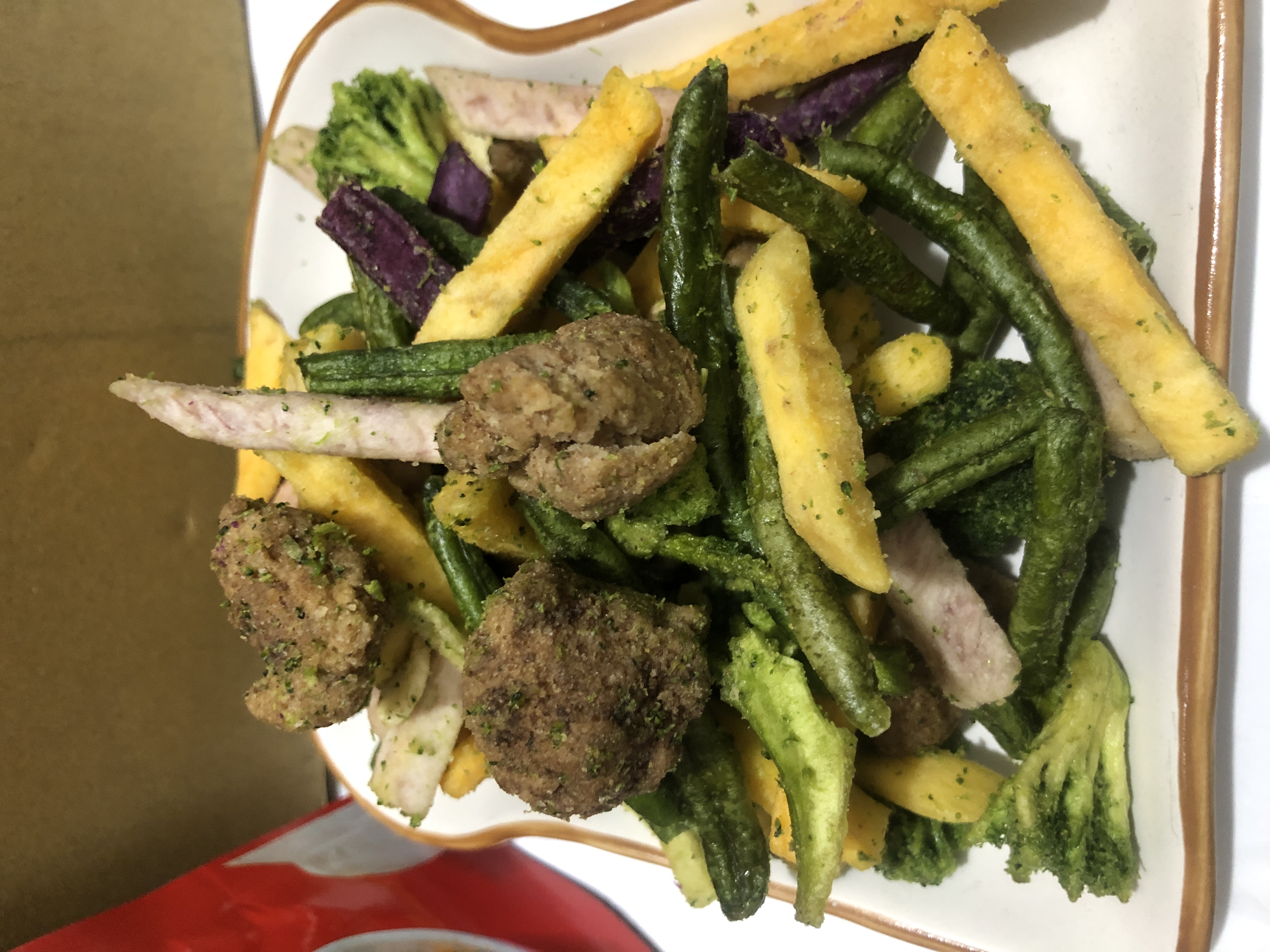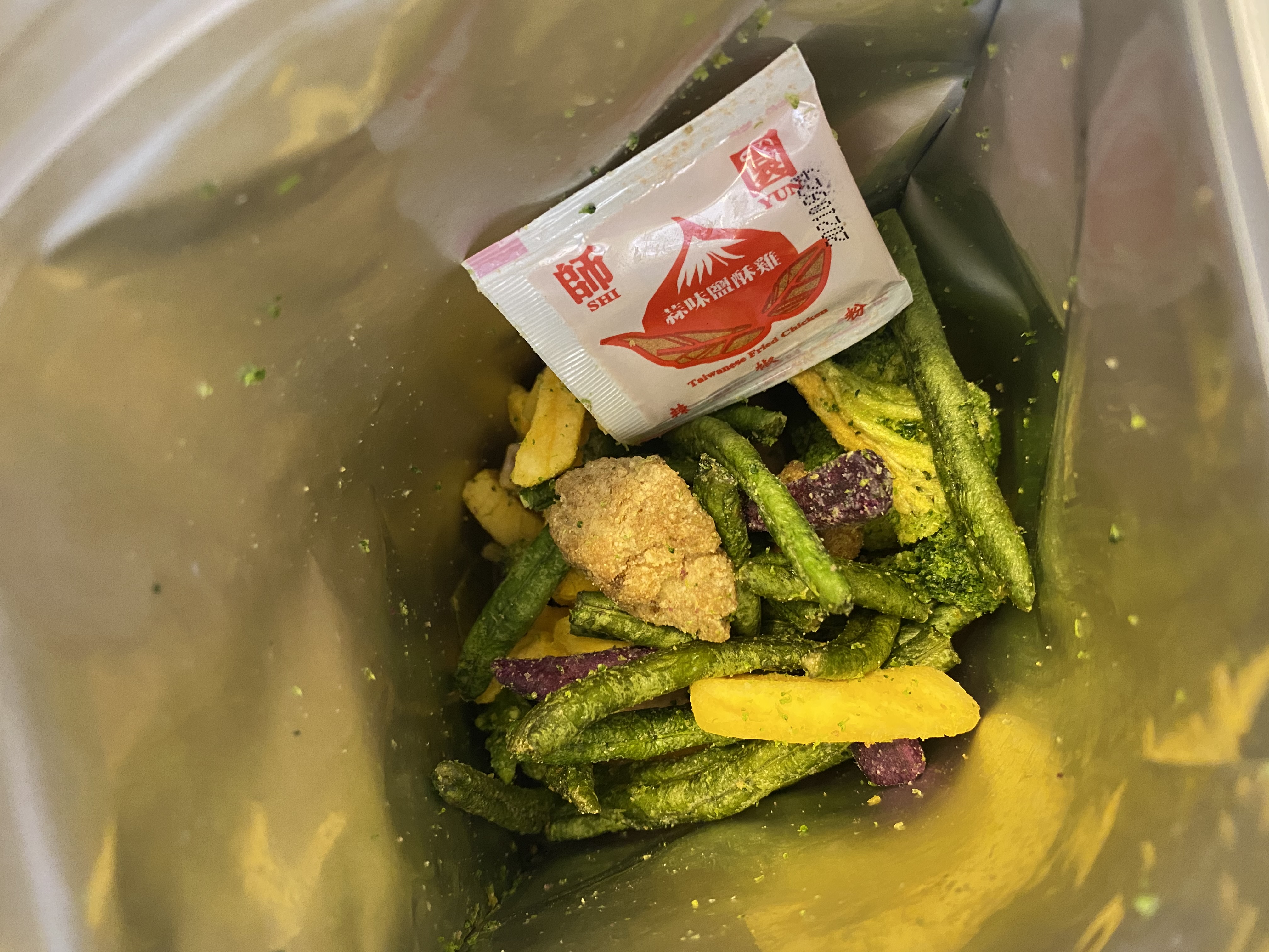 植物肉[非基改大豆蛋白、小麥蛋白、大豆油、蛋白粉、修飾澱粉(醋酸澱粉)、糖、樹薯澱粉、香料、鹽、L-麩酸鈉、呈味核苷酸二鈉、白胡椒粉]、地瓜、敏豆、紫地瓜、青花菜、芋頭、香菇、杏鮑菇、蒜片、蒜粉(蒜片、甘藷粕粉)、五香粉(小茴、肉桂、大茴香、丁香、花椒)、棕櫚油、麥芽糖 內附師園胡椒鹽 成分:鹽、香辛料(白胡椒、黑胡椒、大蒜、辣椒、甘草、薑、丁香、百草粉、肉桂)、L-麩酸鈉、砂糖、二氧化矽 內附師園辣椒粉 成分:辣椒
