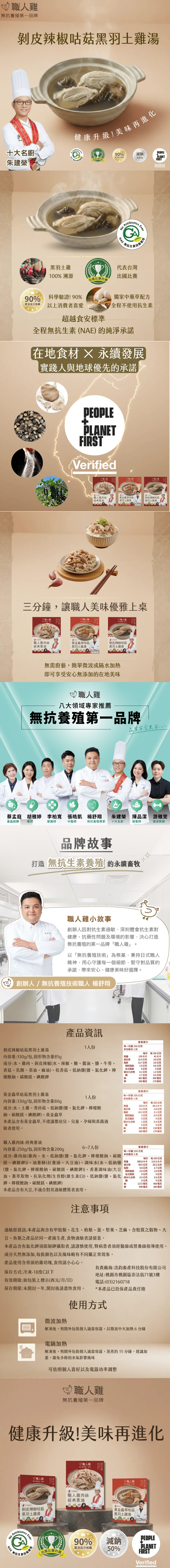 水、雞肉、剝皮辣椒(水、辣椒、糖、醬油、鹽、牛蒡、香菇、乳酸、茶油、麻油)、乾香菇、低納鹽(鹽、氯化鉀、檸檬酸鈉、碳酸鎂、碘酸鉀)。