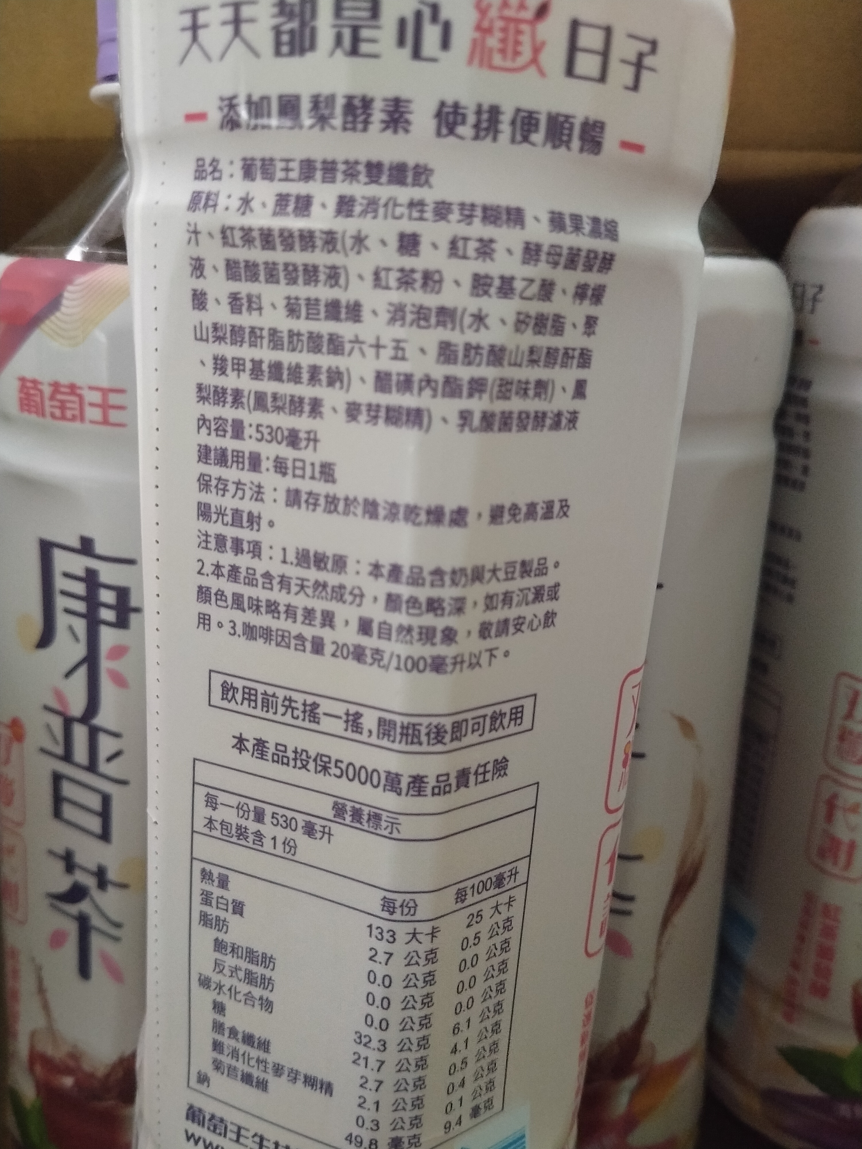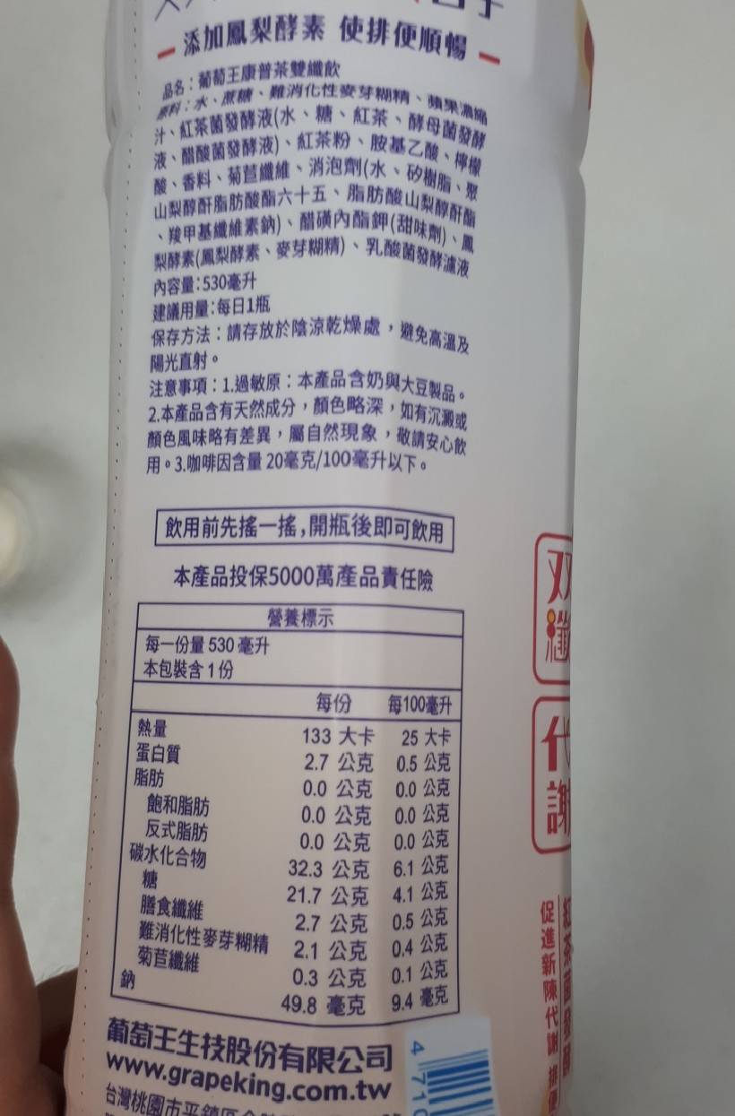 回列表 葡萄王 康普茶雙纖飲 就像用喝的瑜伽 市價140元 所需等級 一般會員以上 所需學分 50 體驗份數 15 關注人數 1044 申請人數 277 申請截止 品牌業者:葡萄王生技 負責廠商 葡萄王生技股份有限公司 廠商地址 台灣桃園市平鎮區金陵路二段402號 產地 台灣 試用產品規格 530ml/罐,共4罐。 食品業者登錄字號 H-111880517-00001-7 投保產品責任險字號 富邦產物0522字第18AML0000110號 心得分享 商品介紹 商品成分 使用方法 注意事項 體驗名單 8.2 葡萄王 康普茶雙纖飲 包裝設計 8.5 風味香氣 8.3 口感清爽 8.1 酸甜適中 7.5 建議推薦 8.1 心得分享 15則 余曉雯 金食達人 44歲 臺南市 2021/12/22 對葡萄王 康普茶雙纖飲留下評價 7 這次試喝的康普茶雙纖飲有4瓶 每瓶530毫升 100毫升有25大卡 0.5公克的膳食纖維 保裝很好看 使用前要先搖一搖 還未入口就聞到很香的水果味 讓我想到水果茶 因為我有加冰塊 喝起來不會很甜淡淡的酸甜感 紅茶味不會很重 可是喝幾口後 嘴裡有澀澀的感覺 康普茶會讓我感興趣是紅茶菌 也叫紅茶菇 真的會幫助消化 Yu Juan Zhang 金食達人 37歲 基隆市 2021/12/23 對葡萄王 康普茶雙纖飲留下評價 6 入口有一股葡萄味,看成分才發現原來加的是蘋果濃縮汁。喝起來沒有很重的發酵味,茶味也不明顯,比較像是濃縮果汁。沒有酸味,對我來說稍甜。喝完後留在口內有一點過於甜膩的後味。之後可能會試著自己另外加無糖茶或是氣泡水試試。包裝上寫的使排便順暢,對我來說比較無感,喝完後沒有明顯的感覺(但我本來就比較沒有這方面的困擾)。 angel 鑽石達人 55歲 嘉義市 2021/12/24 對葡萄王 康普茶雙纖飲留下評價 9 由知名大廠葡萄王出品的康普茶雙纖飲,採用自有紅茶菌發酵,更添加雙纖配方、鳳梨酵素,加強酸甜口感層次,有效促進新陳代謝。口感喝起來酸酸甜甜的又有淡淡的果茶香還富含紅茶菌、乳酸菌等益生菌種對人體好處眾多的營養價值,雖然還是含有糖分,但負擔少輕鬆喝熱量低同時滿足口慾及保健需求,是嘴饞時想喝茶飲的絕佳選擇。 殷聖善 金食達人 50歲 桃園市 2021/12/24 對葡萄王 康普茶雙纖飲留下評價 8 紫色的瓶子非常吸睛,和茶的顏色有呼應。聞起來是香甜的水果味,和”茶”無法聯想在一起。倒出來看,是較深的顏色,杯底有些渣渣,加上酸酸甜甜的香氣,還以為是烏梅汁^^。喝起來很順口,像是不太甜的果汁,而吞下喉後,留在舌上的微澀,才有了茶的感覺。 劉瑞菁 金食達人 46歲 高雄市 2021/12/25 對葡萄王 康普茶雙纖飲留下評價 8 聞起來像葡萄濃縮果汁,喝起來也有一點像,不過還帶有一點發酵的酸感,蠻好喝的,比想像中甜許多,看了成分發現除了發酵用的糖以外,還有另外添加蔗糖,可能是因為這樣所以很甜吧!已1:1的比例用紅茶或豆漿或牛奶稀釋後更好喝哦!個人喜愛度第一名是添加紅茶,不但增添了濃紅茶的香氣,也多了些許茶澀口感,更容易入口;喝完後真的會促進消化道蠕動,肚子一直咕嚕咕嚕響,不久後就跑去上廁所了哈哈,感覺真的很健康! 郭欣茹 金食達人 28歲 新竹市 2021/12/25 對葡萄王 康普茶雙纖飲留下評價 7 一入口就可以嘗到蠻香的葡萄味,後段茶康普的味道才會慢慢出來,因為是第一次喝康普茶,喝起來其實蠻像紅茶的,感覺如果不是用葡萄而是用檸檬,可能也會蠻搭的。整體來說茶不會太澀,葡萄和茶的味道配合起來蠻搭的,入口也蠻順的,但對個人來說偏甜。 鄭若吟 金食達人 31歲 臺中市 2021/12/26 對葡萄王 康普茶雙纖飲留下評價 9 我一喝康普茶的第一反應是它的口感,真的很像蔓越莓汁,喝起來酸酸甜甜的,很好喝。喝過後,上網查詢康普茶,知道它主要成份是由茶、糖與紅茶菌組成,發酵過程中會產生益生菌、有機酸、維生素、植化素等營養物質。康普茶除了有一般果茶的酸甜口感,還因為富含紅茶菌、乳酸菌等益生菌種,對人體好處眾多,以下是喝康普茶的4個益處,供參考用:1.促進新陳代謝 2.幫助消化 3.負擔較輕 4.穩定情緒。患有腸躁症、容易胃食道逆流者,其他像是孕婦或哺乳婦女,也建議留心攝取,不宜喝太多,以避免胃酸逆流或是頻尿等副作用。一般人只要適當飲用,基本上都可以安心食用,不須過度擔憂。所以有些食物不能因為它好處多多就一次攝取過量,要適當攝取微妙。 CHIA 金食達人 28歲 桃園市 2021/12/27 對葡萄王 康普茶雙纖飲留下評價 9 包裝設計的顏色、字體活潑,擺在陳列櫃裡一眼就看見,很加分。口味酸甜適中,可直接飲用,或是以1:2的比例加入氣泡水增加口感,推薦!!此商品主打含有鳳梨酵素及纖維,不管是針對飲食不均衡的學生、上班族、外食族都適合飲用,不過營養標示中的糖含量32公克,宜注意攝取量。 林欣慧 金食達人 29歲 臺南市 2021/12/27 對葡萄王 康普茶雙纖飲留下評價 10 這款葡萄王 康普茶雙纖飲喝起來蠻意外的,首先口味很特別,一打開就聞到葡萄加紅茶的茶香水果味,跟一般常見的綠茶口味很不同!喝起來也很順口好喝,微微的甜,清爽無負擔的感覺,也添加了鳳梨酵素增加代謝,收到後的第一天中午飯後就喝了一瓶,喝完沒多久後就有感覺想要上廁所的感覺,而且是很自然的想廁所,完全沒有肚子絞痛的不舒服感,原本以為是偶然的,結果連續四天喝下來,每天中午飯後都很順利的如廁,感覺肚子的髒東西的排掉了!原本一週只能排兩次的我!在喝完這款雙纖飲後竟然能如此順暢地如廁!真的是蠻不錯的飲品! Jay Chen 