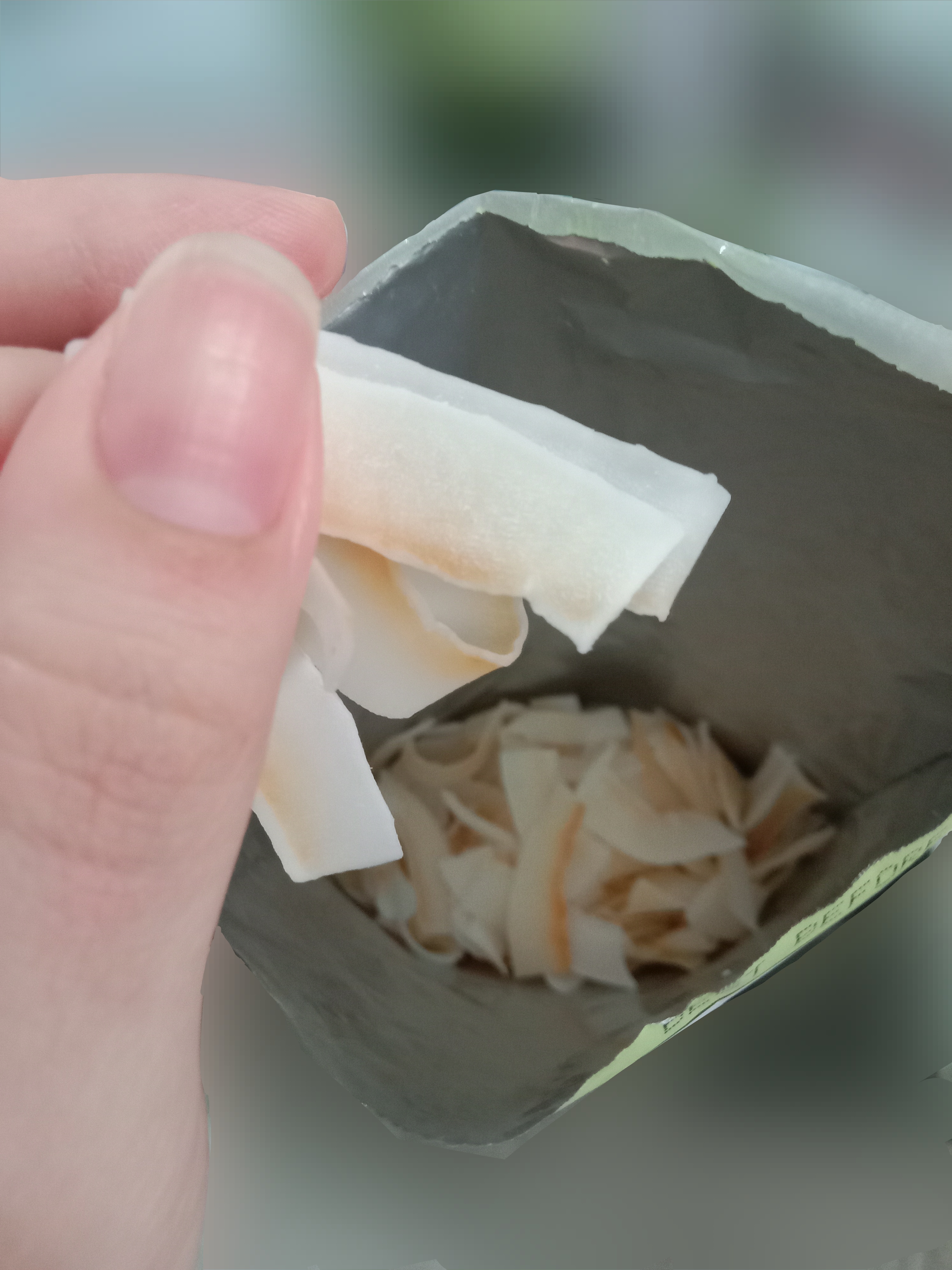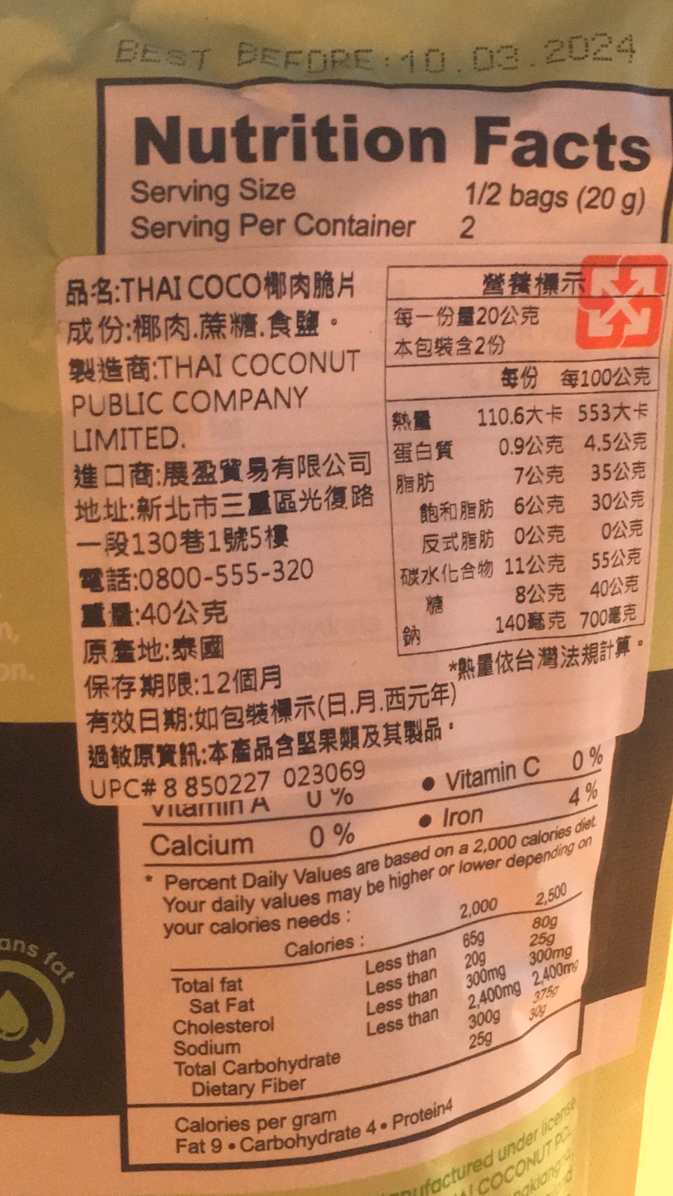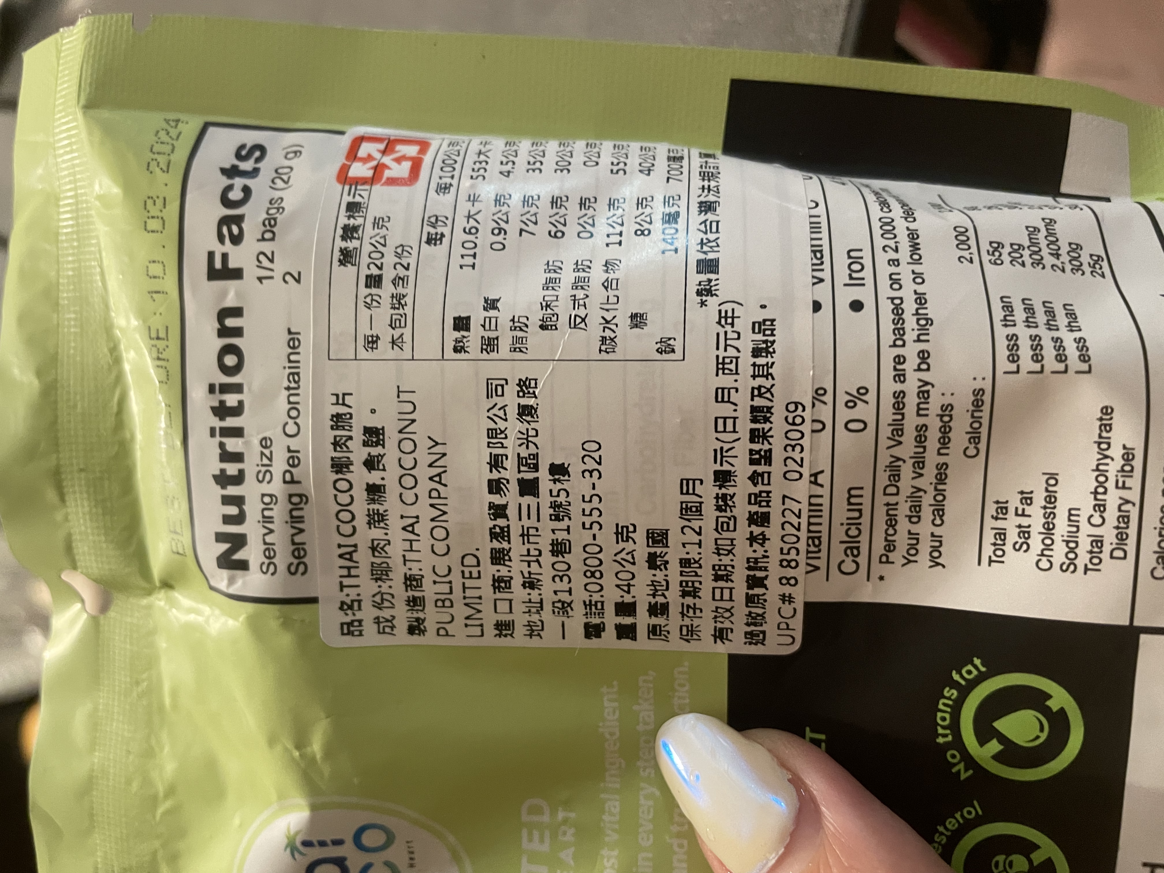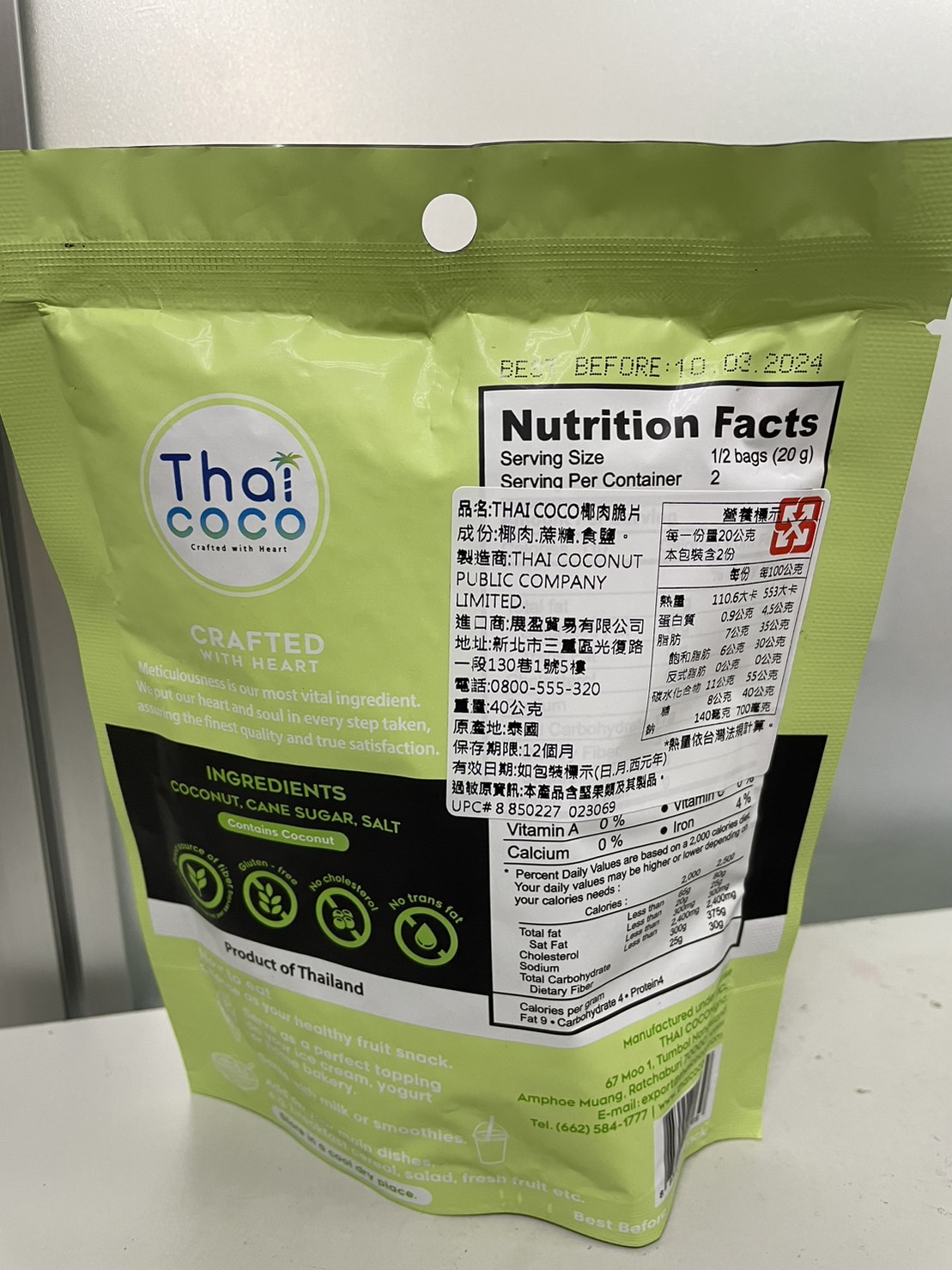 這次試吃的是Thai CoCo 椰肉脆片(原味) 滿滿椰肉香氣 高纖香脆的健康零嘴。 它的成份十分的簡單,只有椰肉、蔗糖、食鹽。 除去椰肉脆片直接食用,它的包裝上還介紹了可以摻入冰淇淋、優格、牛奶或奶昔等增添口感。 並且主打 Good source of fiber 良好的膳食纖維來源 Gluten-free 不含麩質 No cholesterol 無膽固醇 No trans fat 不含反式脂肪 當作零食享用,可以吃的快樂又安心。 包裝一打開來就有椰子的香氣,口感很香脆,咬碎後會有留有吃到渣渣的顆粒感。 不過包裝是沒有封口的,所以會建議打開來就趕快吃完,跟同事(朋友)分享還不錯,但個人吃完一包有點點多。