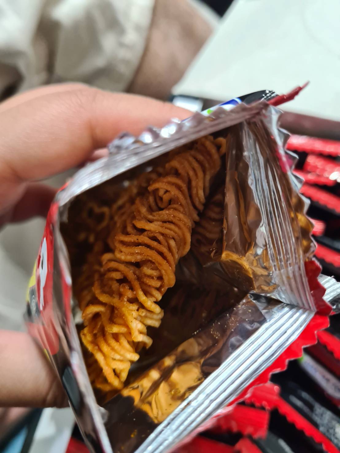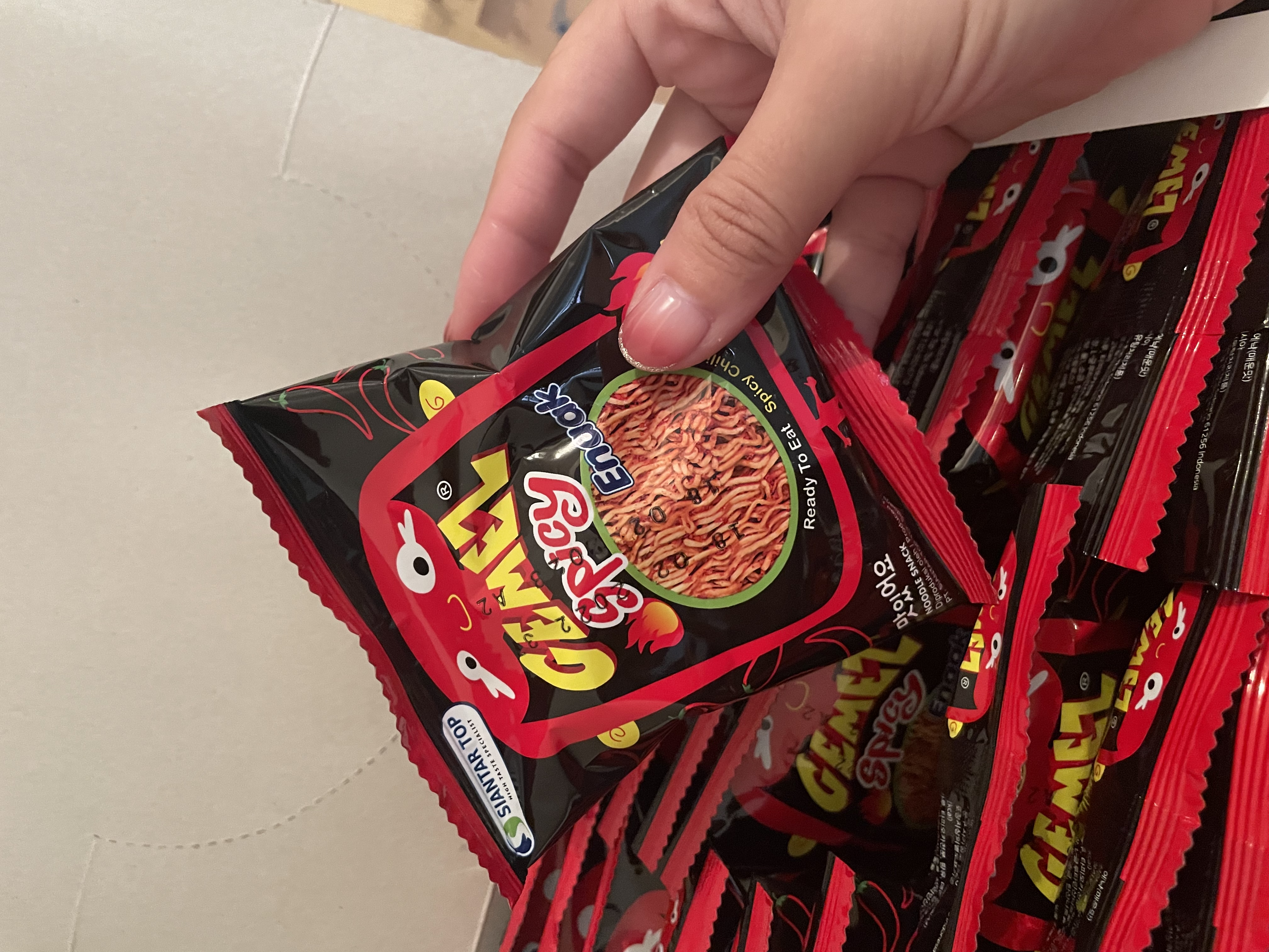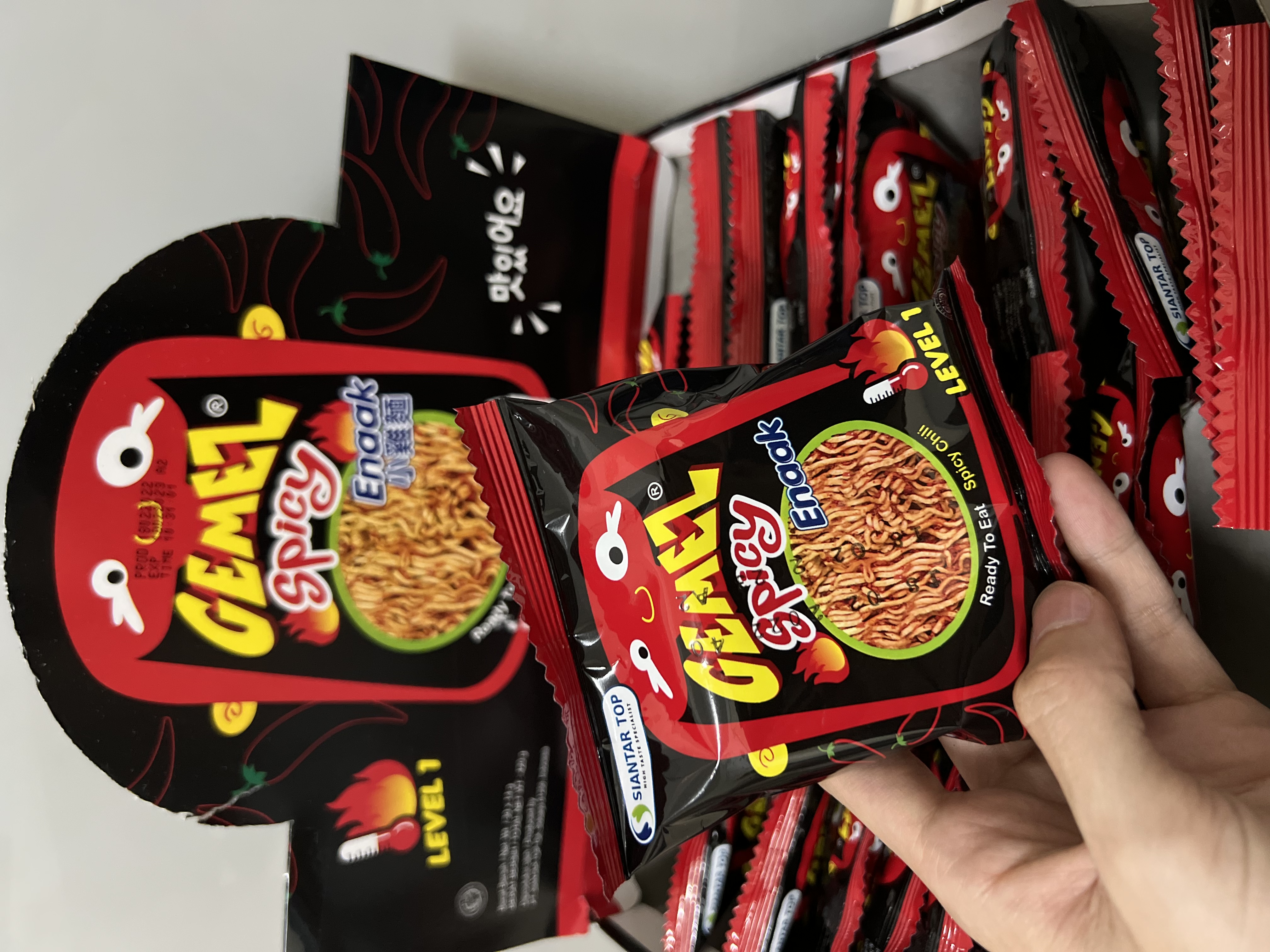 回列表 Enaak 香辣點心麵 辣得好過癮越吃越涮嘴 市價199元 所需等級 一般會員以上 所需學分 60 體驗份數 15 關注人數 1306 申請人數 329 申請截止 品牌業者:太冠國際 負責廠商 太冠國際開發事業有限公司 廠商地址 新北市新店區中正路538巷4號1樓 產地 印尼 試用產品規格 420公克(14公克x30包) 食品業者登錄字號 F-109441680-00000-5 投保產品責任險字號 1000字第04PR000271號 心得分享 商品介紹 商品成分 使用方法 注意事項 體驗名單 9.2 Enaak 香辣點心麵 包裝美學 8.9 口感香脆 9.6 涮嘴程度 9.5 風味香辣 8.7 建議推薦 9.2 心得分享 15則 吳文嫻 金食達人 35歲 臺北市 2022/05/16 對Enaak 香辣點心麵留下評價 9 Enaak 香辣點心麵(小雞麵)的麵條偏細,整塊麵體壓得十分緊實雖然麵條比較細、比較緊密,脆度略輸粗粗的男子漢科學麵更酥脆一點,不管捏碎或撥成塊狀吃都好過癮。童趣又繽紛的外包裝設計,小分量的隨手包,最適合當嘴饞時的小點心,不擔心一大包吃不完~Enaak 香辣點心麵(小雞麵)不需另外加粉包,直接在麵體中替你調味好,免去粉沾不均勻的困擾咬下去濃濃雞汁香、鹹淡適中的口味太誘人啦~這次體驗的香辣點心麵口味,辣度和香氣都比一般辣味再升級!不像科學麵的重度鹹辣口感,它出更加酥脆的口感與不會死鹹的恰好調味, 反而讓人口水直流,讓人一吃就停不下來!!Enaak 香辣點心麵(小雞麵)香脆的口感真的好讓人著迷~香辣口味更是涮嘴到不行,香脆x辣度升級的涮嘴魅力,口味上我真心覺得不輸科X麵等其它品牌點心麵,喜歡吃辣的朋友一定要試試看 洪子涵 金食達人 28歲 臺南市 2022/05/14 對Enaak 香辣點心麵留下評價 9 本身很喜歡吃這種脆麵 有辣的更是喜歡~~本身吃蠻辣的 所以這款不覺得有辣 但有香如果可以更辣應該會更喜歡一包就小小的 可以直接咬 或是把它捏碎麵體上看起來顏色很重 感覺很辣但其實吃起來還好 就香香脆脆的~~整體上還滿喜歡這款的 但是希望有跟台灣科學麵一樣的大小吃起來比較過癮 小小一包有點吃不夠 要夠也不知道要吃幾包 黃念怡 金食達人 32歲 桃園市 2022/05/15 對Enaak 香辣點心麵留下評價 9 點心麵一整塊讓我們自己弄碎搖很有趣有別於科學麵的藍色包裝這個以辣口味的口味呈現平常追劇工作聚會必備的小點心一小個包裝攜帶出門很方便吃起來我個人覺得不太辣可能是平常吃很辣的關係但整體口味能再吃一包沒有問題的🤣🤣🤣蠻推薦給大家品嚐看看~~~ 黃聖華 金食達人 56歲 苗栗縣 2022/05/16 對Enaak 香辣點心麵留下評價 10 enaak香辣點心麵小包裝是個人分享包的首選麵體加上辣味調味粉香脆微辣雞汁口味,味道好正超熱銷的Enaak香脆雞汁點心麵,暗黑底加上紅色火辣的外包裝設計讓人為之一亮,麵體意外的香脆好吃。不論是打開整塊吃,或者是把它捏碎倒在嘴裡吃,兩種方式吃起來一樣爽脆好吃!一打開雞汁香味撲鼻而來,那種微辣香脆的口感,怎麼能停下來貼心又衛生的方便分享包,不論車上、辦公室、家中、外出露營都方便食用~ 夢旅獅 金食達人 41歲 新北市 2022/05/19 對Enaak 香辣點心麵留下評價 9 家裡的乾貨櫃有時候會儲放一些乾貨零食,家人之前有買印尼捲心酥來品嚐,意料之外的不錯吃,這次來品嚐看看來自印尼的Enaak小雞點心麵,收到商品的時候產品盒子與外送箱體尺寸非常密合,雖說是沒有使用過大的箱體裝運,也很謝謝廠商努力塞進去,但是因產品盒子有些微過大造成一點擠壓,無法用手將商品輕鬆取出拿起來,後來選擇將外送箱倒扣產品滑出才順利取出;封面張大嘴的大頭娃娃的插圖包裝圖案還蠻可愛的,因產品款式為隨手包零嘴系列,打開來裡面為點心麵的小包裝,包裝紙盒為基本的卡紙,紙質磅數不厚比較薄軟,不過裡面的點心隨手包沒有因為運送裝箱而壓壞,零嘴包沿襲外包裝的色系與主視覺每包都有一個大頭娃娃蠻可愛的,雖說是印尼產品,包裝紙盒盒側有中文說明,不用擔心不知道餅乾內容物有哪些,品嚐的保存期限印製在裡面每一包的點心麵包裝上面,品嚐的時候可以順便確認食品有無過期。盒蓋有一個虛線但是因為紙質偏軟不是很好剝,用剪刀剪好之後摺起來,可以整盒放在桌邊角落,想吃的時候抽一包。打開品嚐裡面的點心麵為一整塊乾麵塊體,是已經調味好的點心麵所以就沒有特別把它捏碎食用,點心麵聞起來還蠻香的,顏色帶點紅,品嚐起來脆口小辣不過鹹還不錯吃,家裡乾貨櫃想增添零食的時候會考慮的點心類型~在家追劇、下午茶茶點、朋友來、出外郊遊也可以品嚐的點心~ 董誼家 鑽石達人 49歲 臺北市 2022/05/19 對Enaak 香辣點心麵留下評價 8 這真是恐怖的小零嘴呢!(1小袋14g)麵條細、很酥脆,雖然習慣上是開袋前就用手捏爆它,但就算什麼都不做、打開直接享用也可以輕鬆弄碎它。(相信齒力不強的也可以吃得很有成就感!)一不小心真的會一口一口(應該說一袋一袋)吃個不停~本來以為會辣到不行,還好這只是Level 1,所以就算不是很敢吃辣的,也可以輕鬆地享用。剛吃的時候是鹹中帶點甜(跟同類型零嘴的小王子麵、模範生點心麵或科學麵等相比,調味沒有那麼鹹),吞下去進喉嚨的時候辣味才會出來。 翁菁穗 鑽石達人 55歲 桃園市 2022/05/20 對Enaak 香辣點心麵留下評價 9 真的是越吃越涮嘴~一包不夠,得再來一包!Enaak 香辣點心麵,原本擔心辣度太高,但Level 1的辣度是OK的,只要敢吃韓國泡菜的都能接受。以前吃過香脆原味,