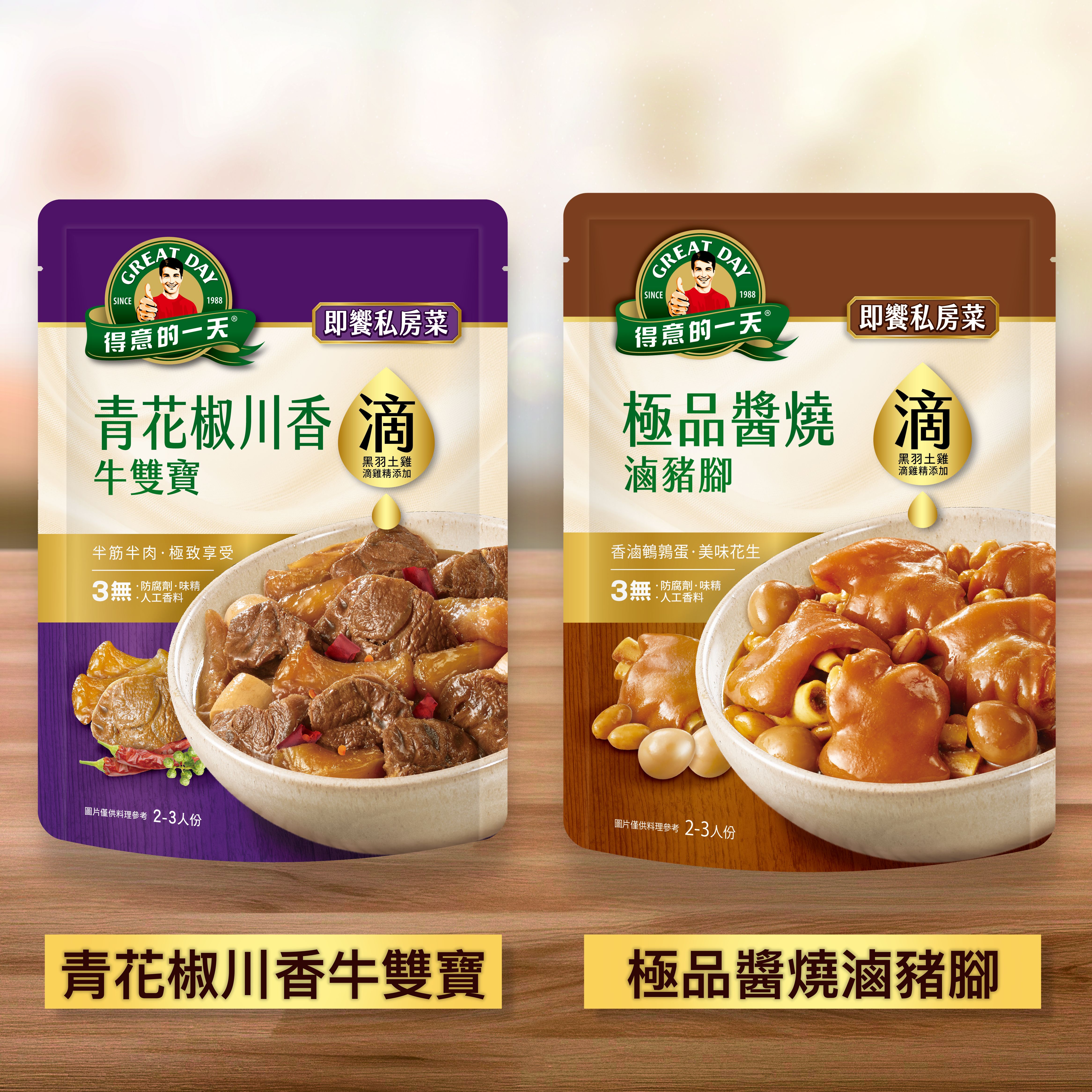 豬腳、高湯滷汁{水、醬油、高湯[濃縮豬骨高湯(豬骨、水)、滴雞精]、蔗糖、昆布抽出液[昆布抽出物(昆布、水)、糊精、食鹽、小麥水解蛋白、酵母抽出物]、食鹽、蒜、白胡椒、辣椒、五香粉(小茴香、肉桂、八角、胡荽、丁香) }、花生、鵪鶉蛋、芥花油、冰糖、紅蔥酥[紅蔥頭、芥花油、維生素 E(抗氧化劑)]、玉米糖膠、維生素 E(抗氧化劑)