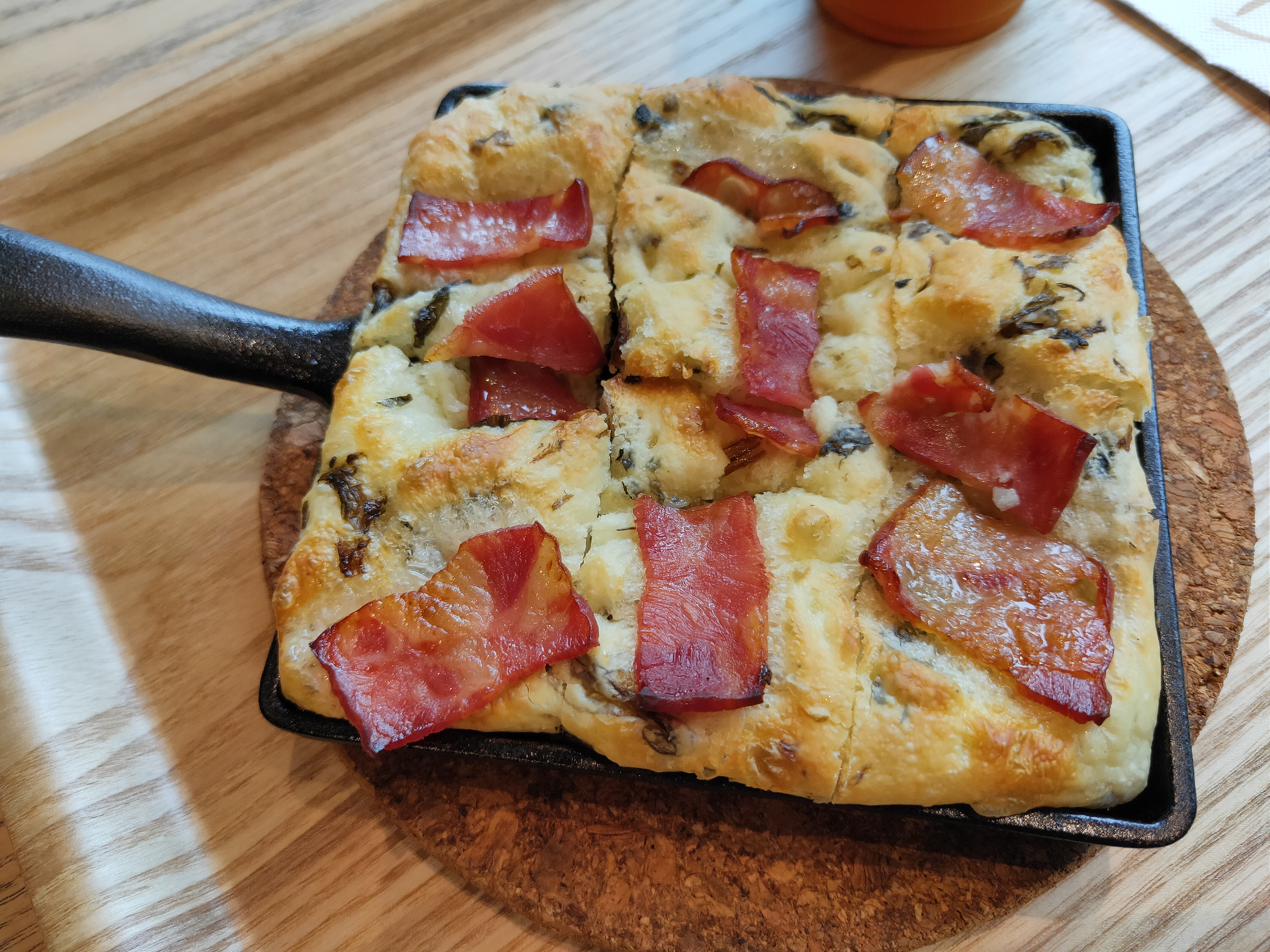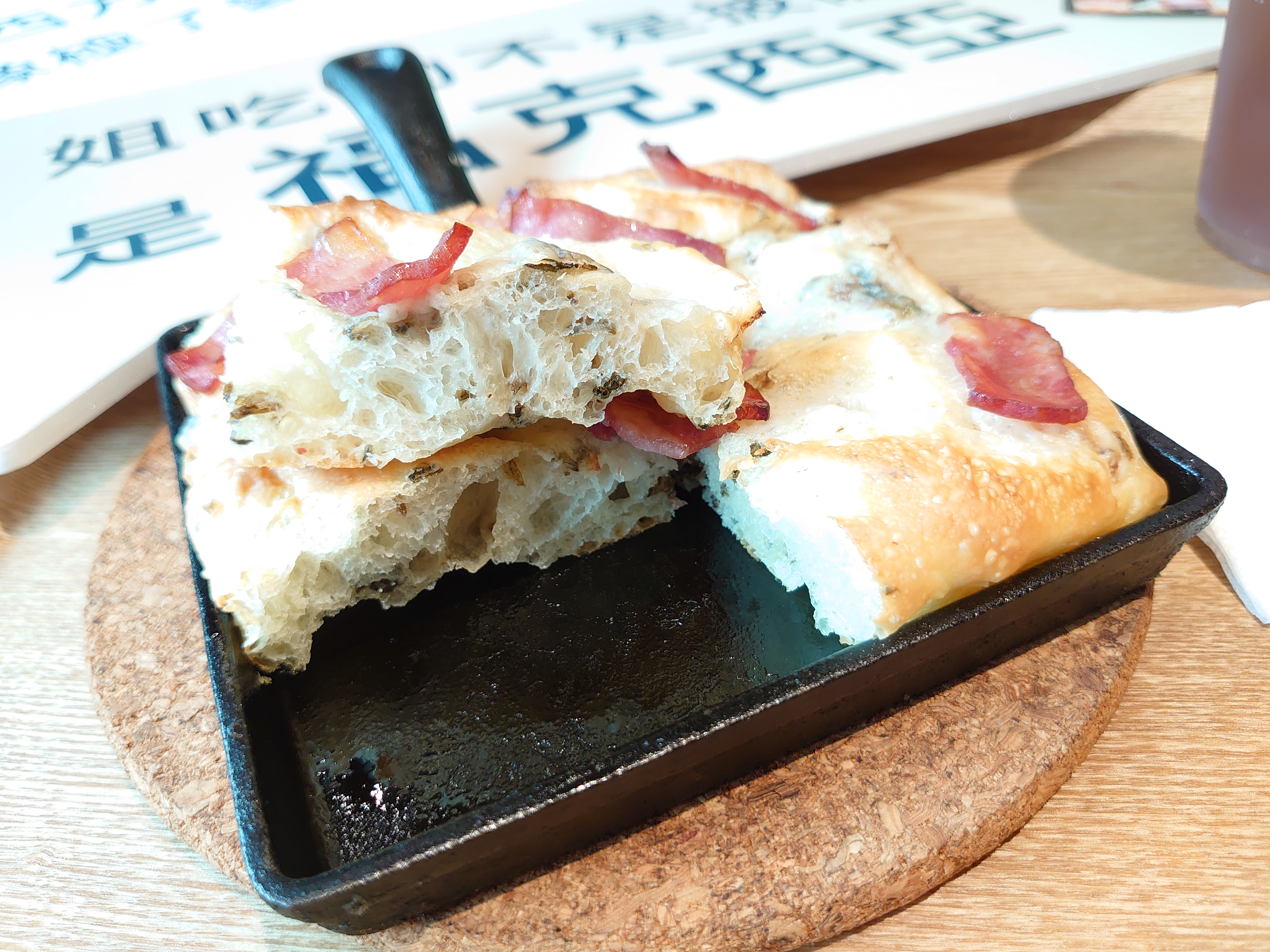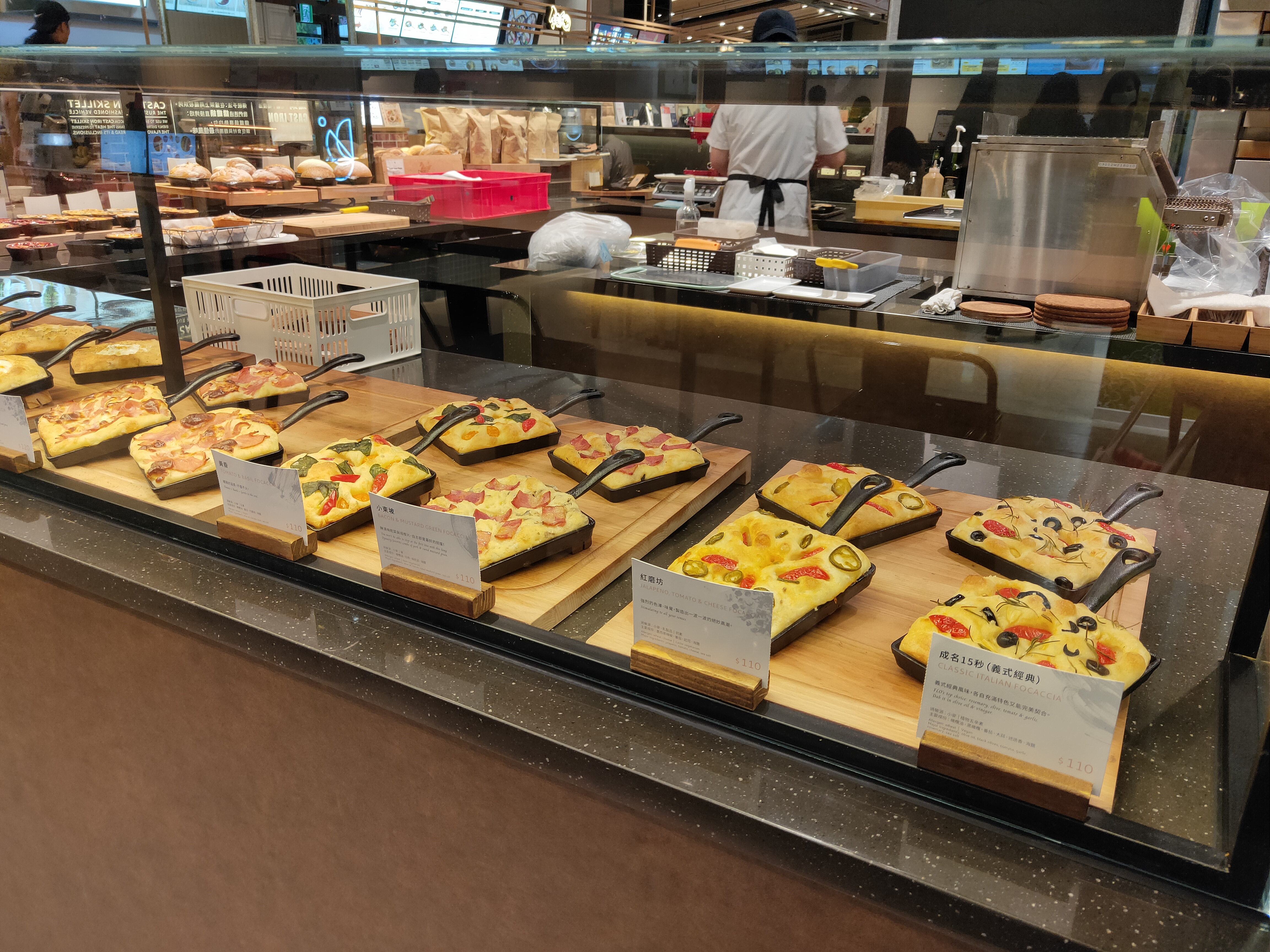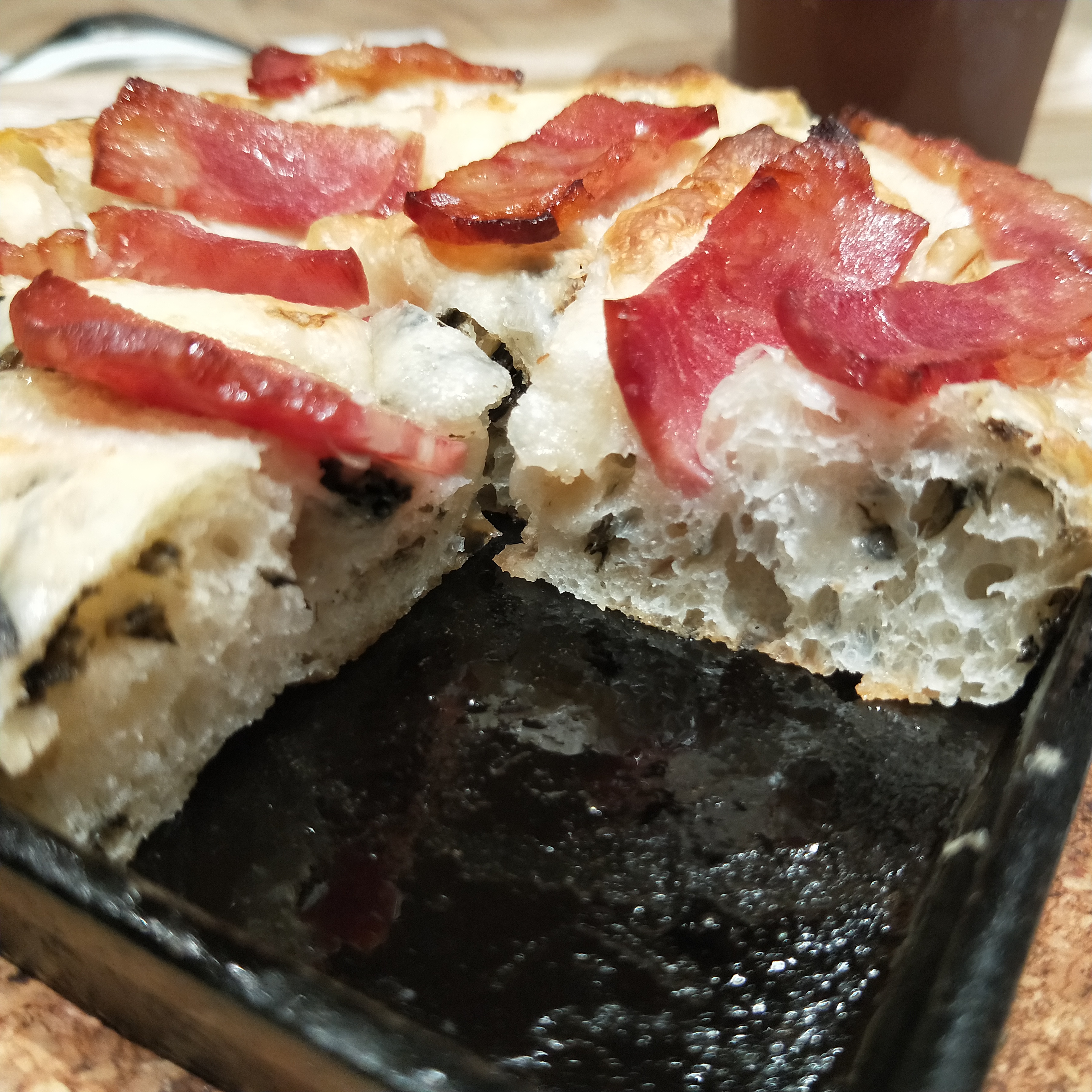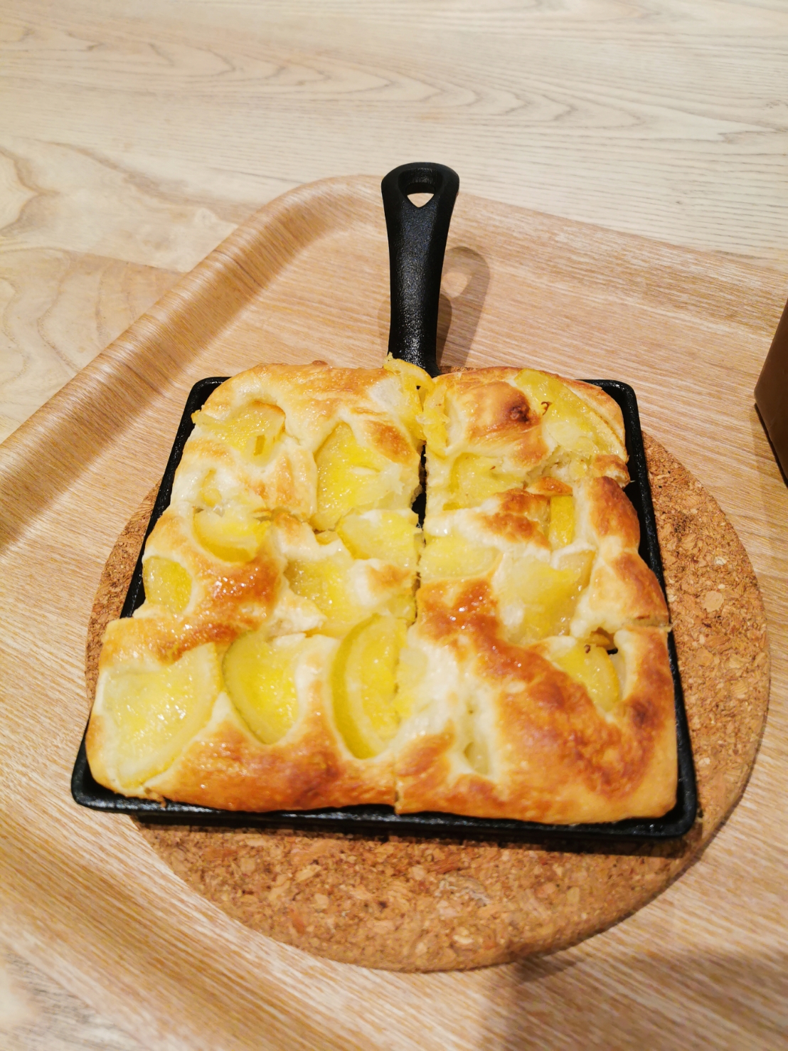 橄欖油烘烤後往鍋底滲透,不只讓麵包體充滿香氣,更在表層形成薄脆外皮,