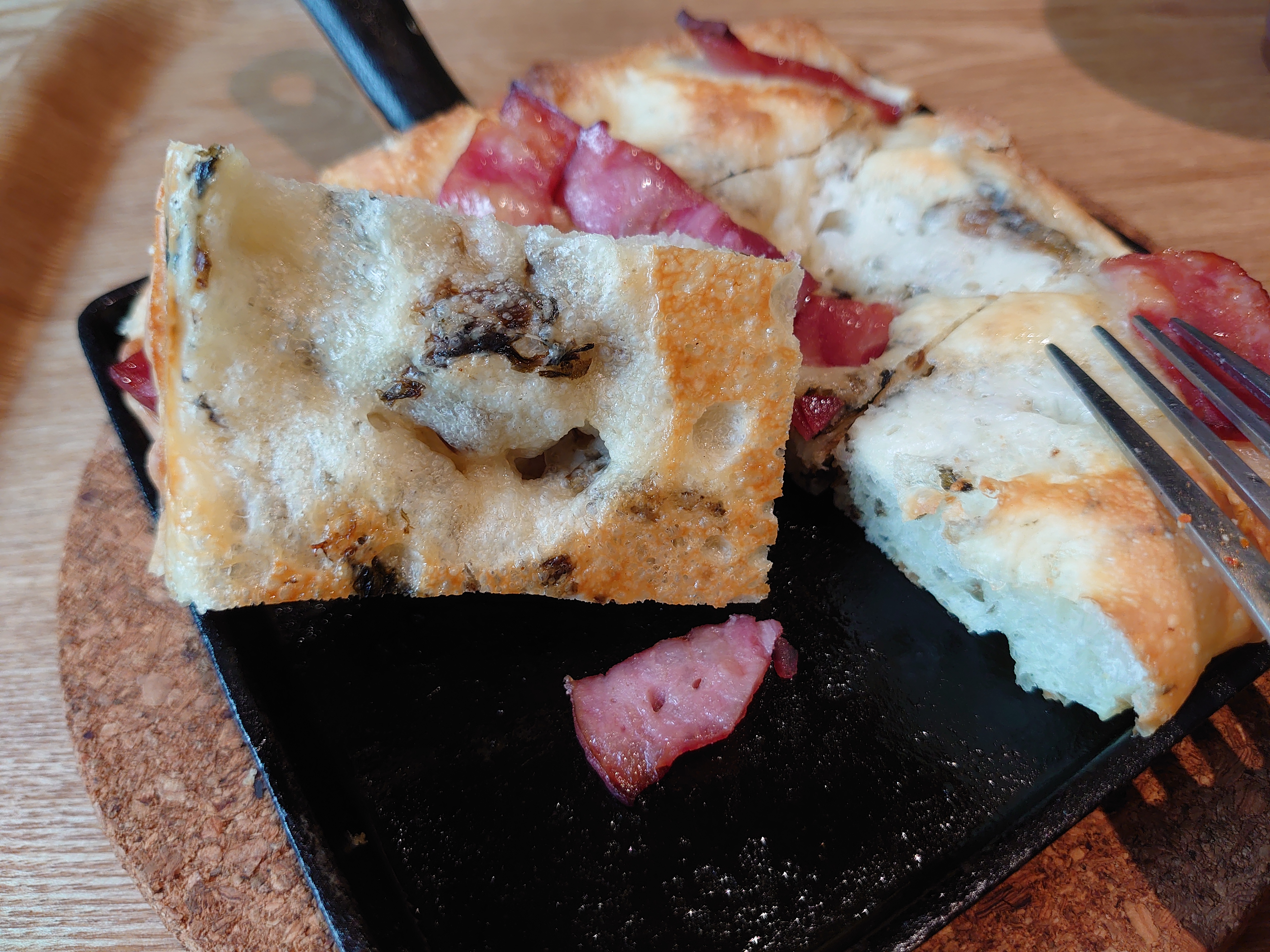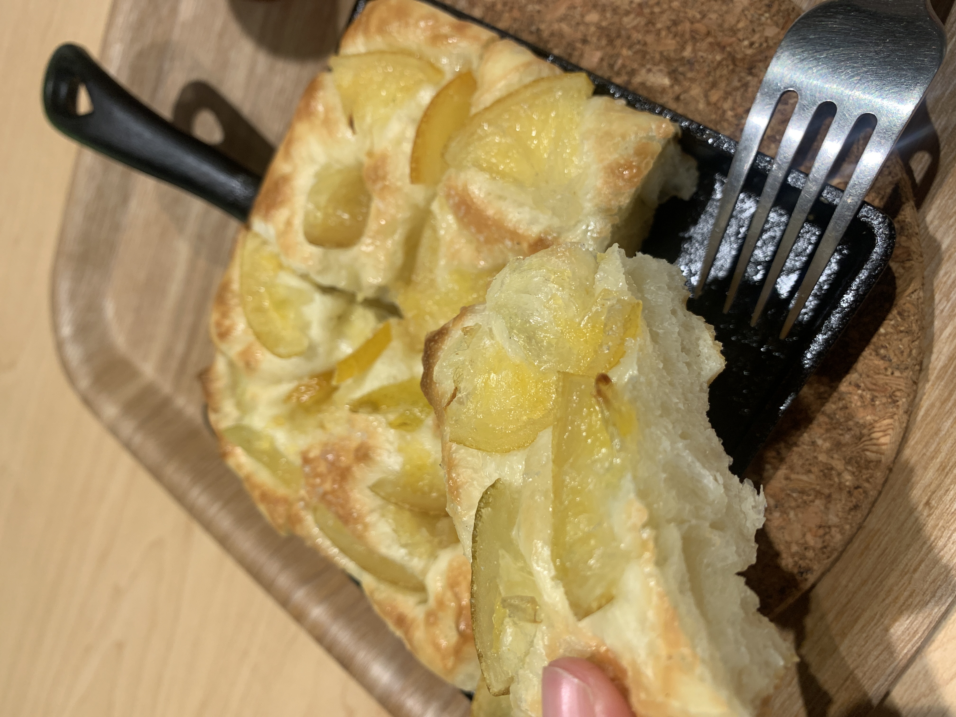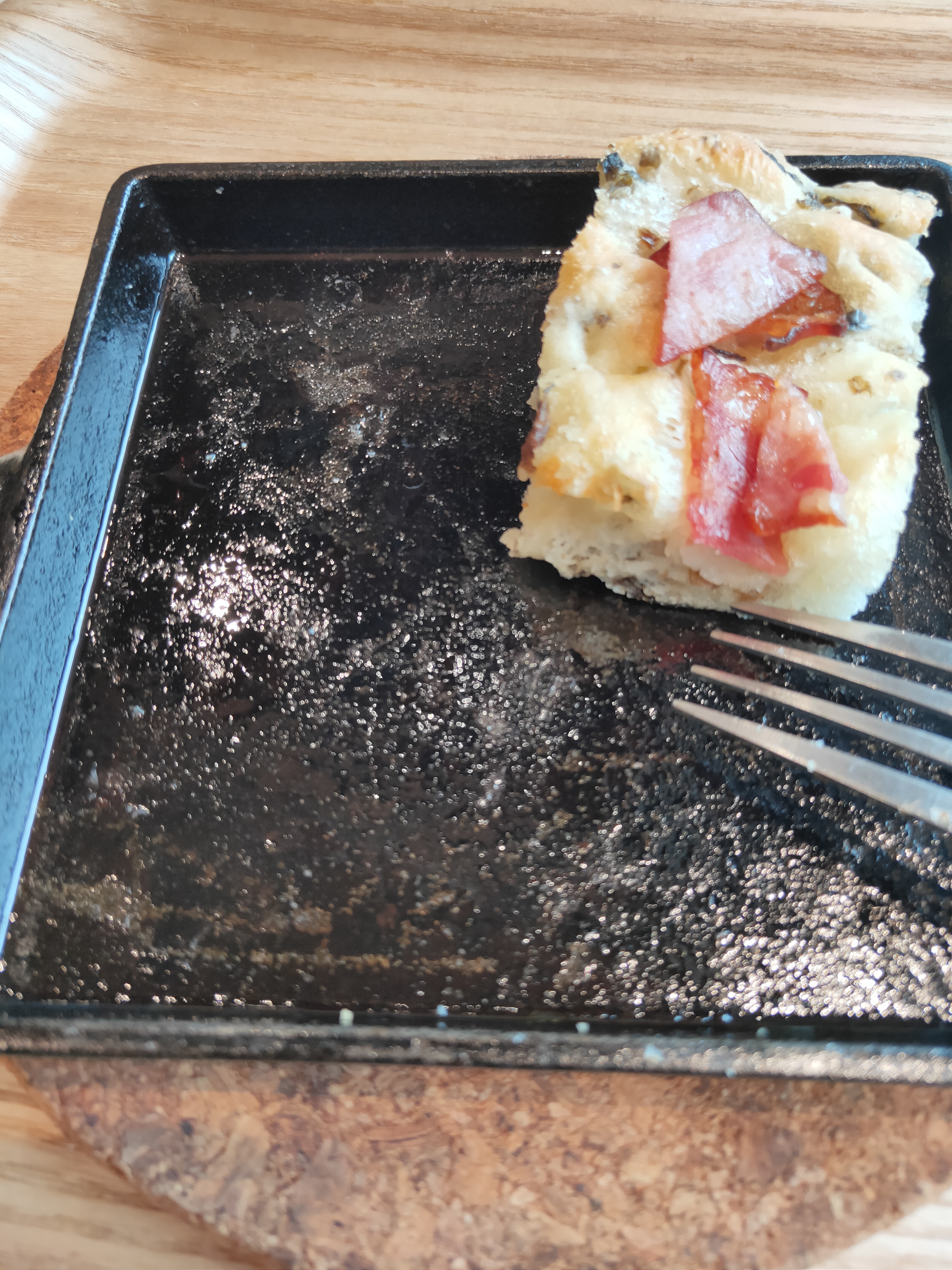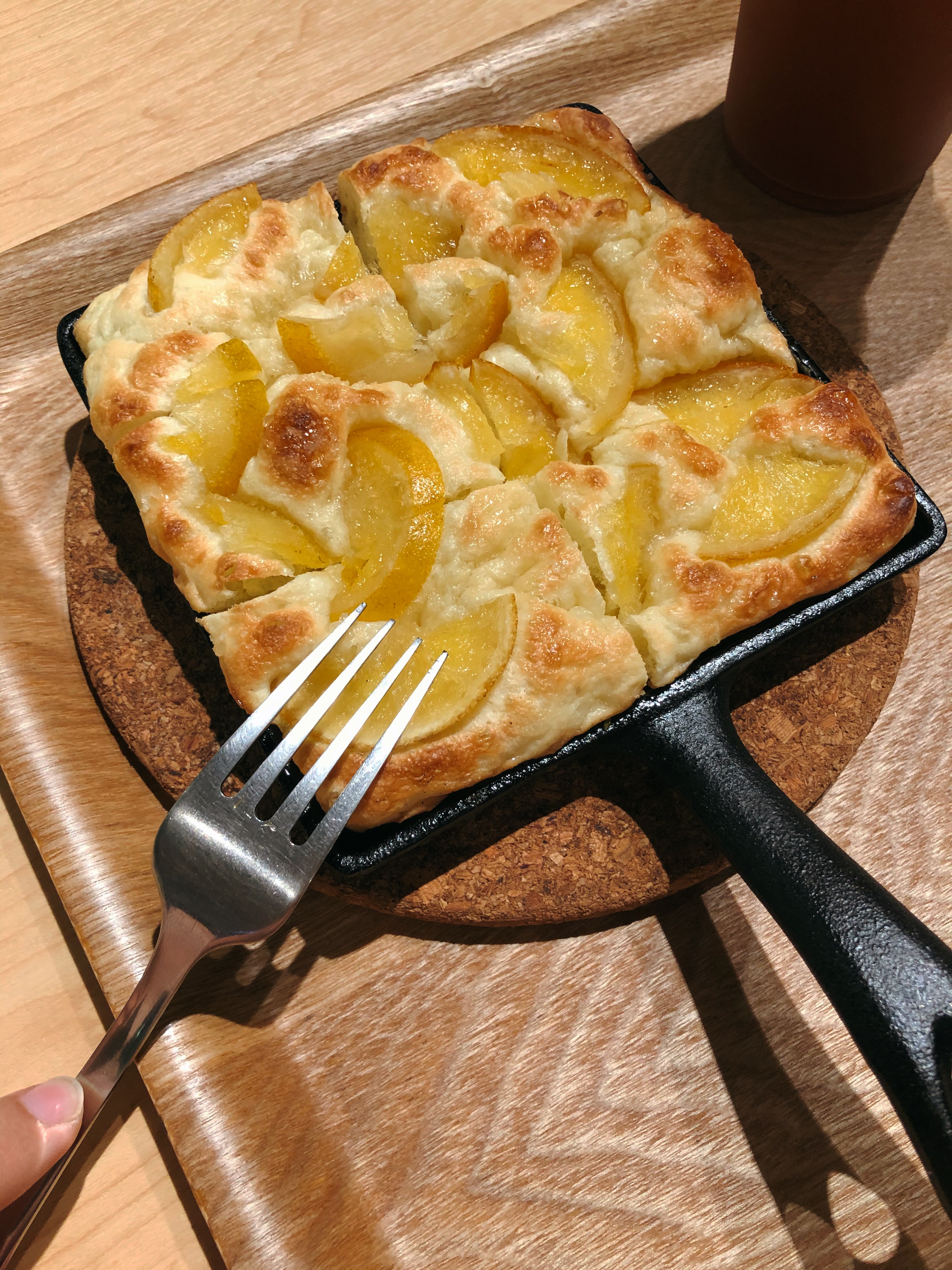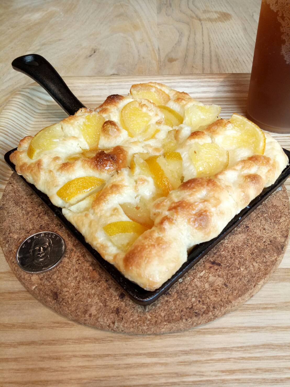 橄欖油烘烤後往鍋底滲透,不只讓麵包體充滿香氣,更在表層形成薄脆外皮,