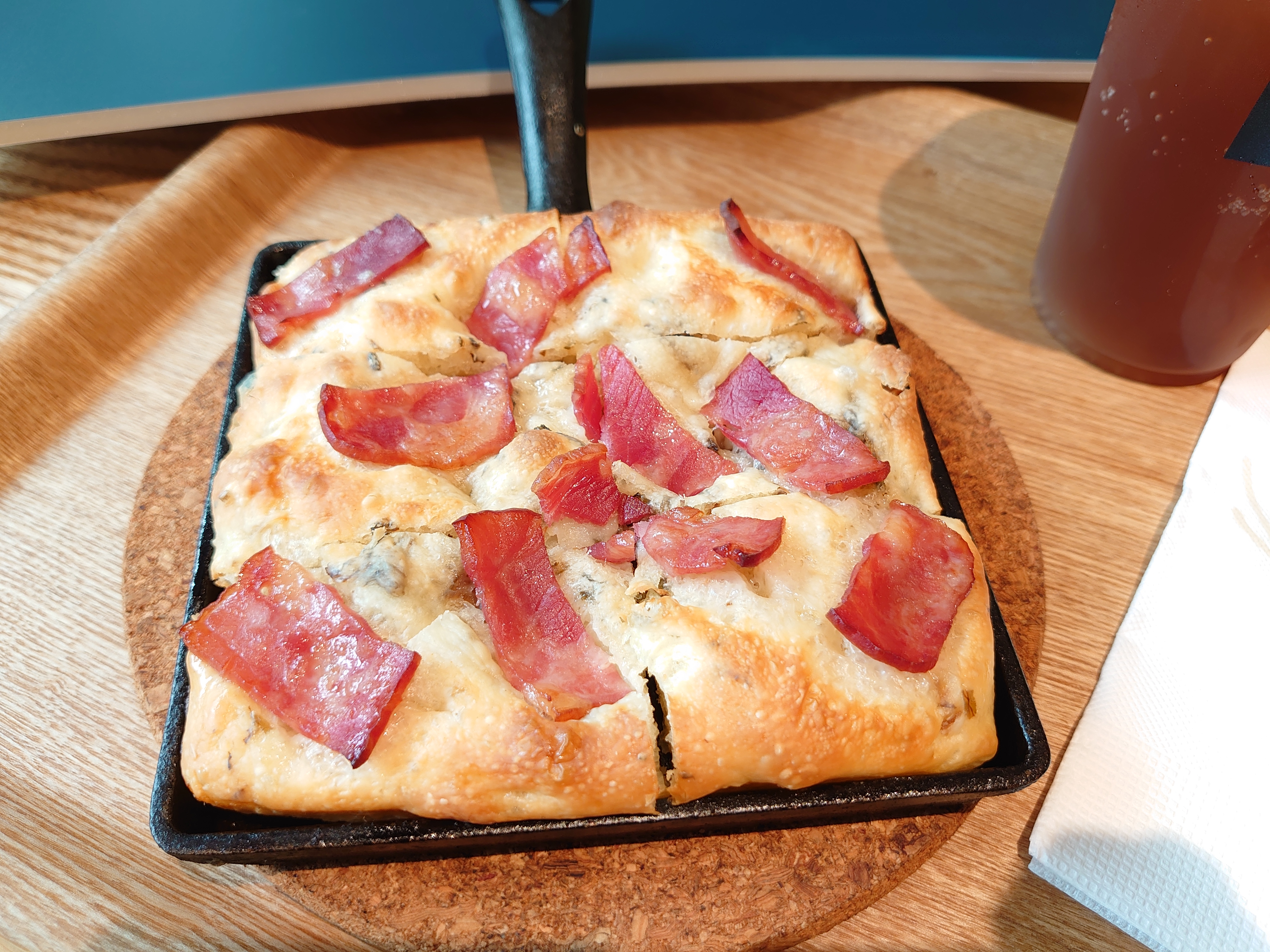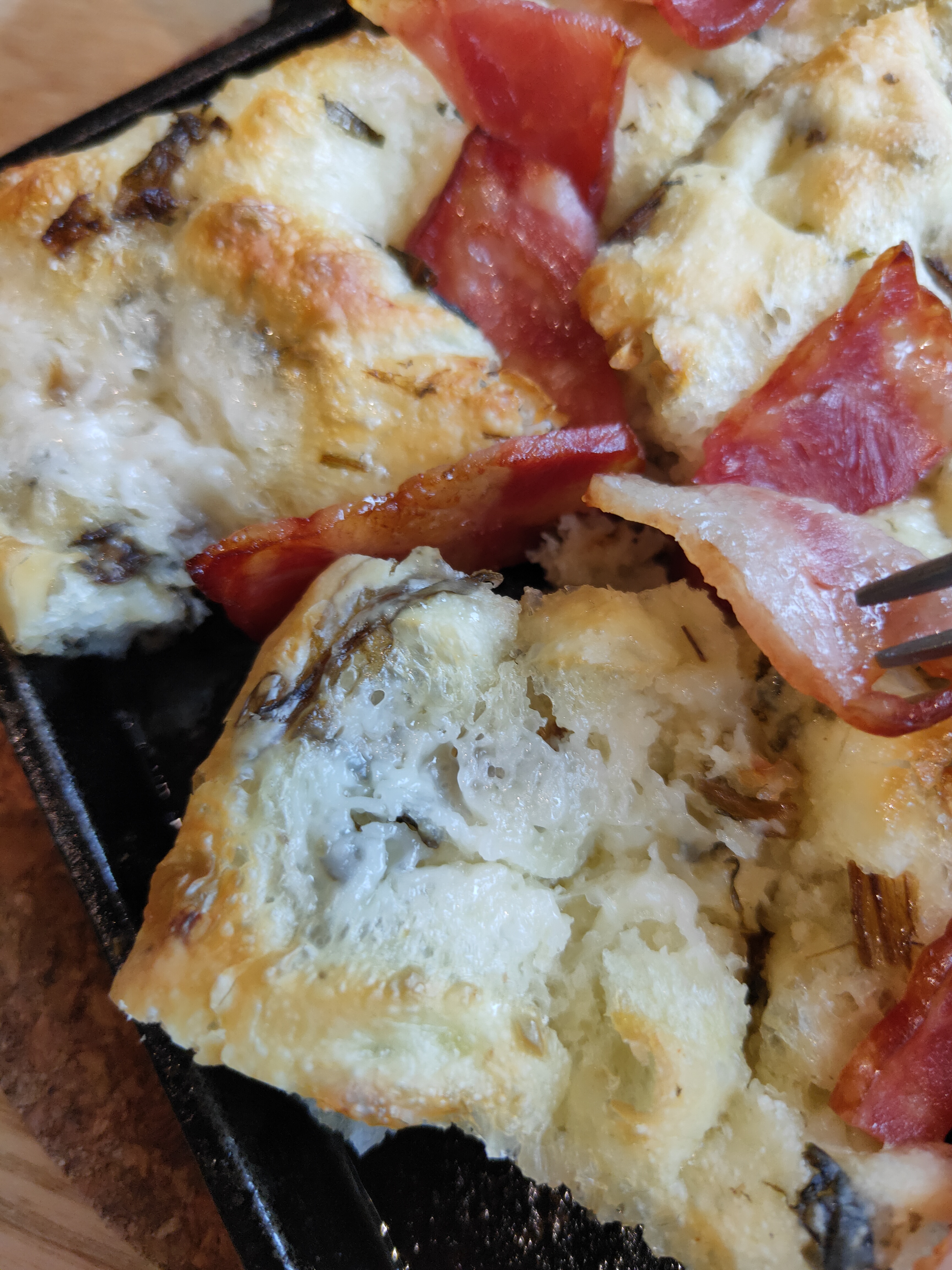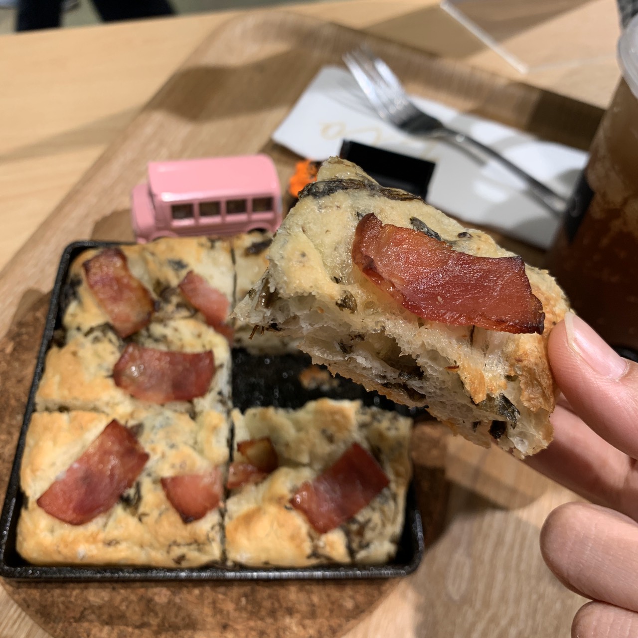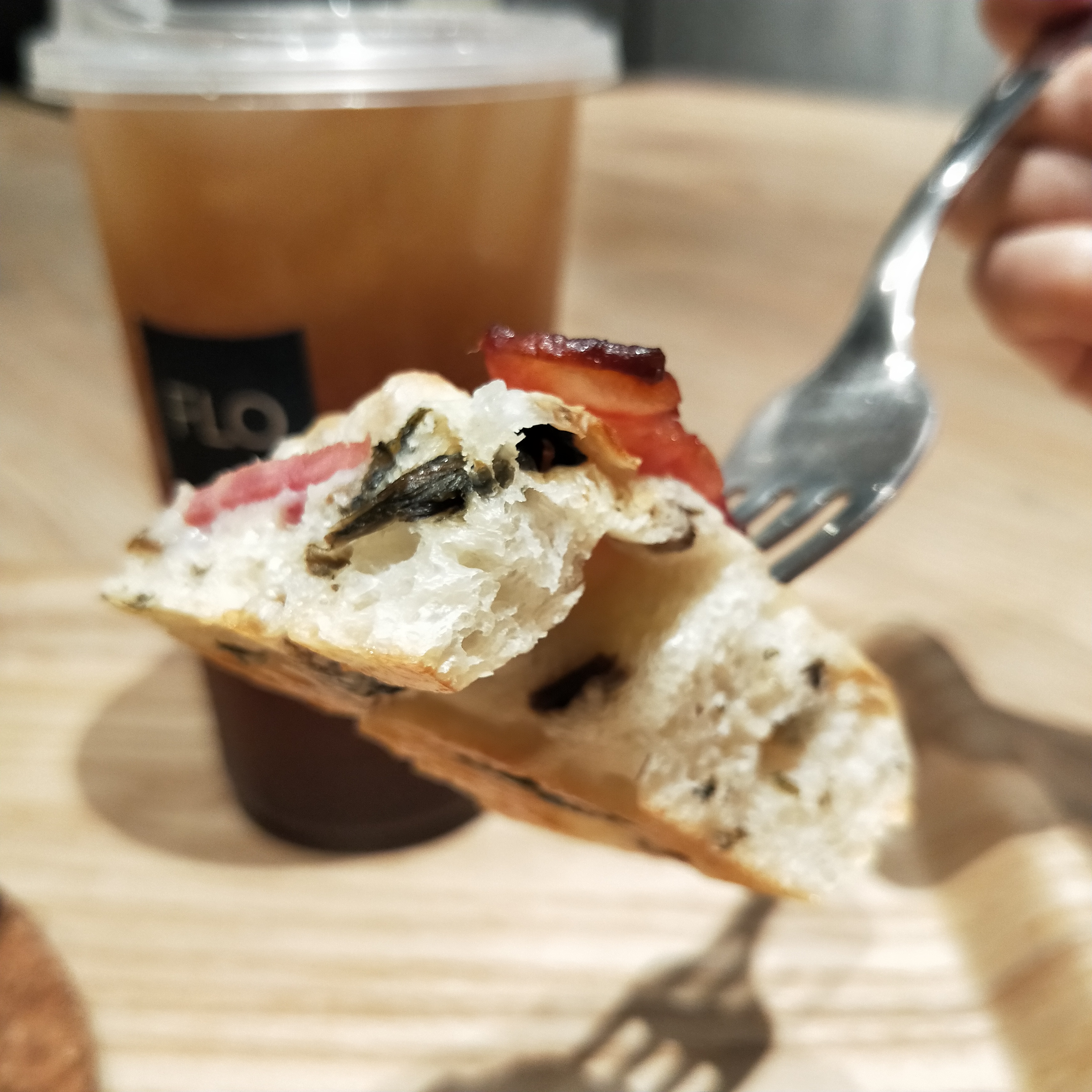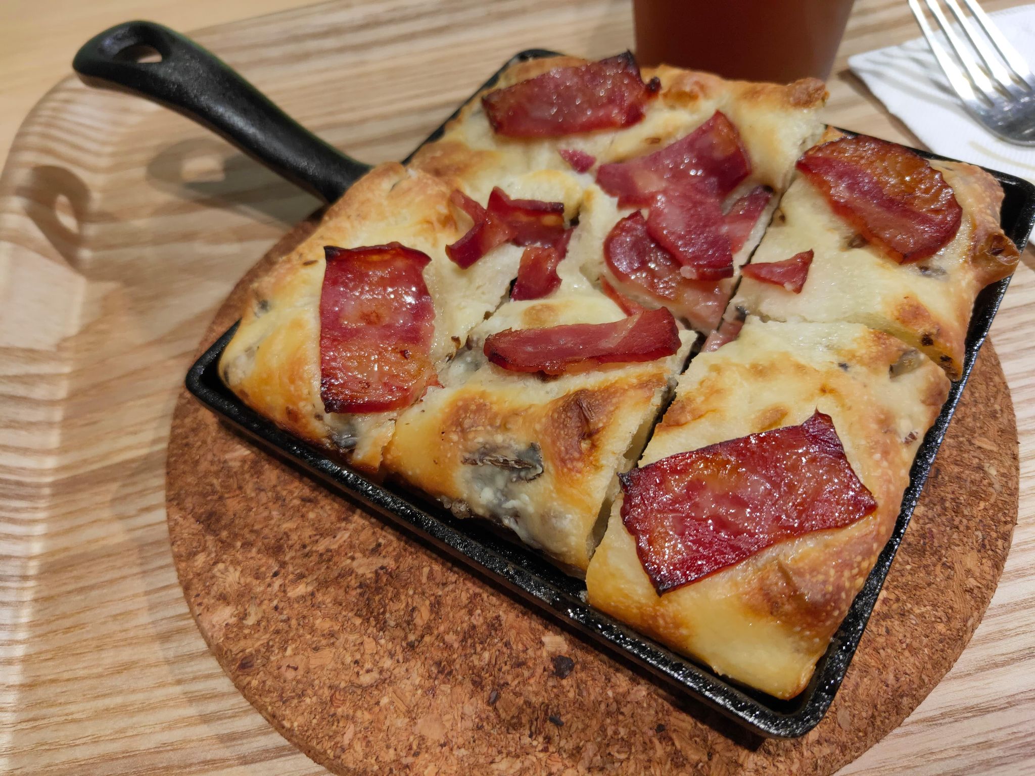 橄欖油烘烤後往鍋底滲透,不只讓麵包體充滿香氣,更在表層形成薄脆外皮,