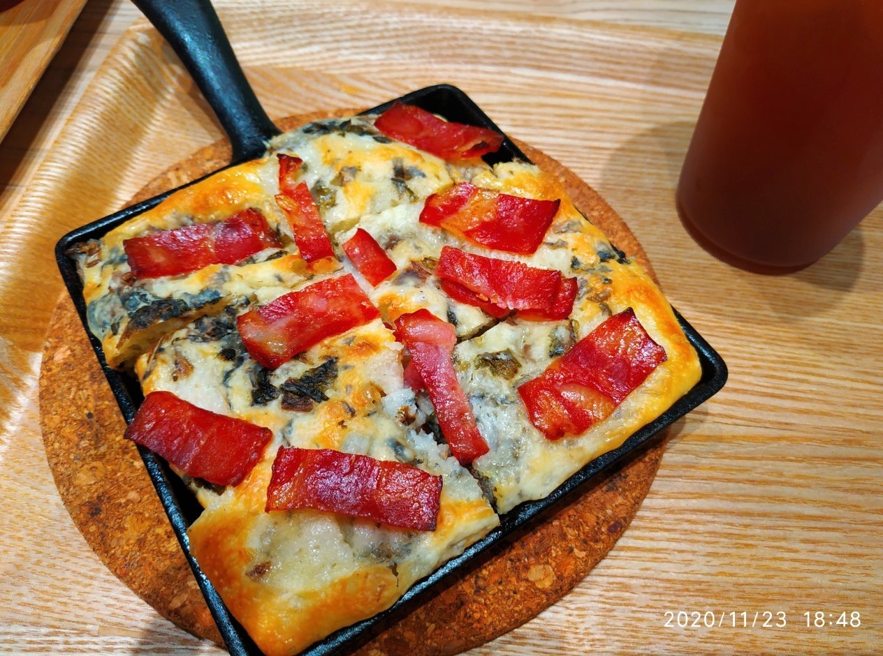 使其受熱平均膨脹,再放上各種意想不到的配料。