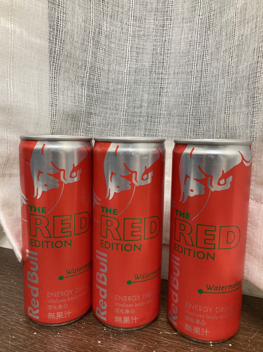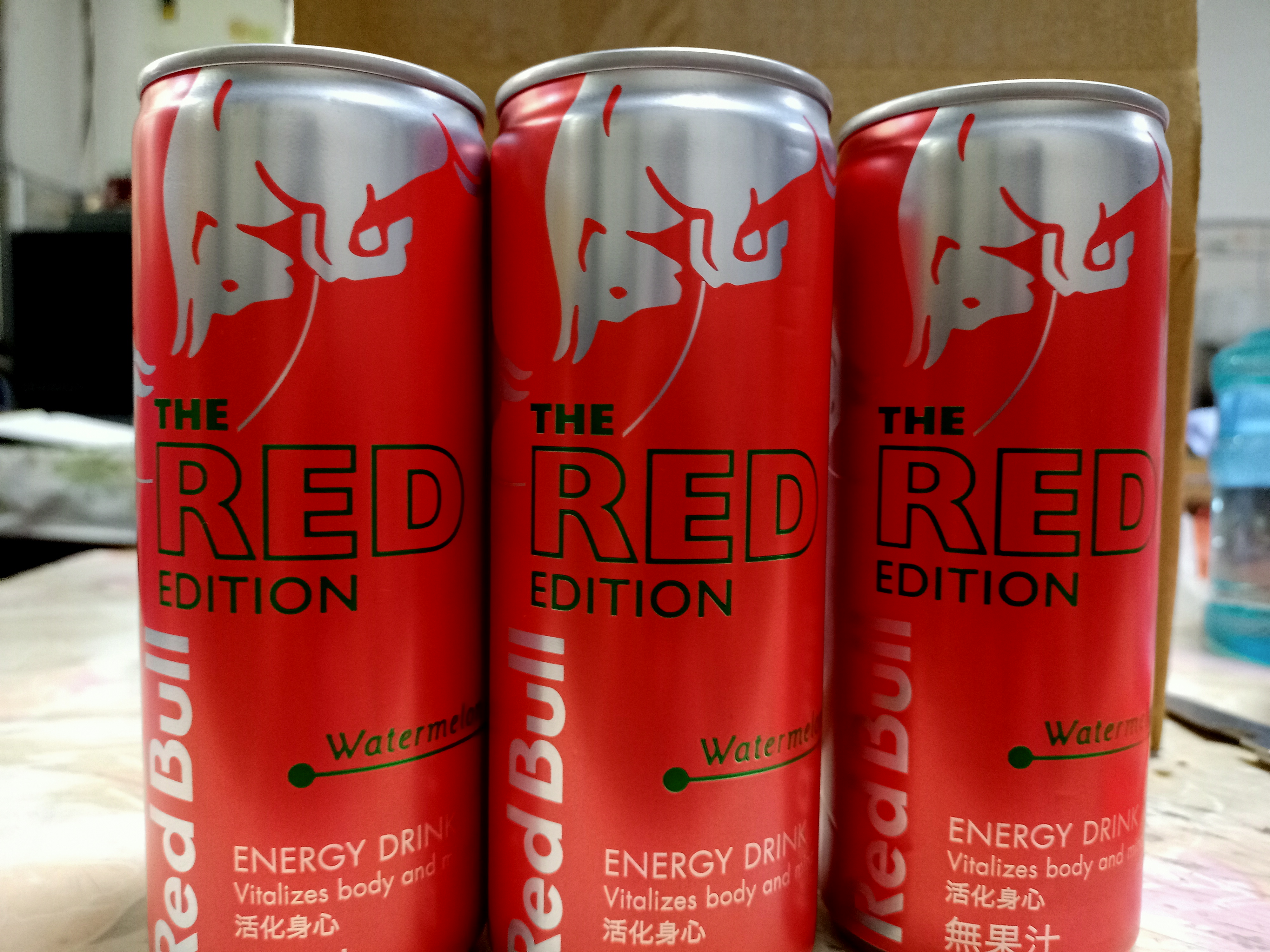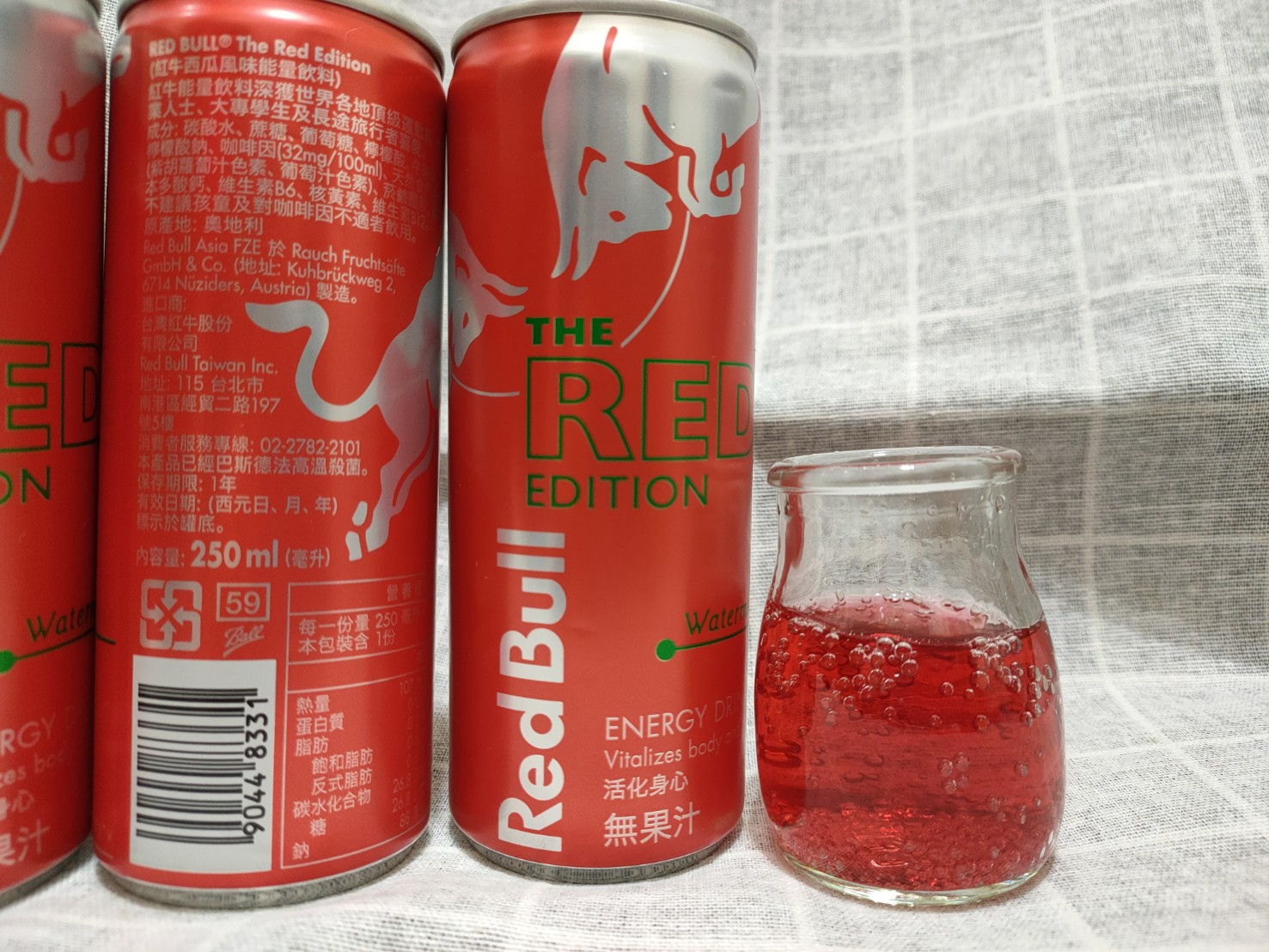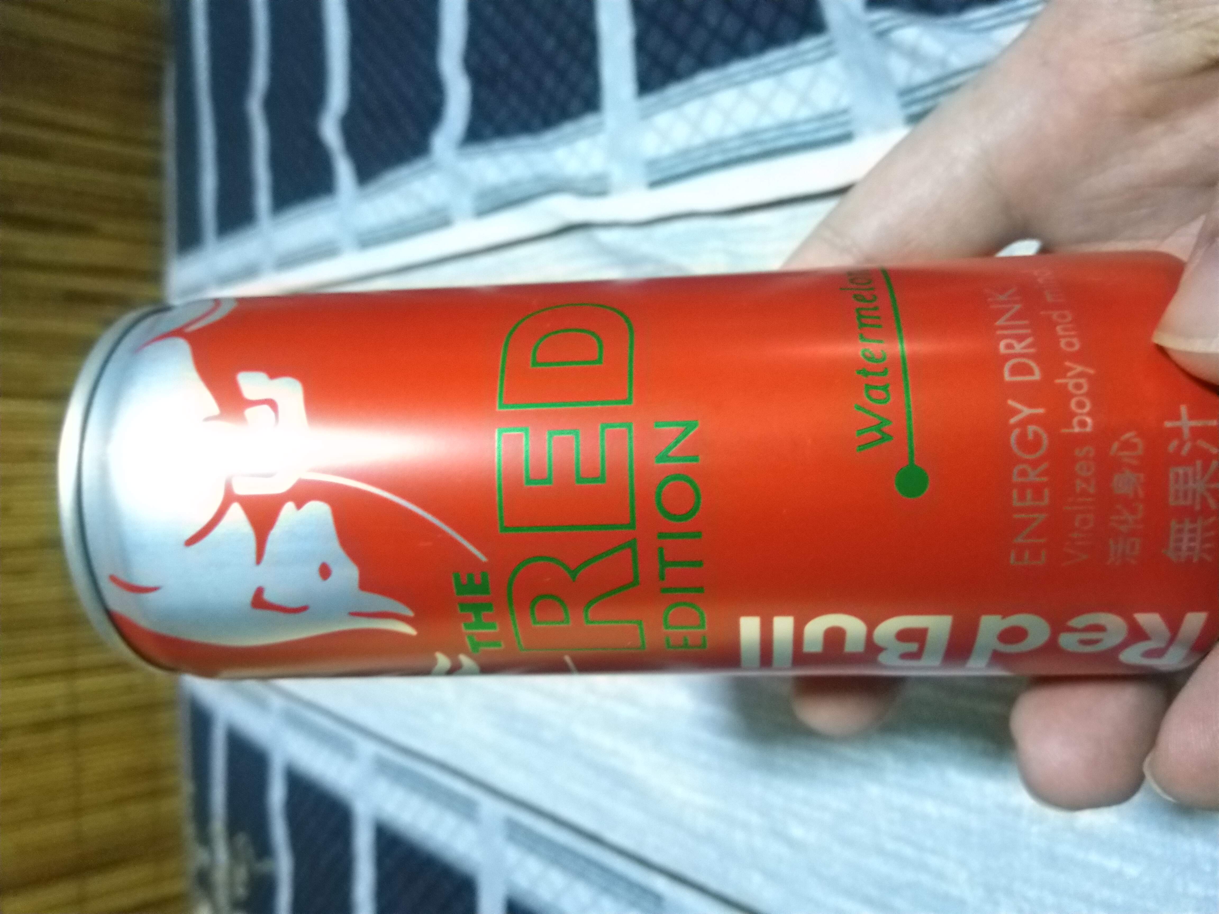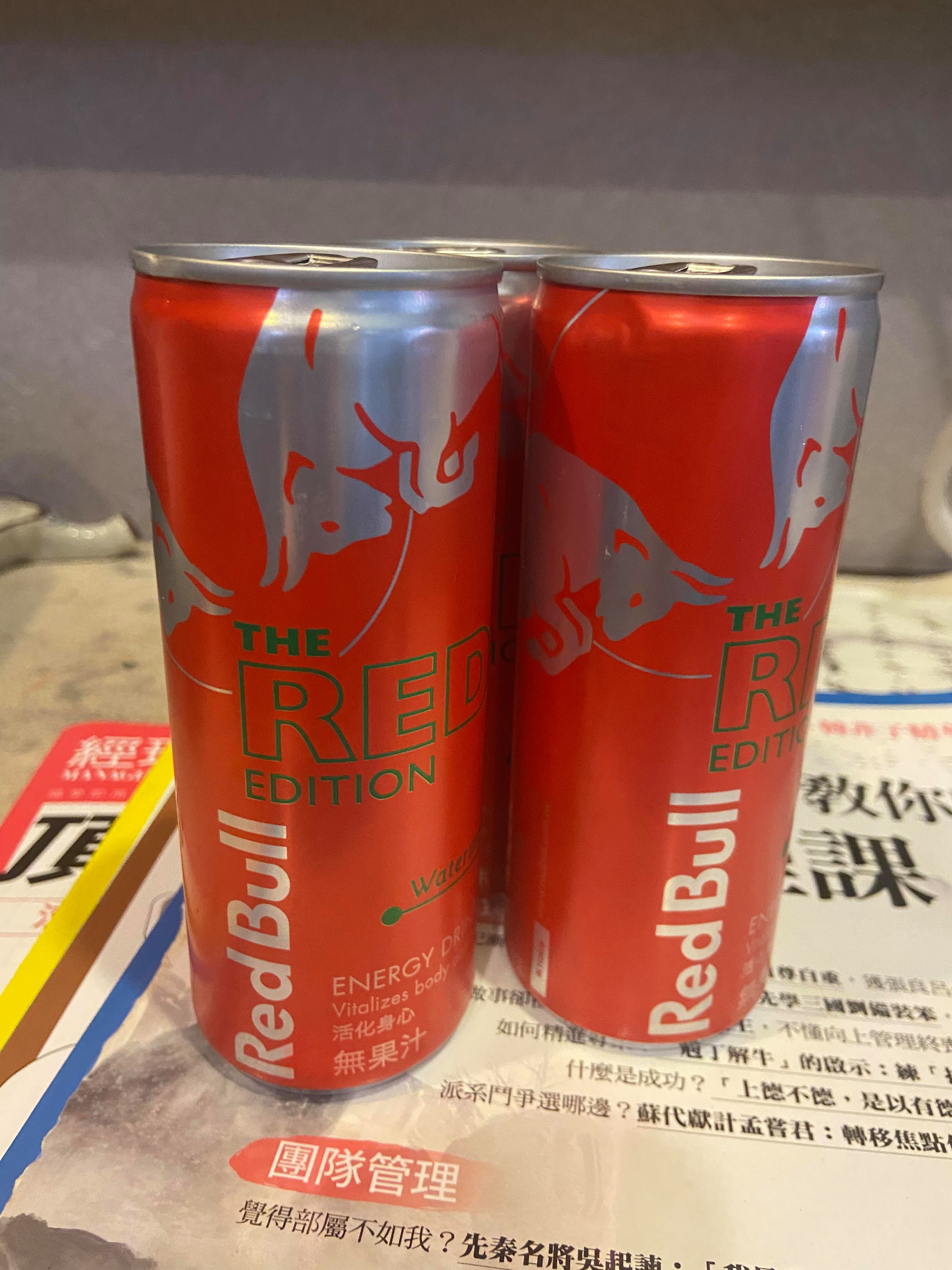 Red Bull紅牛西瓜風味能量飲料,其紅色包裝拿在手上有著滿滿的喜感,冰涼後喝了,喝得到西瓜的甘甜,其清爽氣泡不會有著其他品牌嗆口的口感,是氣泡飲料中的新選擇,其多種營養素可能不是喝幾瓶就可感覺到,而其含有的咖啡因喝了晚上不會有無法入睡的困擾,白天有著經神較好的活力,依我體質以前喝能量飲料,會有身體酸痛的感覺,此紅牛能量飲料就沒有此問題,將會是以後夏天飲料的新選擇。