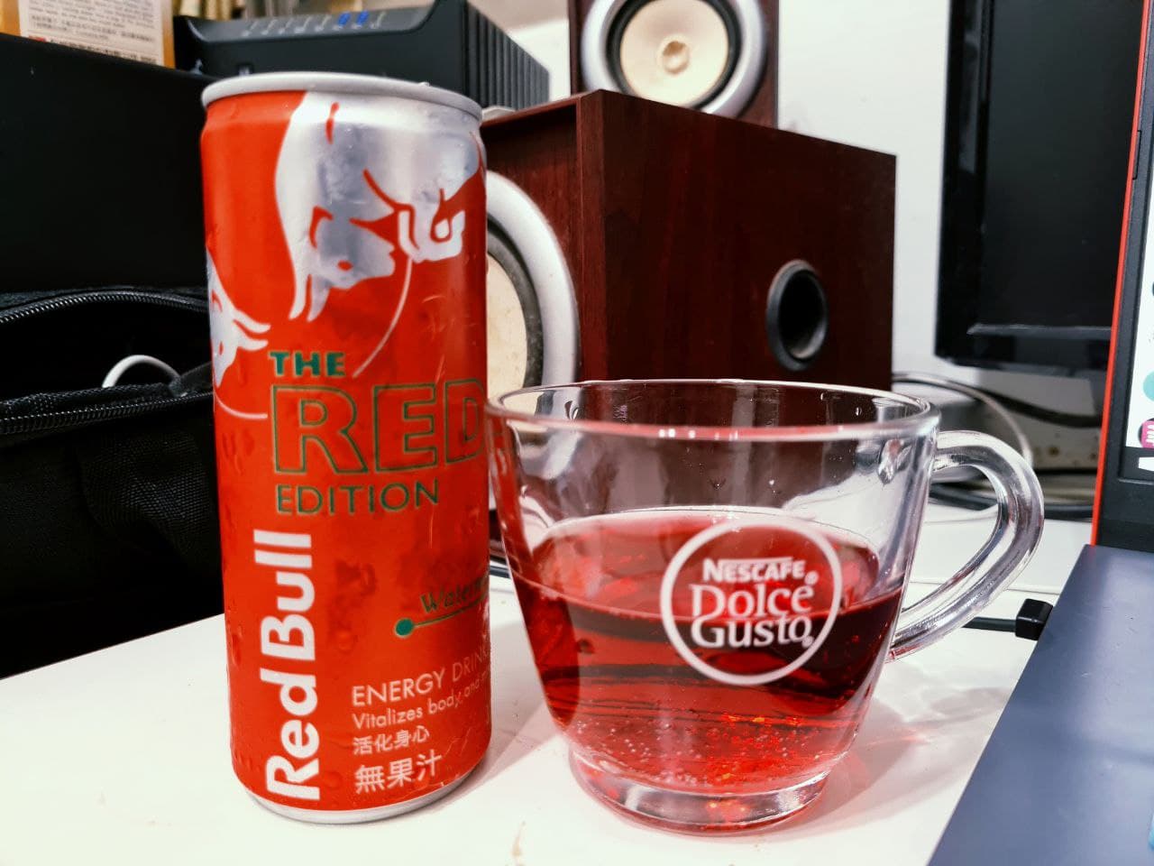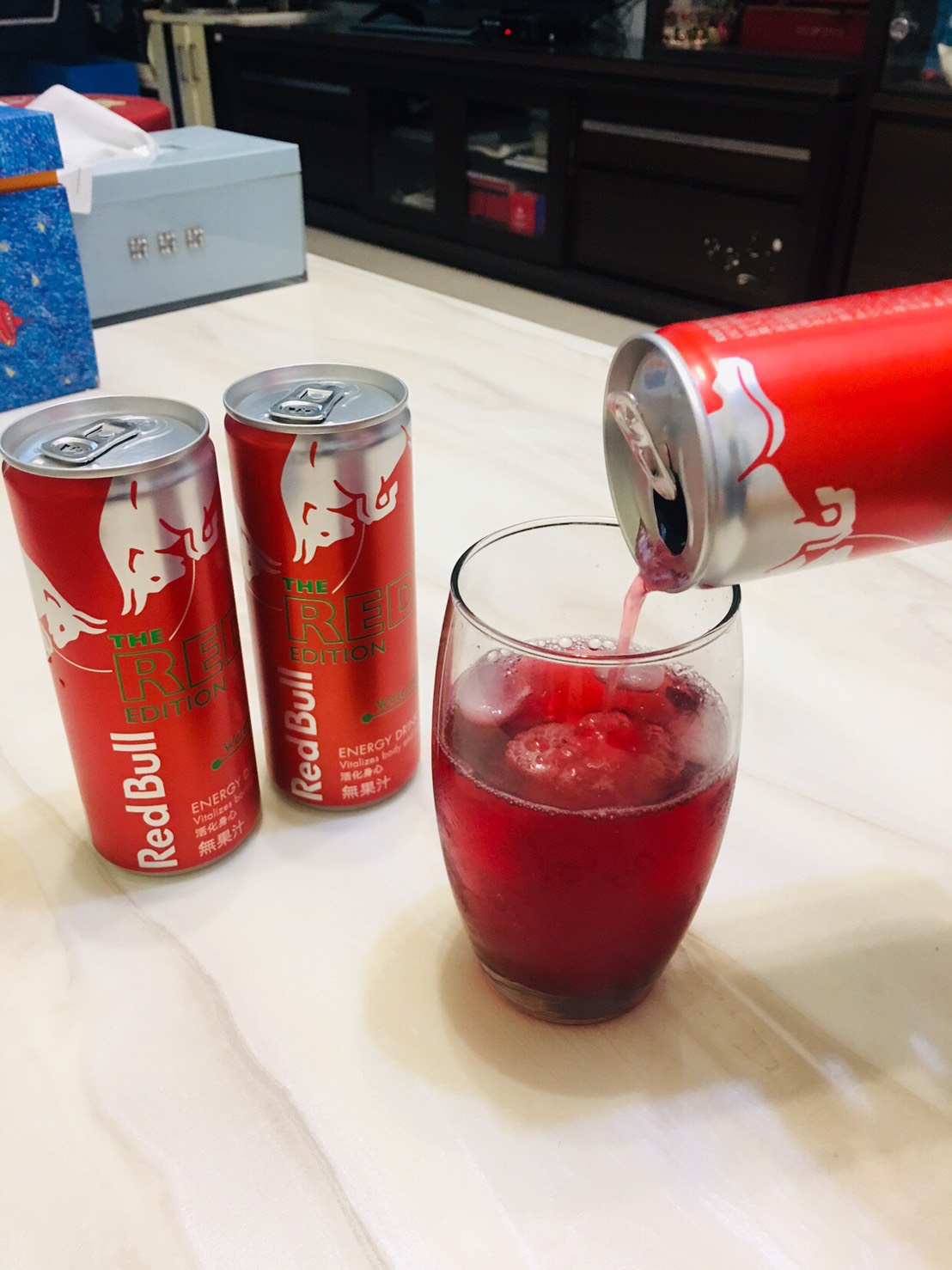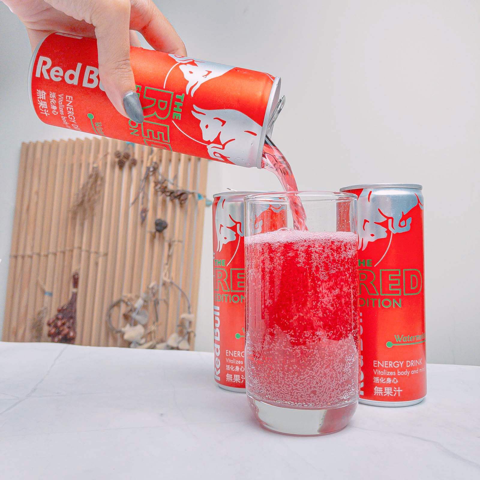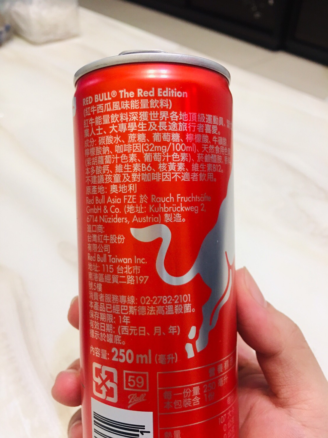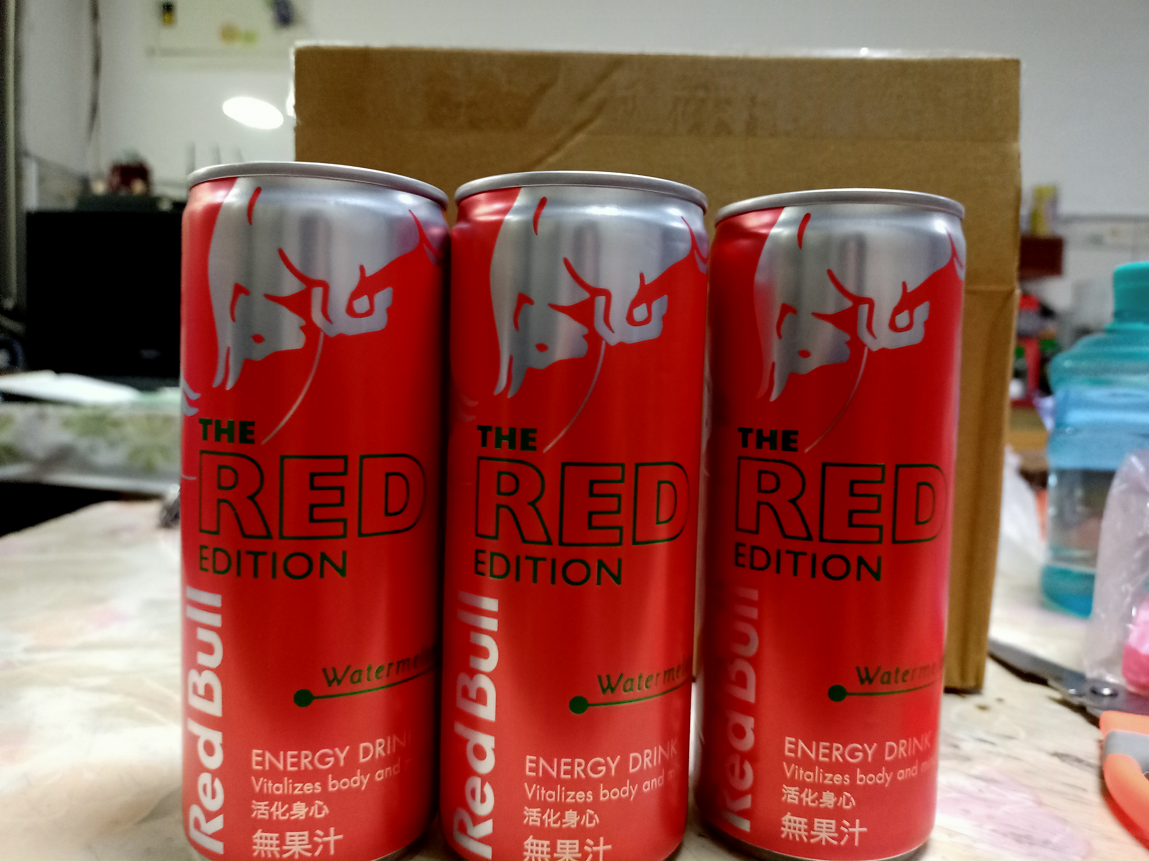 Red Bull紅牛西瓜風味能量飲料,其紅色包裝拿在手上有著滿滿的喜感,冰涼後喝了,喝得到西瓜的甘甜,其清爽氣泡不會有著其他品牌嗆口的口感,是氣泡飲料中的新選擇,其多種營養素可能不是喝幾瓶就可感覺到,而其含有的咖啡因喝了晚上不會有無法入睡的困擾,白天有著經神較好的活力,依我體質以前喝能量飲料,會有身體酸痛的感覺,此紅牛能量飲料就沒有此問題,將會是以後夏天飲料的新選擇。