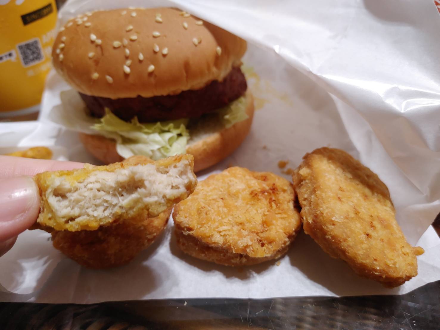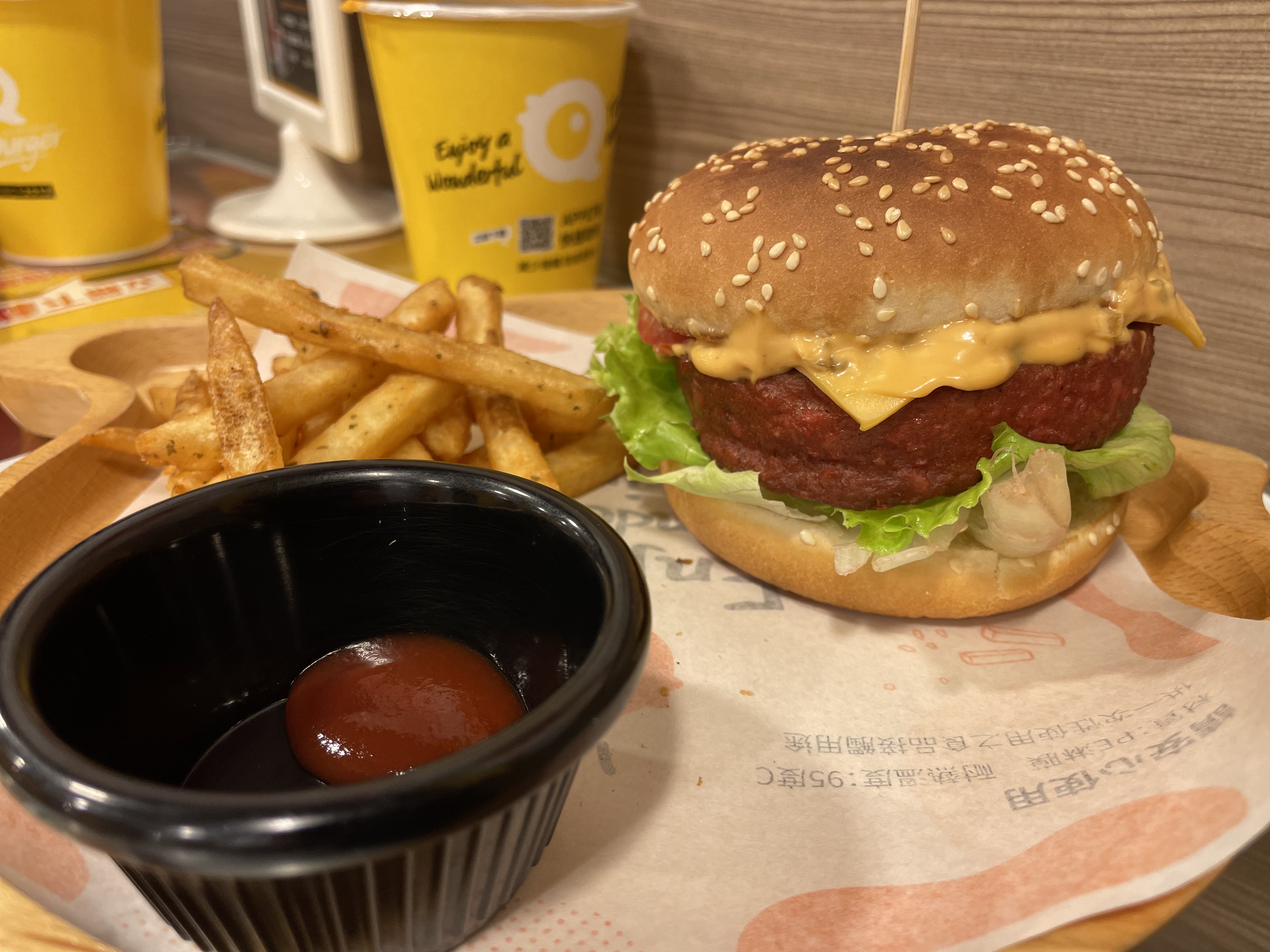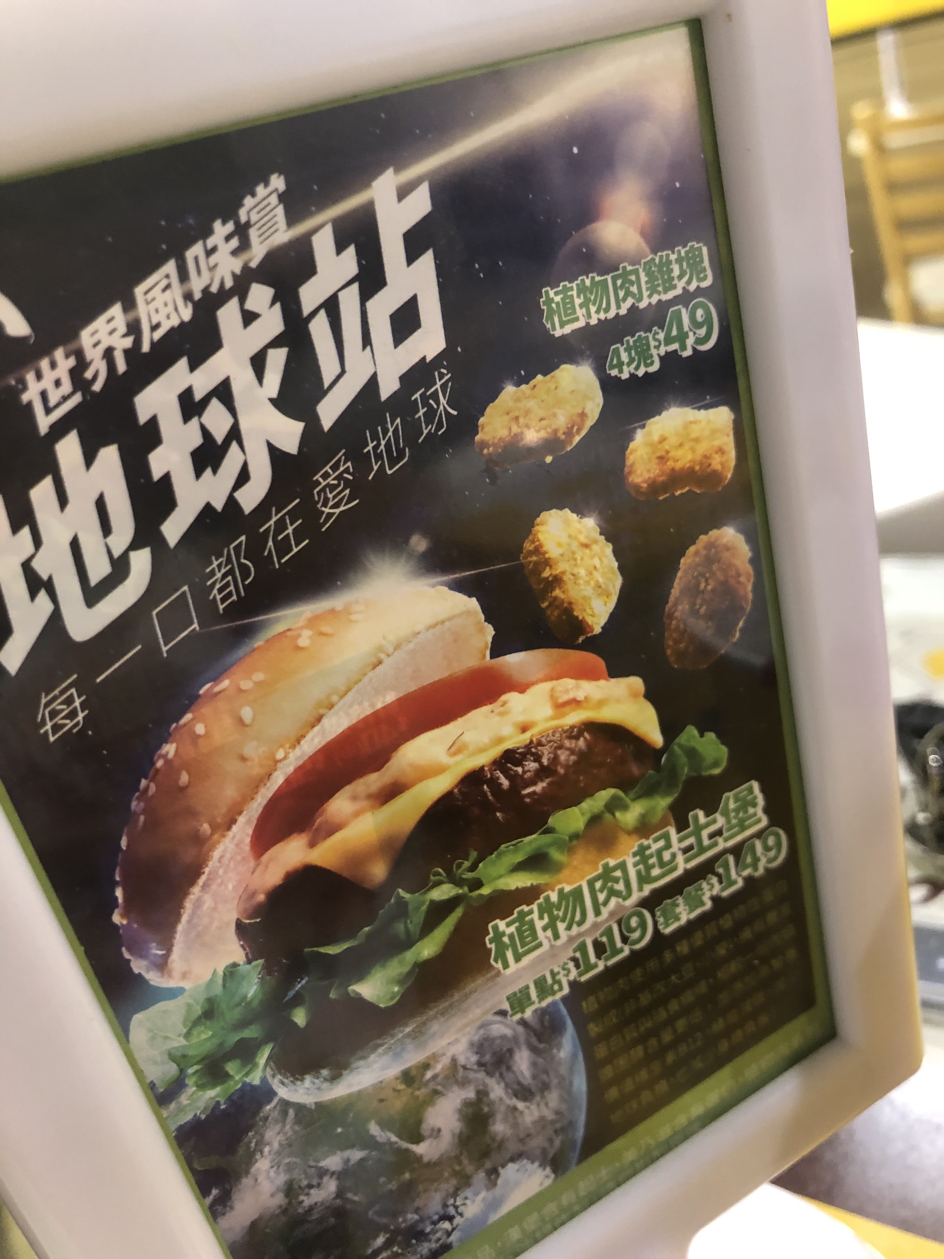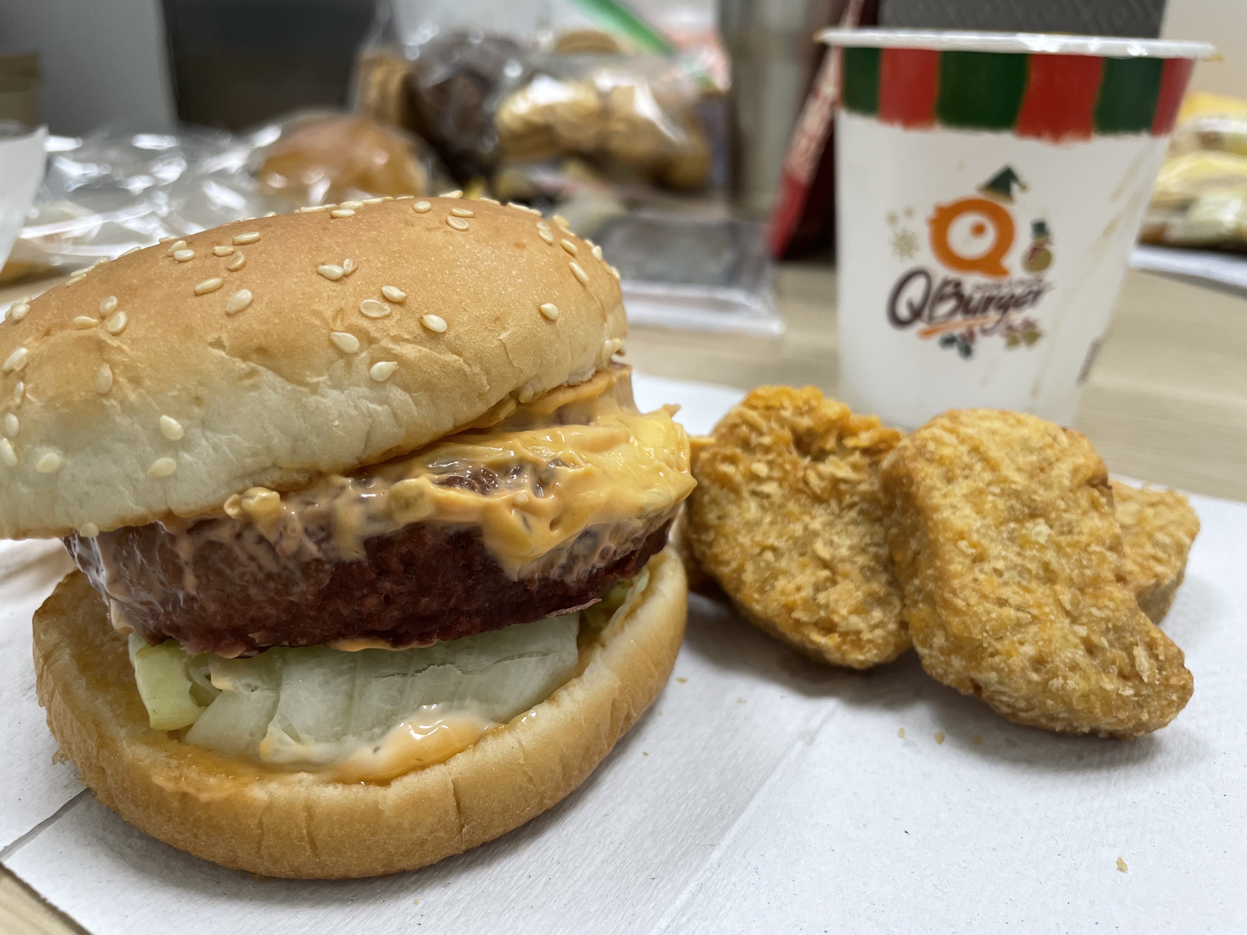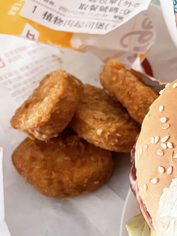 植物肉非全素產品,植物肉起士堡含有起士與美乃滋含有蛋奶,植物肉系列與肉品在同一煎板台煎製、油鍋炸製。 |