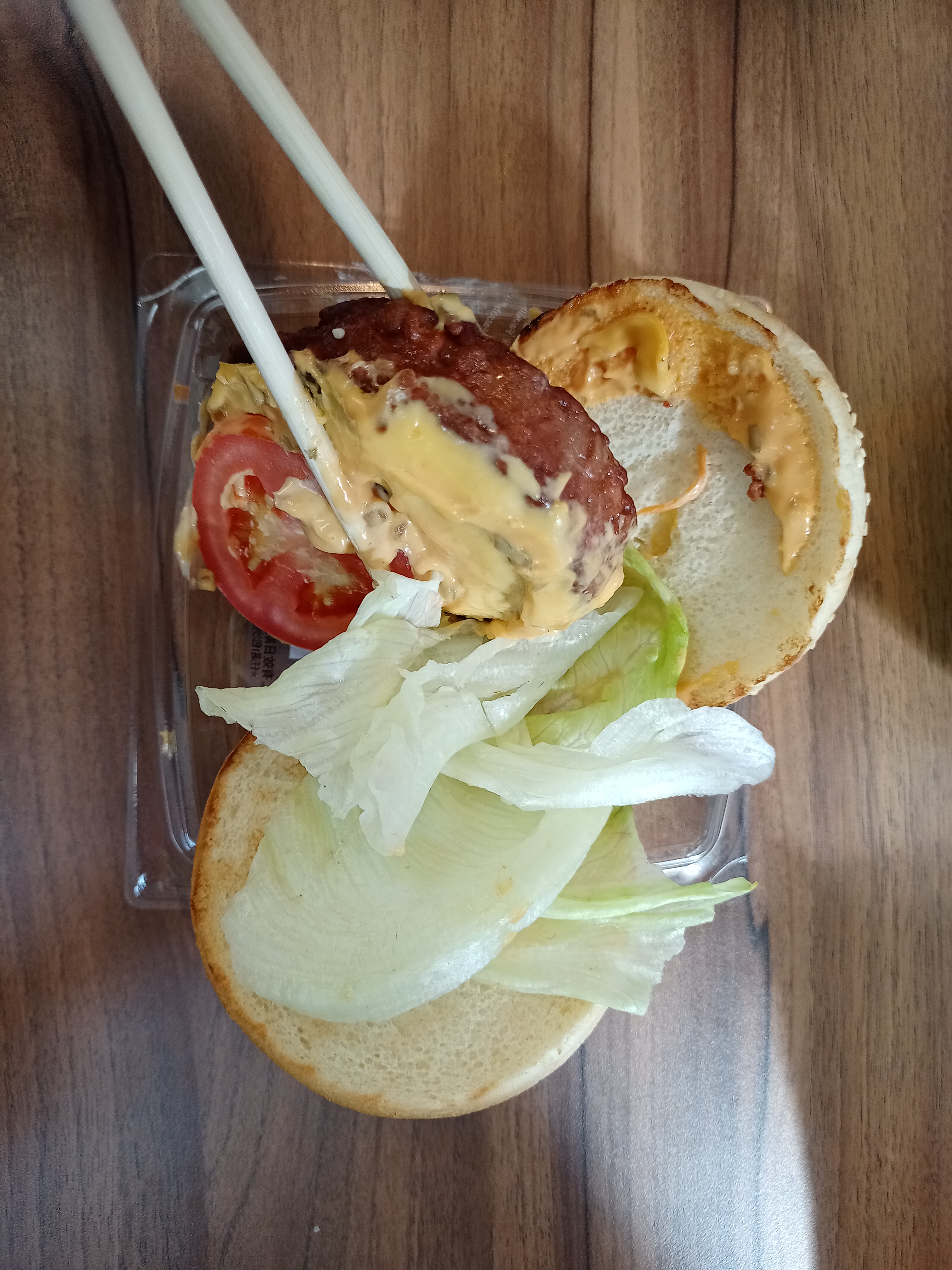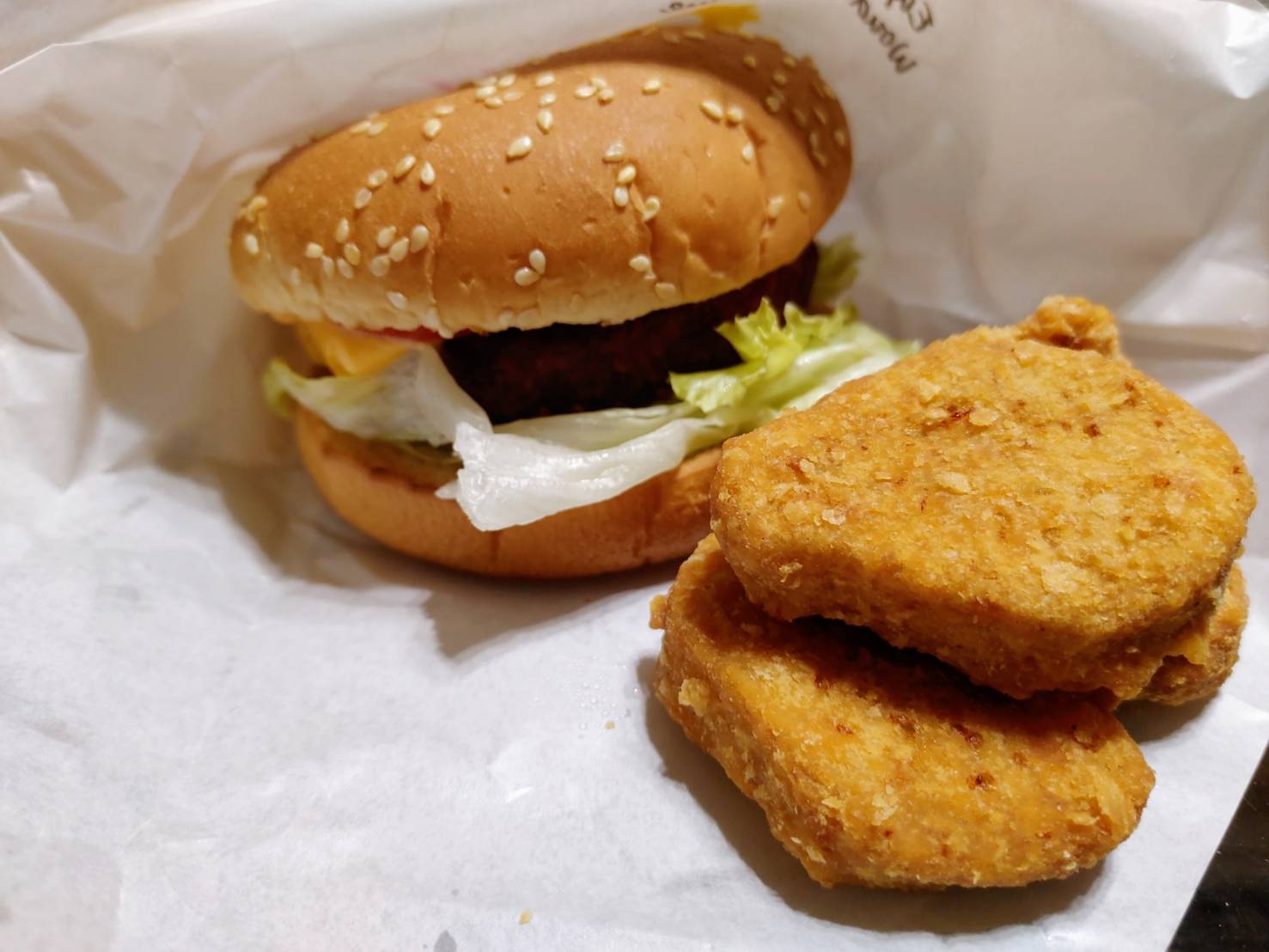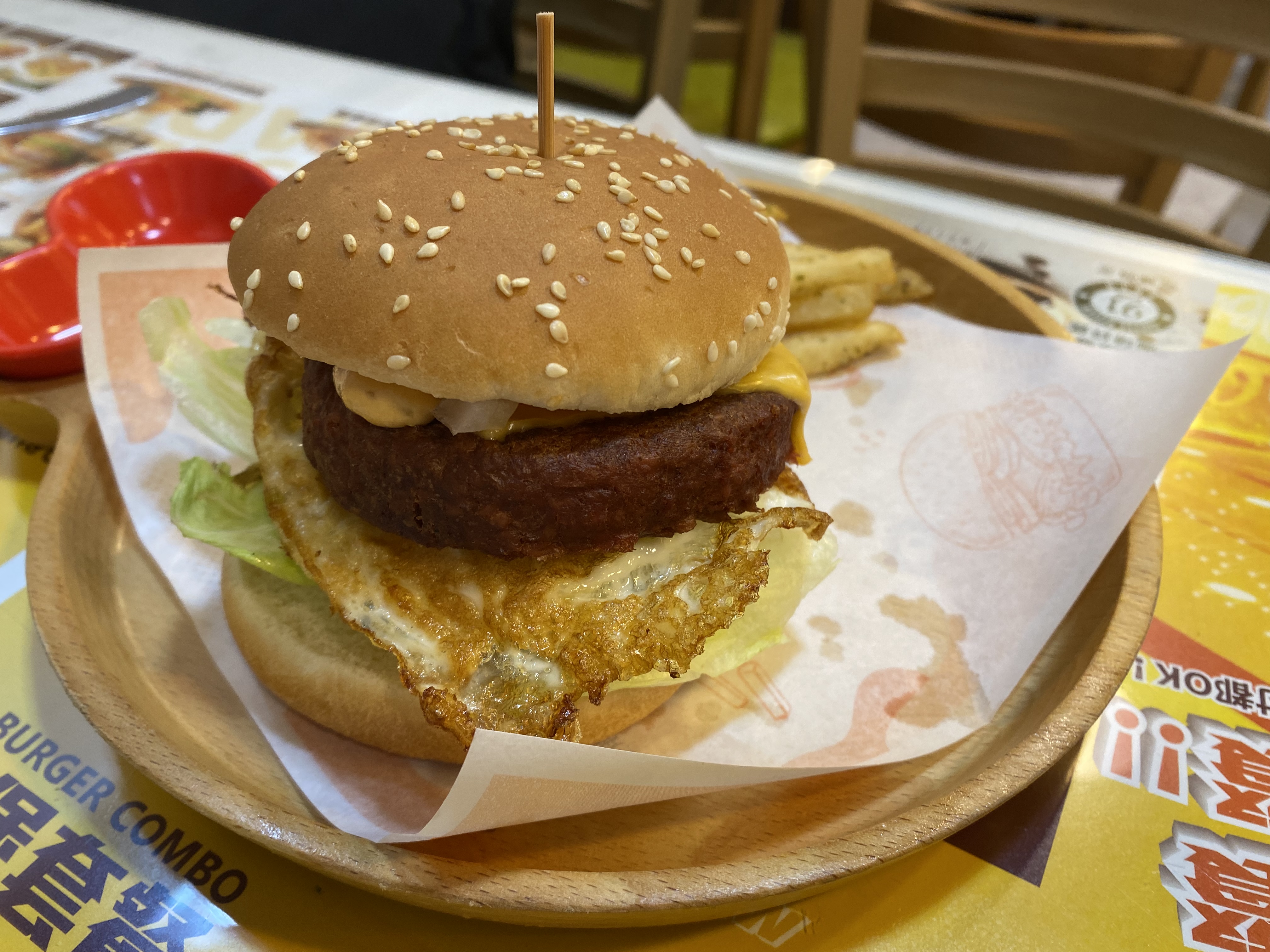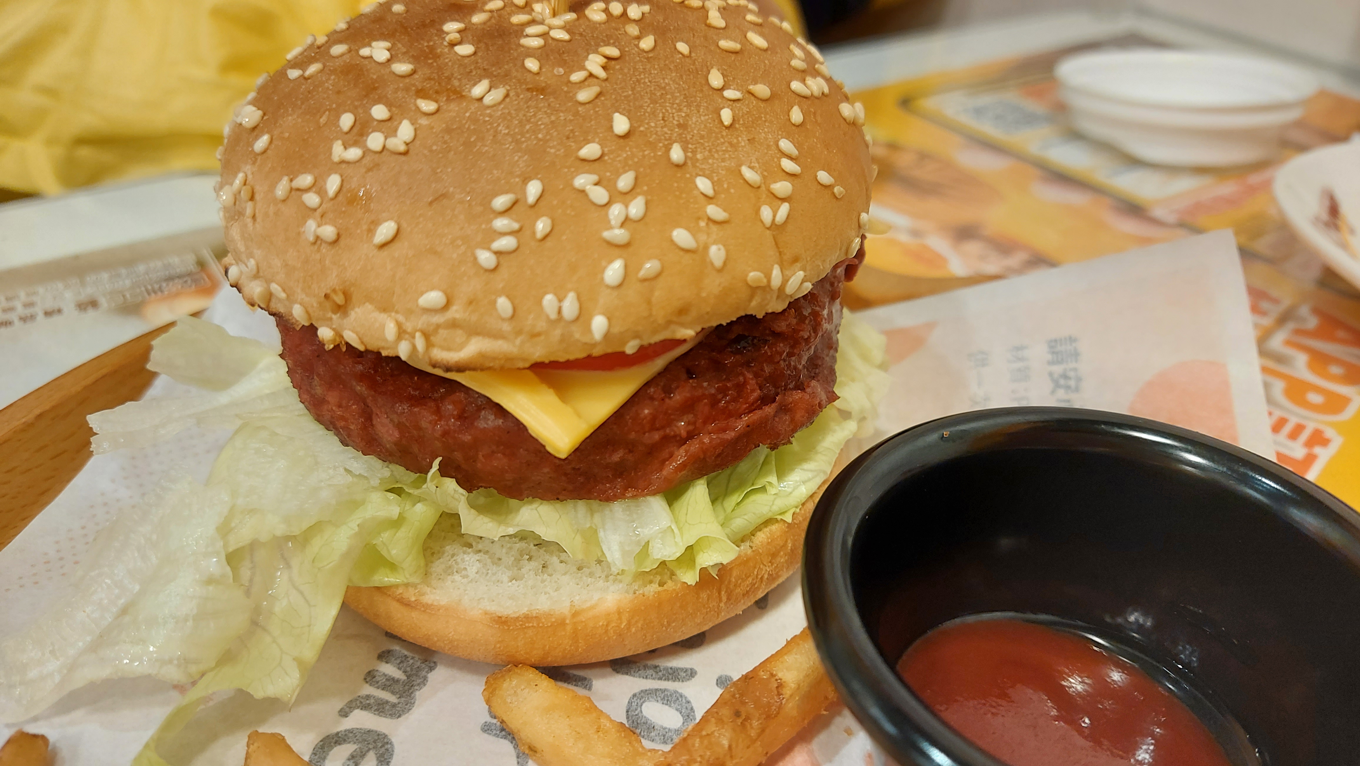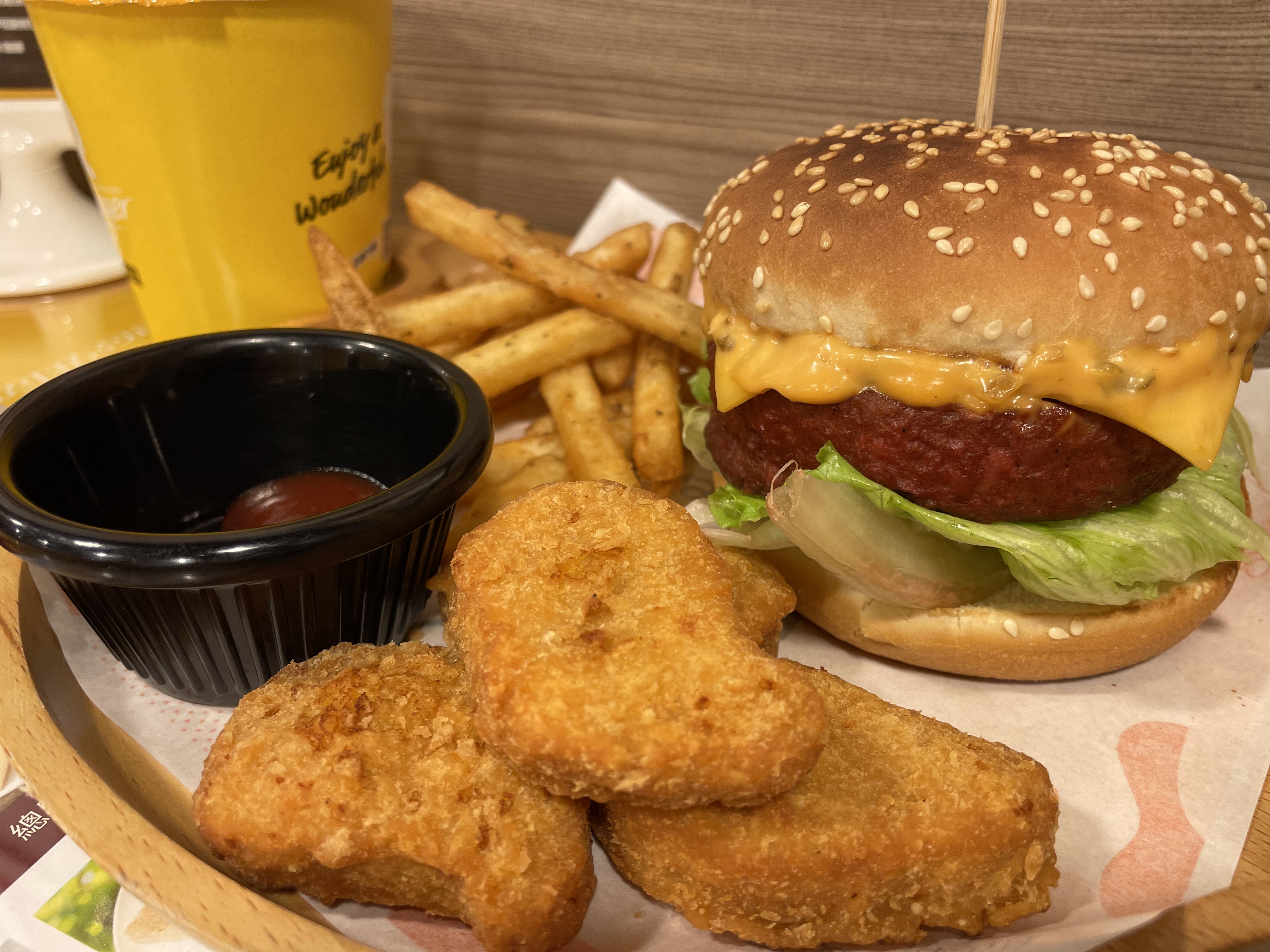 植物肉非全素產品,植物肉起士堡含有起士與美乃滋含有蛋奶,植物肉系列與肉品在同一煎板台煎製、油鍋炸製。 |