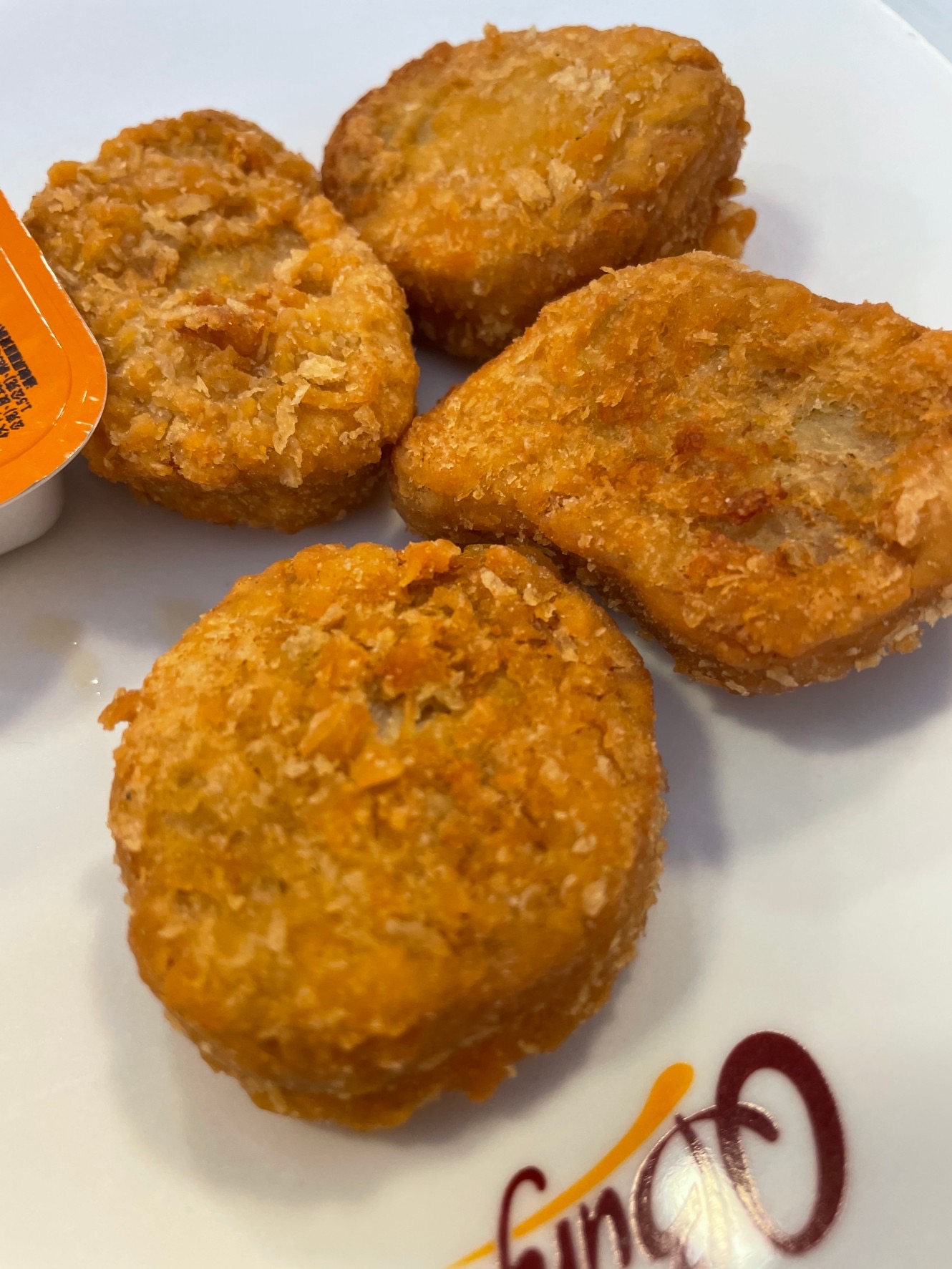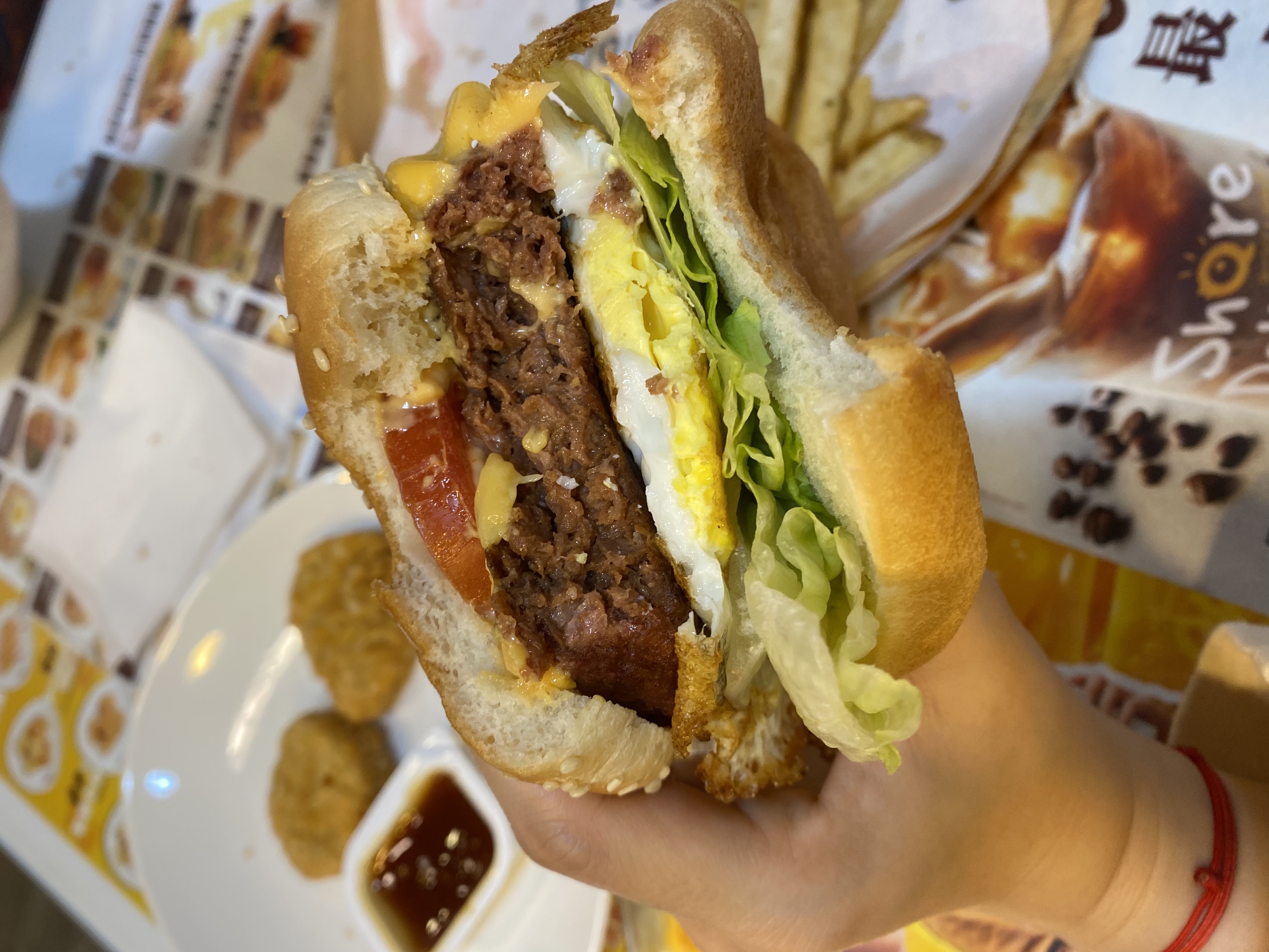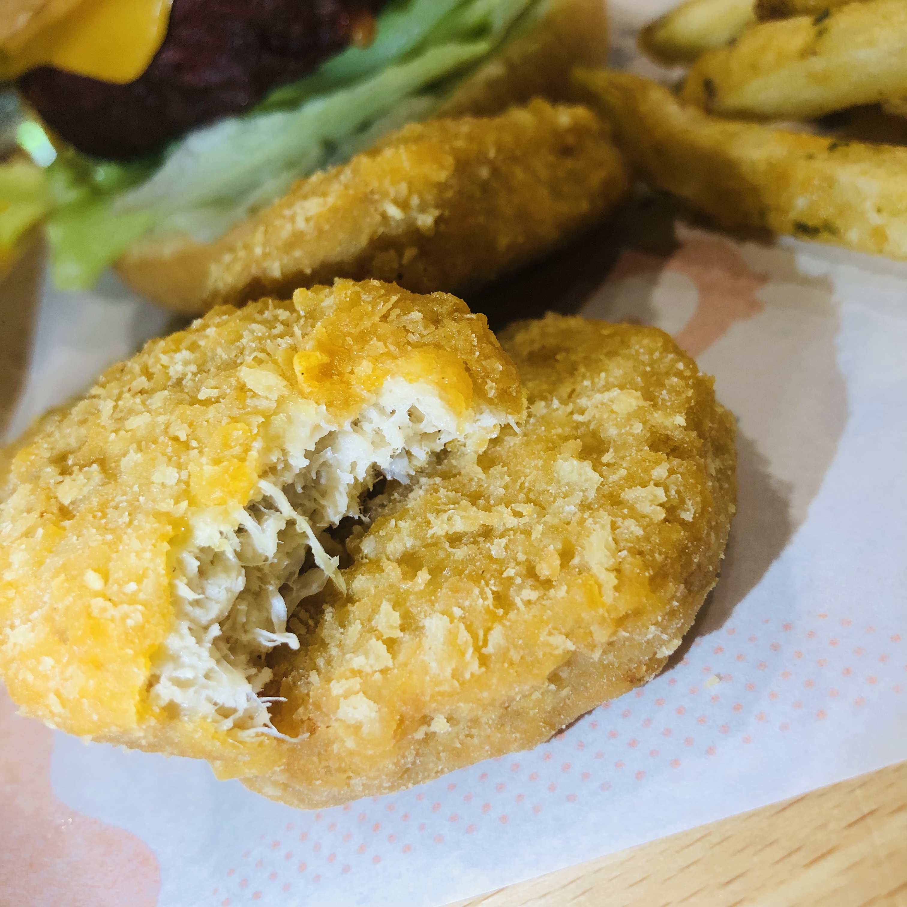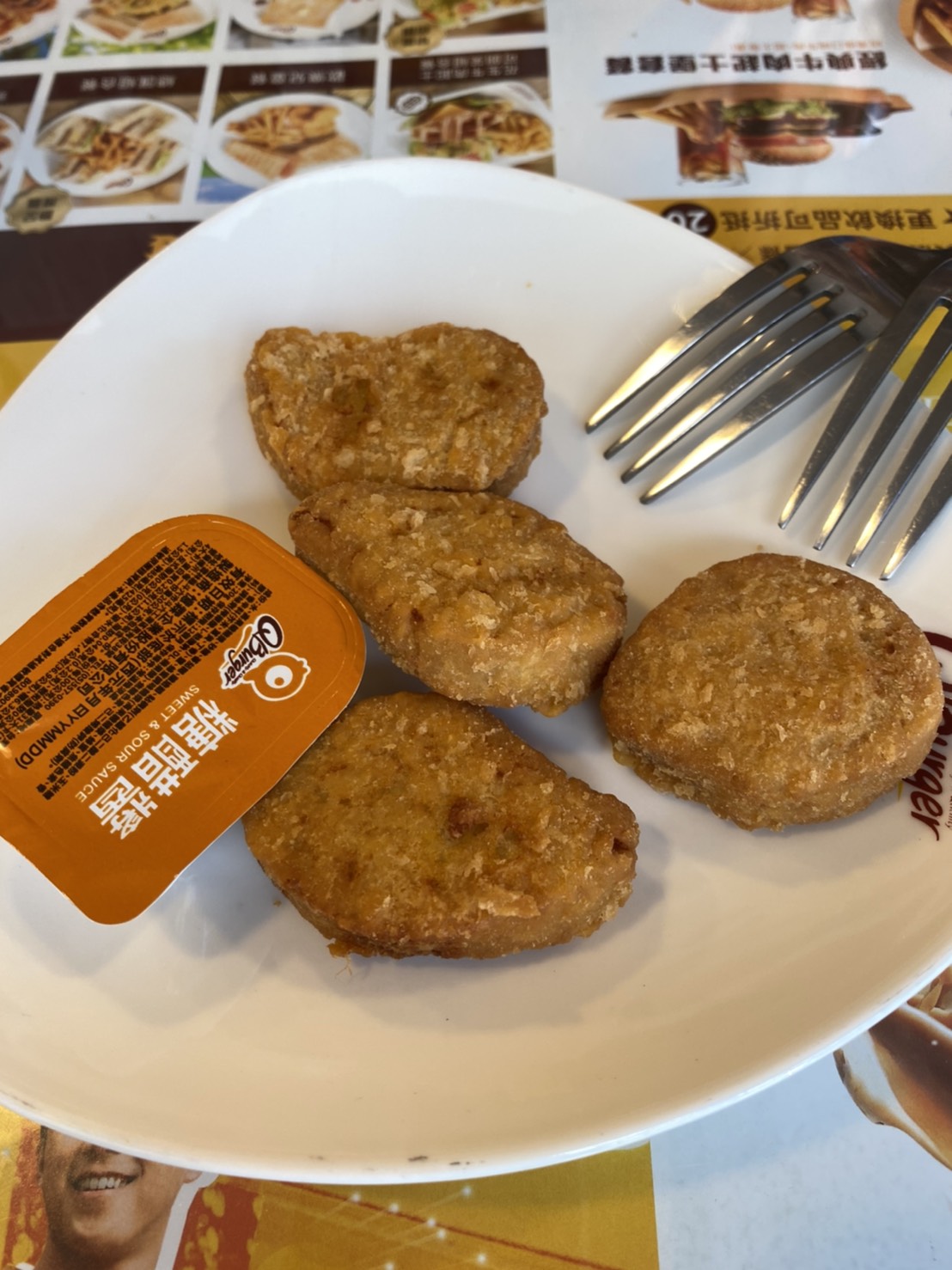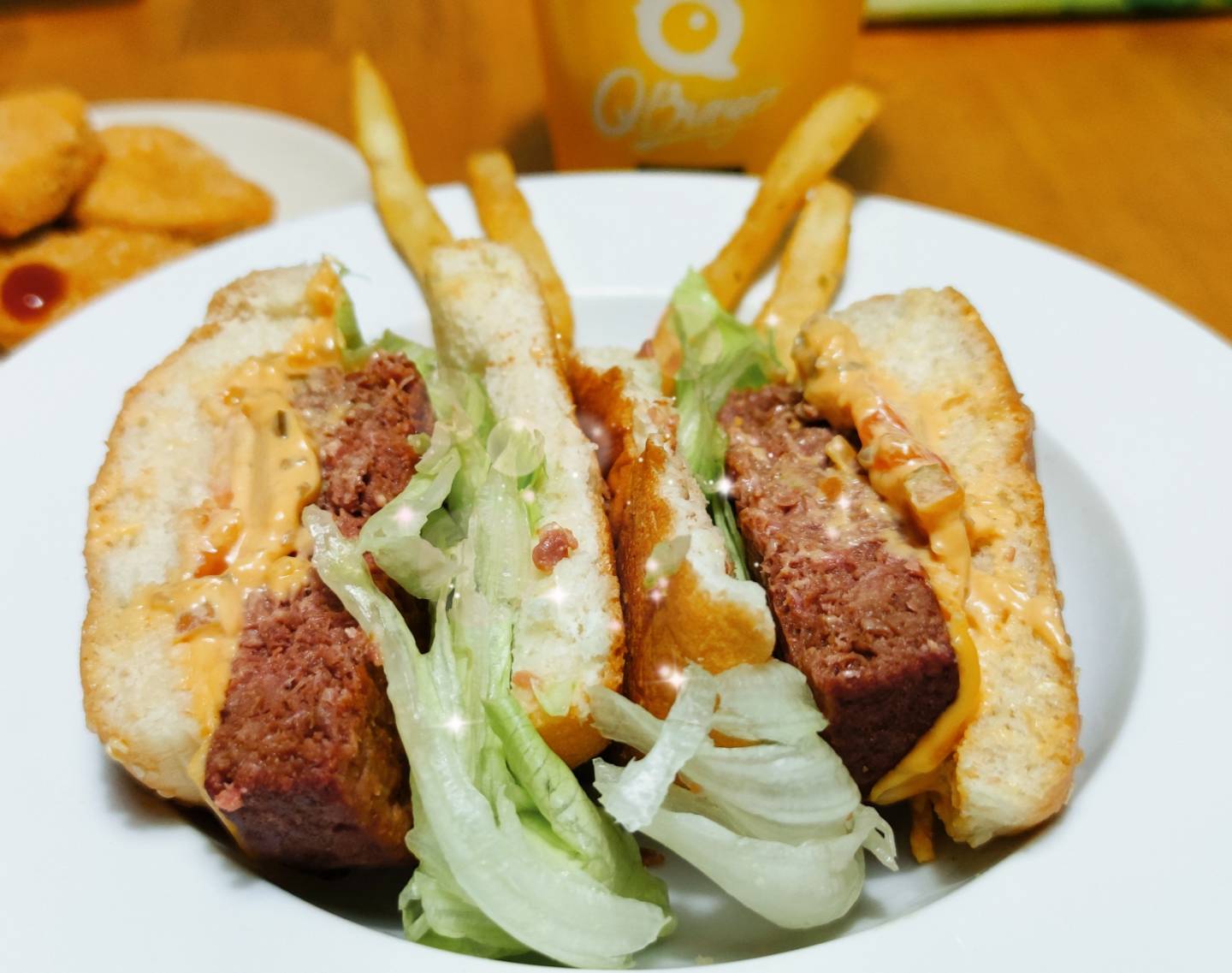 植物肉非全素產品,植物肉起士堡含有起士與美乃滋含有蛋奶,植物肉系列與肉品在同一煎板台煎製、油鍋炸製。 |