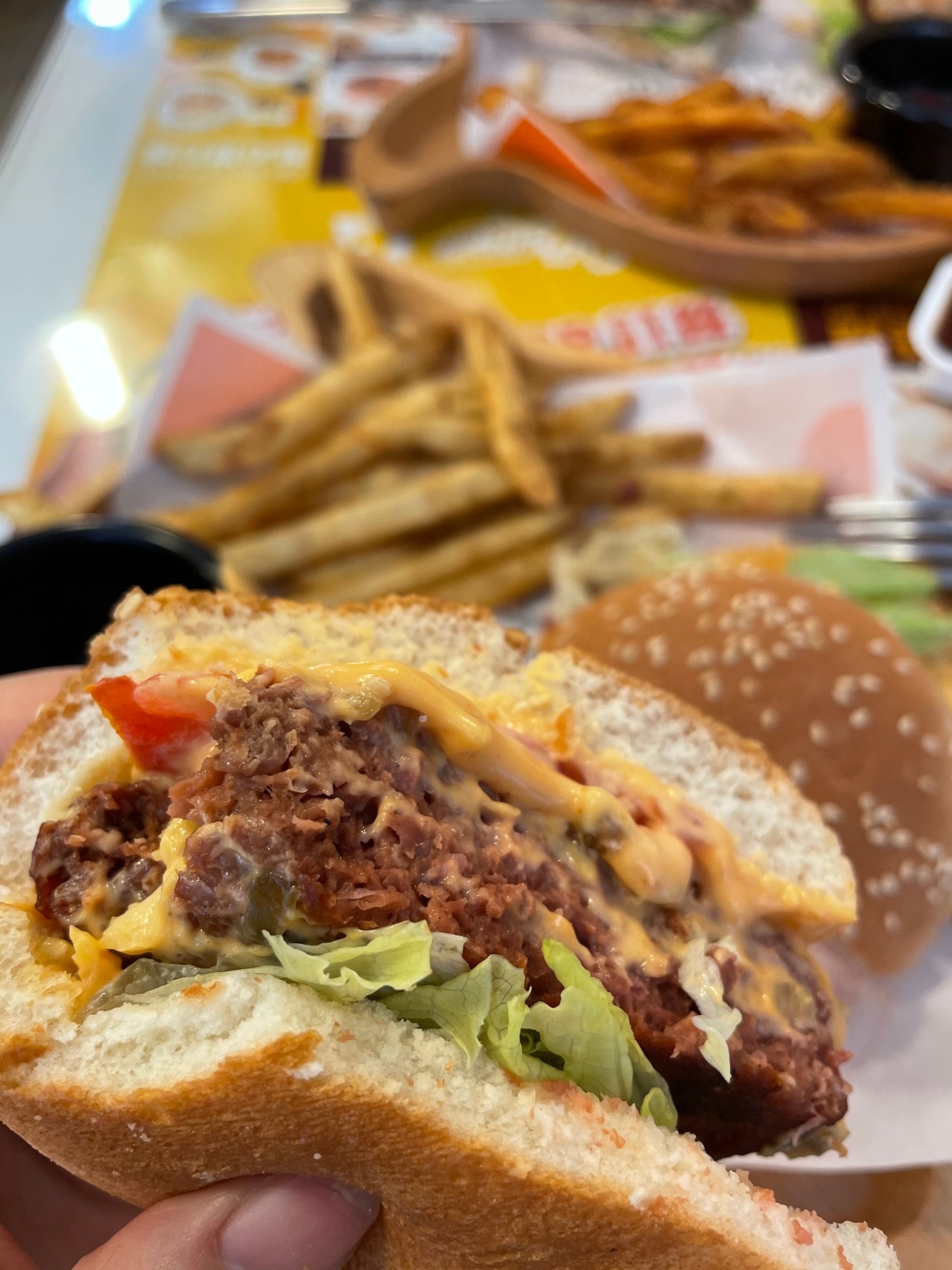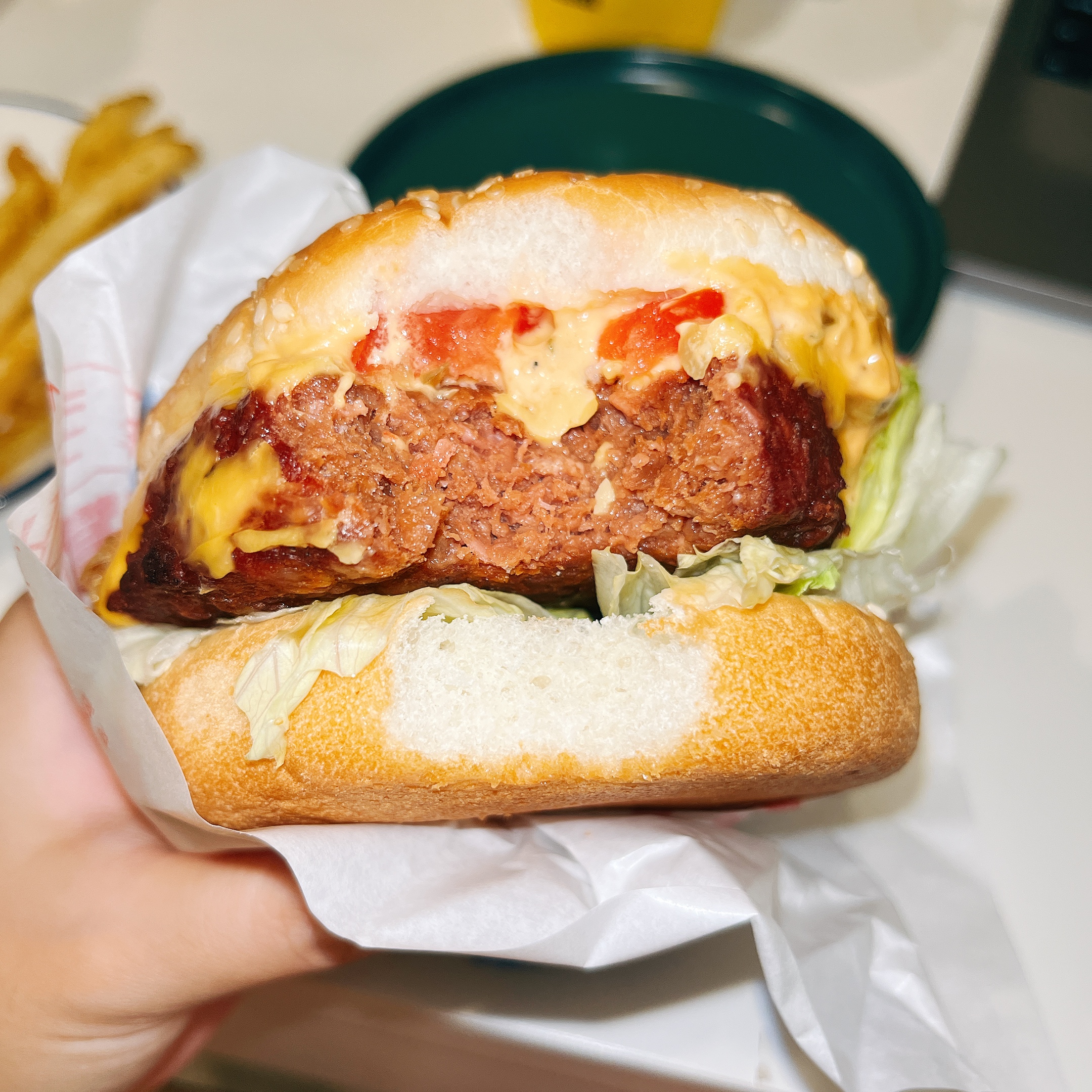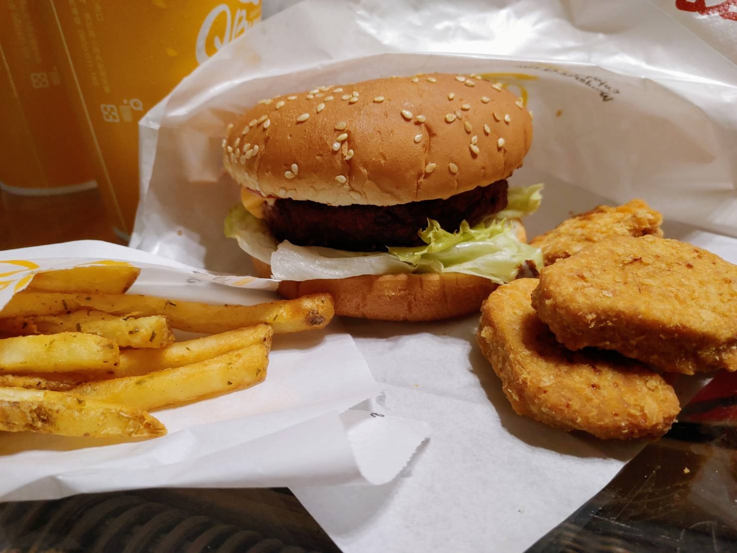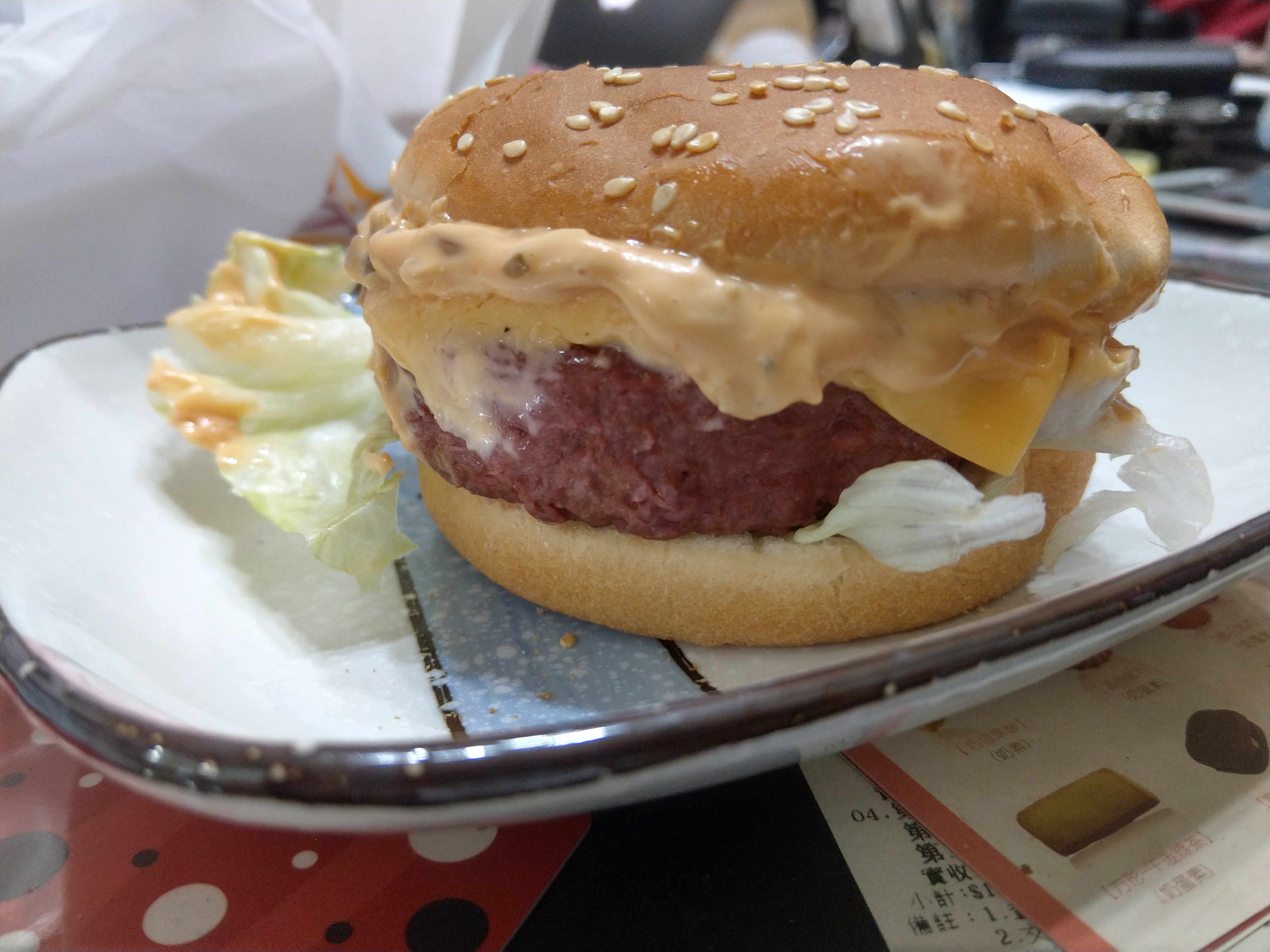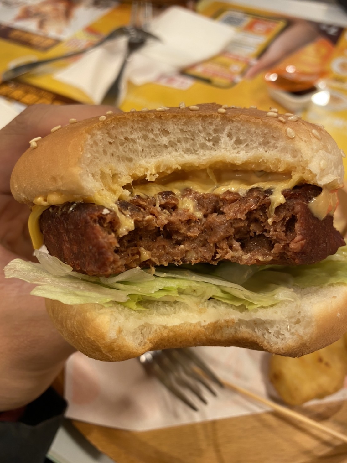 植物肉非全素產品,植物肉起士堡含有起士與美乃滋含有蛋奶,植物肉系列與肉品在同一煎板台煎製、油鍋炸製。 |