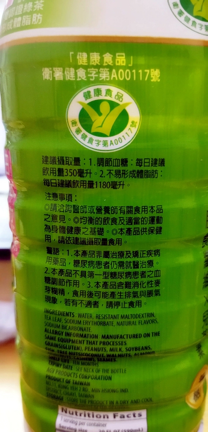 建議攝取量: 1.調節血糖:每日建議飲用量 350 毫升。 2.不易形成體脂肪:每日建議飲用量 1180 毫升。