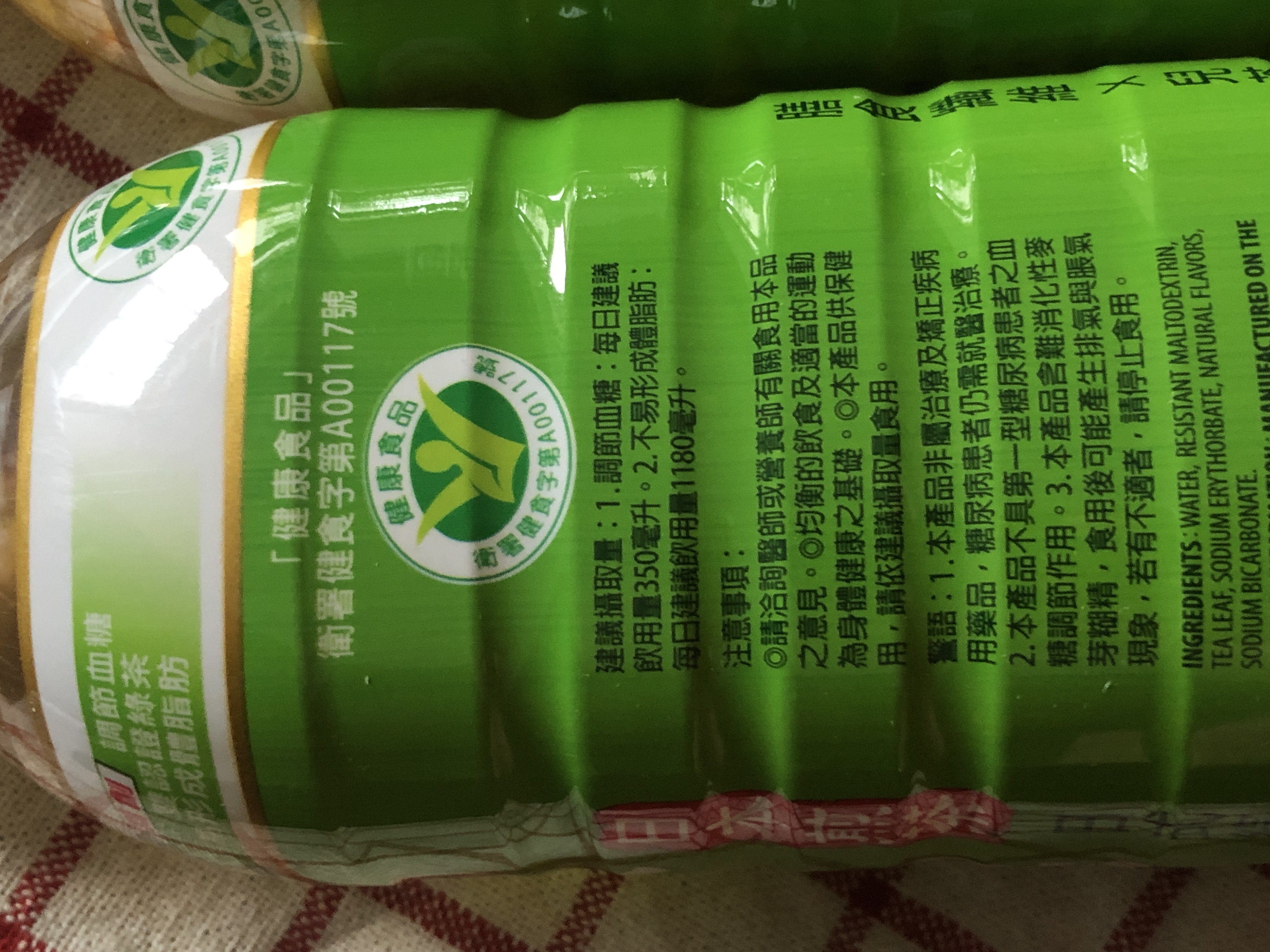 水、難消化性麥芽糊精、茶葉、抗氧化劑(異抗壞血酸鈉)、香料、碳酸氫鈉(小蘇打)