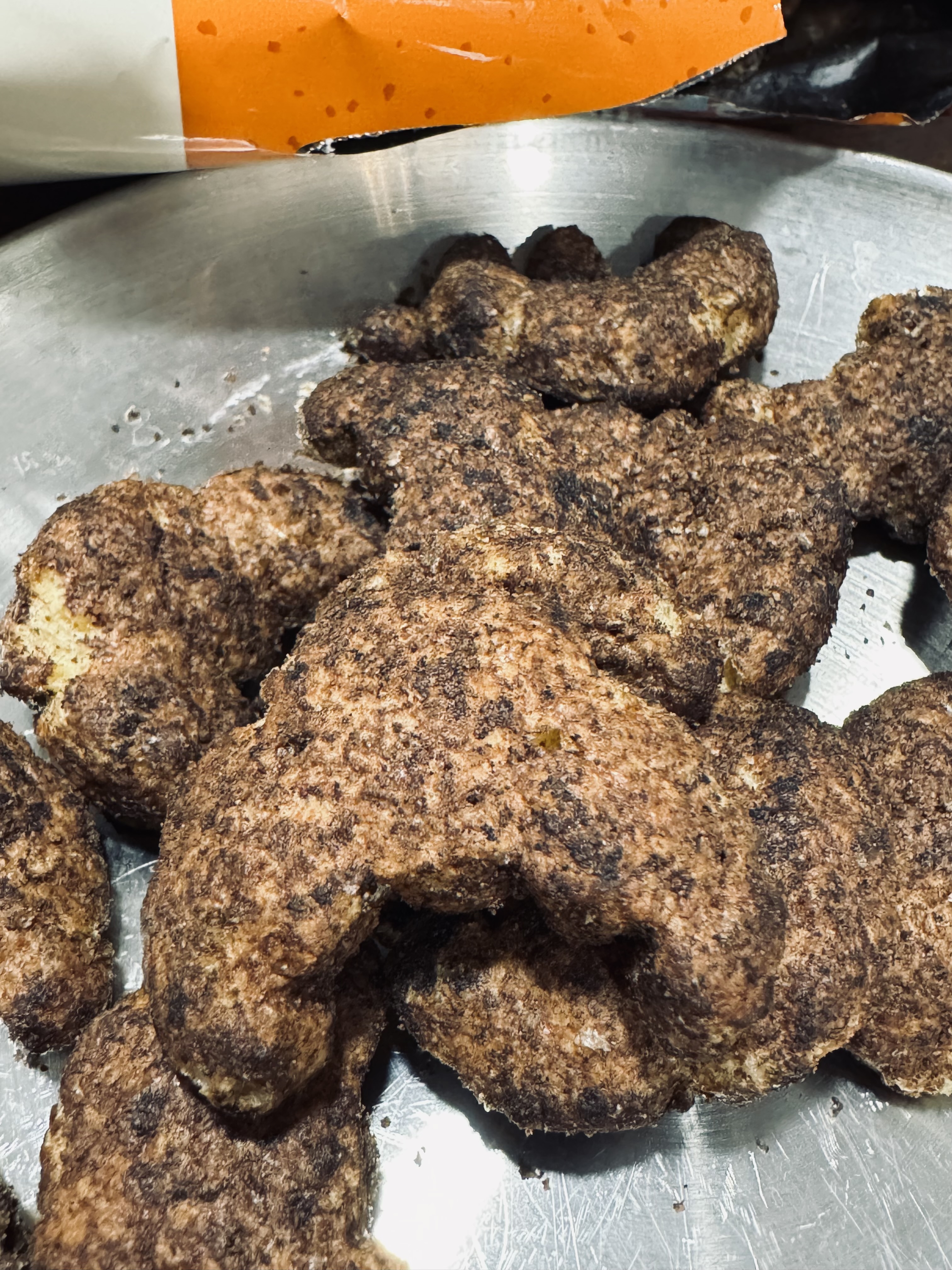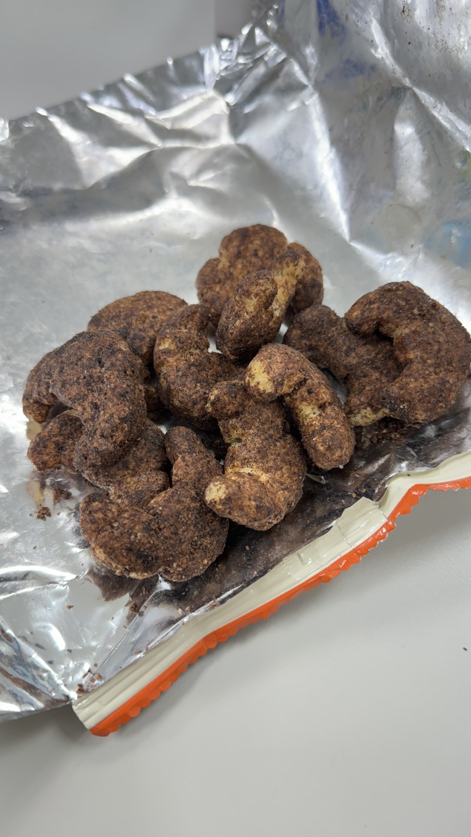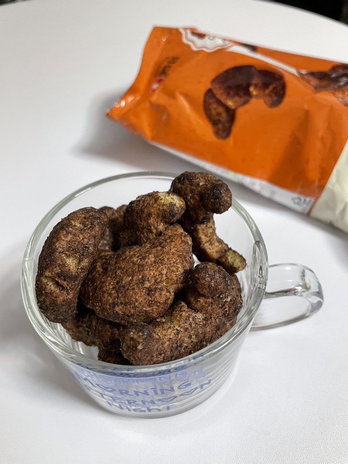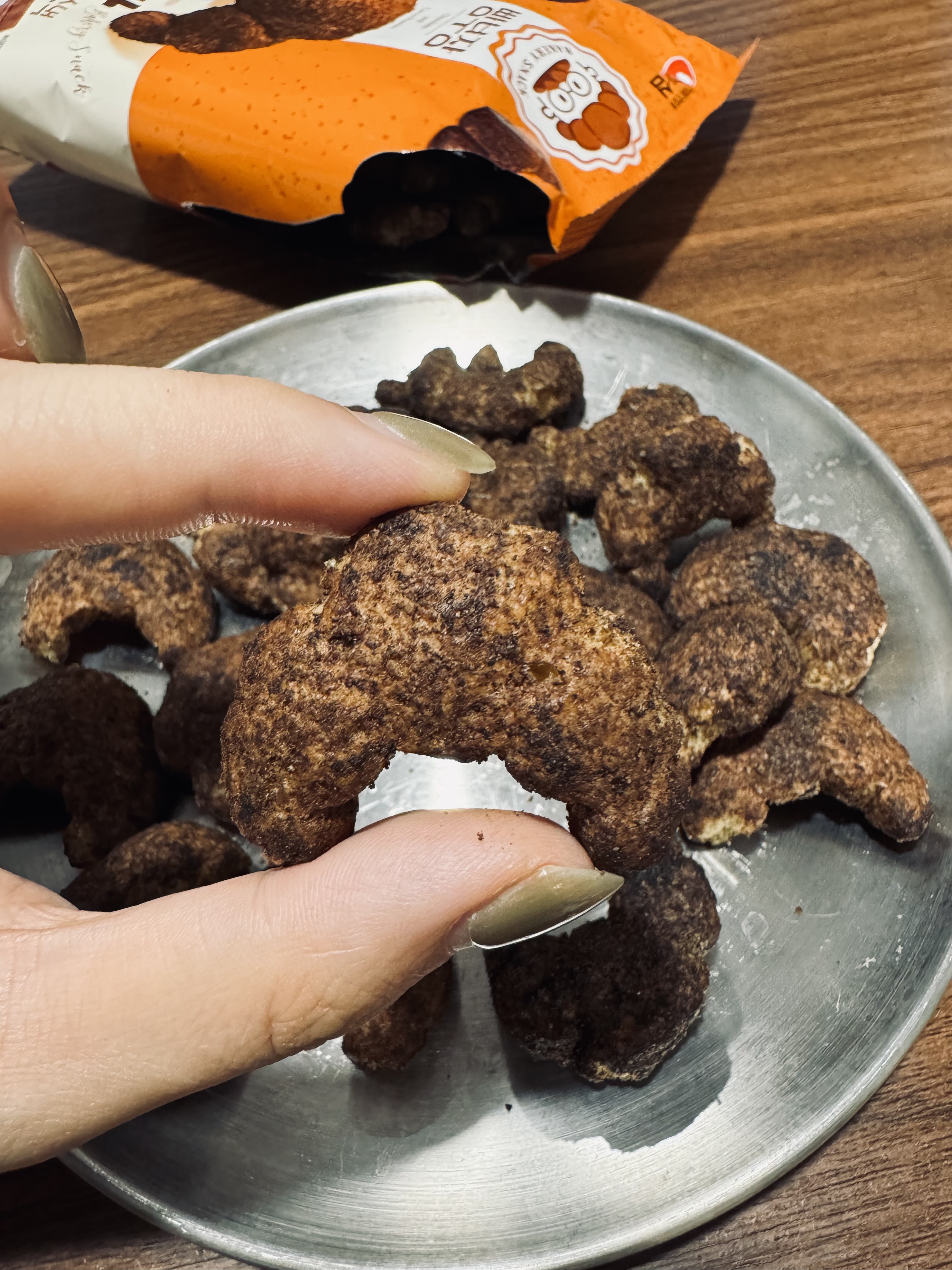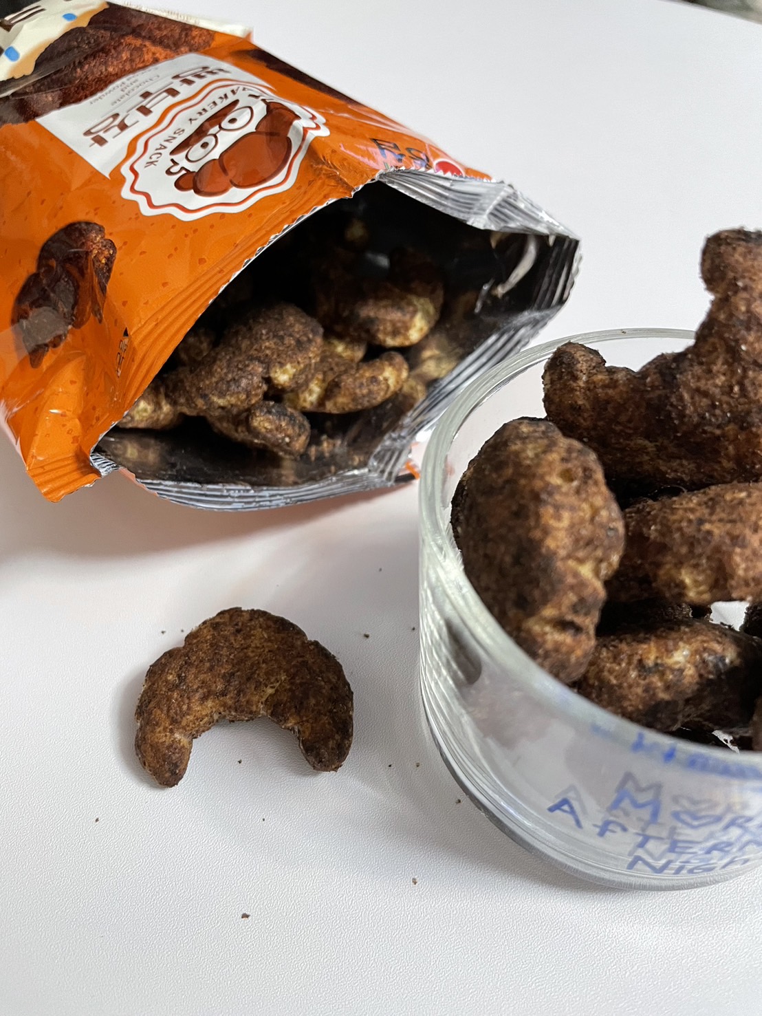 複合成分(糖,完全氫化棕櫚油,可可粉,椰子油,大豆卵磷脂),玉米粉,糖,麵包粉(小麥粉,酵母,鹽,大豆粉,脂肪酸甘油酯),小麥粉,棕櫚油,米糠油,全脂奶粉,乳清蛋白粉,人造奶油(棕櫚油,鹽,脂肪酸甘油酯,大豆卵磷脂,奶油香料),可可調味粉(可可粉,葡萄糖,二氧化矽),複合成分(羧甲基纖維素鈉,糖,奶油香料,鹽,奶油),鹽,麵包香料,可可香料,複合成分[脂肪酸甘油酯,米糠油,水,可可色素,婀娜多色素,抗氧化劑(維生素E),碳酸鈉],複合成分[人造奶油(棕櫚油,鹽,脂肪酸甘油酯,大豆卵磷脂,奶油香料),紅椒色素,B-胡蘿蔔素,抗氧化劑(維生素E)]