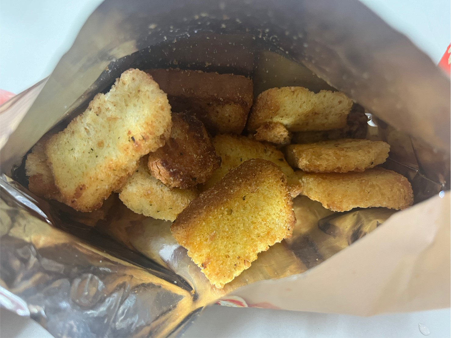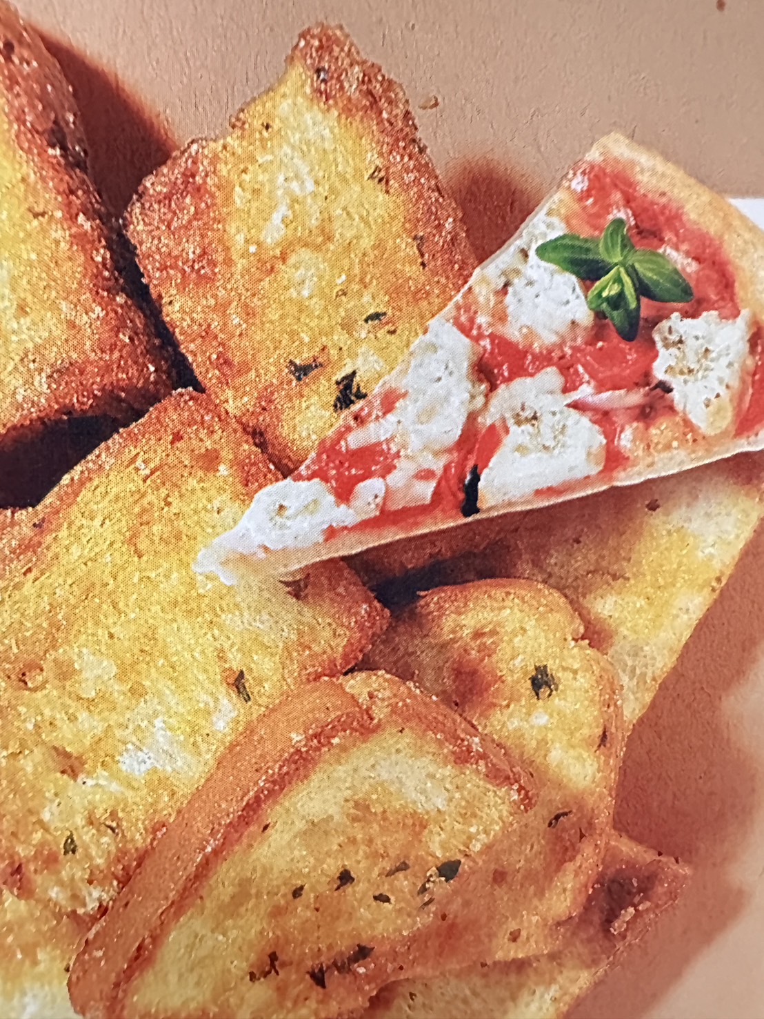 麵包(小麥粉、糖、人造奶油(植物油(棕櫚油、椰子油、大豆油)、鹽、脂肪酸甘油酯、大豆卵磷脂、脂肪酸山梨醇酥酯、著色劑(B3-胡蘿蔔素)、牛奶香料、奶油香料)、鹽、酵母、高果糖玉米糖漿、乳清粉、乾酪素鈉、香料、糖、披薩醬(水、番茄糊、玉米糖漿、糖、洋蔥、食用醋、鹽、大豆油、大蒜、奥勒岡草、人造奶油(棕櫚油、牛油、鹽、脂肪酸甘油酯、大豆卵磷脂、香料、著色劑(B-胡蘿蔔素)、加工奶油(奶油、乳脂)、脫水巴西里香芹