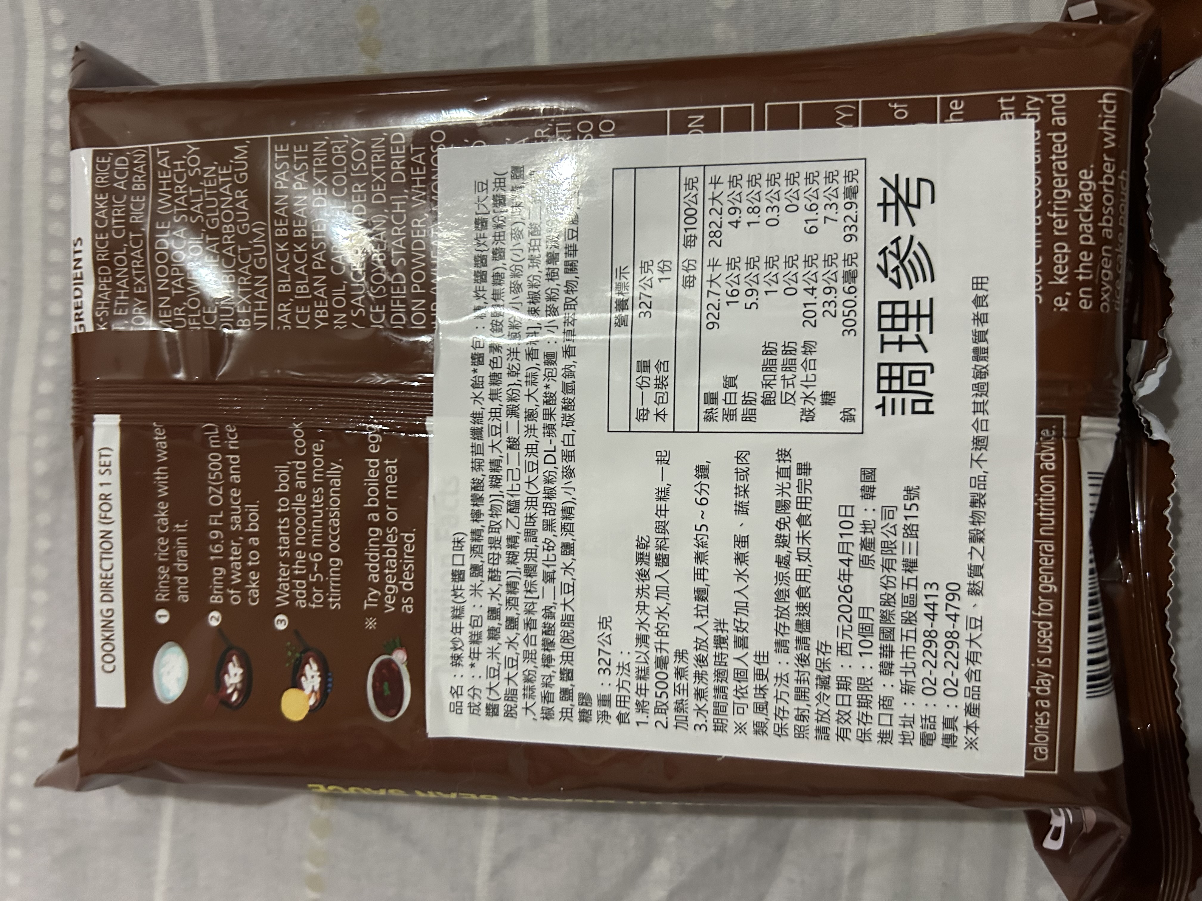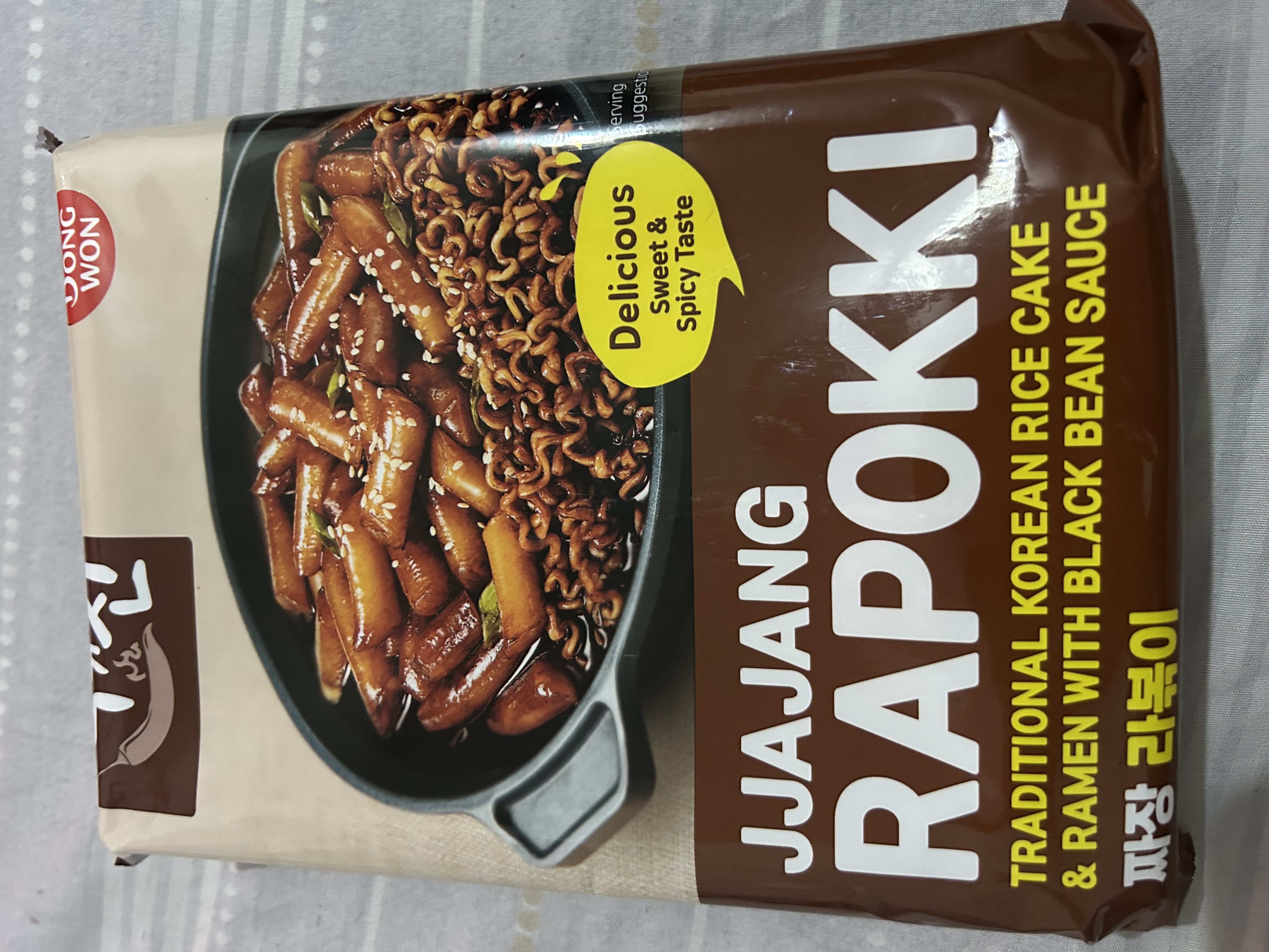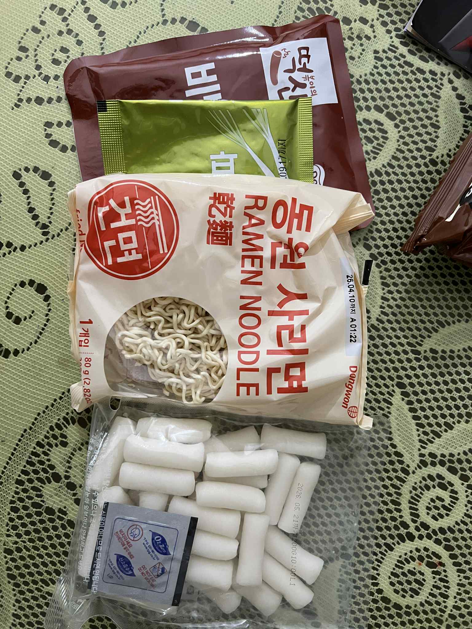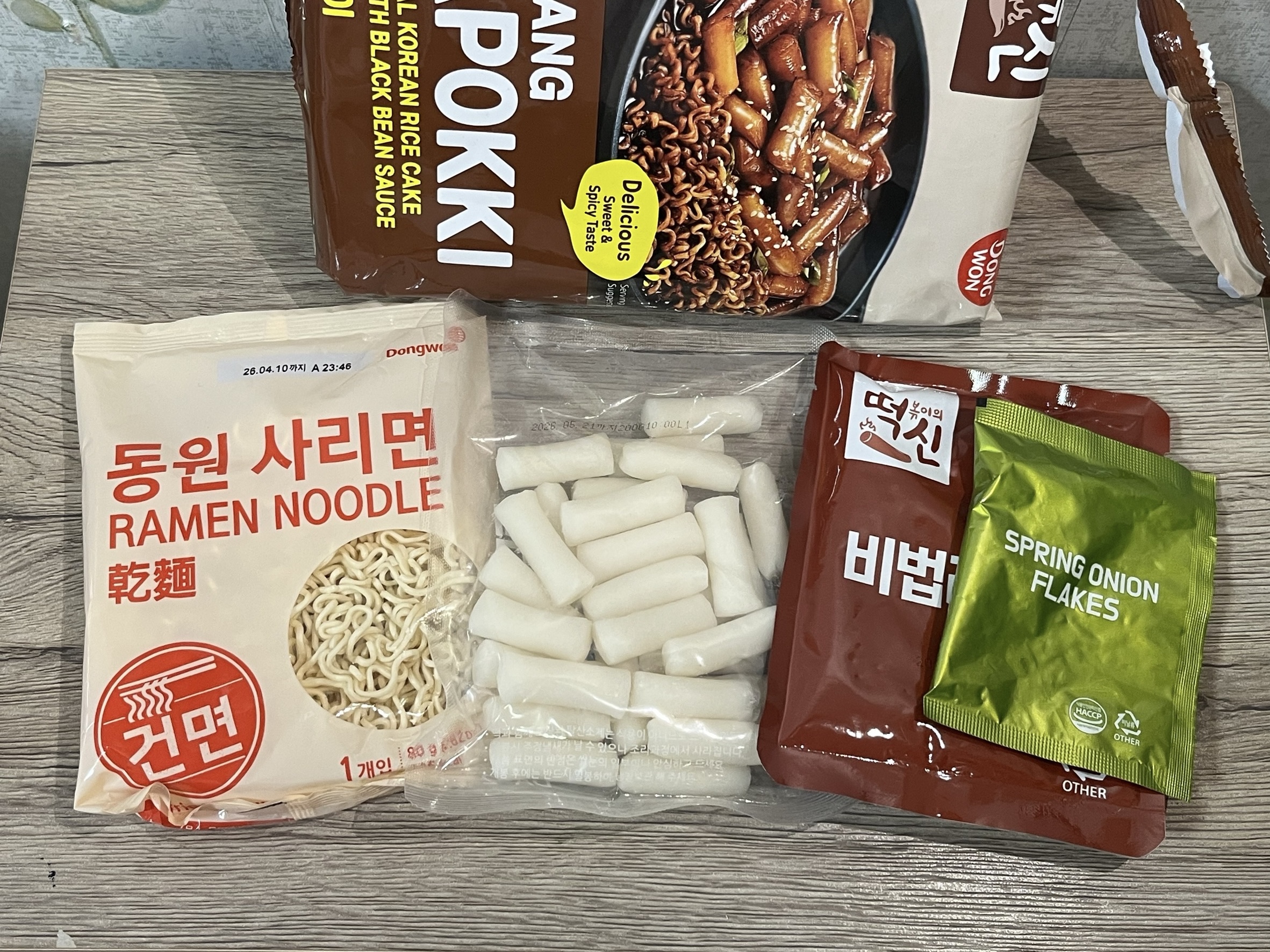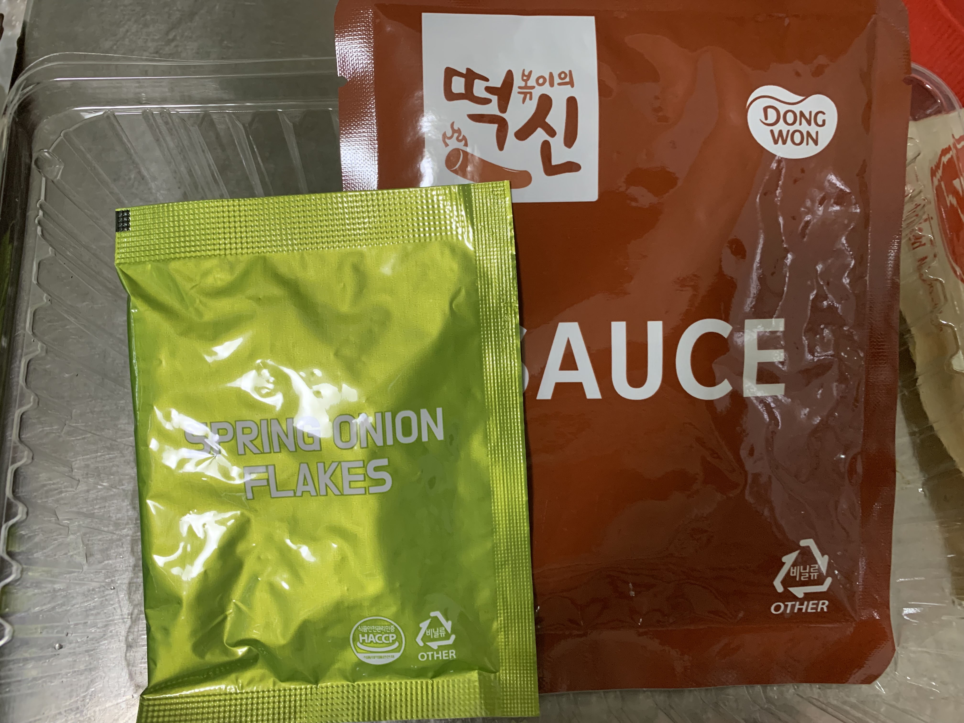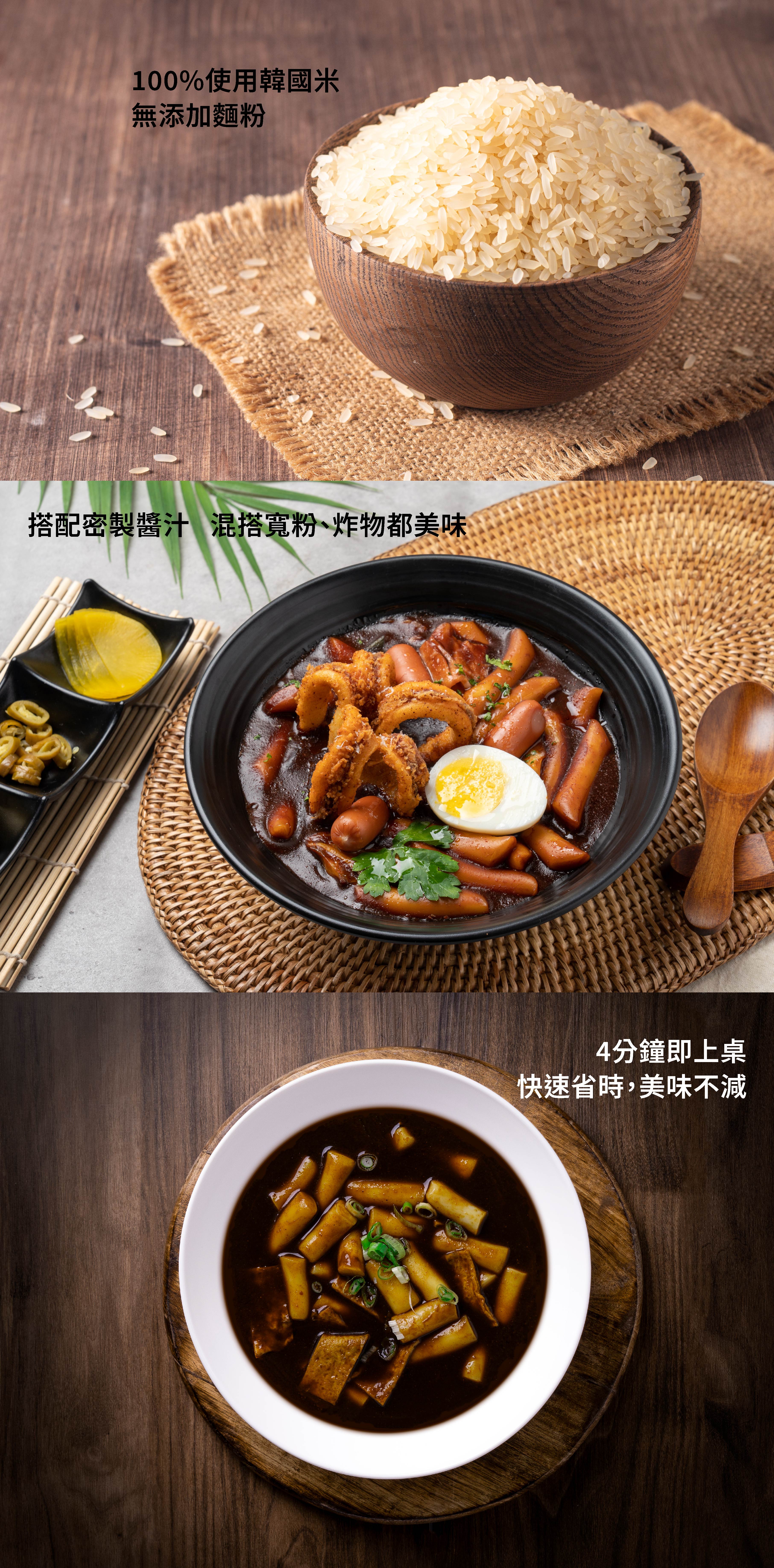 ●年糕:米、食鹽、酒精、檸檬酸 ●調味粉包:炸醬粉{小麥粉、春醬粉[春醬(大豆、小麥粉、焦糖色素、酒精)、焦糖色素、糊精]、白糖、食鹽、春醬粉[春醬1(大豆、小麥粉、焦糖色素、酒精)、糊精、玉米澱粉、食鹽、春醬2(大豆、小麥粉、焦糖色素、酒精)]、洋蔥調味粉(洋蔥、食鹽、砂糖)、馬鈴薯澱粉、混合食用油(軟質棕櫚油、硬質棕櫚油)、混合製品(樹薯澱粉、白糖、糊精)、焦糖色素、洋蔥粉、米粉(米)、醬油粉(大豆