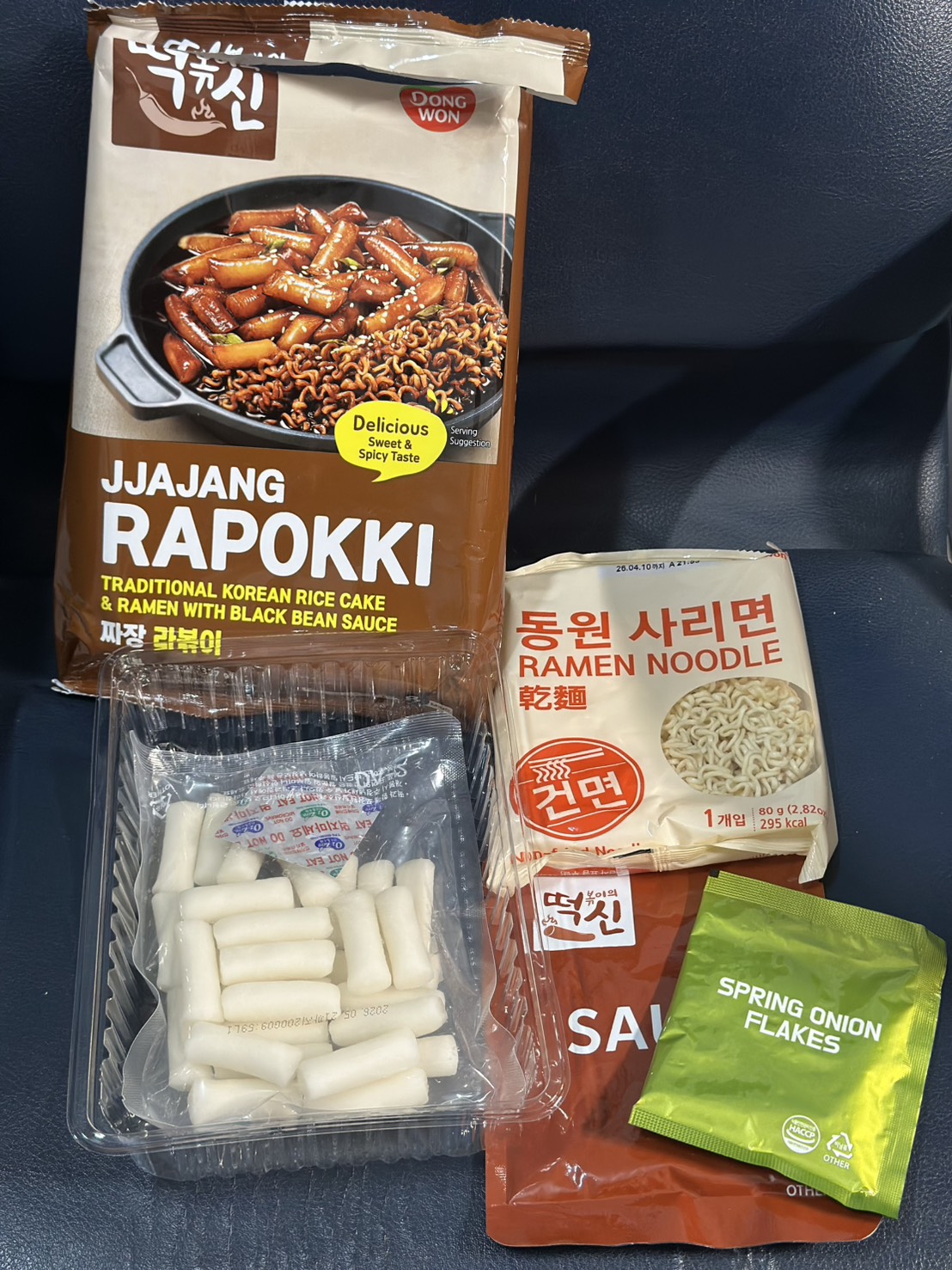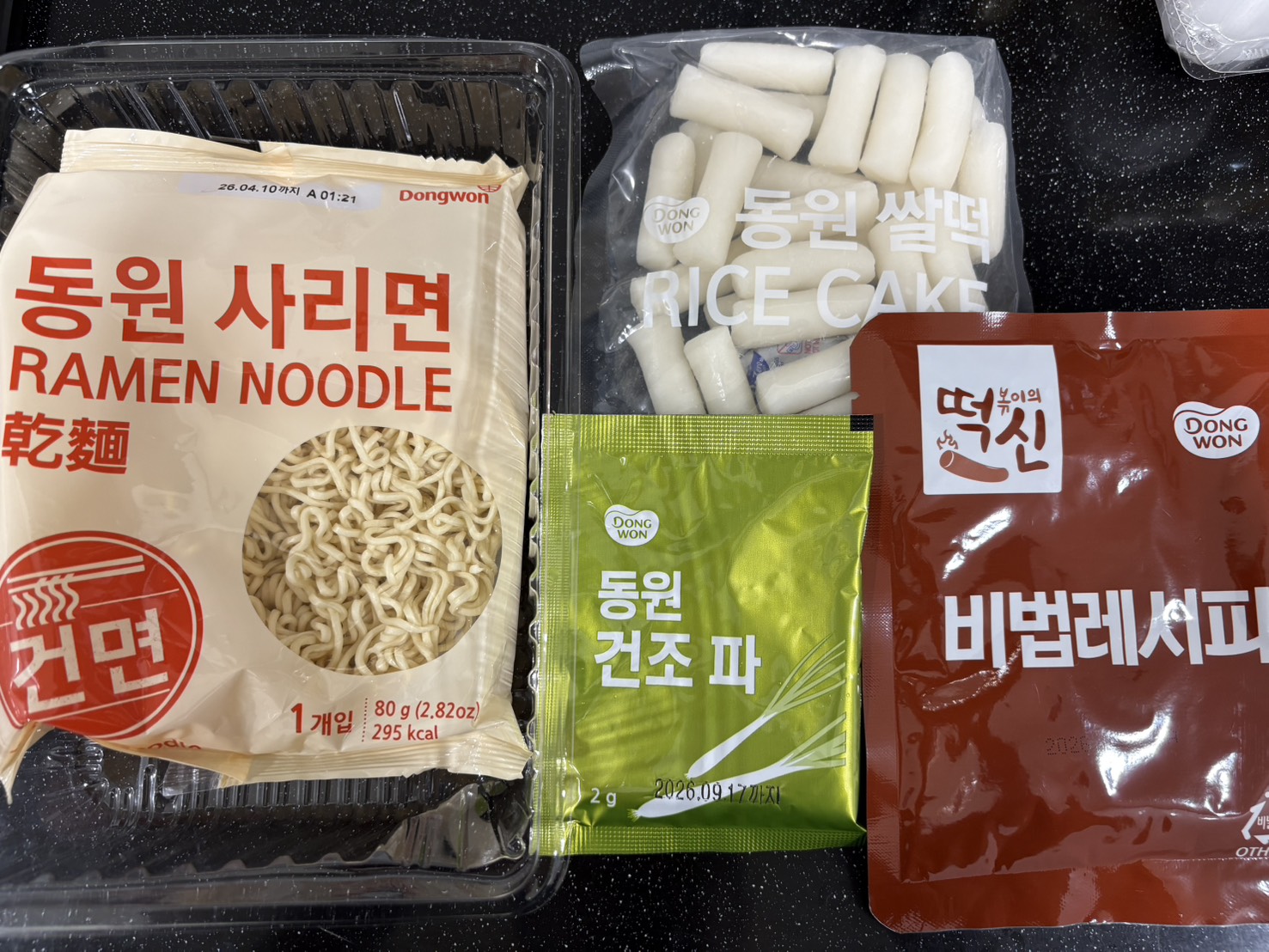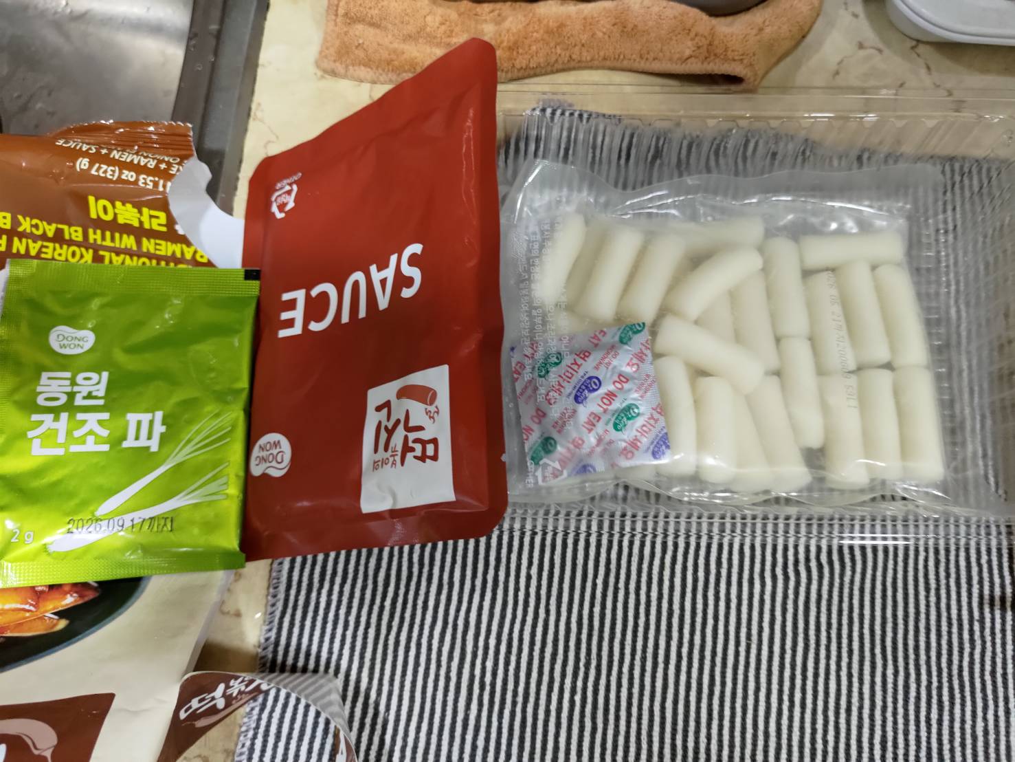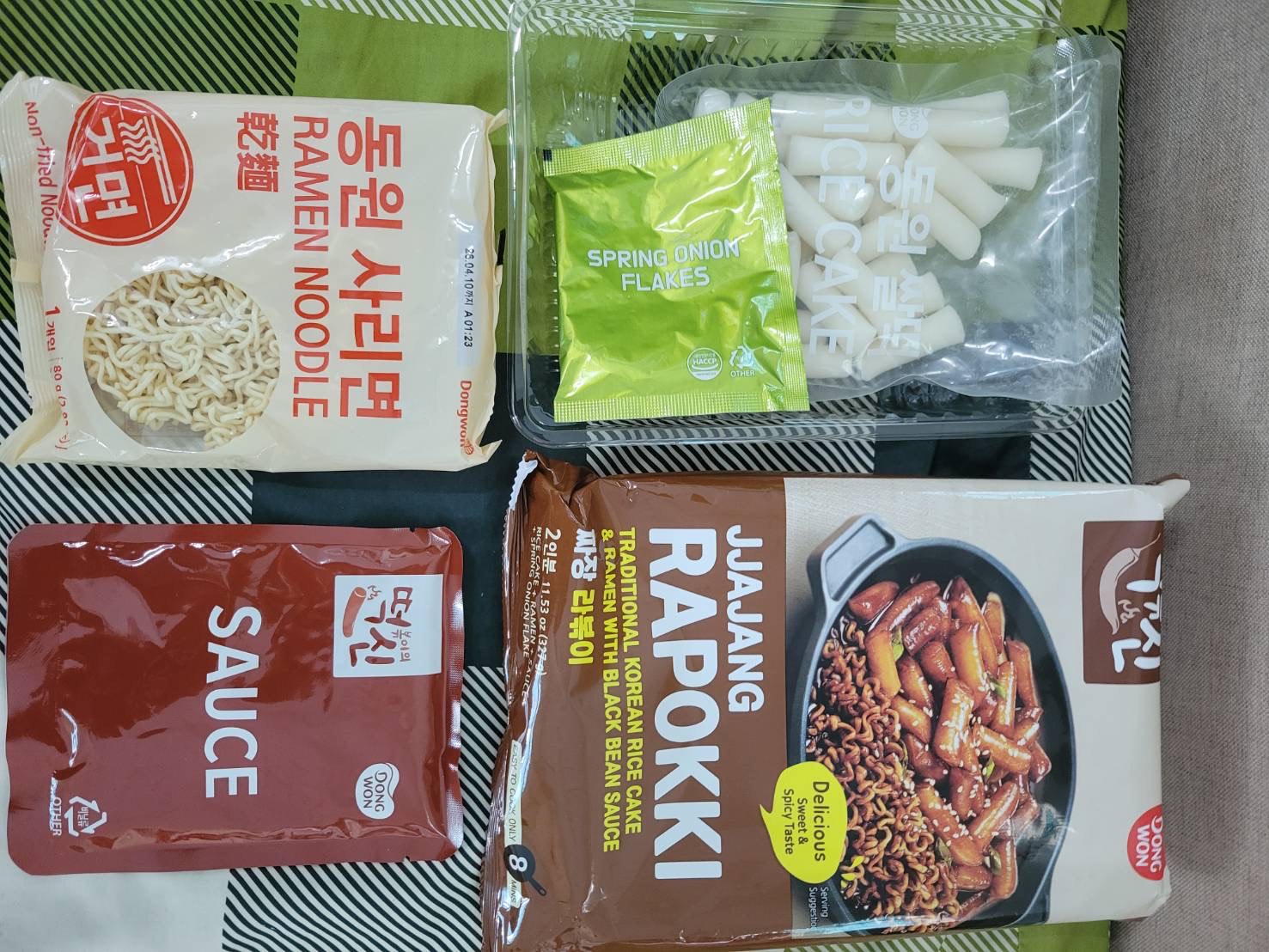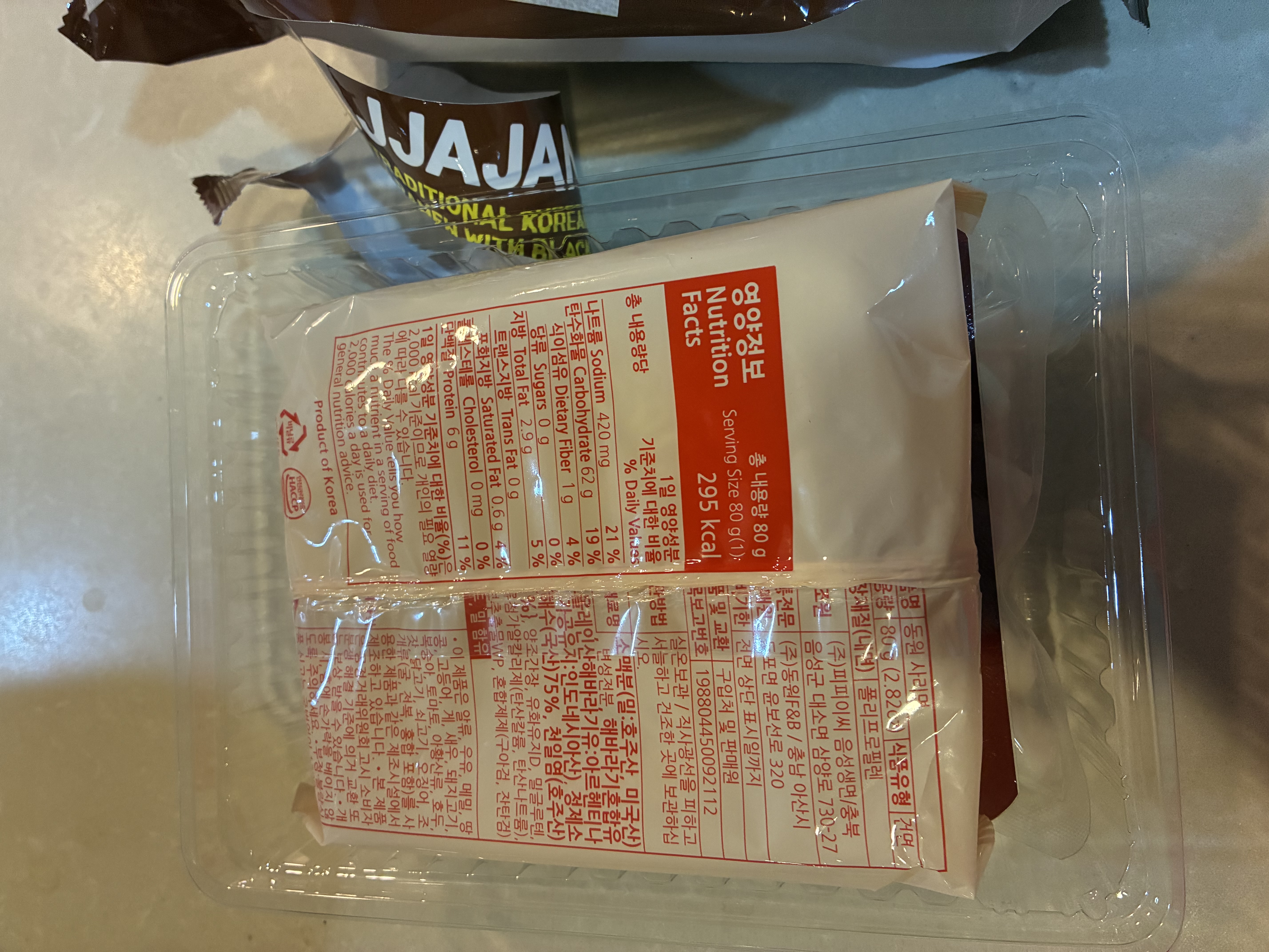 ●年糕:米、食鹽、酒精、檸檬酸 ●調味粉包:炸醬粉{小麥粉、春醬粉[春醬(大豆、小麥粉、焦糖色素、酒精)、焦糖色素、糊精]、白糖、食鹽、春醬粉[春醬1(大豆、小麥粉、焦糖色素、酒精)、糊精、玉米澱粉、食鹽、春醬2(大豆、小麥粉、焦糖色素、酒精)]、洋蔥調味粉(洋蔥、食鹽、砂糖)、馬鈴薯澱粉、混合食用油(軟質棕櫚油、硬質棕櫚油)、混合製品(樹薯澱粉、白糖、糊精)、焦糖色素、洋蔥粉、米粉(米)、醬油粉(大豆