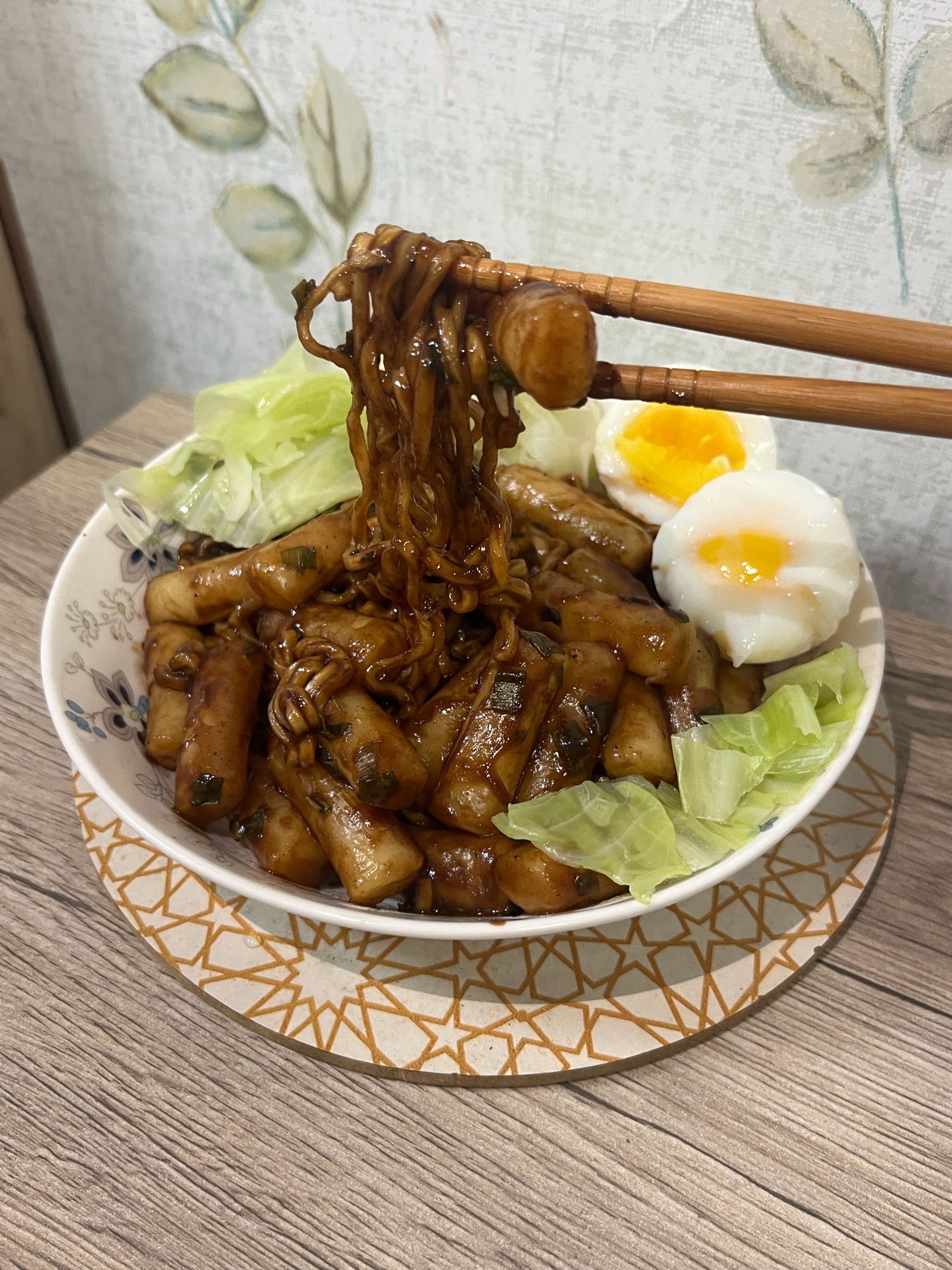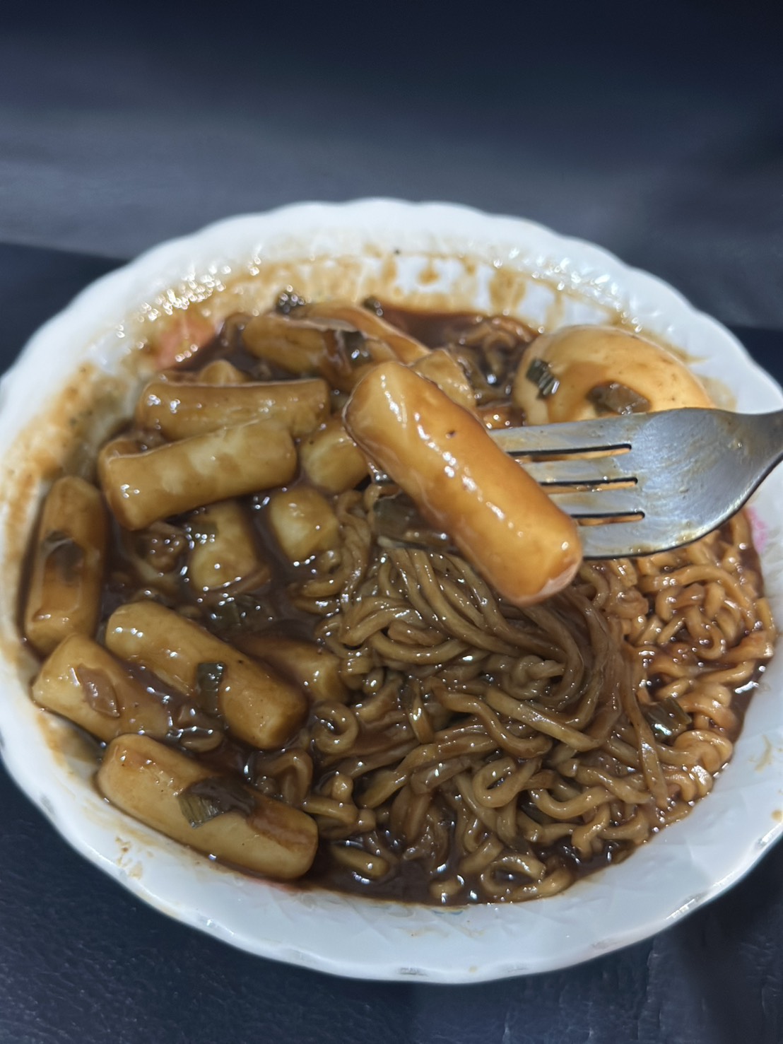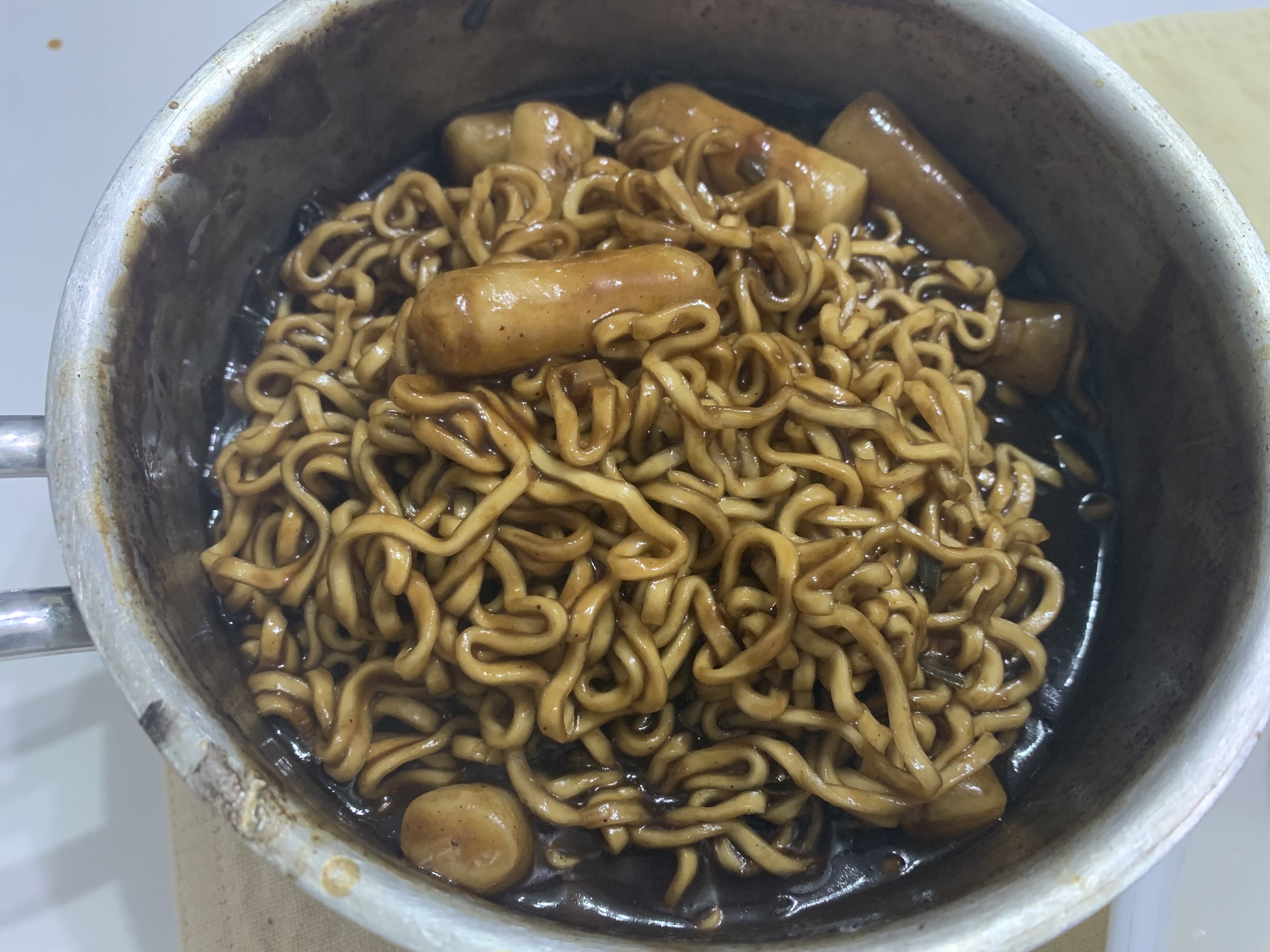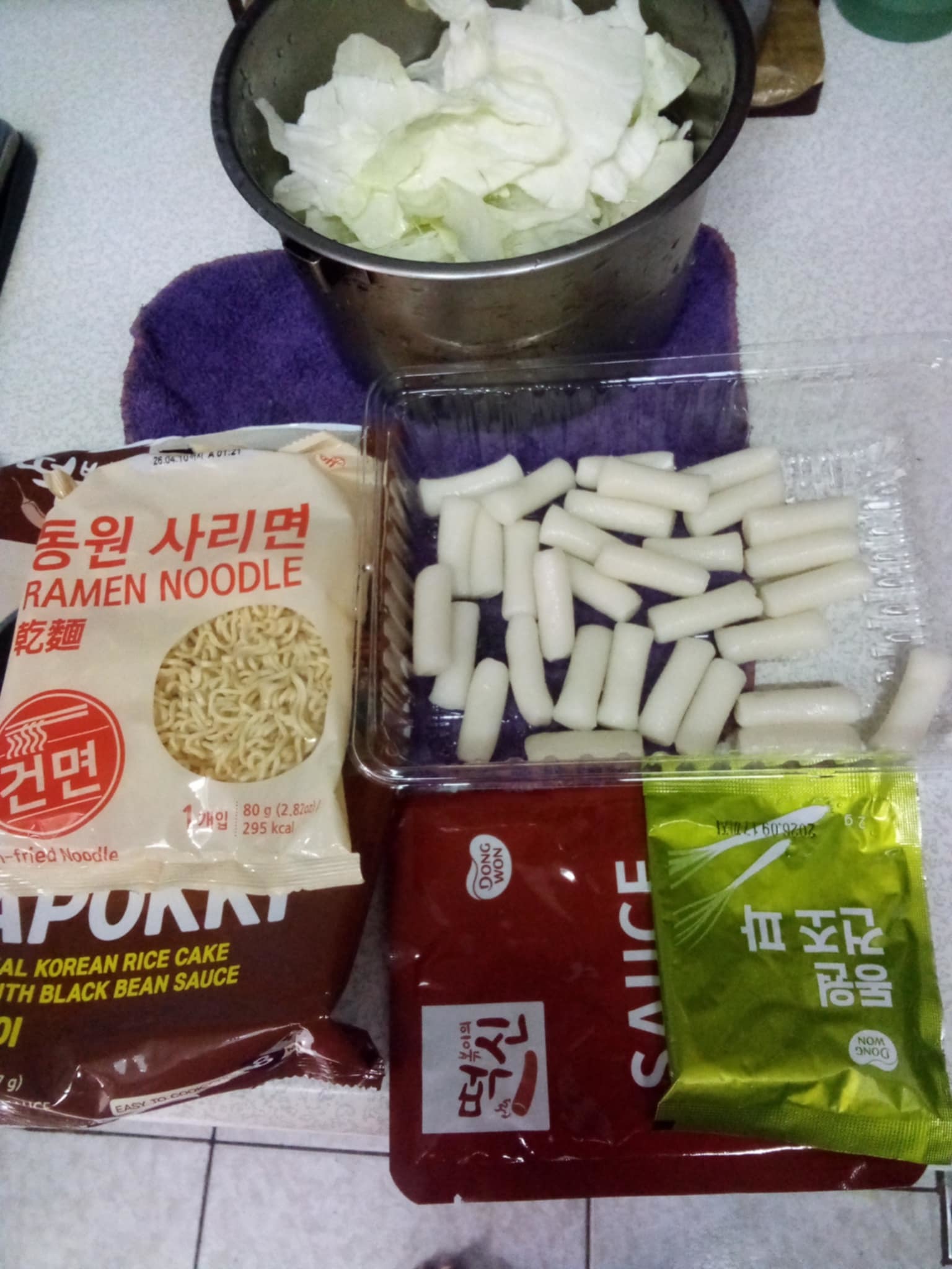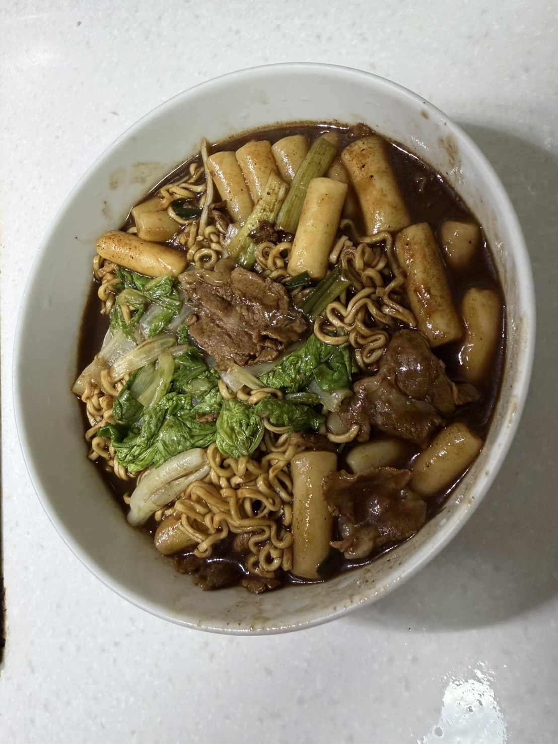 ●年糕:米、食鹽、酒精、檸檬酸 ●調味粉包:炸醬粉{小麥粉、春醬粉[春醬(大豆、小麥粉、焦糖色素、酒精)、焦糖色素、糊精]、白糖、食鹽、春醬粉[春醬1(大豆、小麥粉、焦糖色素、酒精)、糊精、玉米澱粉、食鹽、春醬2(大豆、小麥粉、焦糖色素、酒精)]、洋蔥調味粉(洋蔥、食鹽、砂糖)、馬鈴薯澱粉、混合食用油(軟質棕櫚油、硬質棕櫚油)、混合製品(樹薯澱粉、白糖、糊精)、焦糖色素、洋蔥粉、米粉(米)、醬油粉(大豆