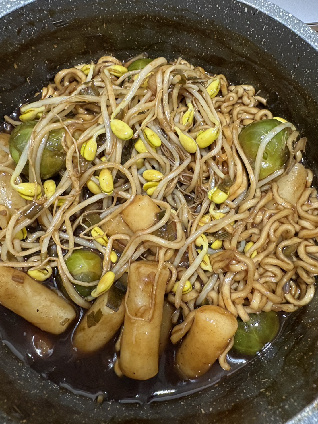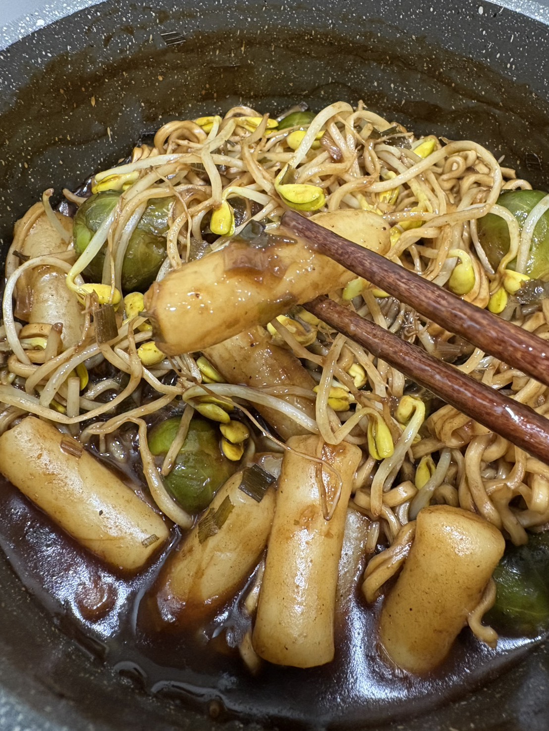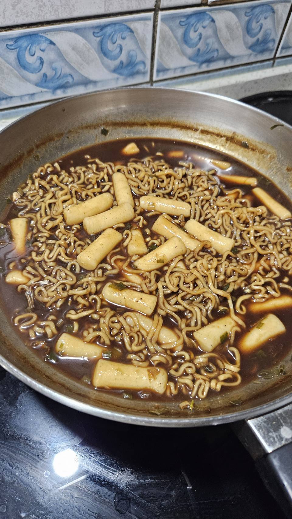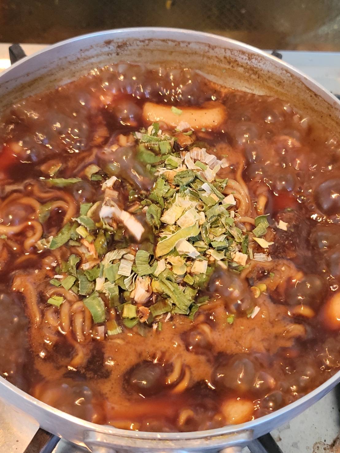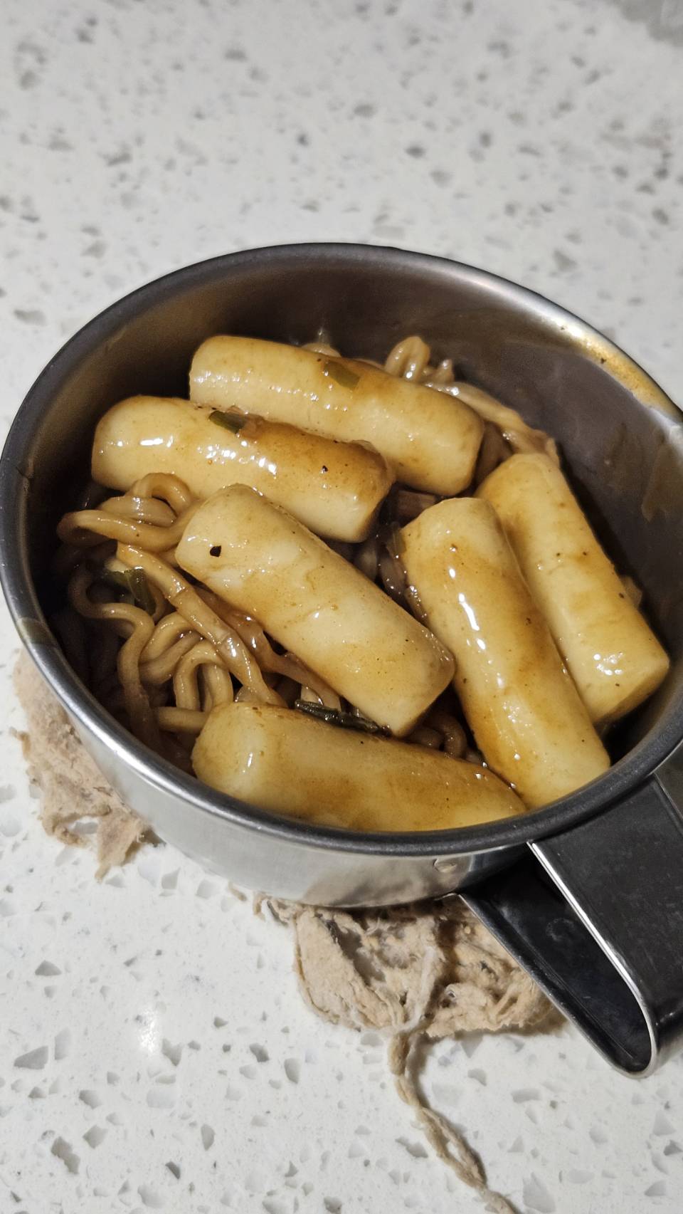 ●年糕:米、食鹽、酒精、檸檬酸 ●調味粉包:炸醬粉{小麥粉、春醬粉[春醬(大豆、小麥粉、焦糖色素、酒精)、焦糖色素、糊精]、白糖、食鹽、春醬粉[春醬1(大豆、小麥粉、焦糖色素、酒精)、糊精、玉米澱粉、食鹽、春醬2(大豆、小麥粉、焦糖色素、酒精)]、洋蔥調味粉(洋蔥、食鹽、砂糖)、馬鈴薯澱粉、混合食用油(軟質棕櫚油、硬質棕櫚油)、混合製品(樹薯澱粉、白糖、糊精)、焦糖色素、洋蔥粉、米粉(米)、醬油粉(大豆