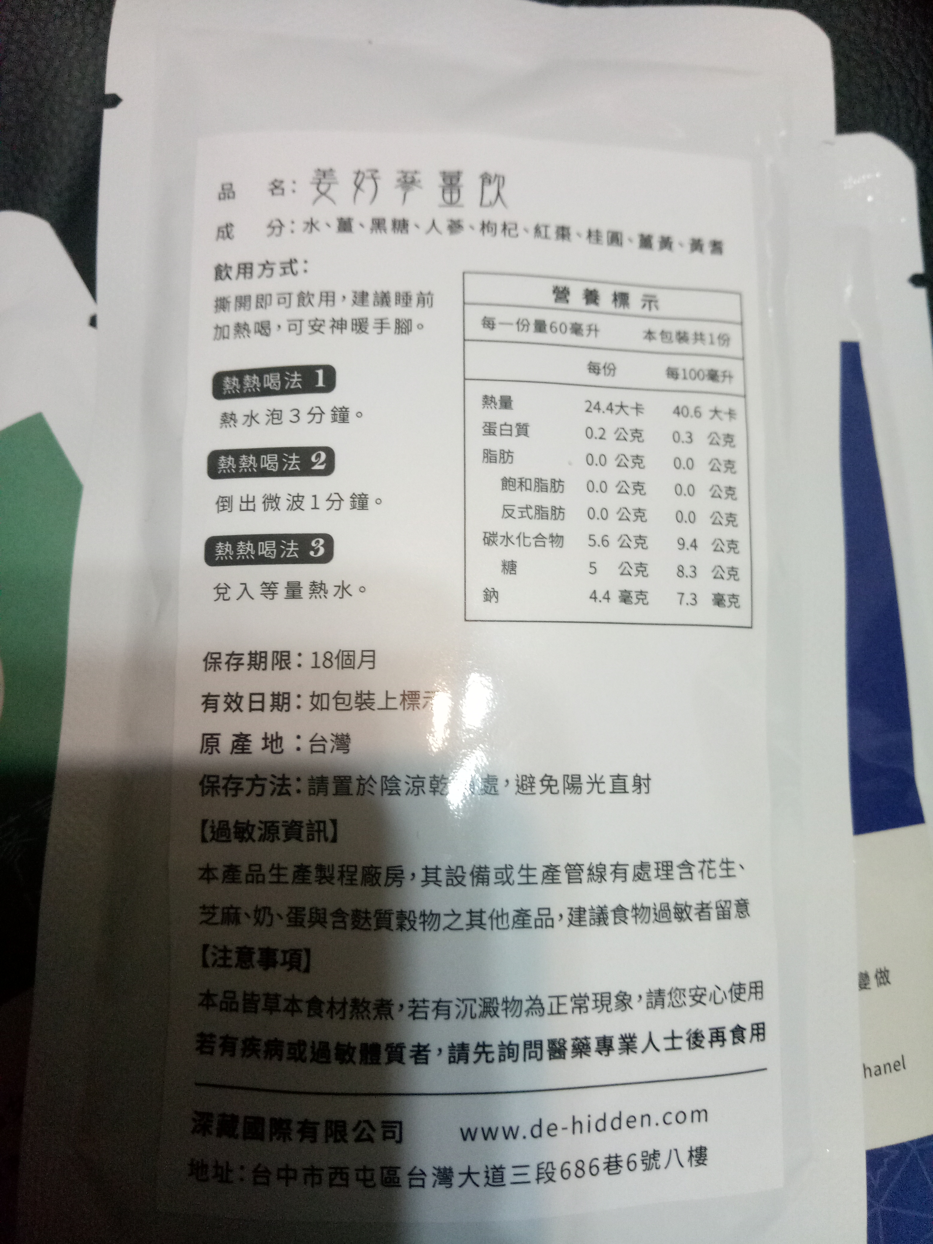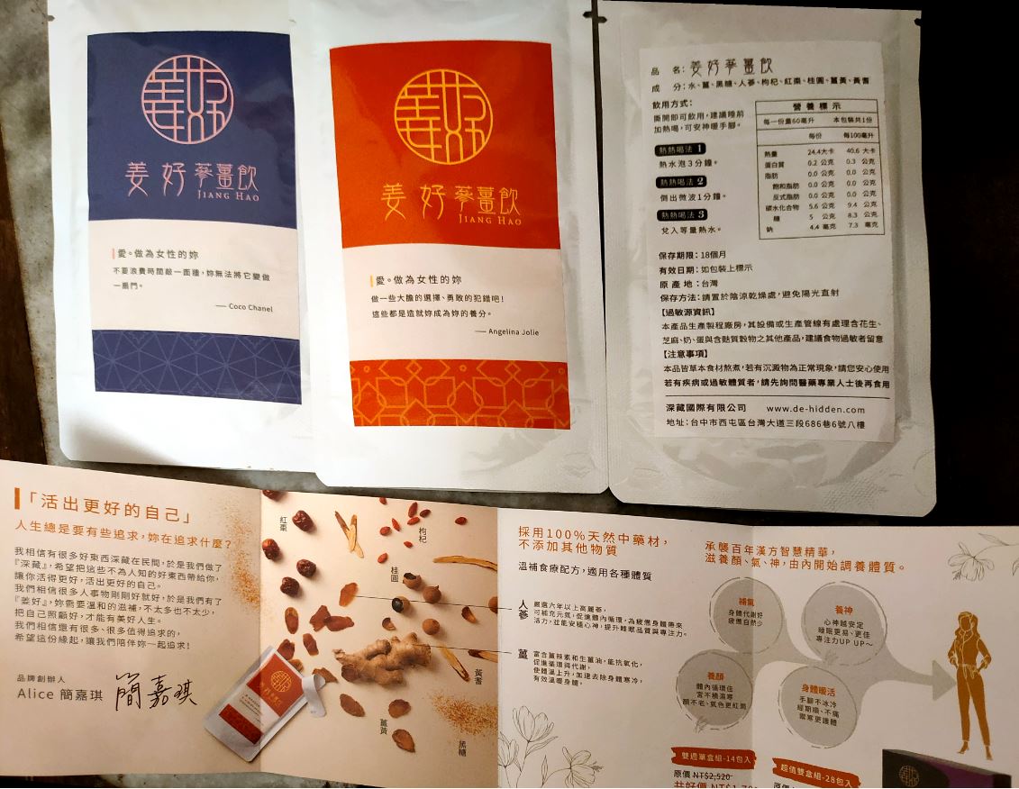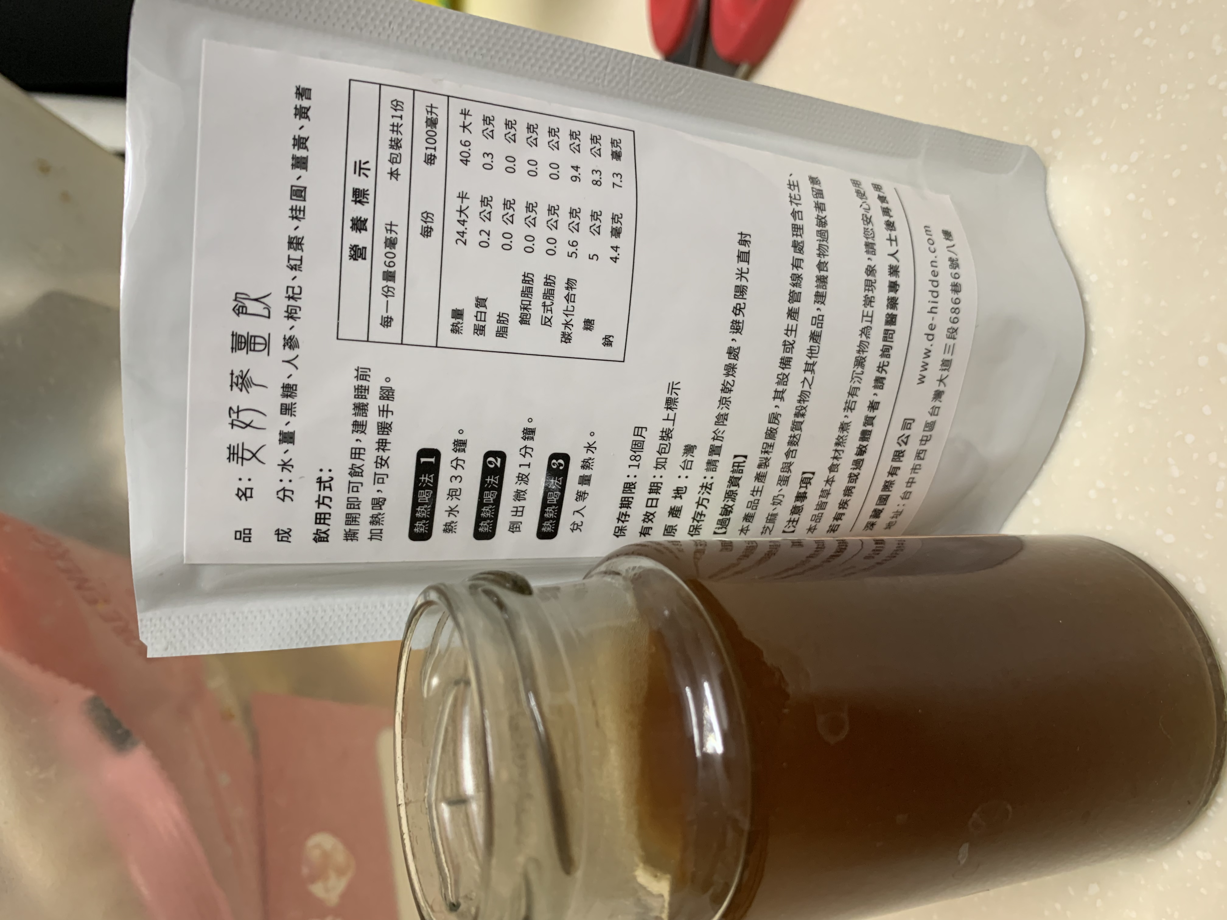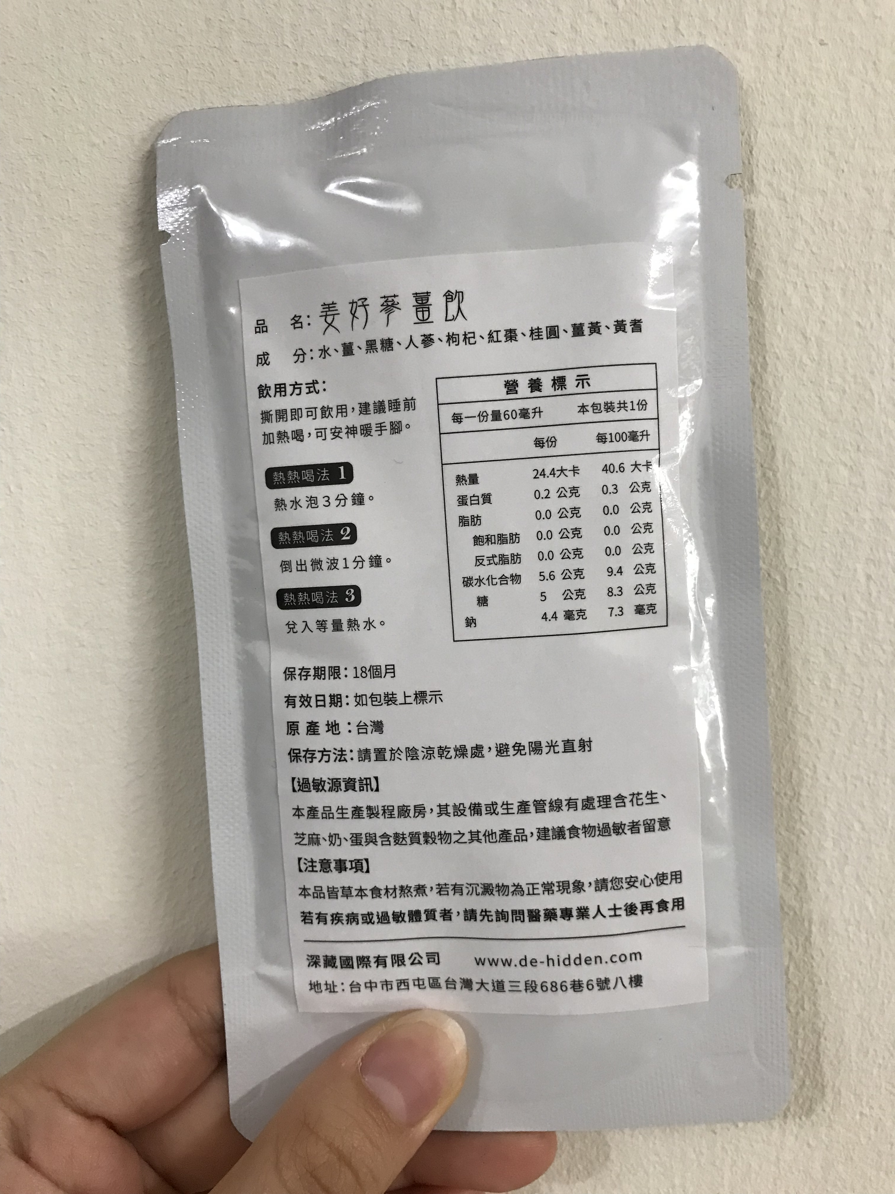回列表 姜好 蔘薑飲 補氣暖身給妳薑姜好的溫補 180元/包,共三包,共540元 所需等級 一般會員以上 所需學分 20 體驗份數 50 關注人數 1093 申請人數 281 申請截止 品牌業者:深藏國際有限公司 負責廠商 深藏國際有限公司 廠商地址 台中市西屯區台灣大道三段686巷6號8樓 產地 台灣 試用產品規格 每包60ml,共3包 食品業者登錄字號 B-191087053-00000-2 心得分享 商品介紹 商品成分 使用方法 注意事項 體驗名單 8.6 姜好 蔘薑飲 我需要漢方五行的溫補 8.7 飲用便利 9.3 原料天然 9.2 攜帶方便 9.3 建議推薦 8.6 心得分享 50則 黃秀雯 鑽石達人 50歲 新北市 2022/04/14 對姜好 蔘薑飲留下評價 10 收到姜好 蔘薑飲 時,真的很高興,因為心中一直想要試喝,所以收到時有無限的驚喜,拿回來後,迫不及待的打開包裝,裏面是用一個精美的包裝布織布袋裝著,真的是好漂亮又精緻,讓人很驚艷不已的說,蔘薑飲包也是很文青又好看,真的讓人很捨不得打開來試喝的說,不管是送人或自用都是很體面的。剛好說這幾天天氣又要變冷,所以收到蔘薑飲包最合試,可以感受到暖心又暖身的說,打開有一陣濃濃的薑味撲鼻而來,聞起來很香,尤如自家熬的薑湯一樣,很香很濃,如果是喜歡薑味的人會很喜歡,但是如果是排斥薑味的人就要考慮一下了,喝下口時,有薑的辣味和人蔘的香氣,還有紅棗枸杞的味道,入喉有種暖潤的口感,讓人身體暖和起來,謝謝廠商和食力提供試飲。 李海萍 鑽石達人 61歲 新北市 2022/04/15 對姜好 蔘薑飲留下評價 9 姜好 蔘薑飲 補氣暖身給妳薑姜好的溫補最近世界很不平靜,身心都大受影響,女性要學習好好照顧自己。由中醫師專為現代女性研發,來自漢方的五行調和智慧,嚴選東方補氣聖品「人蔘」,搭配讓人發熱的「薑」,給女生需要的滋補,與身體共好。嘿~ 超級luck 收到立馬滋補去 ~*Q* ~■試飲實測&推薦理由大解密◎即開即飲的方式試喝~打開包裝袋聞得到淡淡的薑香,不是強列刺鼻的薑味;聞不到蔘味、也無可怕的中藥味。喝起來的味道是薑味多些,薑味較蔘味重~沒有薑的辛辣味,蔘屬後味,帶點苦。顏色接近咖啡色、裡頭沒有什麼雜質,蠻清澈的,只有喝到最後才有少許渾濁沉澱。雖然有加入黑糖,但味道不甜,滿順口的。◆包裝袋上清礎標示成分/飲用方式/保存期限/有效日期/產地等......都在包裝袋上~包裝簡約、精緻高雅!◆採用100%天然中藥材,無添加其它物質~讓人好安心◆原料皆通過SGS食品標準檢測~棒 !◆成分看得懂~六年根以上高麗蔘、薑、黑糖、枸杞、紅棗、桂圓、薑黃、黃耆 ◆輕巧密封包裝,方便攜帶◆即開即飲,隨時想就能輕鬆喝!◆蔘與薑,打造屬於女性的漢方調養補品◆薑富含薑辣素,可推動身體的循環,讓末梢循環變好。女人終其一生都要關愛自己,由內而外地健康美麗,如花般盛開。女性滋補不再是苦澀難懂,而是平易近人,值得推薦!~~~棒 ! 棒 ! 讚啦 ! 廖利珈 金食達人 28歲 臺中市 2022/04/15 對姜好 蔘薑飲留下評價 9 入口溫順不苦澀,有別於一般養生飲,此款姜好蔘薑飲不僅好入口,而且調理包的包裝只需浸泡於熱水中數分鐘即可飲用,大大省去了在家自行熬煮的麻煩,且此款養生飲不會過於的甜膩,濃稠度剛好絲滑,若覺得過濃也可添加部分熱水做調配,相當不錯 陳諭萱 鑽石達人 27歲 臺南市 2022/04/16 對姜好 蔘薑飲留下評價 9 自己在經期的時候總是沒元氣,手腳冰冷、臉色也不太好,這次試了中醫特別為現代女性調製的蔘薑飲,希望由內開始調整體質,達到養神、養顏、補氣的功效,讓身體暖和。對於想改善經期痛苦感覺的我實在覺得很有幫助,飲用這款姜好蔘薑飲活出更好的自己! 夏鳳寶 鑽石達人 62歲 臺南市 2022/04/16 對姜好 蔘薑飲留下評價 10 姜好篸薑飲是由人篸,黃耆,枸杞,紅棗,薑黃等中藥,加上桂圓,黑糖調製而成的飲品,喝起來微甜,微苦,很好入喉!它承襲百年來中藥漢方精華,由內而外滋養精氣神,如果每天都能喝一包,長期下來保健身體,對我們女性尤其重要!而且它隨身包很輕便,隨開隨喝很方便!每包上面還有名人語錄,很富巧思! 張杏英 鑽石達人 70歲 彰化縣 2022/04/16 對姜好 蔘薑飲留下評價 10 薑茶一直是女性朋友不可缺的補氣養神的飲品,這次姜好蔘薑飮,專為現代女性困擾所研發,市面上唯一走漢方五行調和飲品,採用100%天然中藥材(人蔘,薑,枸杞,桂圓,黃耆,黑糖,薑黃,紅棗)溫補食療配方,讓我們從體內調理氣血,去寒溫暖,手腳身體不濕冷,拿到試吃驗品,這兩天剛好冷氣團報到,晚上熱熱的喝,身體暖暖的,又安神一夜好眠,而貼心的方便包裝,一包剛剛好,(做為女性朋友照顧好自己,將來會更好),好貼心的標語,讓我們一起讓生活「姜姜好」。 Jerry 金食達人 56歲 嘉義市 2022/04/16 對姜好 蔘薑飲留下評價 8 這款「姜好 蔘薑飲」的外觀設計個人是還蠻喜歡的,內容物都是中藥材,開封聞味道算是溫和不刺激的,我的喝法是兌等量的水去嘗試,喝起來是很清淡的沒有很重的中藥味。整體感覺有比較重的薑味,其他的中藥材就感覺喝不太出來,雖然如此,還是有一點像再喝中藥湯。單包設計是蠻適合上班族的,但看DM單包的價錢不斐,那這樣單包的容量似乎有點小貴,如果要推薦給上班族的話,可能要調整一下價錢,這是個人的淺見。 葉惠裕 金食達人 41歲 臺北市 2022/04/17 對姜好 蔘薑飲留下評價 7 1.一撕開包裝,倒在杯子裡時,就聞到薑味了,倒是沒聞到人蔘味。我是有再加熱水喝(有