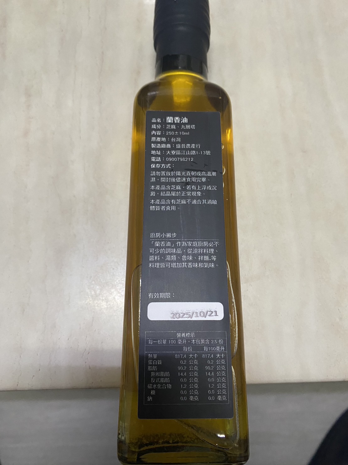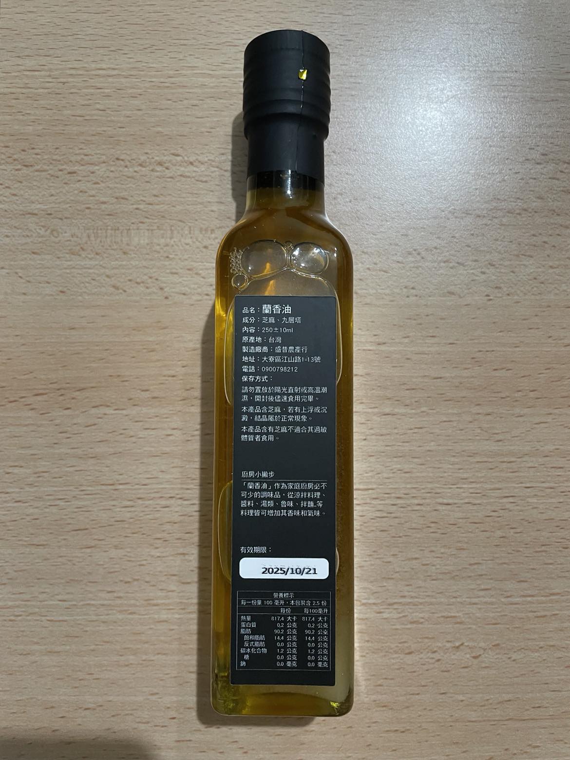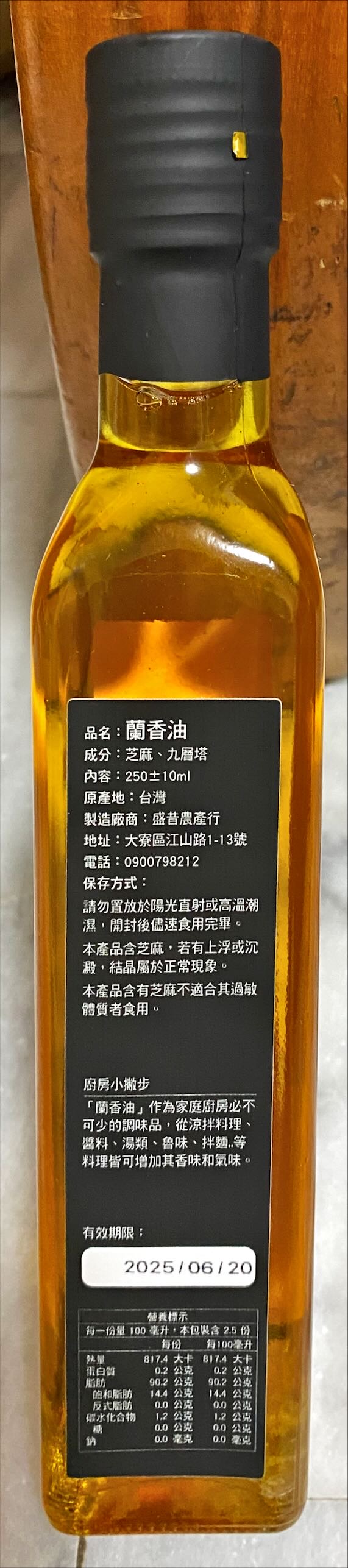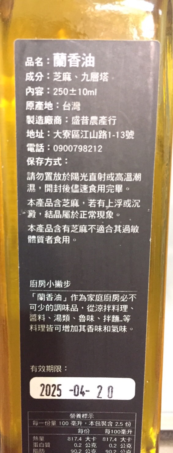 盛昔農品 蘭香油 最單純的好味道九層塔芝麻油